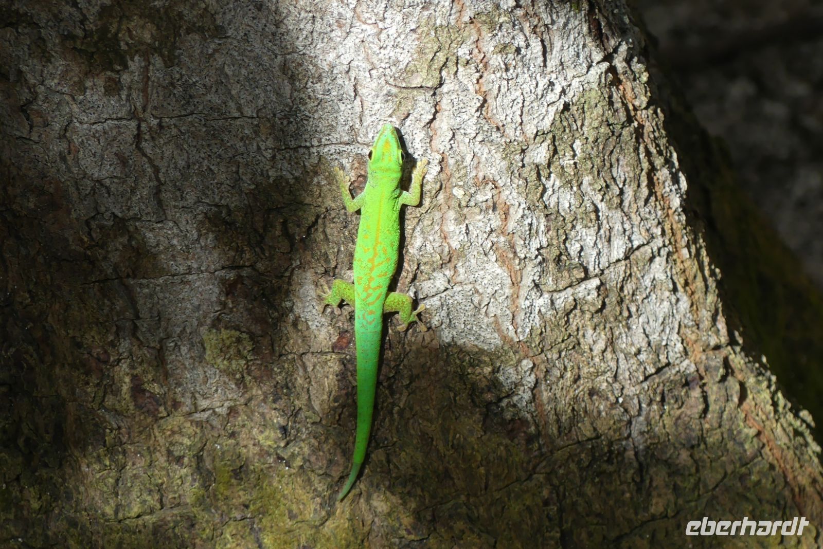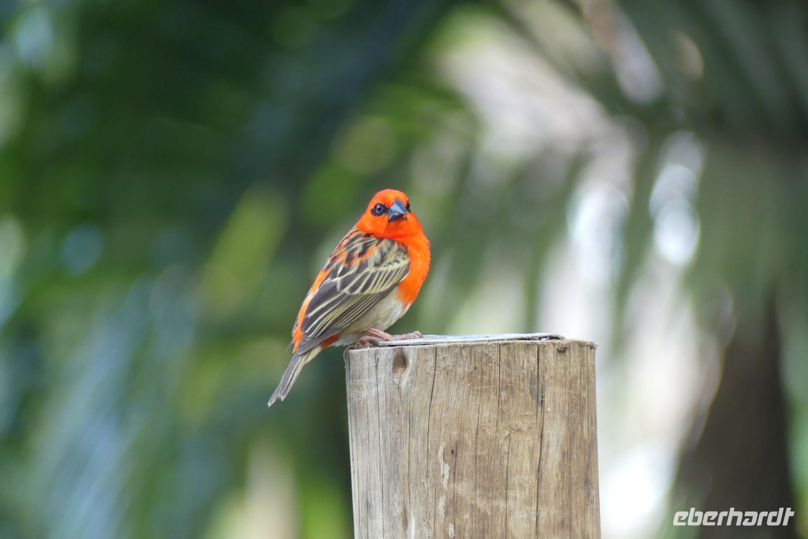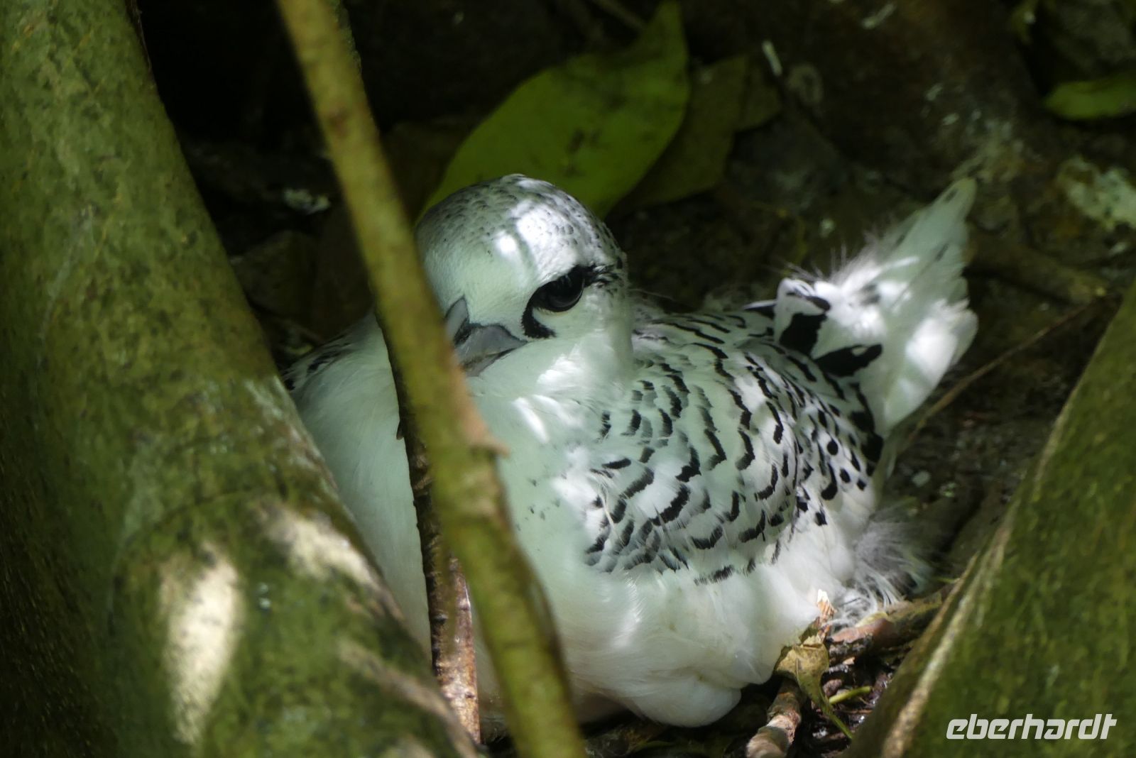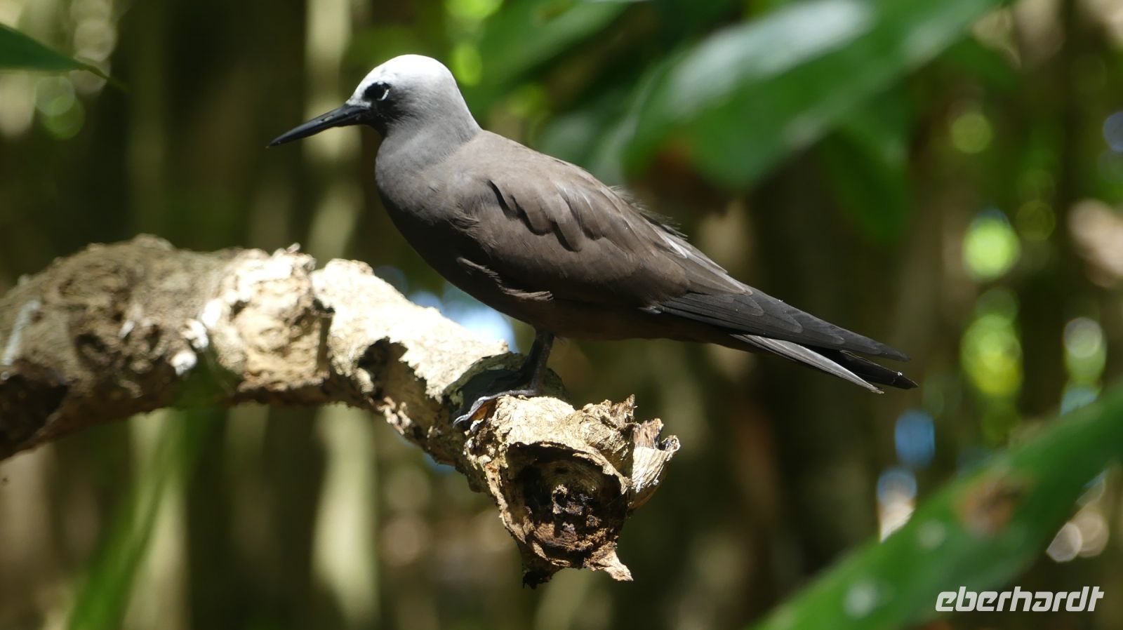 Mit über 50 km/h fahren wir mit dem Schnellboot zur Vogelinsel Cousine. Unterwegs reduzieren wir die Geschwindigkeit, um Traumstrände wie Anse Lazio und Anse Georgette besser sehen zu können. Für die Insel Cousin gibt es strenge Umweltauflagen, weshalb keine größeren Boote an der Insel anlanden dürfen. So steigen wir auf ein kleines Boot, um mit voller Kraft am Strand von Cousin anzulanden. Auf der Insel leben weder Schlangen noch Raub- oder Nagetiere, deshalb kommen verschiedene Vogelarten gern hierher, um ihren Nachwuchs am Boden aufzuziehen. Eine prima Gelegenheit, die Seevögel und ihre Jungtiere, wie die Feenseeschwalbe, den Weißschwanz-Tropikvogel (der mit dem langen weißen Schanz) sowie den Nordi und verschiedene Foddy-Arten ganz aus der Nähe zu beobachten. Auch einigen Landschildkröten begegnen wir. Einen „Räuber“ gibt es aber doch – es sind die Eidechsen, welche es auf Vogeleier abgesehen haben. Und dann gibt es ungebetene Gäste, die zahlreich auf der Insel vertreten sind. Gemeint sind diese gemeinen kleinen Blutsauger, die uns piesacken.
