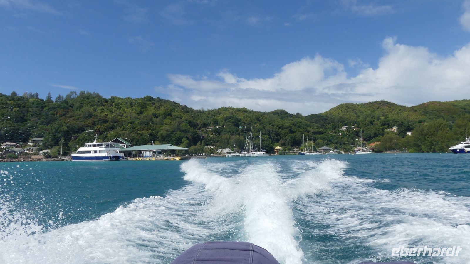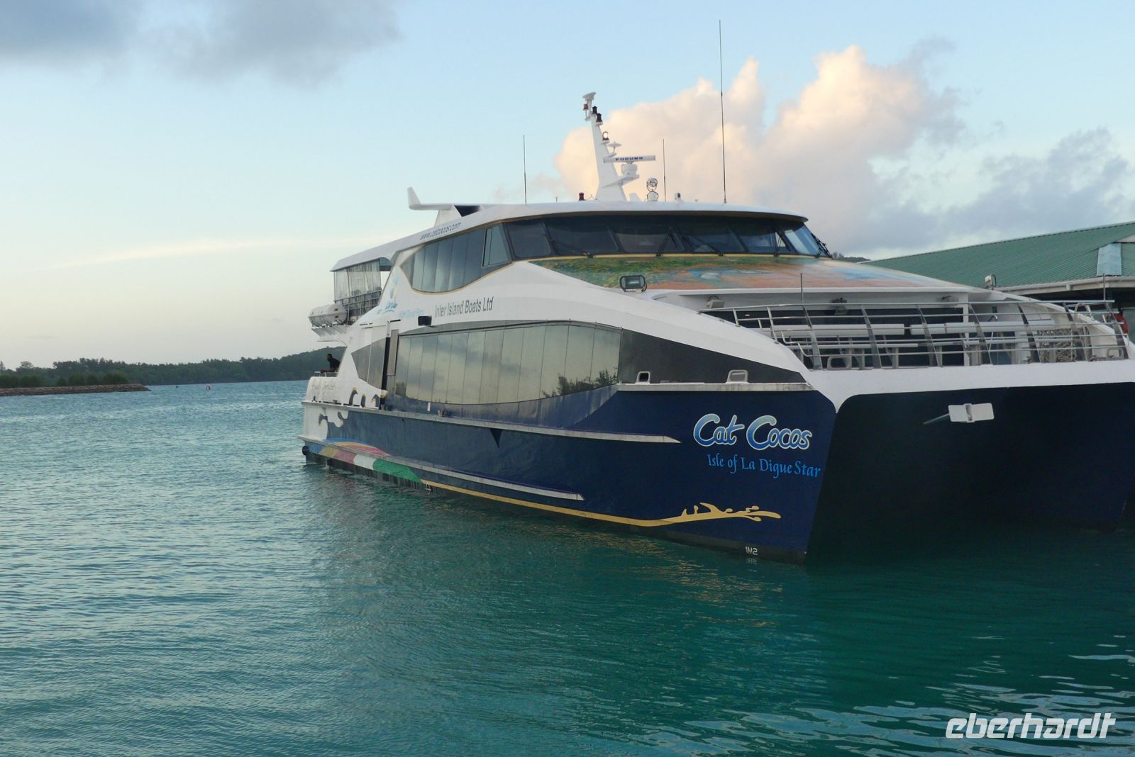 Nun verlassen wir Mahé. Am Jetty, der Anlegestelle gehen wir an Bord der Fähre, welche uns nach Praslin bringt. Die Überfahrt ist etwas unruhig, es schaukelt. Gut, dass wir nach einer reichlichen Stunde wieder festen Boden unter den Füßen haben.