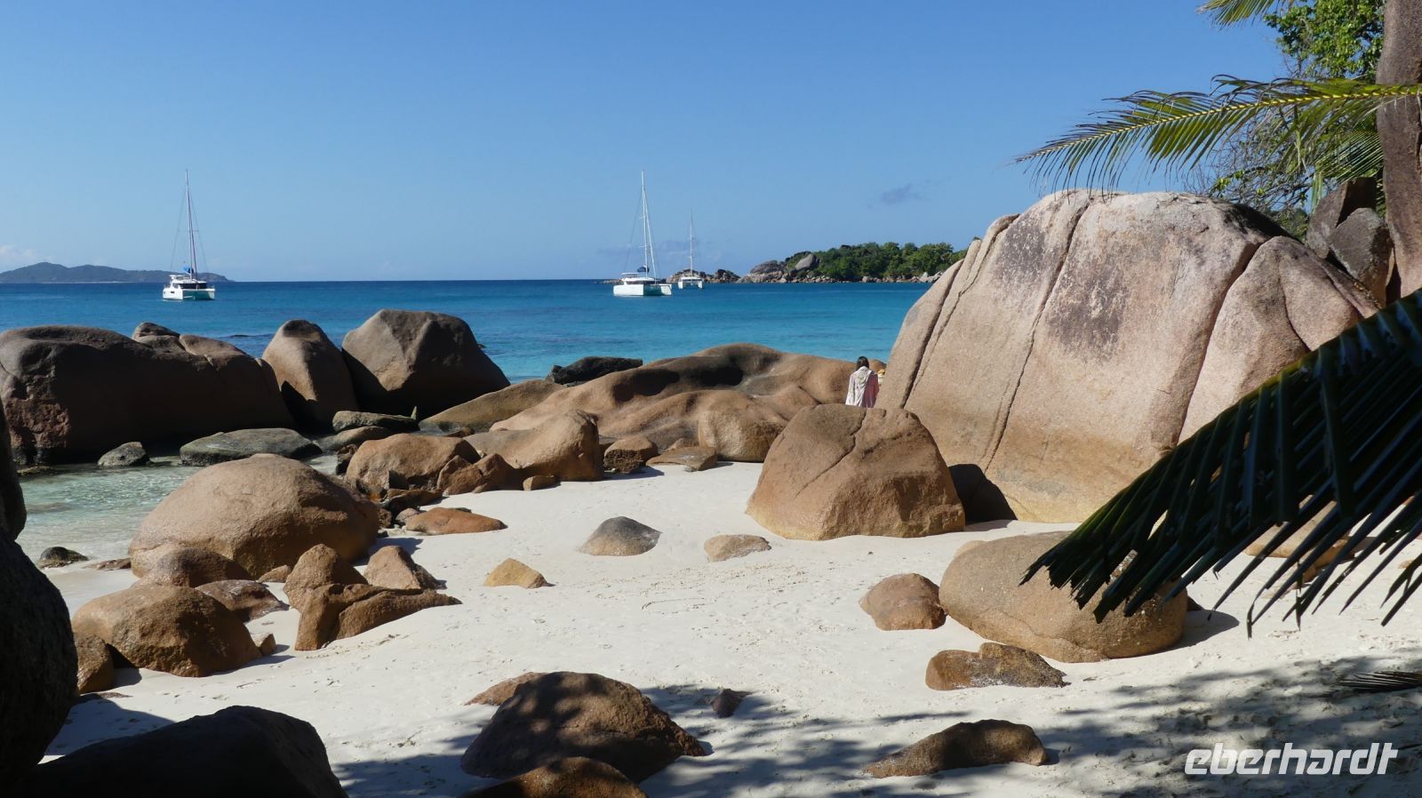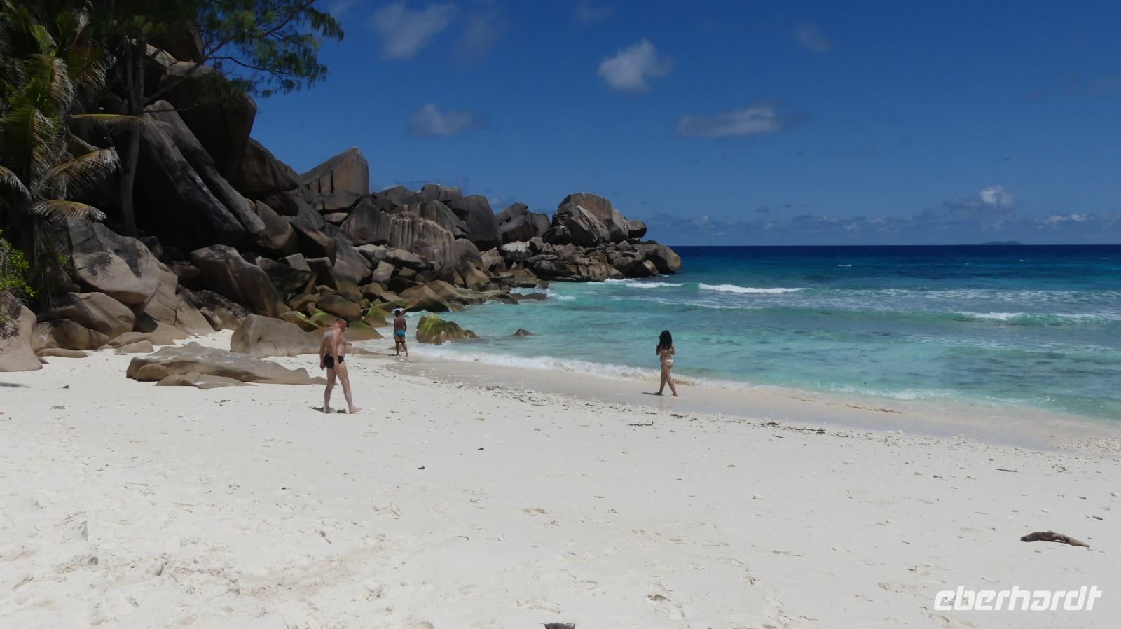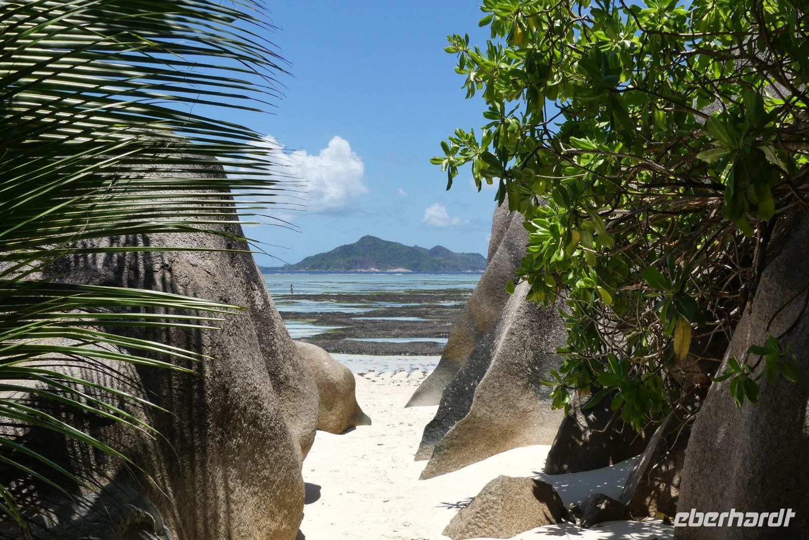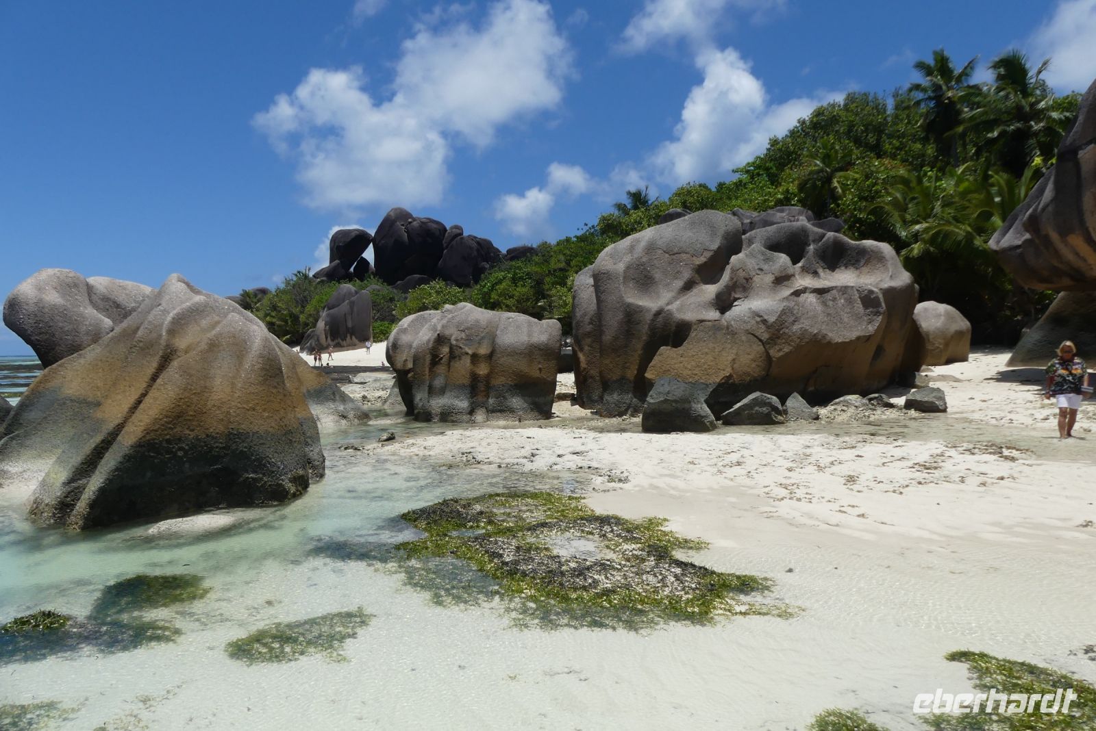 Den Traumstrand Anse Source d’Argent sehen wir bei Ebbe. Da eignet sich der Strand weniger gut zum Baden. Doch die verschiedenen bizarren Formationen der Granitfelsen bieten den Fotografen reichlich Motive.