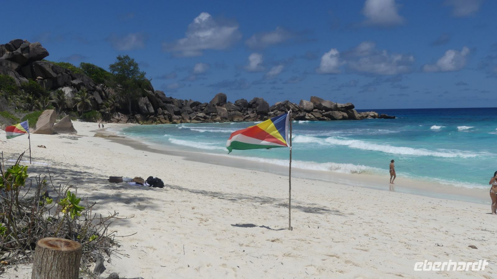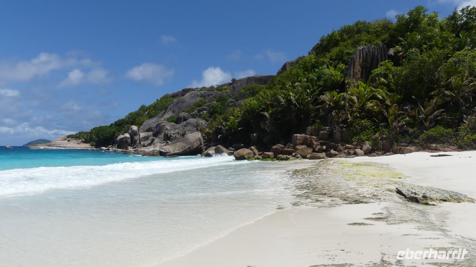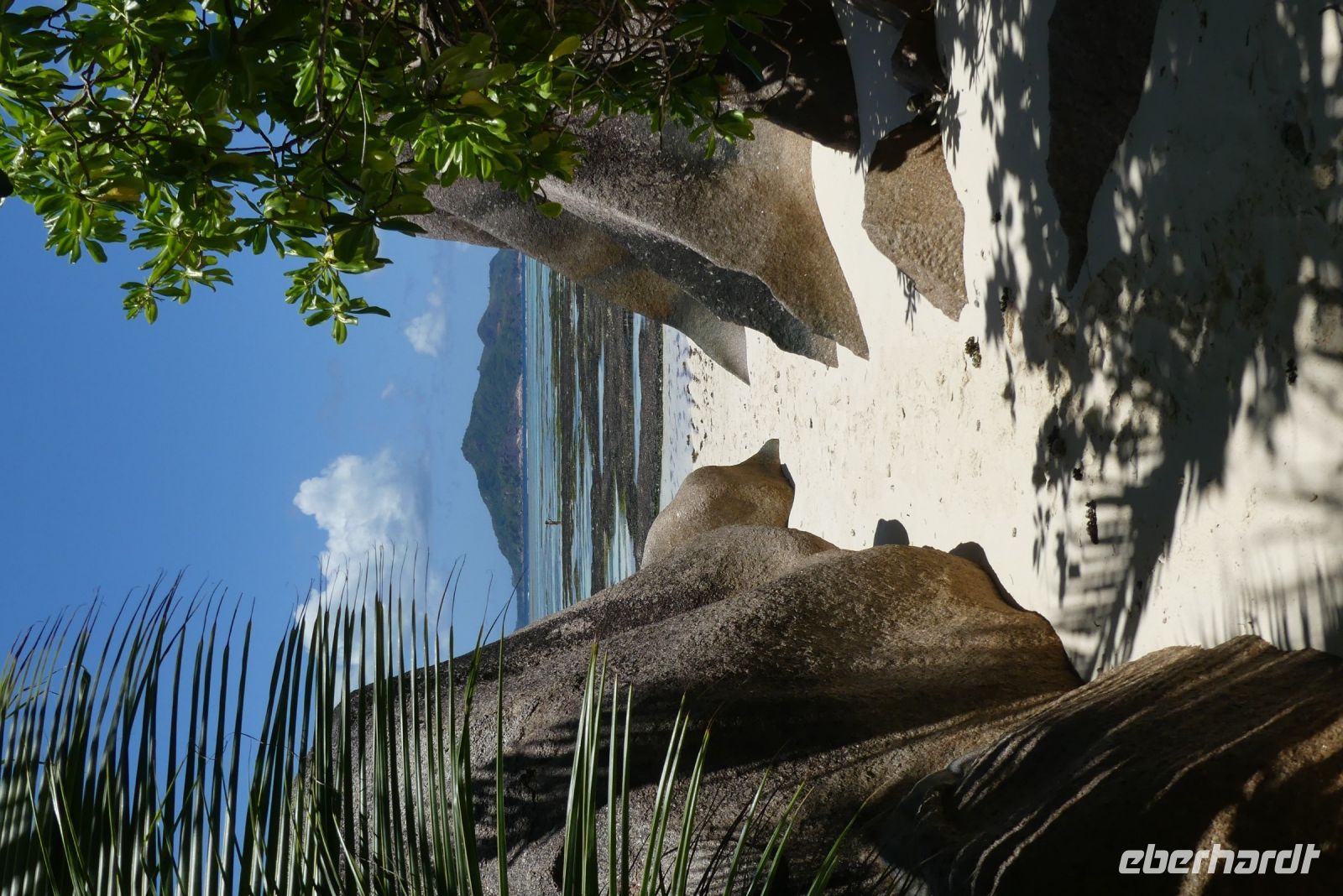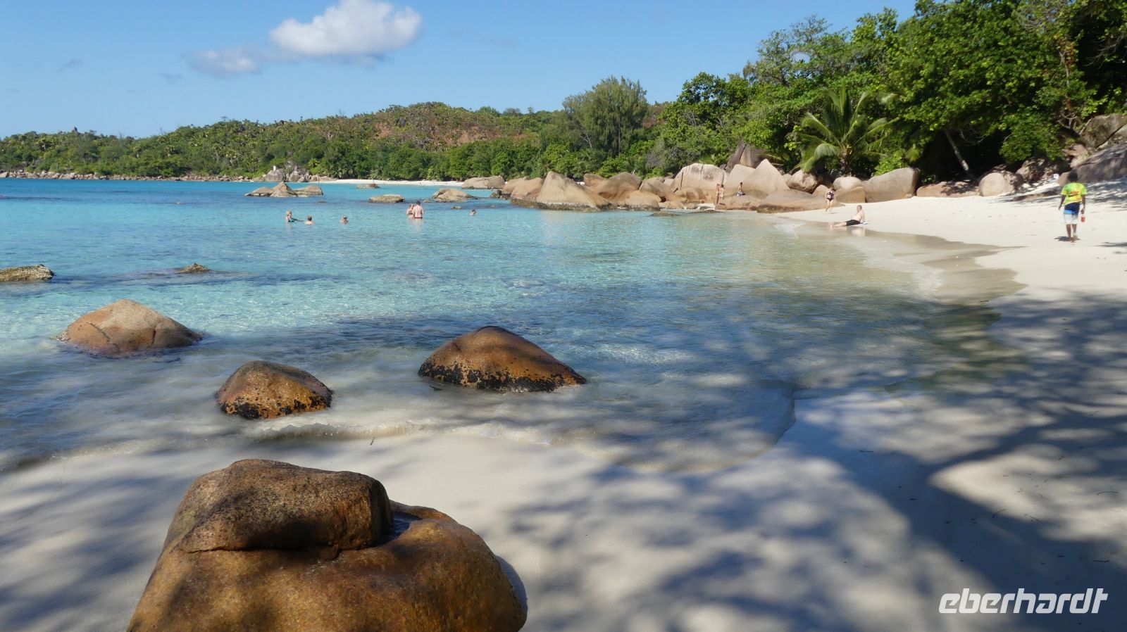 Den Traumstrand Anse Source d’Argent sehen wir bei Ebbe. Da eignet sich der Strand weniger gut zum Baden. Doch die verschiedenen bizarren Formationen der Granitfelsen bieten den Fotografen reichlich Motive.