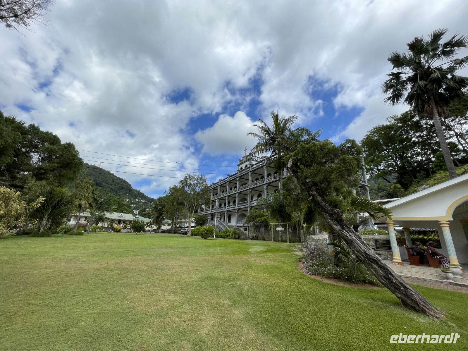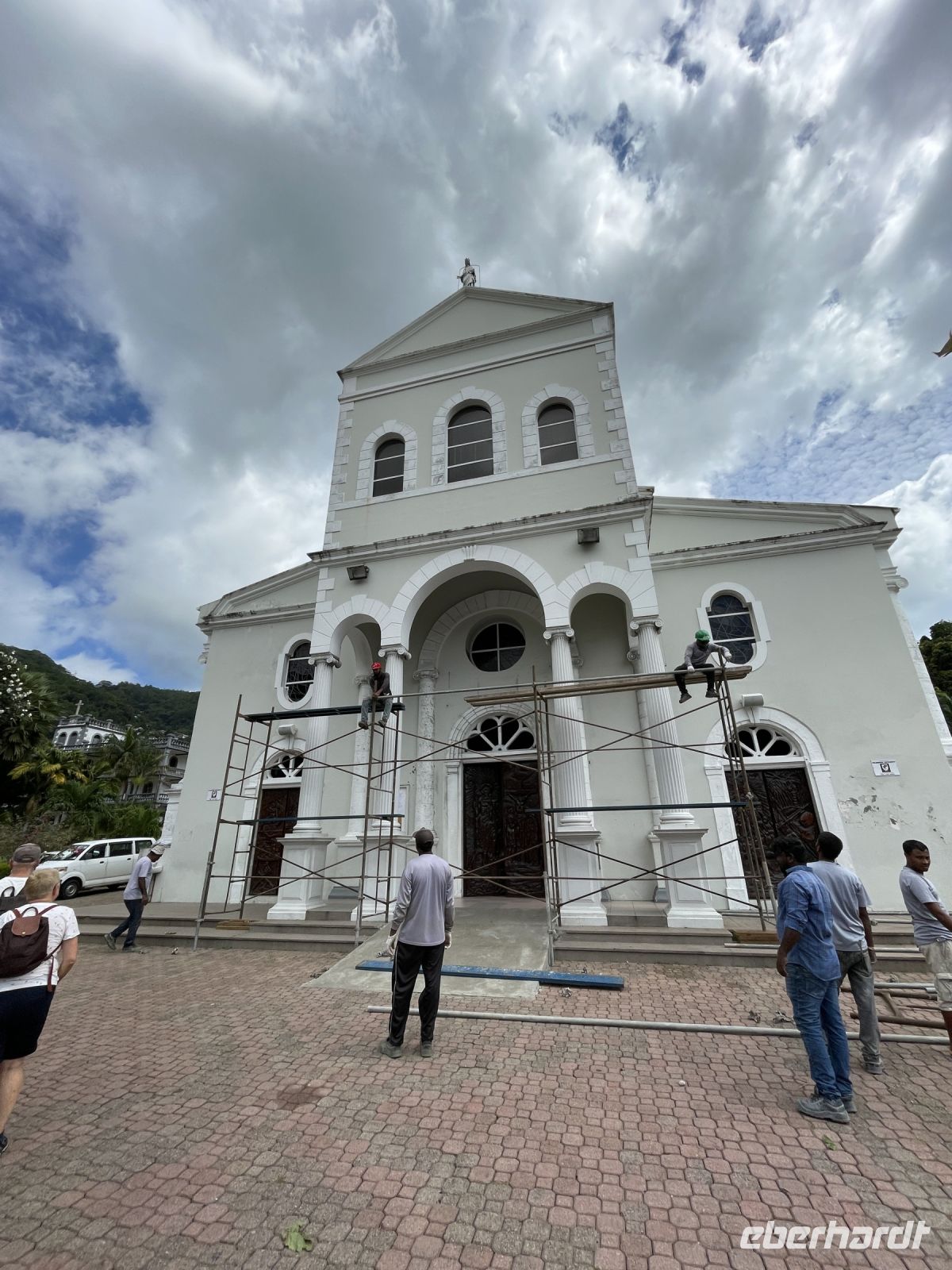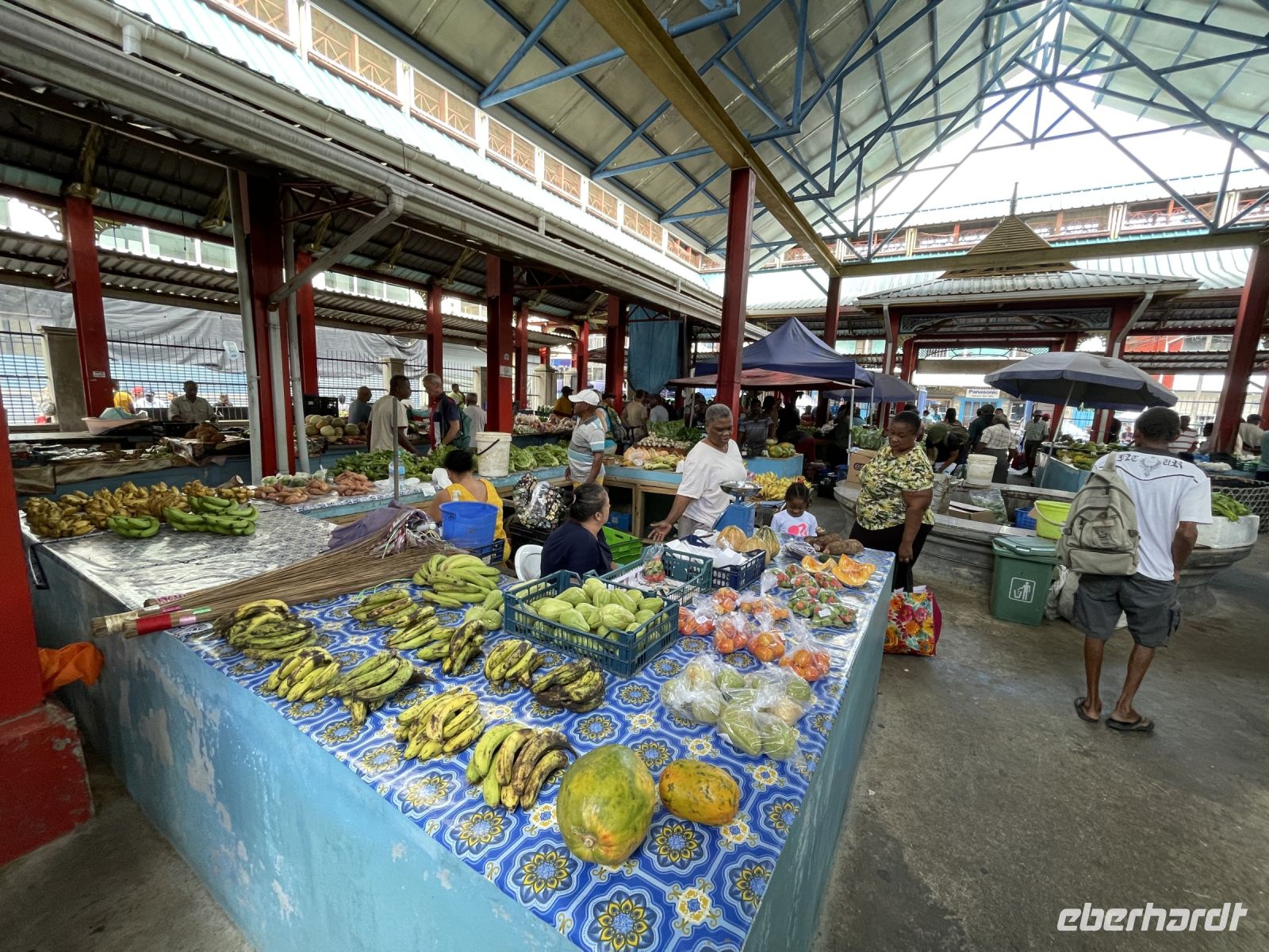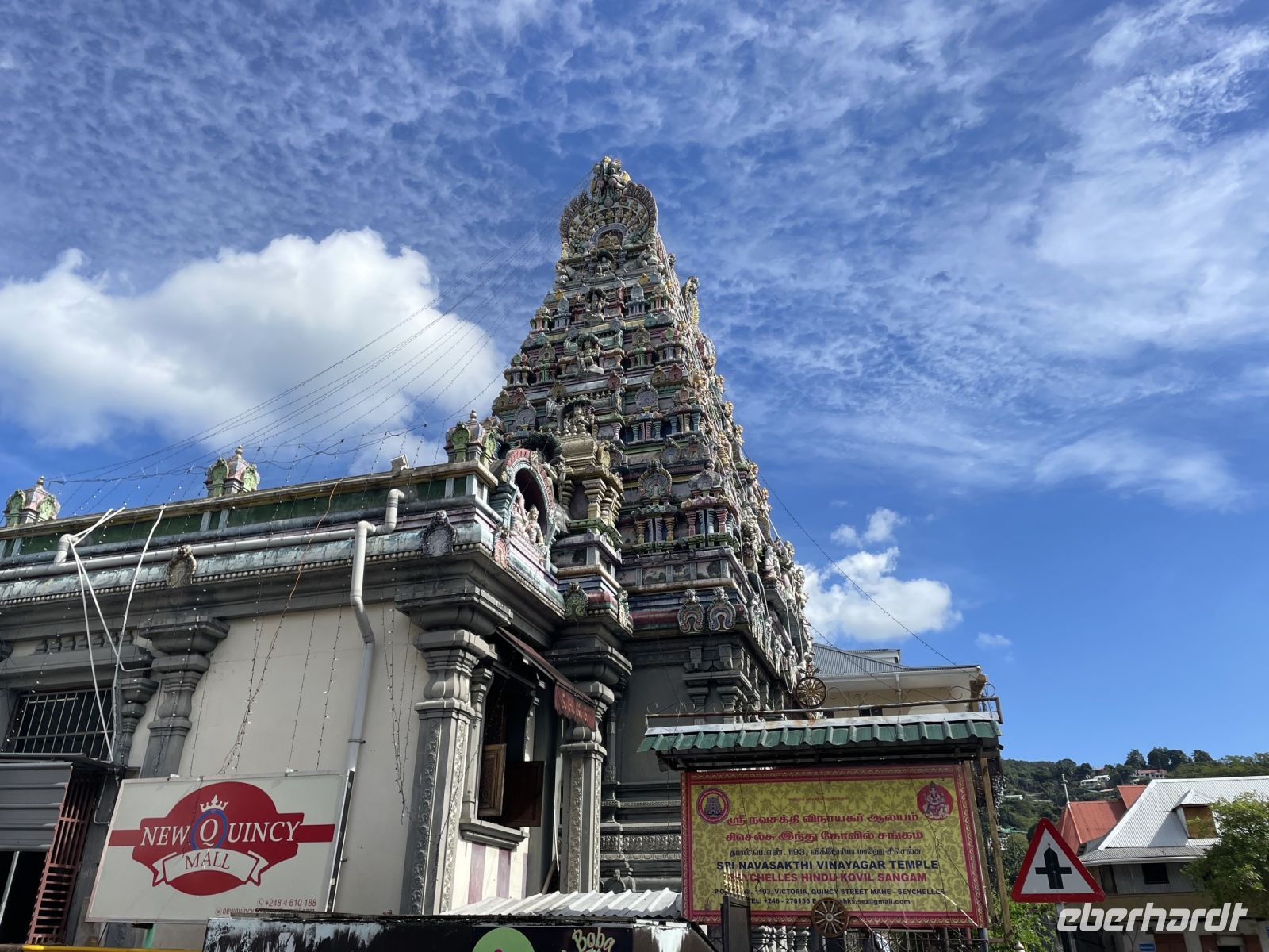 Kurz danach werden wir um 5:45 Uhr herzlich von unserem Reiseleiter Cyril in Empfang genommen. Nachdem wir etwas Bargeld für die nächsten Tage getauscht haben, fahren wir gemeinsam zum Hotel, wo wir die anderen Gäste auf der Reisegruppe antreffen, die bereits 4 Tage vorher angereist sind. Um 8:50Uhr treffen wir uns alle gemeinsam in der Lobby und erkunden zusammen mit Reiseleiter Cyril Teil 1 von Victoria. Unser Rundgang beginnt mit einem Besuch des Hindu-Tempels, wo gerade eine Messe stattfindet. Im Anschluss besuchen wir den öffentlichen Markt, auf dem frischer Fisch, Obst, Gemüse und Souvenirs angeboten werden. Danach steht ein Besuch der Kathedrale auf dem Programm, bevor wir um 12:00 Uhr zum Hotel zurückkehren. Die ersten Zimmer sind bereits bezugsfertig, die restlichen werden bis 13:30 Uhr fertiggestellt. Den Nachmittag gestalten wir individuell – Zeit zum Entspannen, Schlafen oder Baden.