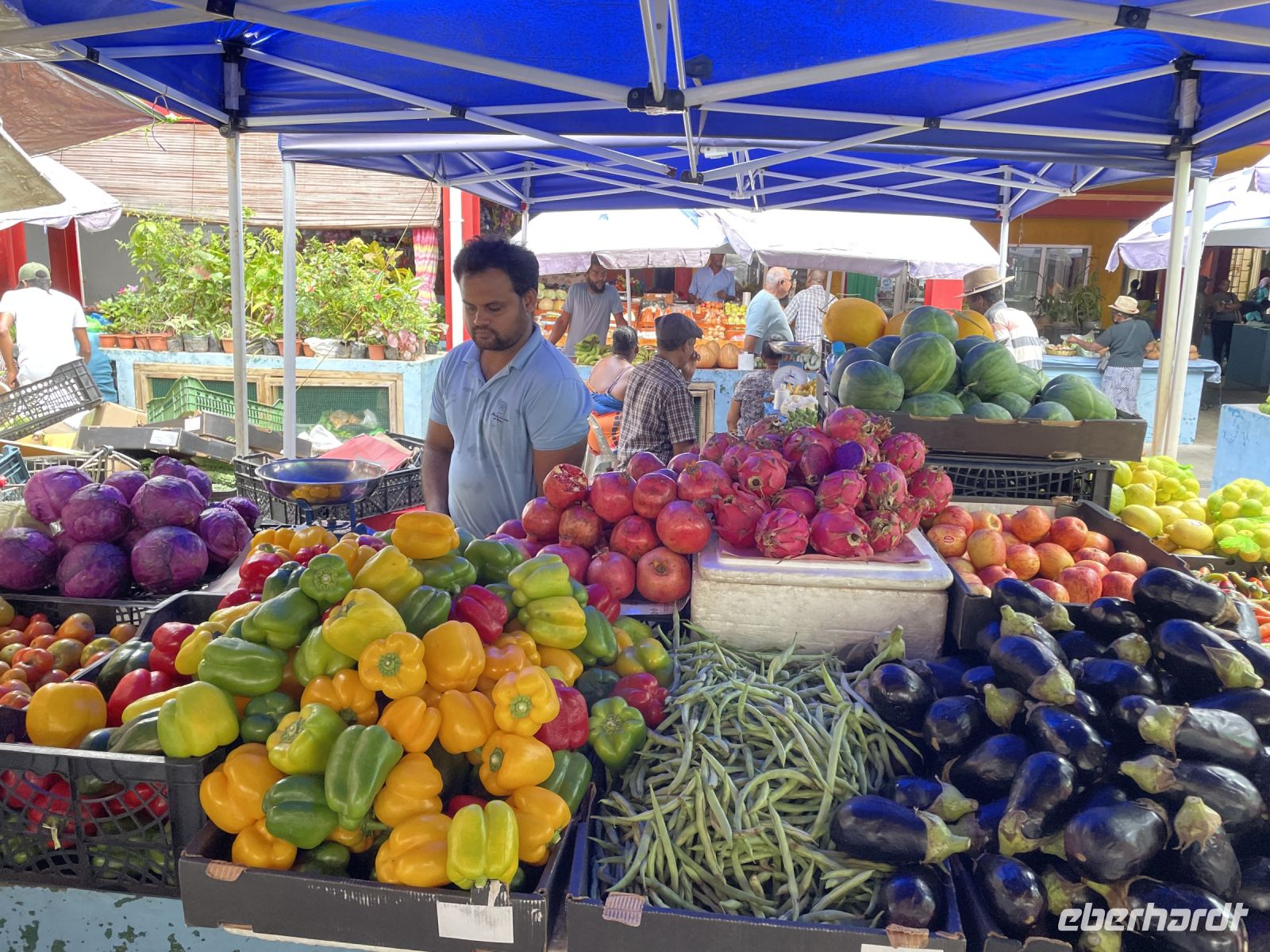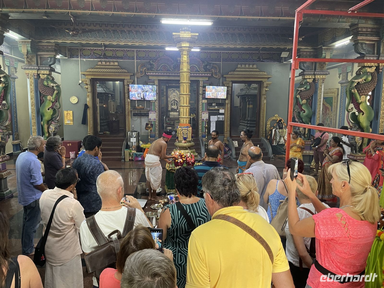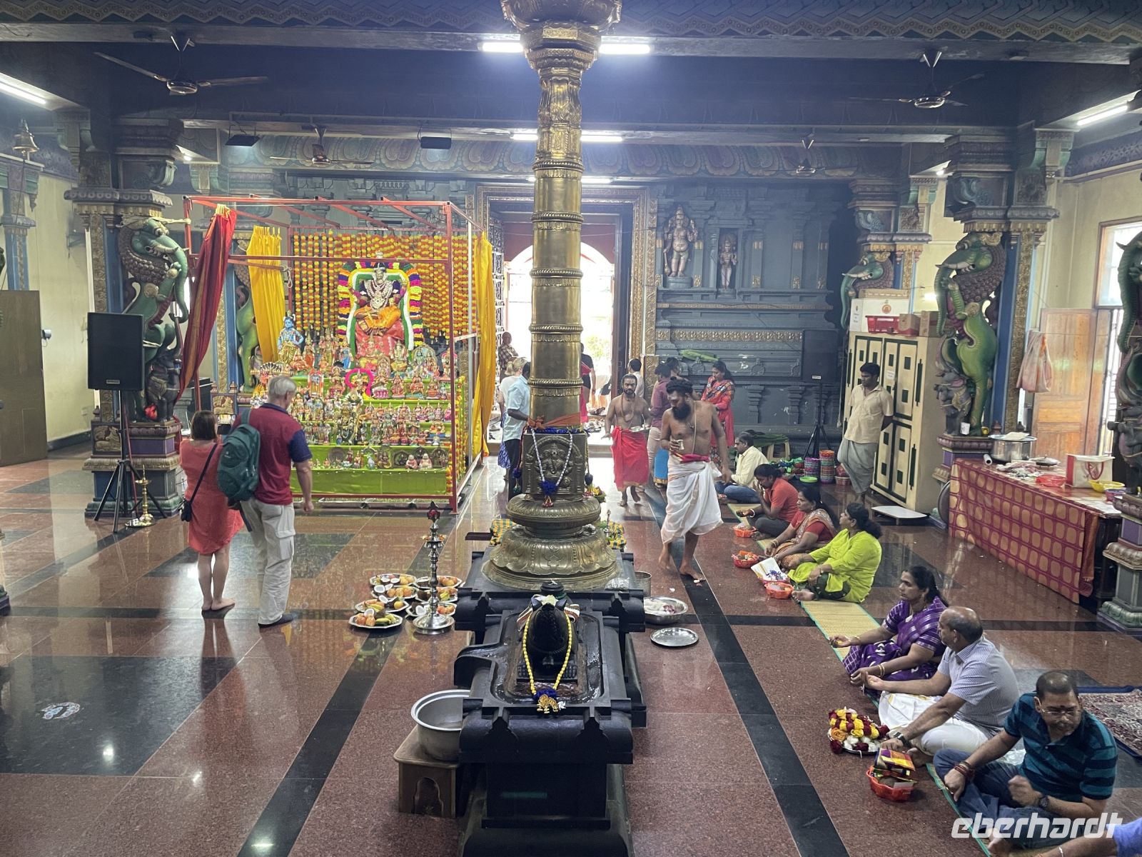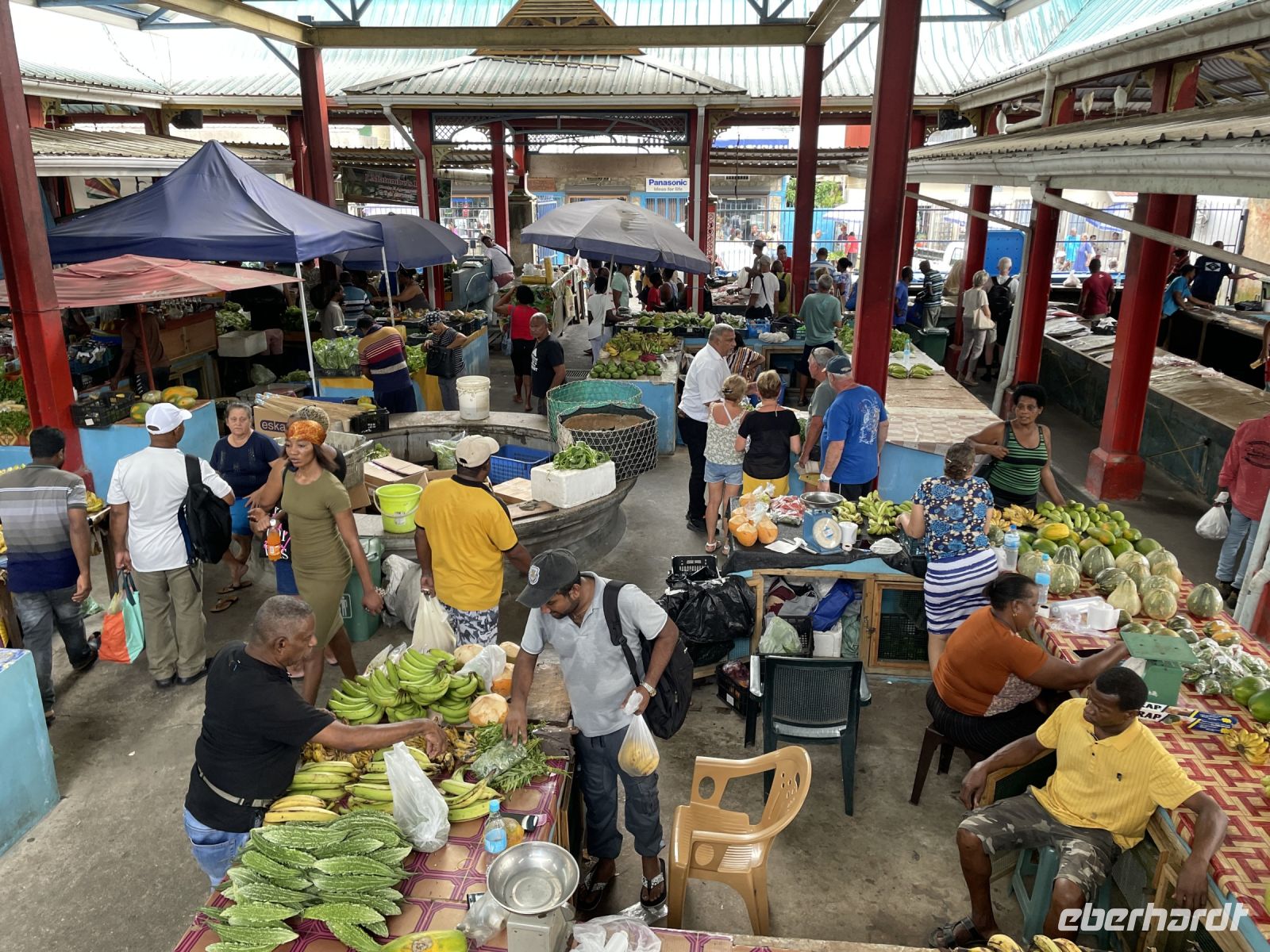 Kurz danach werden wir um 5:45 Uhr herzlich von unserem Reiseleiter Cyril in Empfang genommen. Nachdem wir etwas Bargeld für die nächsten Tage getauscht haben, fahren wir gemeinsam zum Hotel, wo wir die anderen Gäste auf der Reisegruppe antreffen, die bereits 4 Tage vorher angereist sind. Um 8:50Uhr treffen wir uns alle gemeinsam in der Lobby und erkunden zusammen mit Reiseleiter Cyril Teil 1 von Victoria. Unser Rundgang beginnt mit einem Besuch des Hindu-Tempels, wo gerade eine Messe stattfindet. Im Anschluss besuchen wir den öffentlichen Markt, auf dem frischer Fisch, Obst, Gemüse und Souvenirs angeboten werden. Danach steht ein Besuch der Kathedrale auf dem Programm, bevor wir um 12:00 Uhr zum Hotel zurückkehren. Die ersten Zimmer sind bereits bezugsfertig, die restlichen werden bis 13:30 Uhr fertiggestellt. Den Nachmittag gestalten wir individuell – Zeit zum Entspannen, Schlafen oder Baden.