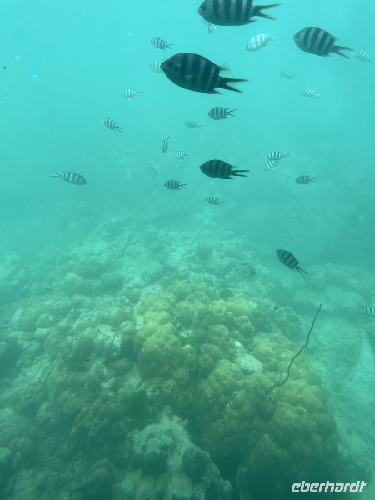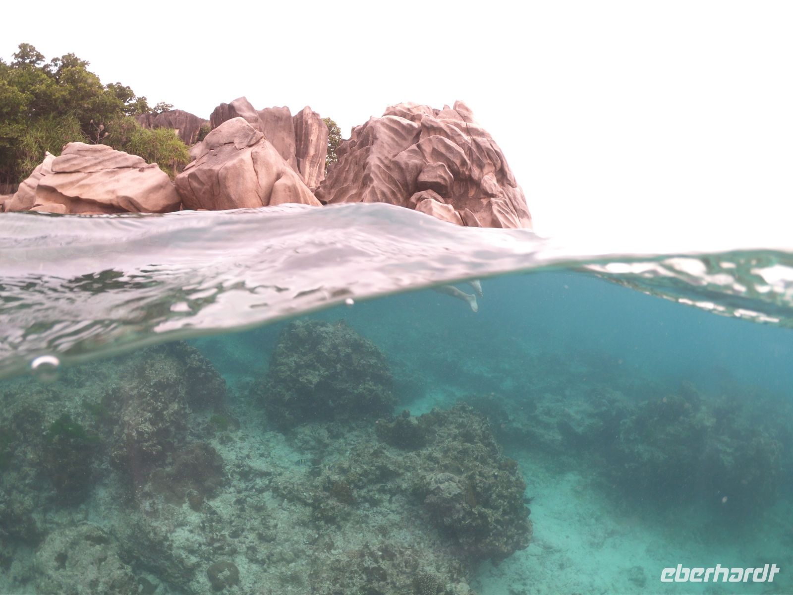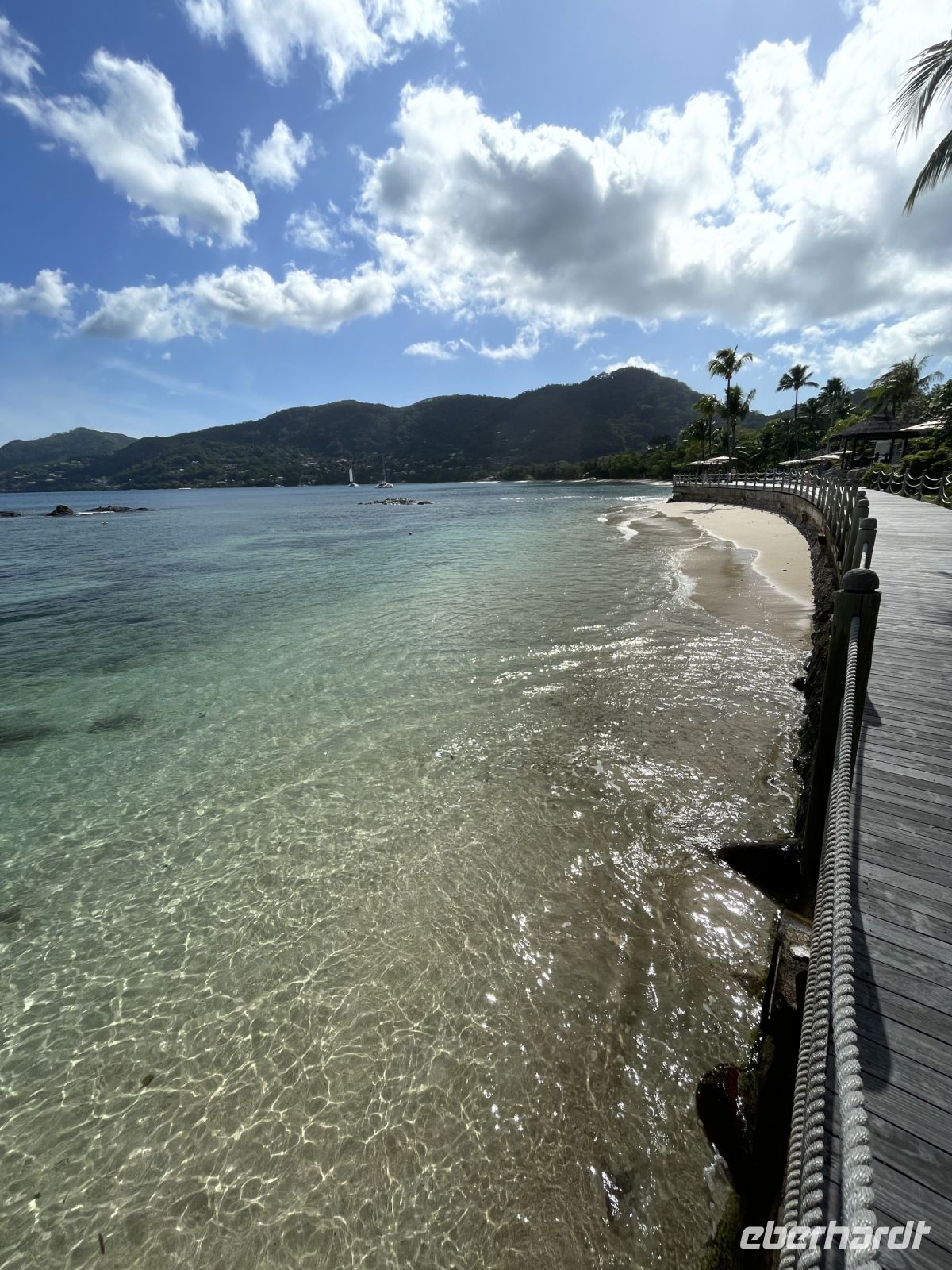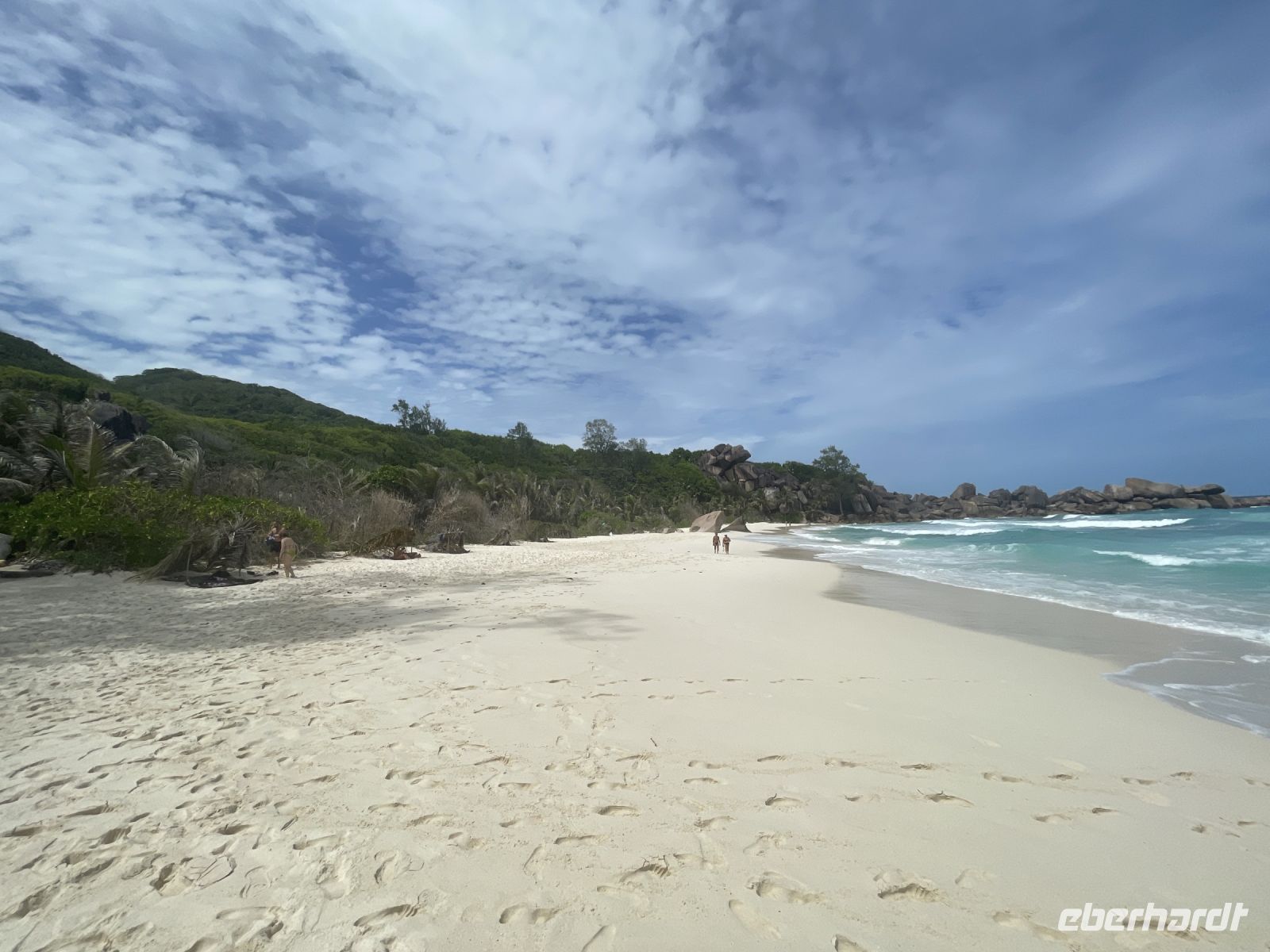 Um 9:00 Uhr starten wir direkt vom Hotel mit einem kleinen Schlauchboot, dass uns zum Katamaran bringt. Obwohl der Tag mit etwas trübem Wetter und leichtem Regen beginnt, klart es auf, während wir etwa 40 Minuten nach La Digue segeln. Bei unserer Ankunft scheint die Sonne, und wir werden von Jérôme abgeholt, der uns gemeinsam mit Cyril auf einem offenen LKW etwa zehn Minuten in den Süden der Insel fährt. Dort unternehmen wir einen Rundgang durch eine Kokosnussplantage, besuchen die Schildkröten und schlendern durch die Vanilleplantage, bevor wir schließlich einen der schönsten Strände der Welt erreichen. Am Strand Source d’Argent angekommen, genießen wir die Zeit zum Baden und Fotos knipsen. Durch die beeindruckenden Granitfelsen ergeben sich traumhafte Fotomotive. In den 90er Jahren wurde hier sogar einmal eine Barcadi-Rum Werbung gedreht, weshalb der Strand an Berühmtheit dazu gewann. Nach dem Badespaß treffen wir uns am Strandausgang und fahren mit dem LKW ca. 10min hinüber zum Grand Anse, wo wir ein leckeres Mittagessen auf uns wartet. Hier gibt es frische gegrillten Fisch. Nach dem Essen nutzen einige noch die Zeit, um in den Wellen zu planschen, jedoch nur bis zum Bauch, da das Schwimmen hier untersagt ist aufgrund der starken Strömung. Um 14:45 Uhr geht es zurück zum Hafen von La Digue. Nach einem kurzen Stopp an einem Schnorchelspot, wo wir etwa 30 Minuten die Unterwasserwelt erkunden, treten wir schließlich den Heimweg an. Wir fahren nicht um die Insel aufgrund der hohen Wellen, sondern nehmen den direkten Kurs Richtung Süden und genießen die Aussicht auf den Source d’Argent Strand, bevor wir gegen 17:00 Uhr unseren Hotelstrand erreichen. Um 19:00 Uhr treffen wir uns wieder zum Abendessen und genießen danach ein gemütliches Beisammensein am Infinity-Pool, wo ich drei Flaschen Weißwein zum Abschluss spendiere.