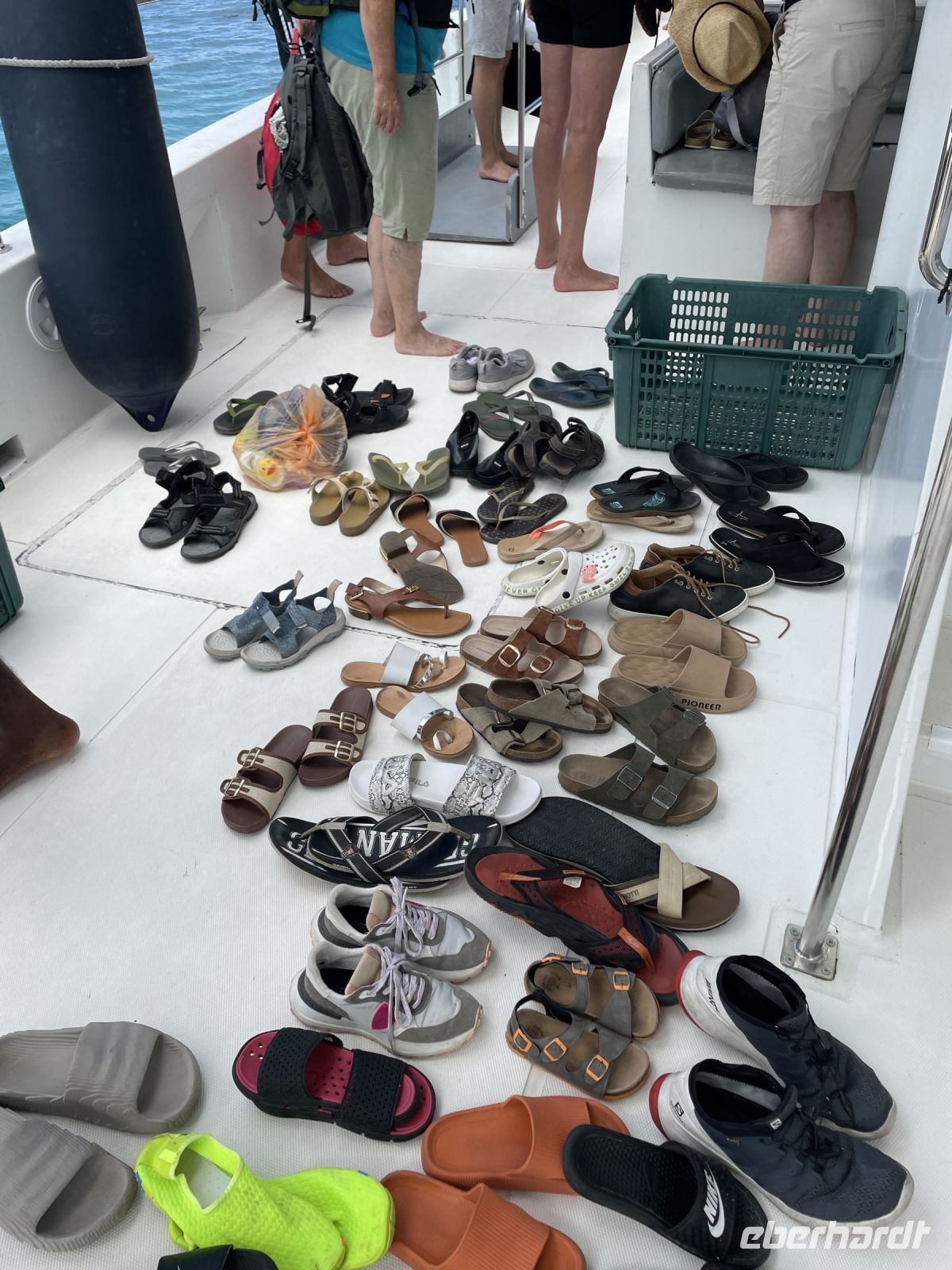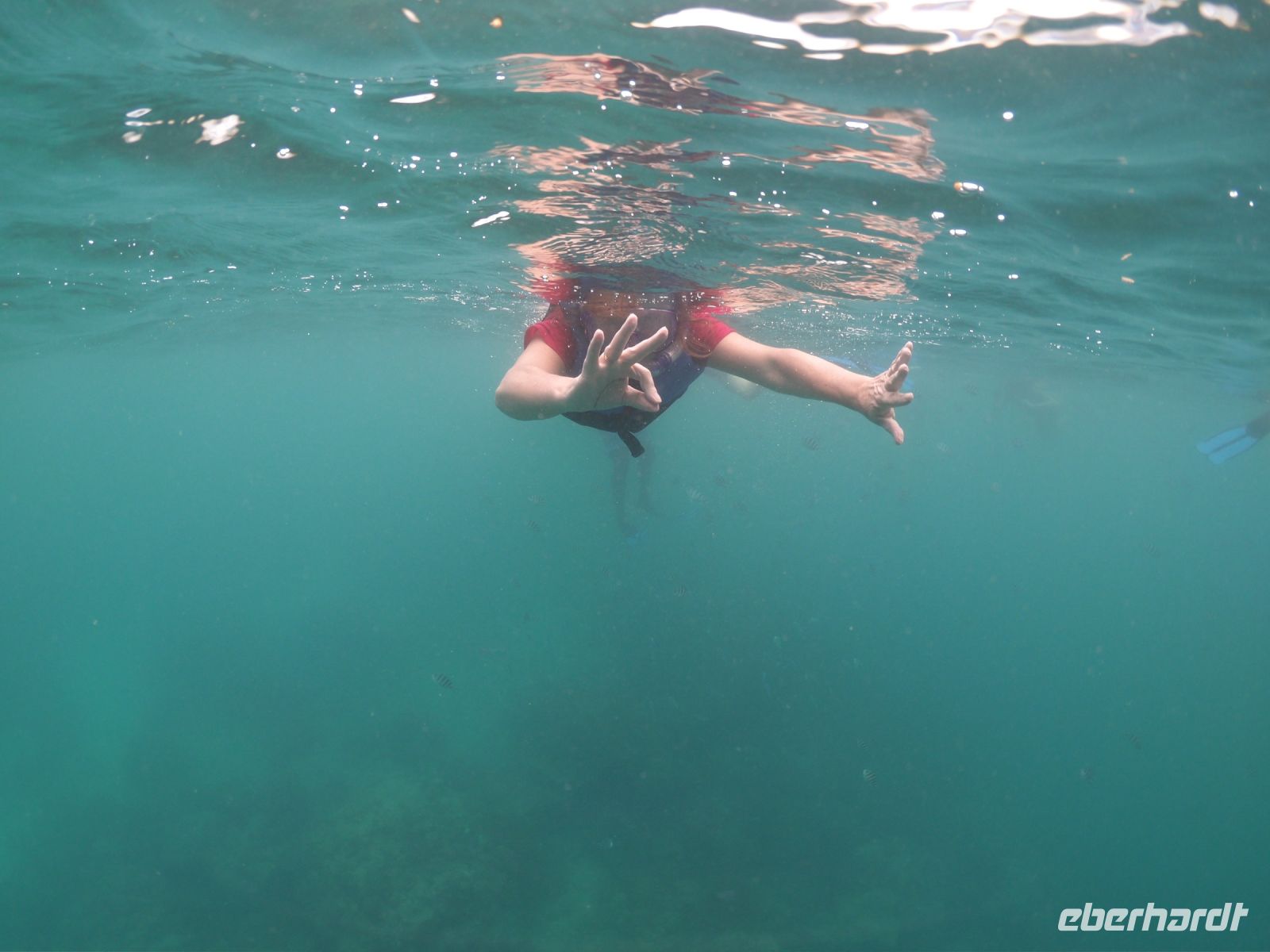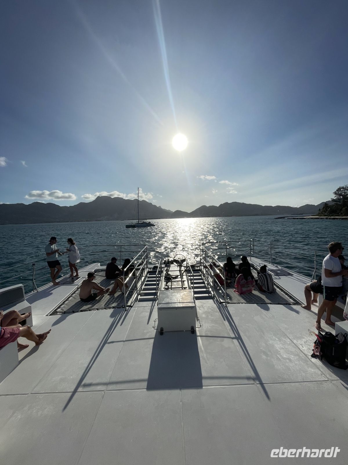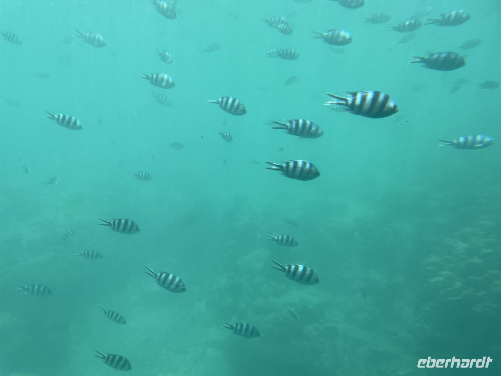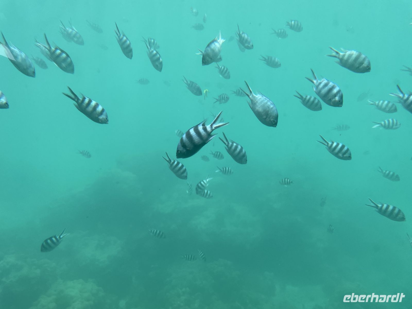 Um 9:00 Uhr starten wir direkt vom Hotel mit einem kleinen Schlauchboot, dass uns zum Katamaran bringt. Obwohl der Tag mit etwas trübem Wetter und leichtem Regen beginnt, klart es auf, während wir etwa 40 Minuten nach La Digue segeln. Bei unserer Ankunft scheint die Sonne, und wir werden von Jérôme abgeholt, der uns gemeinsam mit Cyril auf einem offenen LKW etwa zehn Minuten in den Süden der Insel fährt. Dort unternehmen wir einen Rundgang durch eine Kokosnussplantage, besuchen die Schildkröten und schlendern durch die Vanilleplantage, bevor wir schließlich einen der schönsten Strände der Welt erreichen. Am Strand Source d’Argent angekommen, genießen wir die Zeit zum Baden und Fotos knipsen. Durch die beeindruckenden Granitfelsen ergeben sich traumhafte Fotomotive. In den 90er Jahren wurde hier sogar einmal eine Barcadi-Rum Werbung gedreht, weshalb der Strand an Berühmtheit dazu gewann. Nach dem Badespaß treffen wir uns am Strandausgang und fahren mit dem LKW ca. 10min hinüber zum Grand Anse, wo wir ein leckeres Mittagessen auf uns wartet. Hier gibt es frische gegrillten Fisch. Nach dem Essen nutzen einige noch die Zeit, um in den Wellen zu planschen, jedoch nur bis zum Bauch, da das Schwimmen hier untersagt ist aufgrund der starken Strömung. Um 14:45 Uhr geht es zurück zum Hafen von La Digue. Nach einem kurzen Stopp an einem Schnorchelspot, wo wir etwa 30 Minuten die Unterwasserwelt erkunden, treten wir schließlich den Heimweg an. Wir fahren nicht um die Insel aufgrund der hohen Wellen, sondern nehmen den direkten Kurs Richtung Süden und genießen die Aussicht auf den Source d’Argent Strand, bevor wir gegen 17:00 Uhr unseren Hotelstrand erreichen. Um 19:00 Uhr treffen wir uns wieder zum Abendessen und genießen danach ein gemütliches Beisammensein am Infinity-Pool, wo ich drei Flaschen Weißwein zum Abschluss spendiere.