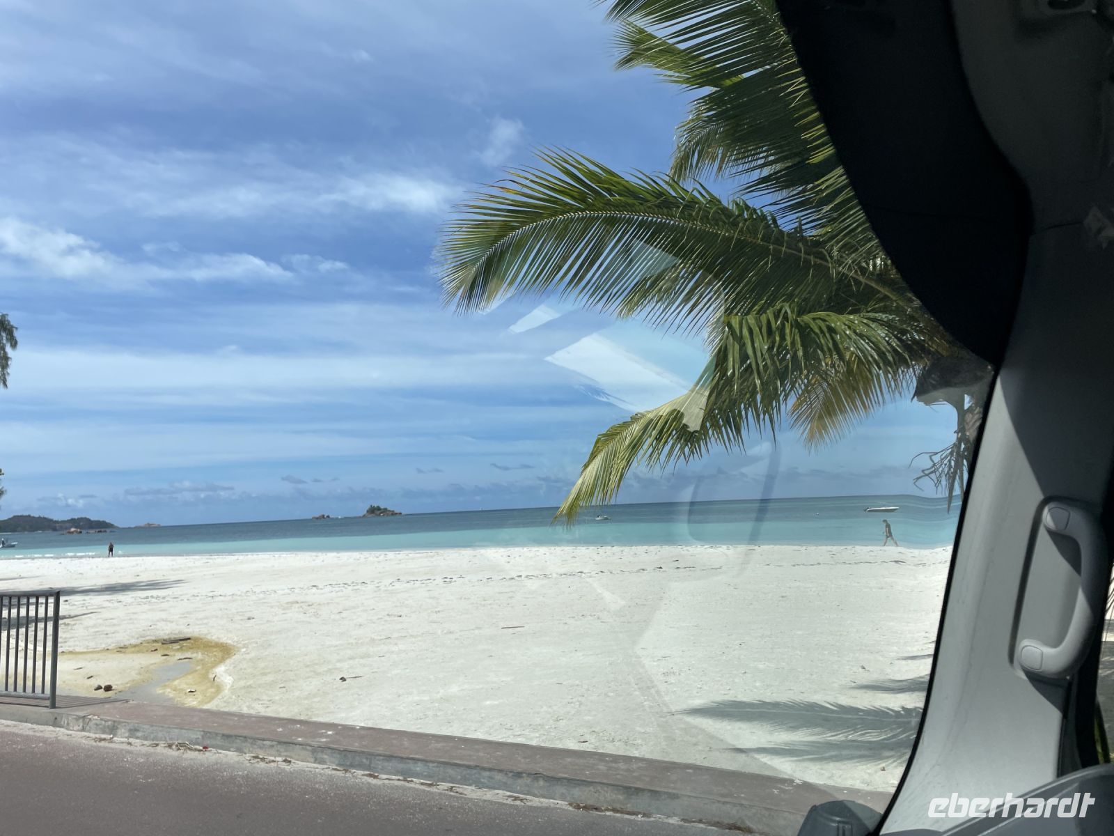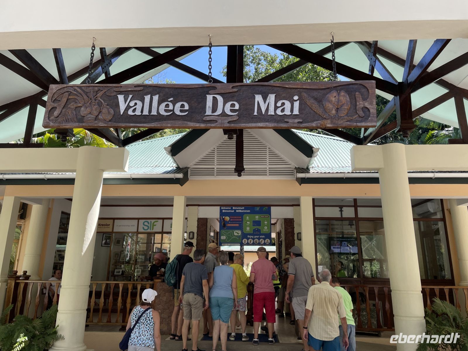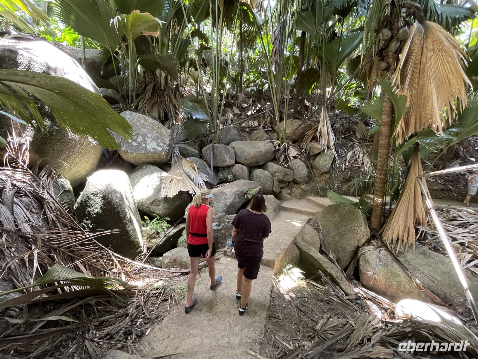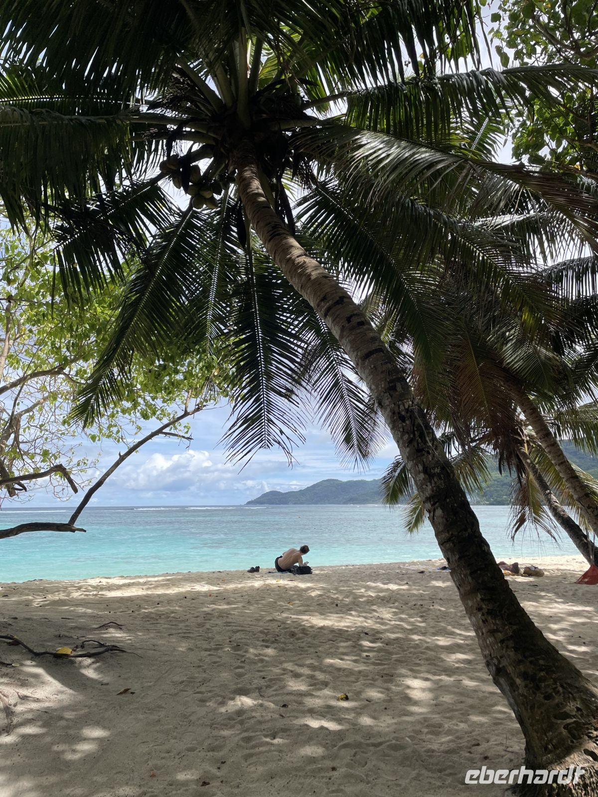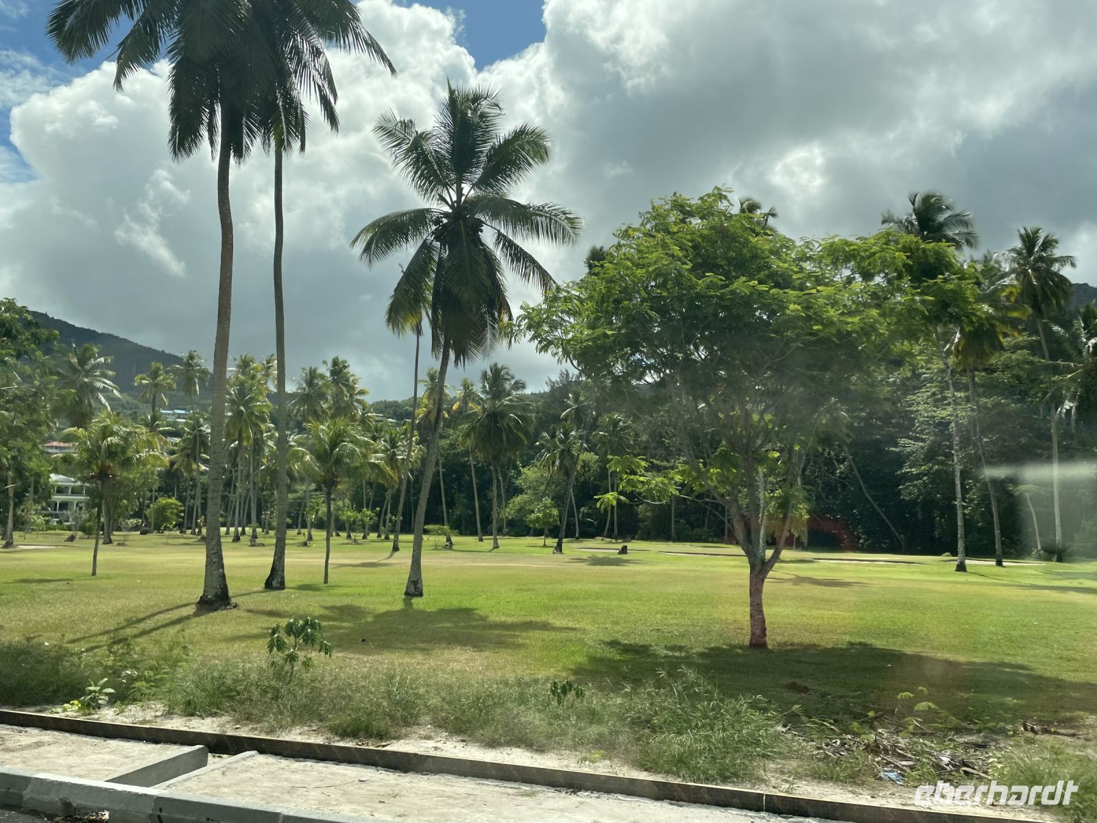 Heute besuchen wir den Nationalpark Vallée de Mai. Auf dem Weg halten wir kurz an einem Supermarkt, um uns mit Getränken einzudecken. Um 10:15 Uhr erreichen wir den Eingang des Nationalparks. Während Cyril die Tickets organisiert, nutzen wir die Toiletten und machen uns bereit für das Naturerlebnis. Gemeinsam unternehmen wir einen ausführlichen Rundgang wo Cyril alles Wichtige über die größte Nussart der Welt erklärt – die Coco de Mer. Zum Abschluss dürfen wir natürlich die weibliche Nuss und die passende männliche Komponente in der Hand halten. Anschließend statten wir dem Tourishop noch einen Besuch ab und setzen unsere Reise fort in Richtung Norden von Praslin. Wir fahren vorbei am kleinen Insel-Flughafen von und einem 18-Loch-Golfplatz, wo einige von uns noch schnell ein paar Fotos schießen von der wunderschönen Parkanlage. Um 12:20 Uhr erreichen wir das Oasis Hotel und genießen dort ein köstliches kreolisches Mittagsbuffet. Danach fahren wir weiter zum Strand von Anse Lazio, wo wir reichliche 2 Stunden Zeit haben zum Baden und entspannen. Auf der Rückfahrt halten wir erneut kurz am Supermarkt, bevor wir kurze Zeit später wieder im Hotel ankommen. Der Rest des Nachmittags steht zur freien Verfügung. Um 19:00 Uhr treffen wir uns zum Abendessen und lassen den Tag gemütlich ausklingen.