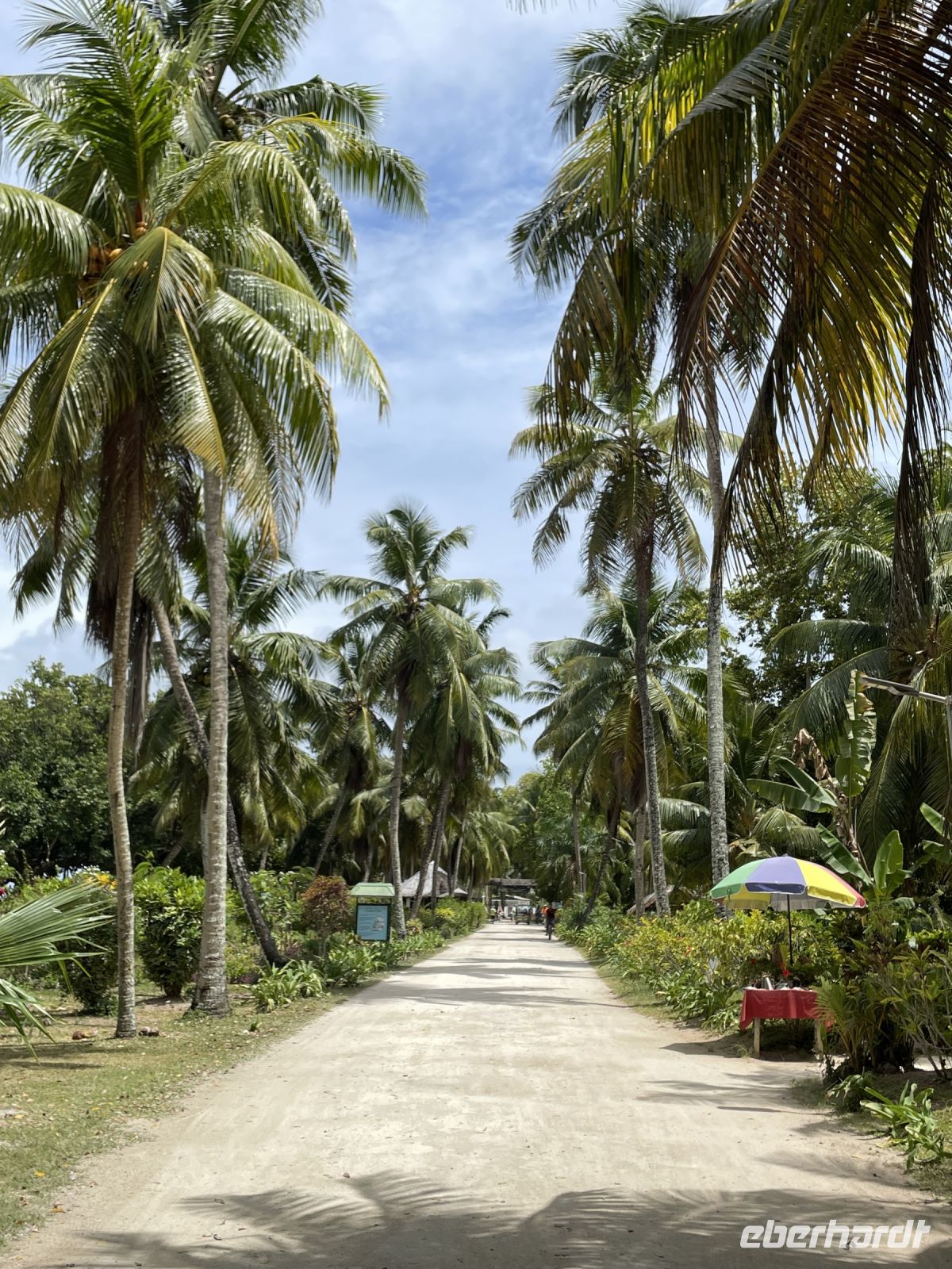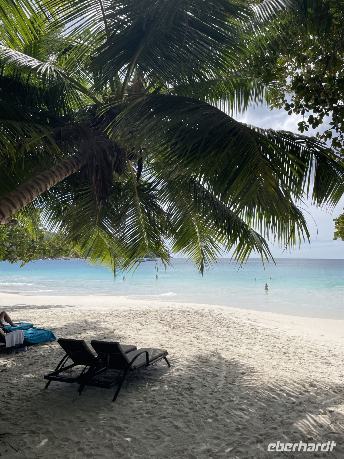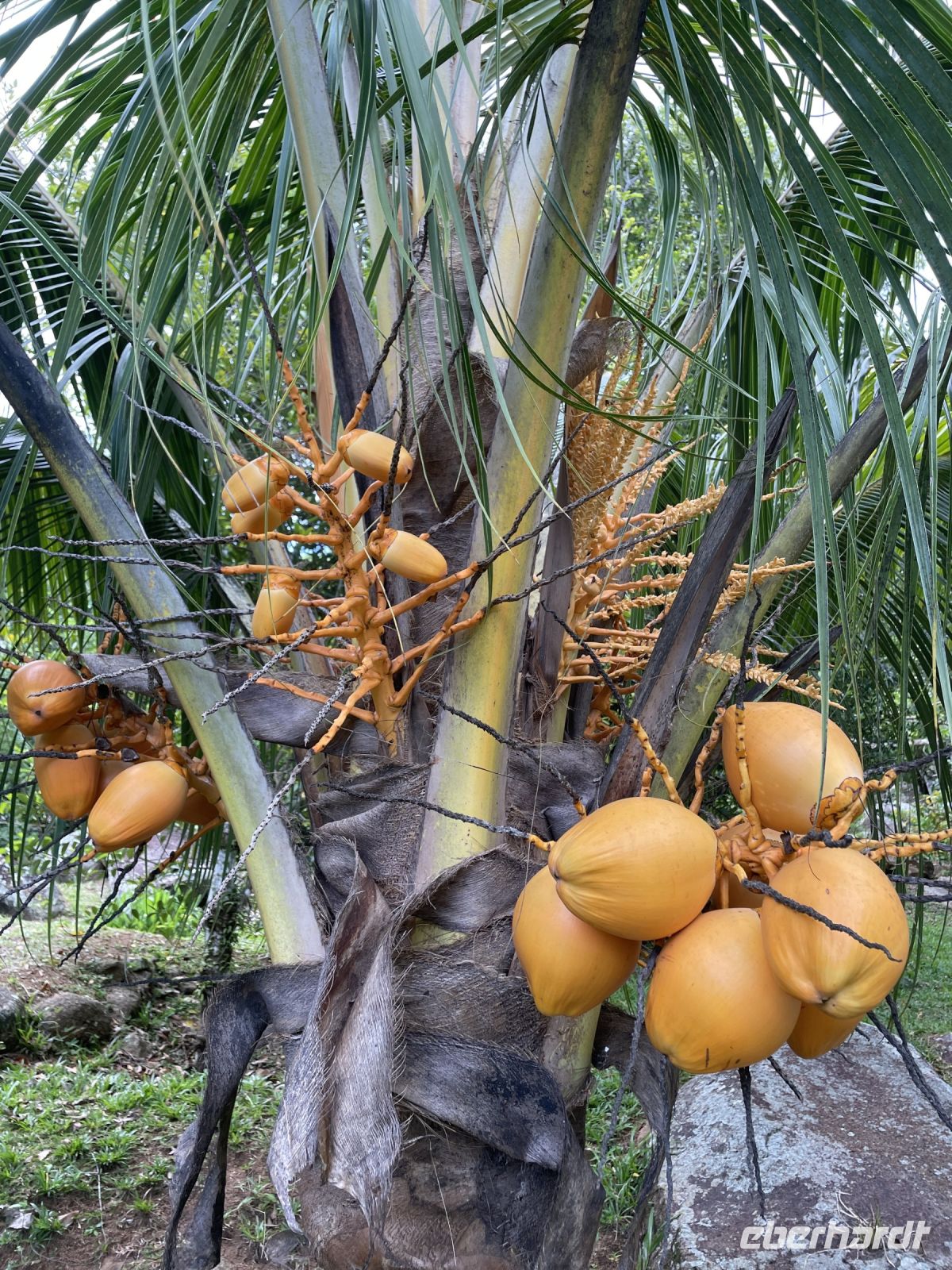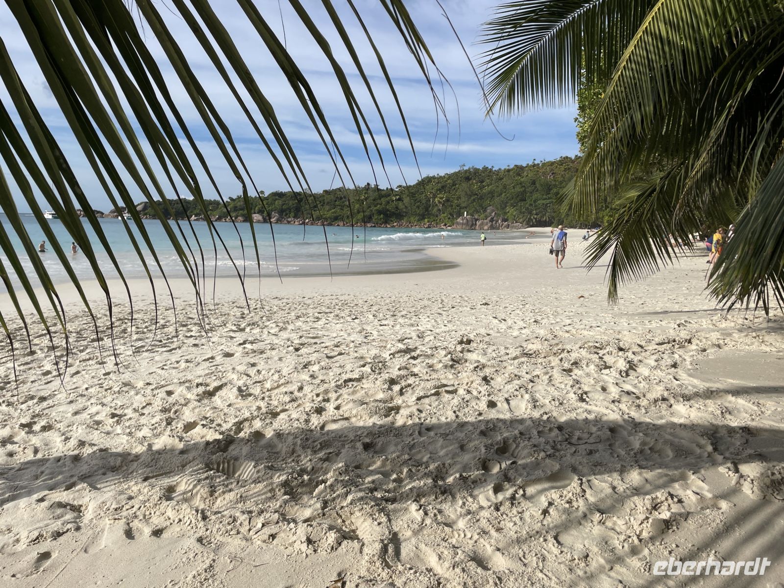 Heute besuchen wir den Nationalpark Vallée de Mai. Auf dem Weg halten wir kurz an einem Supermarkt, um uns mit Getränken einzudecken. Um 10:15 Uhr erreichen wir den Eingang des Nationalparks. Während Cyril die Tickets organisiert, nutzen wir die Toiletten und machen uns bereit für das Naturerlebnis. Gemeinsam unternehmen wir einen ausführlichen Rundgang wo Cyril alles Wichtige über die größte Nussart der Welt erklärt – die Coco de Mer. Zum Abschluss dürfen wir natürlich die weibliche Nuss und die passende männliche Komponente in der Hand halten. Anschließend statten wir dem Tourishop noch einen Besuch ab und setzen unsere Reise fort in Richtung Norden von Praslin. Wir fahren vorbei am kleinen Insel-Flughafen von und einem 18-Loch-Golfplatz, wo einige von uns noch schnell ein paar Fotos schießen von der wunderschönen Parkanlage. Um 12:20 Uhr erreichen wir das Oasis Hotel und genießen dort ein köstliches kreolisches Mittagsbuffet. Danach fahren wir weiter zum Strand von Anse Lazio, wo wir reichliche 2 Stunden Zeit haben zum Baden und entspannen. Auf der Rückfahrt halten wir erneut kurz am Supermarkt, bevor wir kurze Zeit später wieder im Hotel ankommen. Der Rest des Nachmittags steht zur freien Verfügung. Um 19:00 Uhr treffen wir uns zum Abendessen und lassen den Tag gemütlich ausklingen.