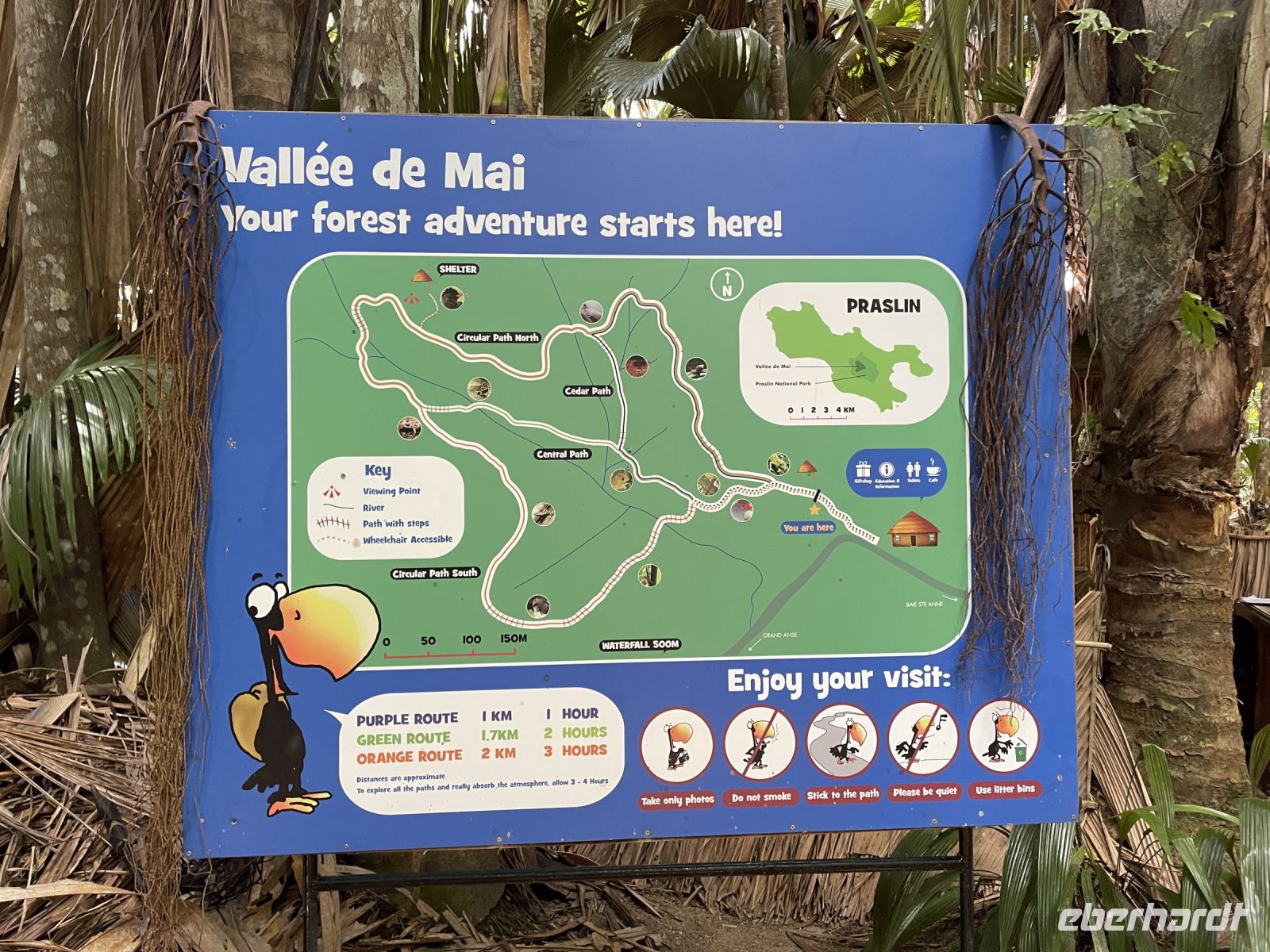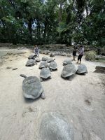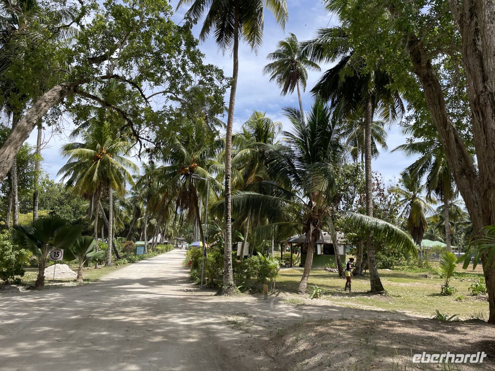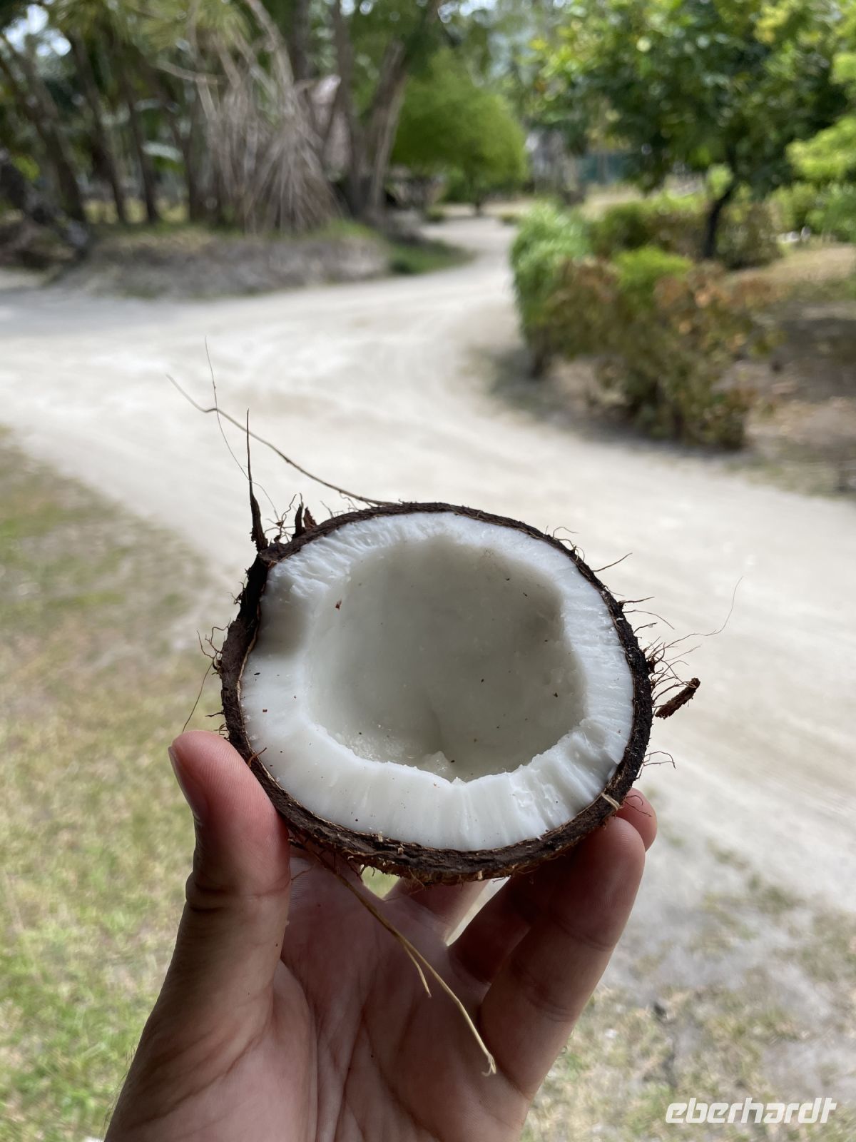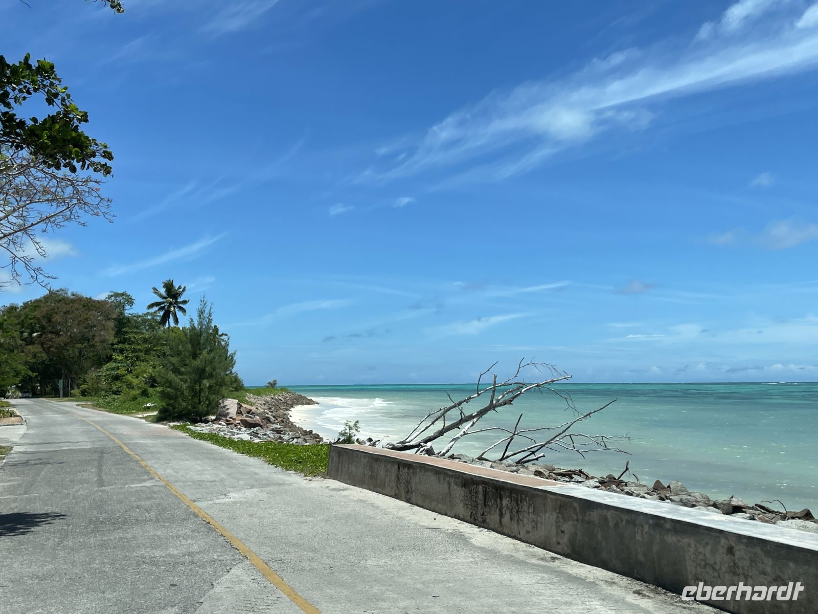 Heute besuchen wir den Nationalpark Vallée de Mai. Auf dem Weg halten wir kurz an einem Supermarkt, um uns mit Getränken einzudecken. Um 10:15 Uhr erreichen wir den Eingang des Nationalparks. Während Cyril die Tickets organisiert, nutzen wir die Toiletten und machen uns bereit für das Naturerlebnis. Gemeinsam unternehmen wir einen ausführlichen Rundgang wo Cyril alles Wichtige über die größte Nussart der Welt erklärt – die Coco de Mer. Zum Abschluss dürfen wir natürlich die weibliche Nuss und die passende männliche Komponente in der Hand halten. Anschließend statten wir dem Tourishop noch einen Besuch ab und setzen unsere Reise fort in Richtung Norden von Praslin. Wir fahren vorbei am kleinen Insel-Flughafen von und einem 18-Loch-Golfplatz, wo einige von uns noch schnell ein paar Fotos schießen von der wunderschönen Parkanlage. Um 12:20 Uhr erreichen wir das Oasis Hotel und genießen dort ein köstliches kreolisches Mittagsbuffet. Danach fahren wir weiter zum Strand von Anse Lazio, wo wir reichliche 2 Stunden Zeit haben zum Baden und entspannen. Auf der Rückfahrt halten wir erneut kurz am Supermarkt, bevor wir kurze Zeit später wieder im Hotel ankommen. Der Rest des Nachmittags steht zur freien Verfügung. Um 19:00 Uhr treffen wir uns zum Abendessen und lassen den Tag gemütlich ausklingen.