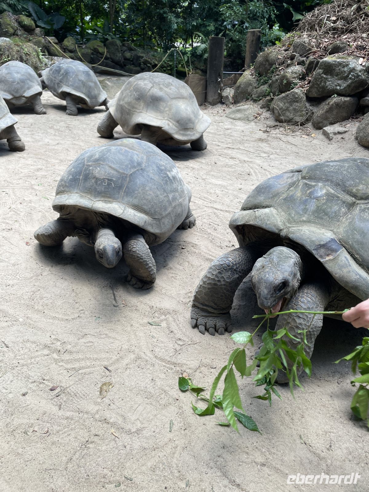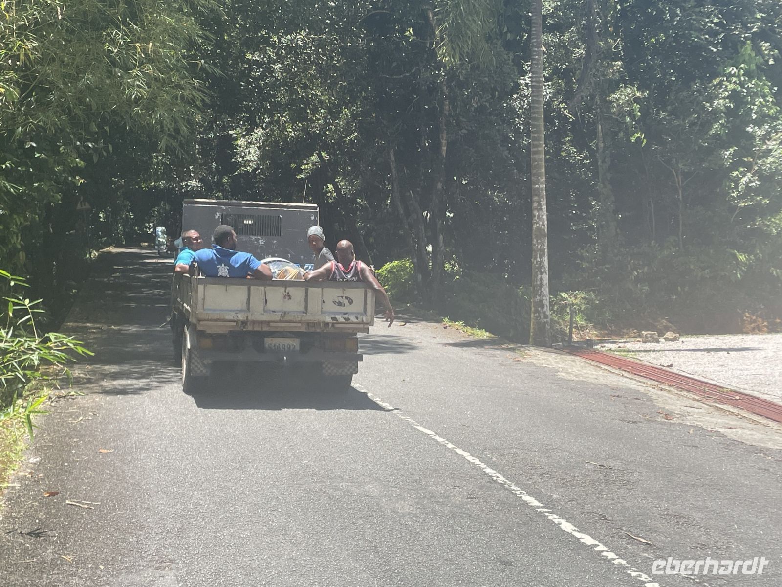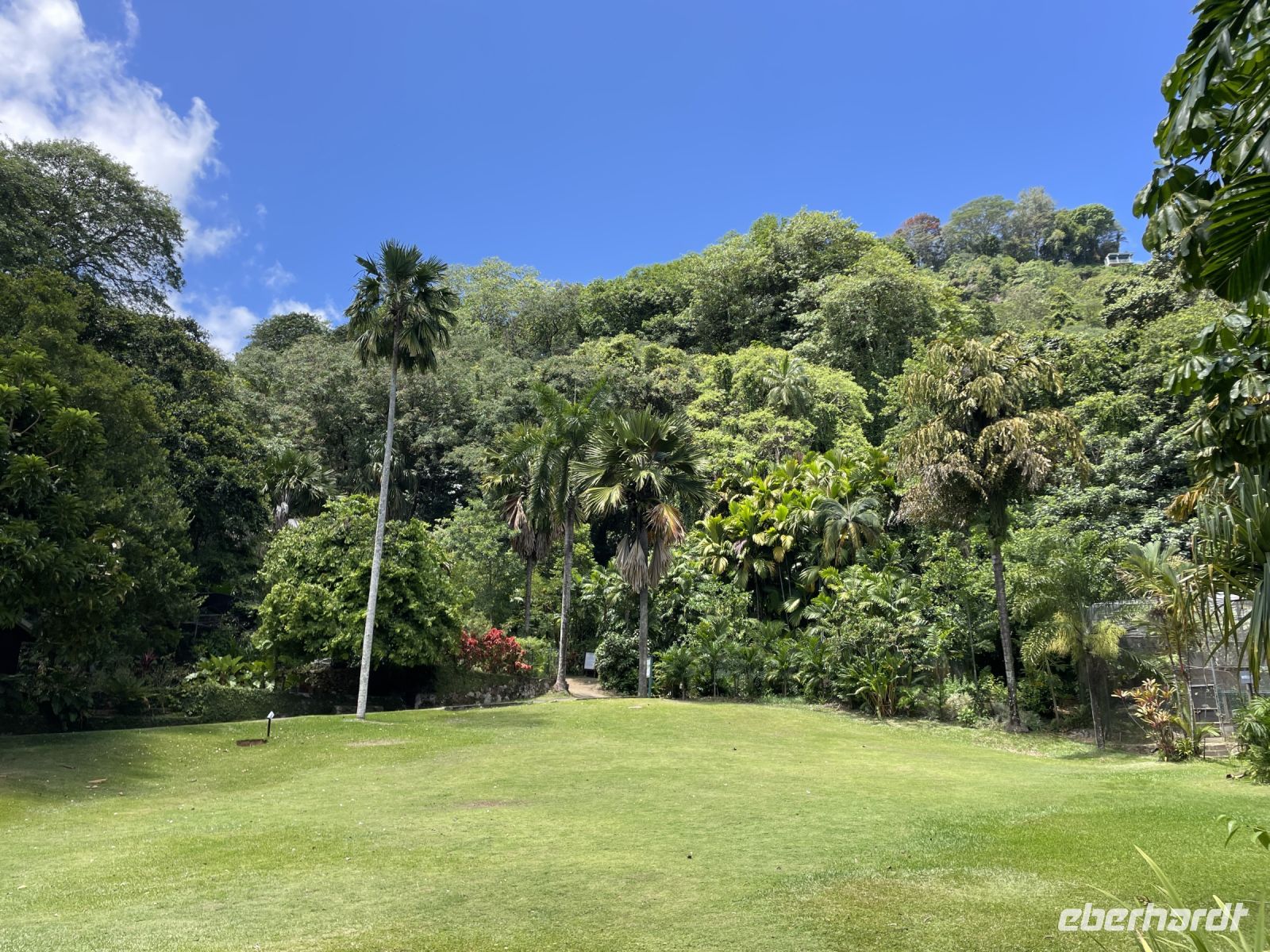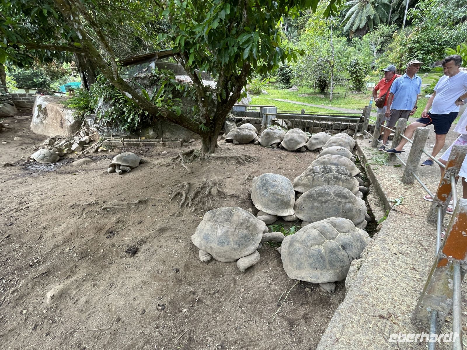 Unsere heutige Tour beginnt um 9:30 Uhr mit der Abfahrt zum Botanischen Garten, wo wir die eindrucksvolle Flora & Fauna bewundern dürfen. Bei einem ausführlichen Rundgang erklärt uns Cyril alles wissenswertes über die Natur der Seychellen. Zum Abschluss dürfen wir auch hier wieder die Riesenschildkröten streicheln und füttern. Anschließend fahren wir zur Mission Lodge und verbringen dort etwa eine Stunde. Reiseleiter Cyril gibt uns interessante Einblicke über die Vergangenheit der Seychellen. Die Mission Lodge war früher ab 1876 eine Farm und Internat für befreite Sklavenkinder. Von hier aus haben wir unterhalb des Gipfels vom Berg Sans Soucis eine tolle Aussicht über den nördlichen Teil von Mahé. Ideal für einen Drohnenflug um tolle Bilder & Videos von den Bergen einzufangen. :-) Weiter geht es wieder ins Tal hinab, wo wir nochmal einen kurzen Fotostopp am Big Ben in Victoria einlegen und bei einer Mittagspause in einem Restaurant die lokale Küche probieren.