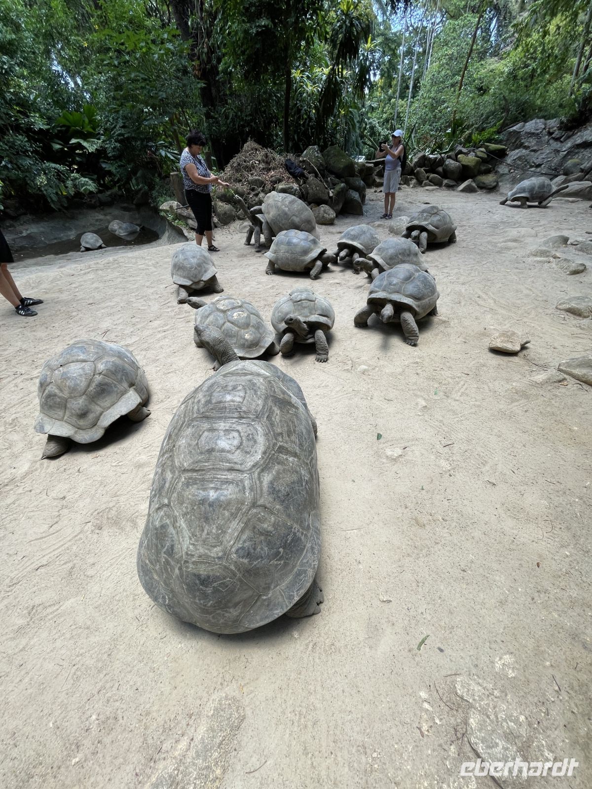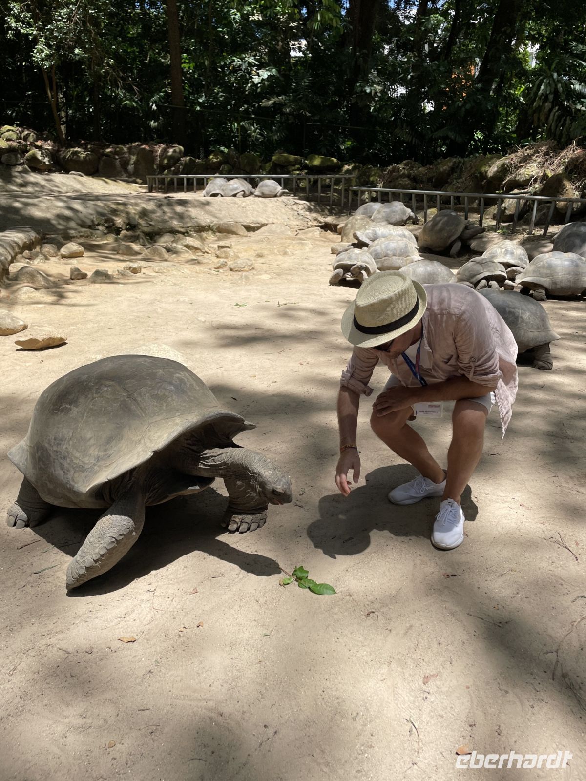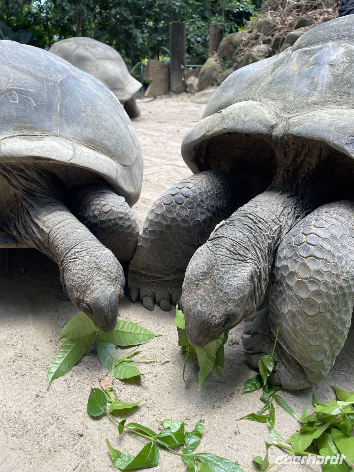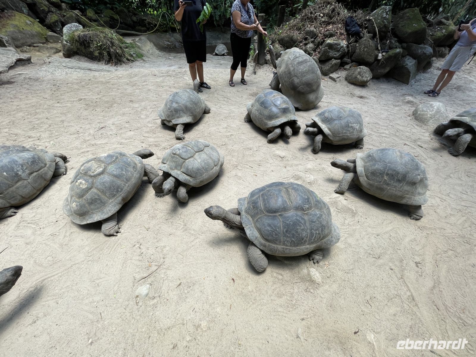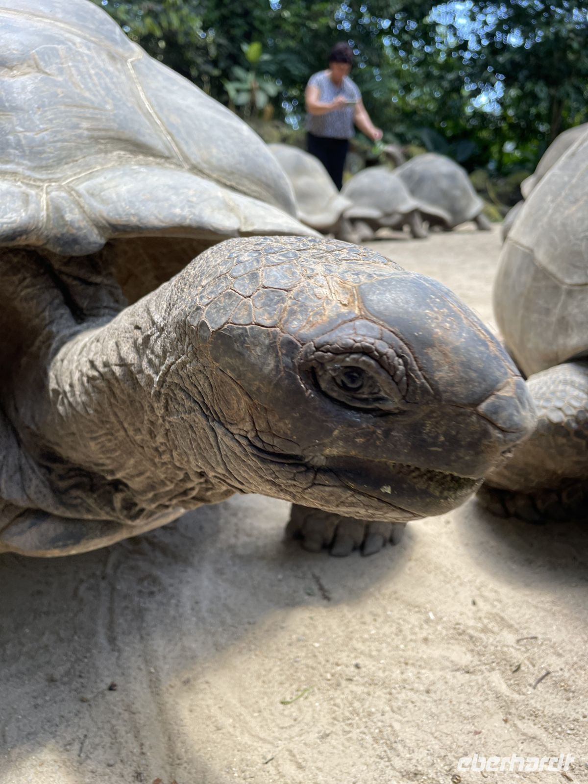 Unsere heutige Tour beginnt um 9:30 Uhr mit der Abfahrt zum Botanischen Garten, wo wir die eindrucksvolle Flora & Fauna bewundern dürfen. Bei einem ausführlichen Rundgang erklärt uns Cyril alles wissenswertes über die Natur der Seychellen. Zum Abschluss dürfen wir auch hier wieder die Riesenschildkröten streicheln und füttern. Anschließend fahren wir zur Mission Lodge und verbringen dort etwa eine Stunde. Reiseleiter Cyril gibt uns interessante Einblicke über die Vergangenheit der Seychellen. Die Mission Lodge war früher ab 1876 eine Farm und Internat für befreite Sklavenkinder. Von hier aus haben wir unterhalb des Gipfels vom Berg Sans Soucis eine tolle Aussicht über den nördlichen Teil von Mahé. Ideal für einen Drohnenflug um tolle Bilder & Videos von den Bergen einzufangen. :-) Weiter geht es wieder ins Tal hinab, wo wir nochmal einen kurzen Fotostopp am Big Ben in Victoria einlegen und bei einer Mittagspause in einem Restaurant die lokale Küche probieren.