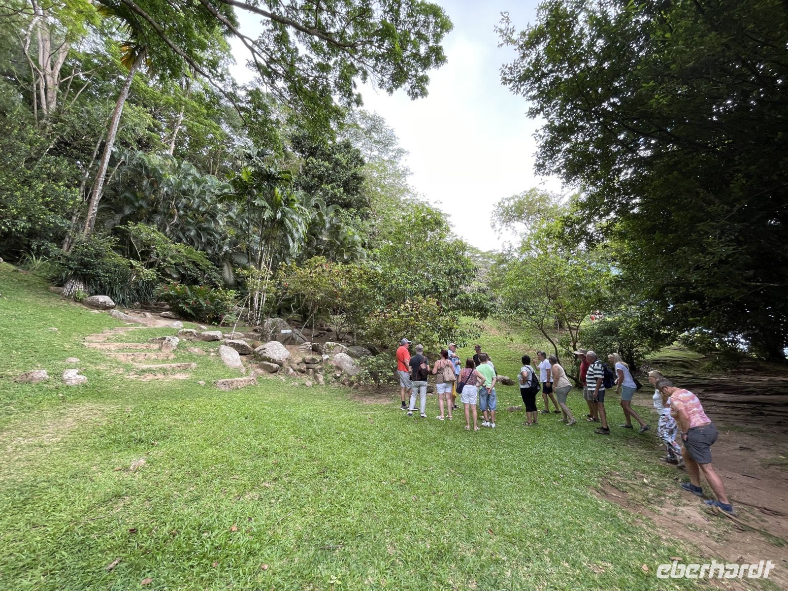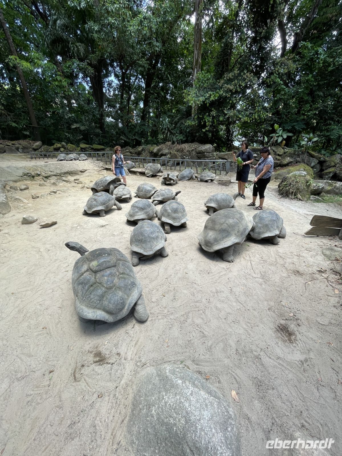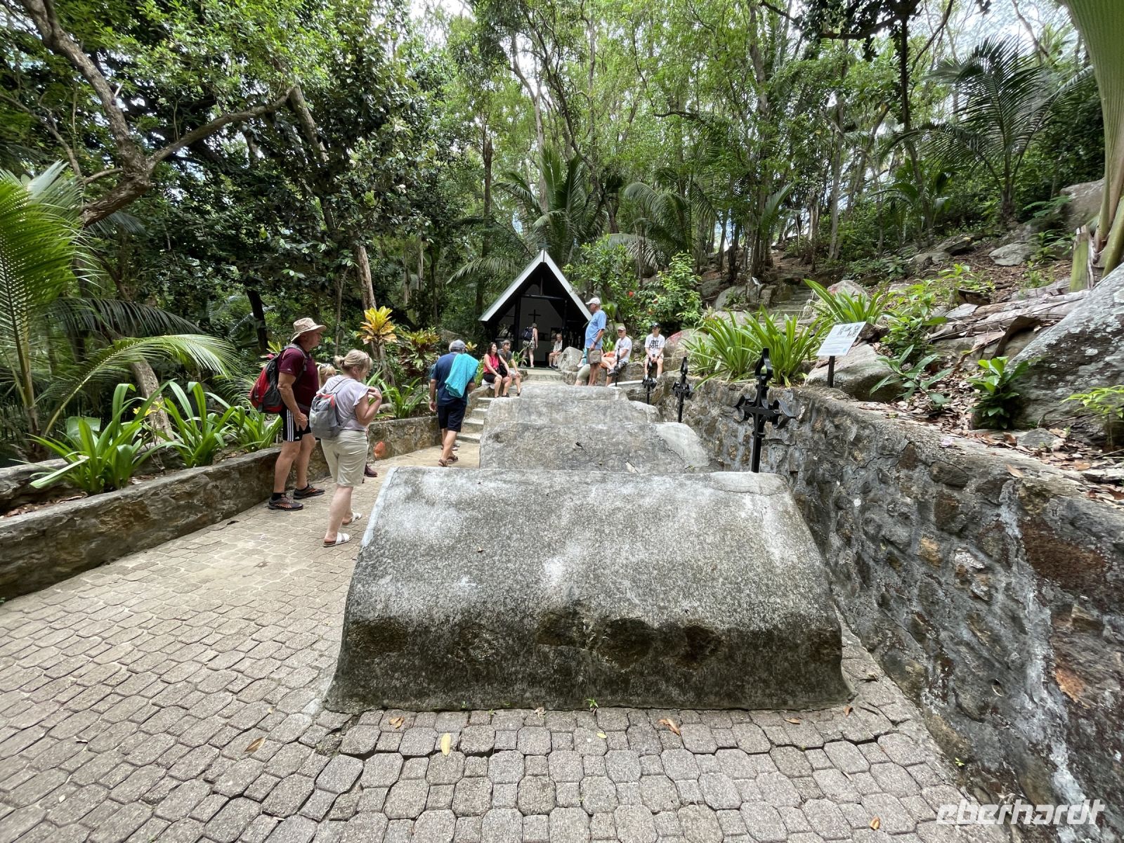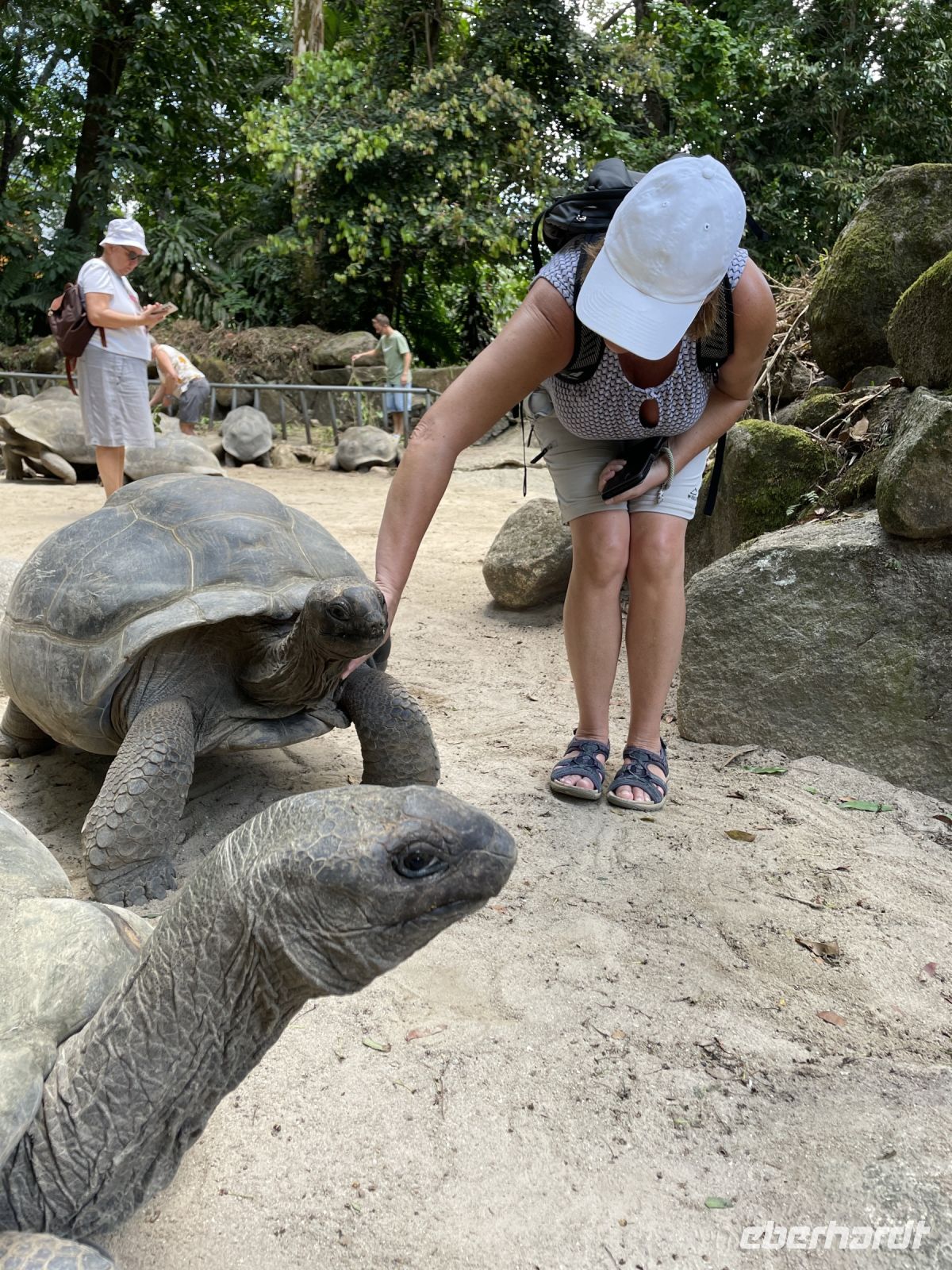 Unsere heutige Tour beginnt um 9:30 Uhr mit der Abfahrt zum Botanischen Garten, wo wir die eindrucksvolle Flora & Fauna bewundern dürfen. Bei einem ausführlichen Rundgang erklärt uns Cyril alles wissenswertes über die Natur der Seychellen. Zum Abschluss dürfen wir auch hier wieder die Riesenschildkröten streicheln und füttern. Anschließend fahren wir zur Mission Lodge und verbringen dort etwa eine Stunde. Reiseleiter Cyril gibt uns interessante Einblicke über die Vergangenheit der Seychellen. Die Mission Lodge war früher ab 1876 eine Farm und Internat für befreite Sklavenkinder. Von hier aus haben wir unterhalb des Gipfels vom Berg Sans Soucis eine tolle Aussicht über den nördlichen Teil von Mahé. Ideal für einen Drohnenflug um tolle Bilder & Videos von den Bergen einzufangen. :-) Weiter geht es wieder ins Tal hinab, wo wir nochmal einen kurzen Fotostopp am Big Ben in Victoria einlegen und bei einer Mittagspause in einem Restaurant die lokale Küche probieren.
