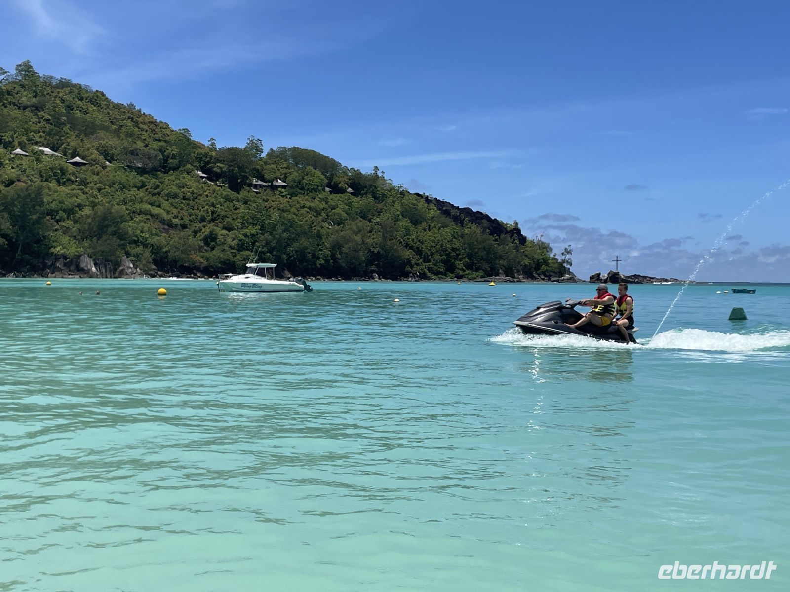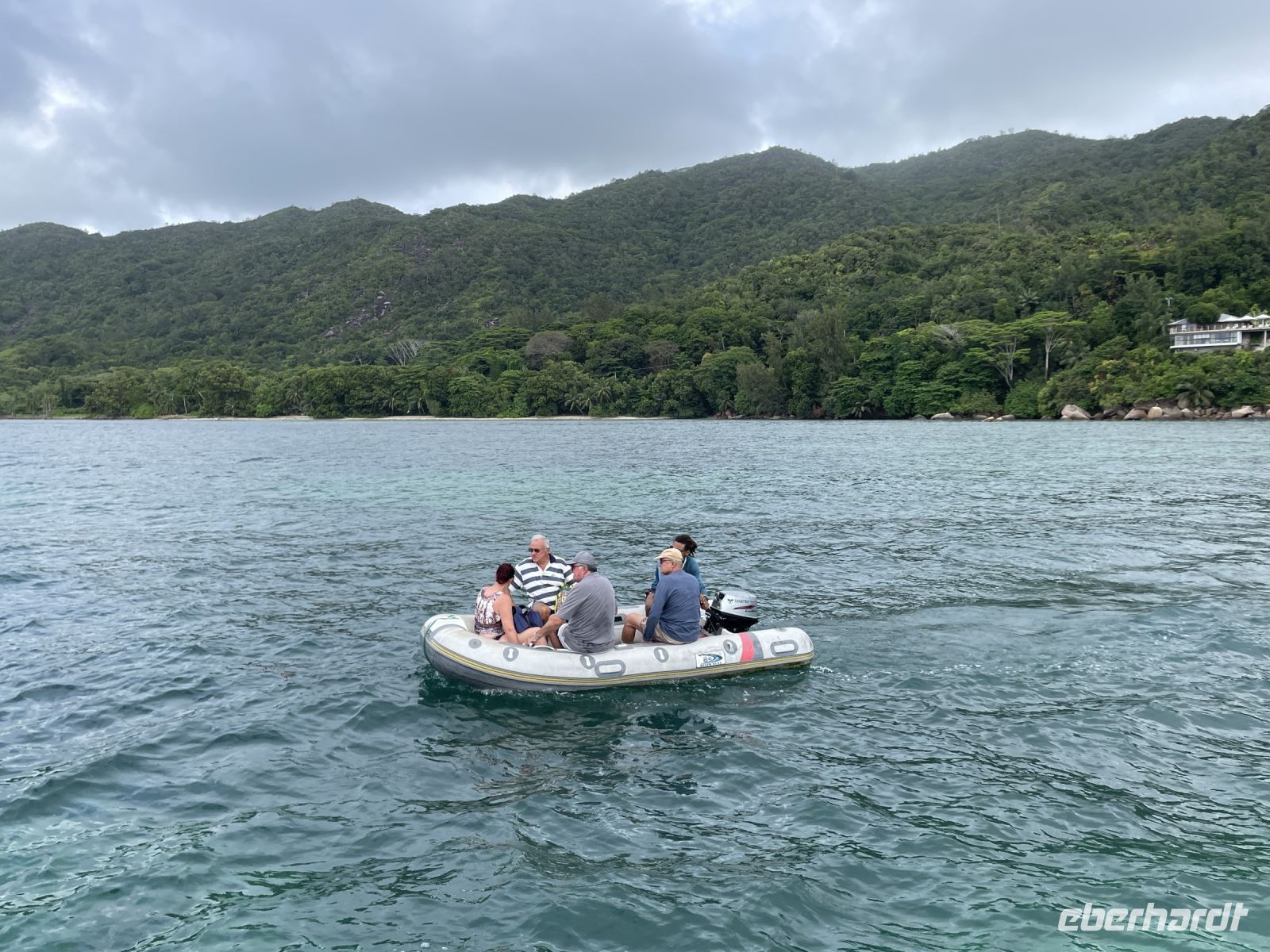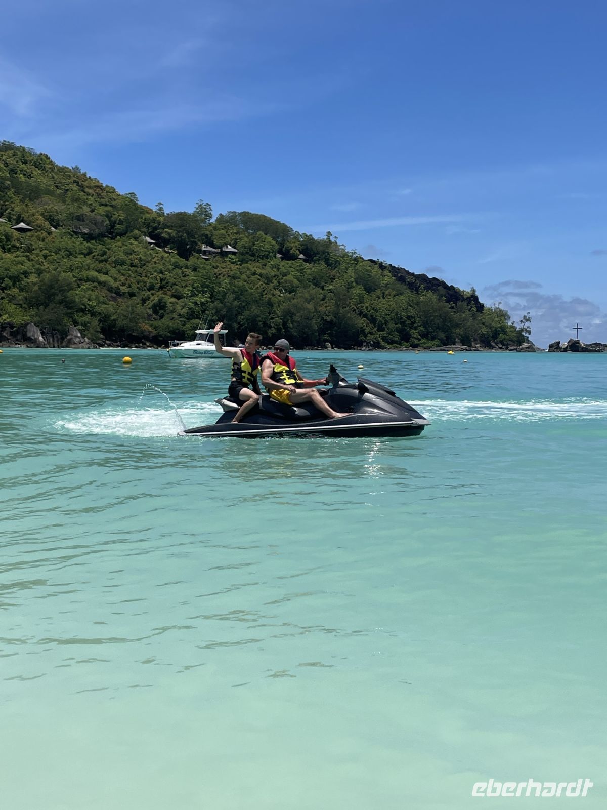 An unserem heutigen freien Tag, habe ich mir trotzdem eine kleine zusätzliche Tour in Richtung der Westküste für unsere Gruppe ausgedacht. Gemeinsam starten wir mit 12 Gästen und Reiseleiter Cyril ins Inselinnere, vorbei an alten Teeplantagen, wo Cyril interessante Details über den Teeanbau erzählt. Gegen 10:50Uhr erreichen wir die Westküste und den Strand Anse L' Islette, wo wir tolle Fotos knipsen. Der schönste Badestrand der Insel, liegt jedoch auf der anderen Seite - Port Launay Beach. Hier haben wir Zeit zum Baden und entspannen. Einige Gäste fahren mit mir sogar Jetski. Danach setzen wir unsere Fahrt entlang der Süd-Westküste fort, mit Fotostopps an landschaftlich reizvollen Plätzen wie u.a. Grand Anse. Nachmittags erreichen wir dann den Takamaka Beach, wo wir ein köstliches Mittagessen im gleichnamigen „Takamaka Beach Restaurant“ mit internationaler und kreolischer Küche genießen können. Am späten Nachmittag kehren wir zum Hotel zurück und um 19Uhr treffen wir uns wieder zur gewohnten Zeit im Hotelrestaurant. Wieder geht ein toller Tag zu Ende.