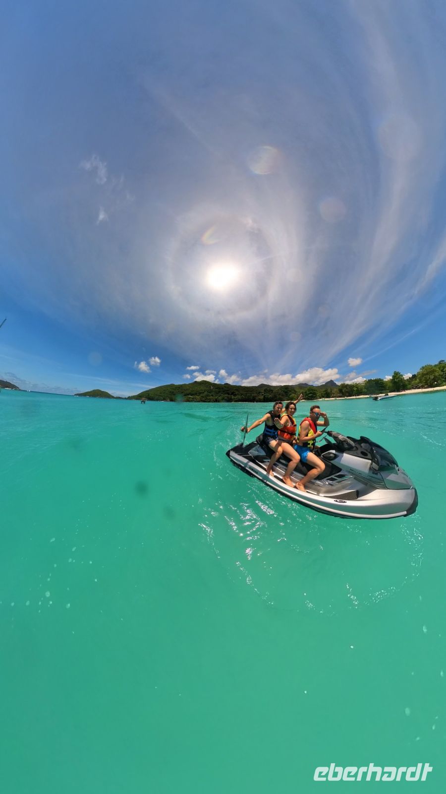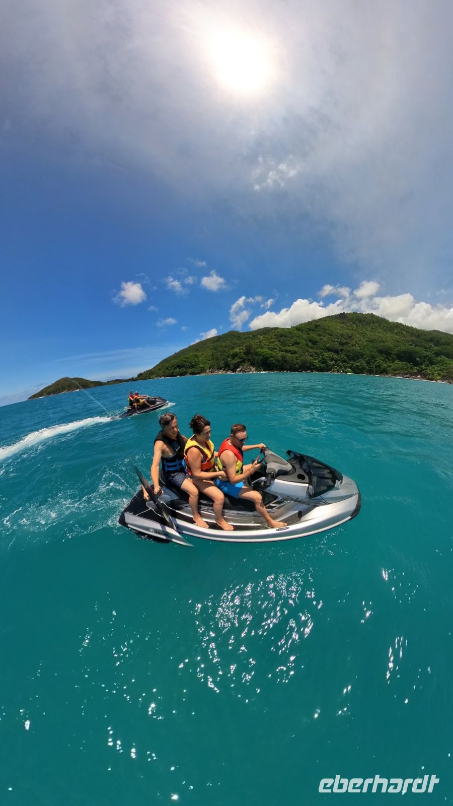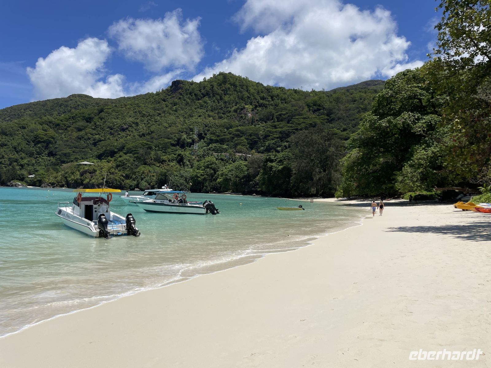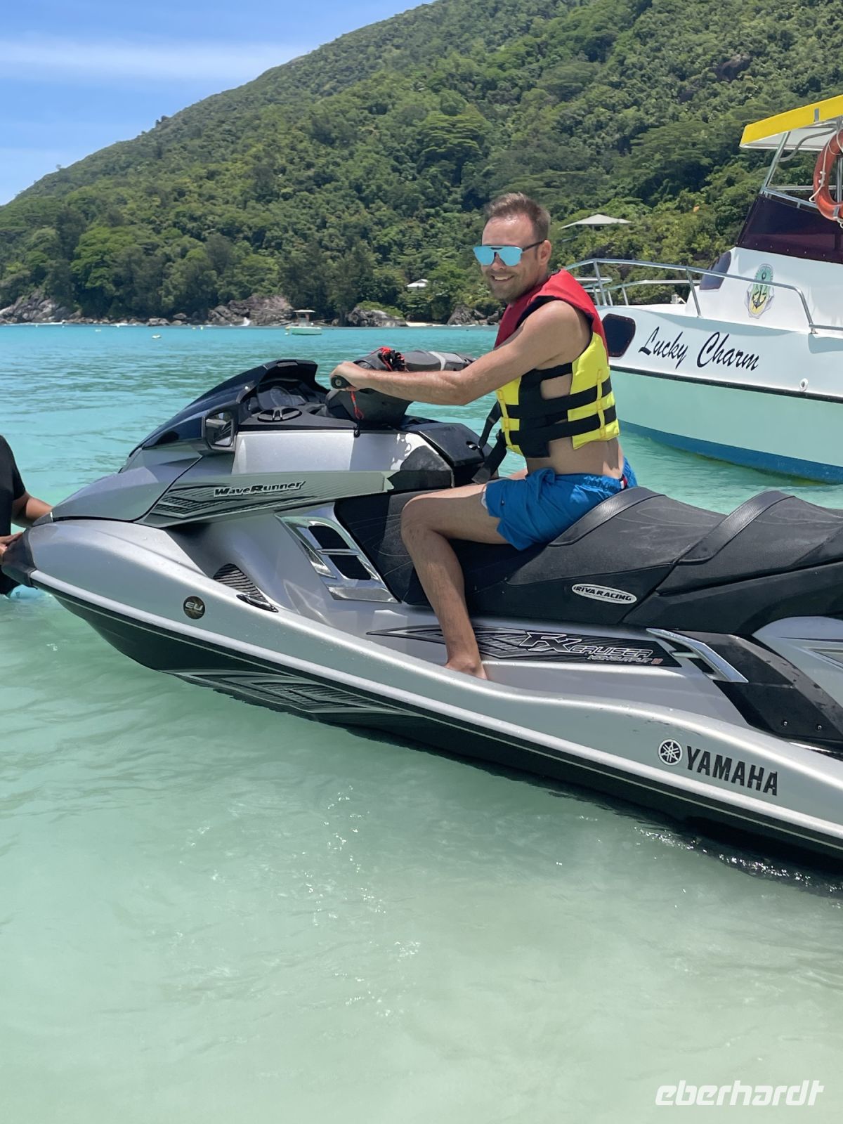 An unserem heutigen freien Tag, habe ich mir trotzdem eine kleine zusätzliche Tour in Richtung der Westküste für unsere Gruppe ausgedacht. Gemeinsam starten wir mit 12 Gästen und Reiseleiter Cyril ins Inselinnere, vorbei an alten Teeplantagen, wo Cyril interessante Details über den Teeanbau erzählt. Gegen 10:50Uhr erreichen wir die Westküste und den Strand Anse L' Islette, wo wir tolle Fotos knipsen. Der schönste Badestrand der Insel, liegt jedoch auf der anderen Seite - Port Launay Beach. Hier haben wir Zeit zum Baden und entspannen. Einige Gäste fahren mit mir sogar Jetski. Danach setzen wir unsere Fahrt entlang der Süd-Westküste fort, mit Fotostopps an landschaftlich reizvollen Plätzen wie u.a. Grand Anse. Nachmittags erreichen wir dann den Takamaka Beach, wo wir ein köstliches Mittagessen im gleichnamigen „Takamaka Beach Restaurant“ mit internationaler und kreolischer Küche genießen können. Am späten Nachmittag kehren wir zum Hotel zurück und um 19Uhr treffen wir uns wieder zur gewohnten Zeit im Hotelrestaurant. Wieder geht ein toller Tag zu Ende.