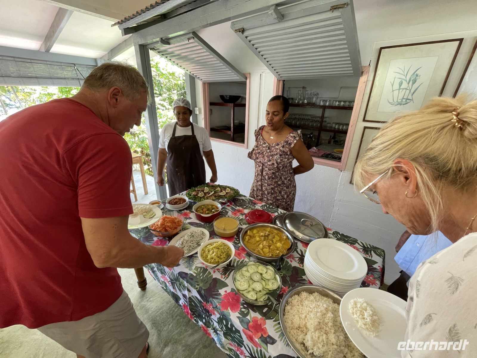 Den Nachmittag haben wir Freizeit, bevor wir um 19:00 Uhr gemeinsam zu Abend essen. Bei einem Takamaka-Rum auf Kosten von Eberhardt Travel, lassen wir den schönen Tag gemütlich ausklingen.