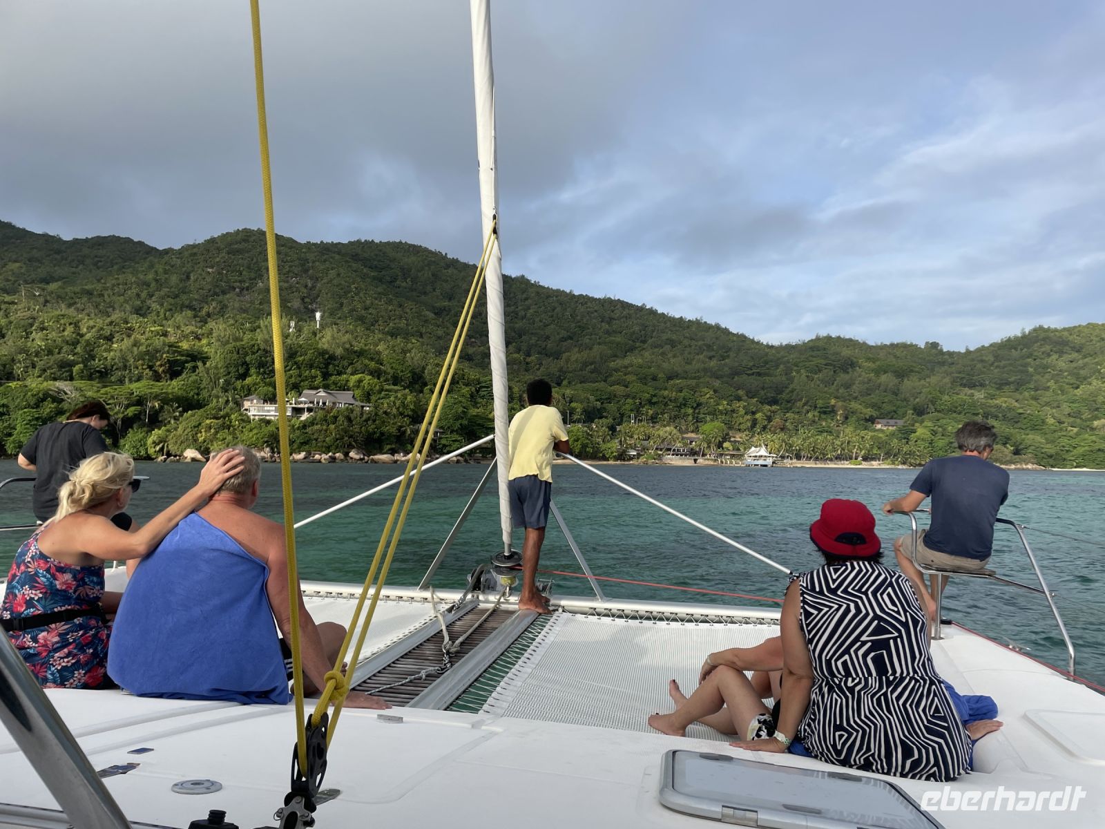 Unseren letzten freien Tag genießen wir ausgiebig am Pool. Da wir einige Zimmer bis 16Uhr behalten dürfen, haben alle nochmal vor der Abreise die Möglichkeit zum Duschen. Um 16:00 Uhr werden die Koffer abgeholt, und wir verabschieden uns von den vier Gästen, die den Verlängerungs-Aufenthalt gebucht haben. Außerdem bedanken wir uns gemeinsam bei unserem Reiseleiter Cyril und überreichen ihm ein Trinkgeld. Es war eine tolle Zeit mit ihm und wir hatten viel Spaß. Um 16:15 Uhr verladen wir die Koffer in zwei Vans und fahren zum Fährhafen von wo aus es nach Mahé geht. Leider haben wir auf der Rückfahrt sehr starken Wellengang, weshalb es einigen schlecht wird. Wir erreichen den Hafen von Mahé pünktlich um 18:30Uhr und kurze Zeit später den Flughafen. Nach dem Check-in und der Kofferabgabe, durchqueren wir die Pass- und Sicherheitskontrolle. Und kurze Zeit später heben wir 22:30Uhr in Richtung Deutschland ab.
