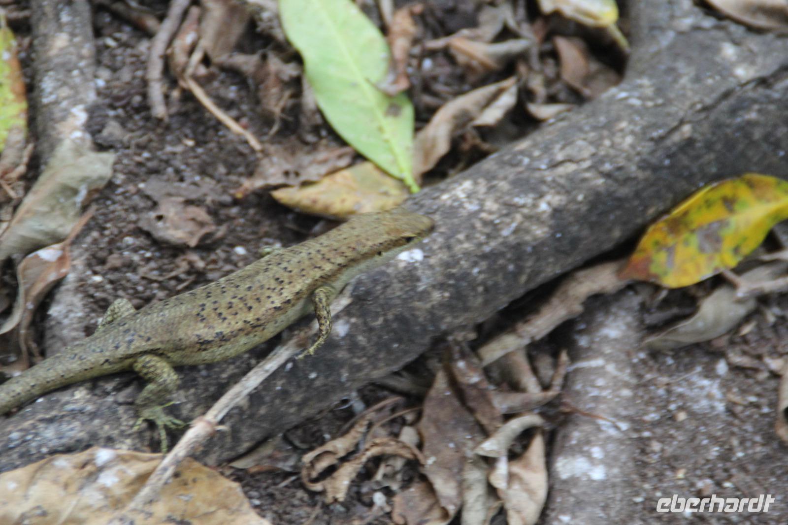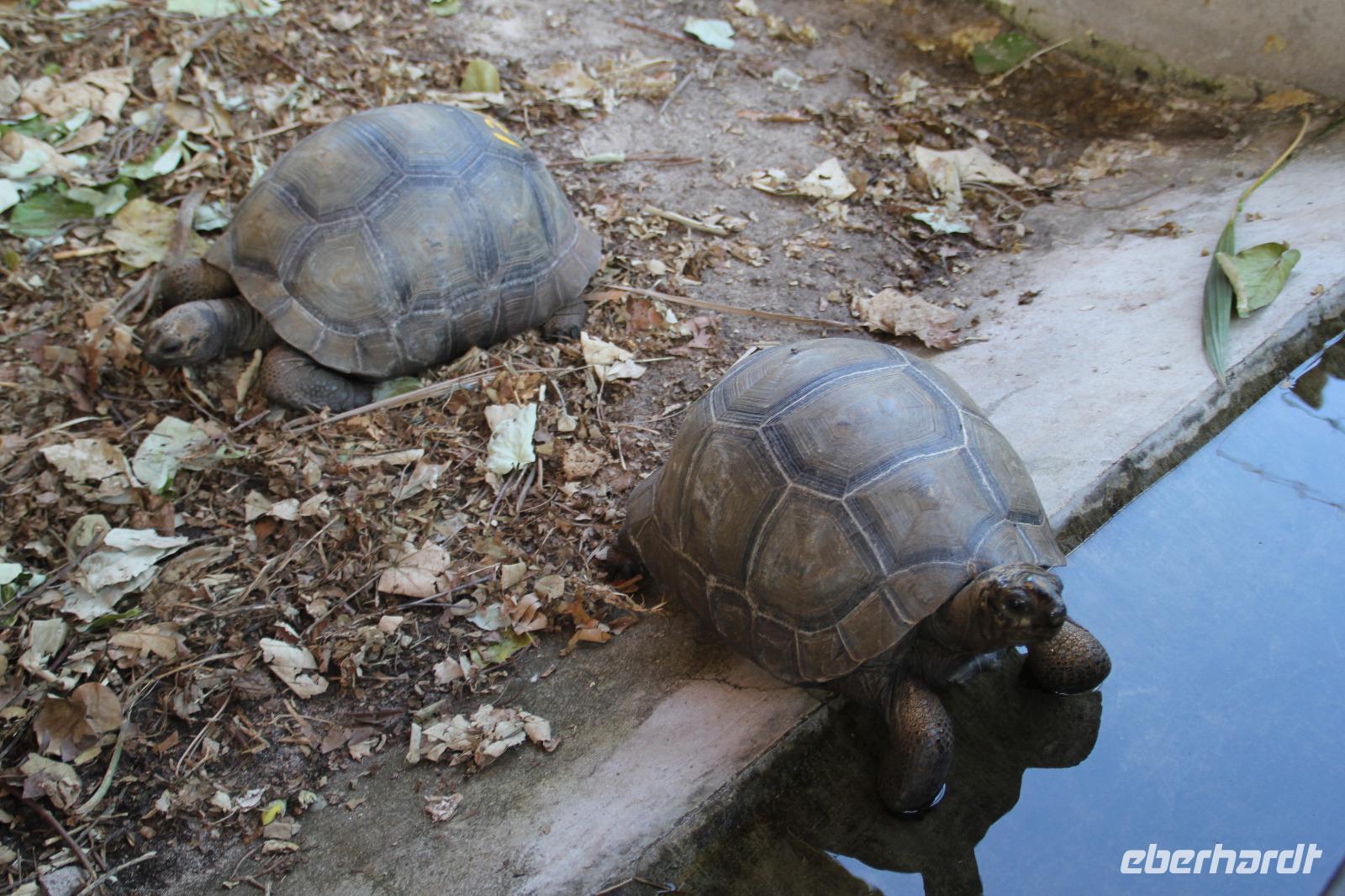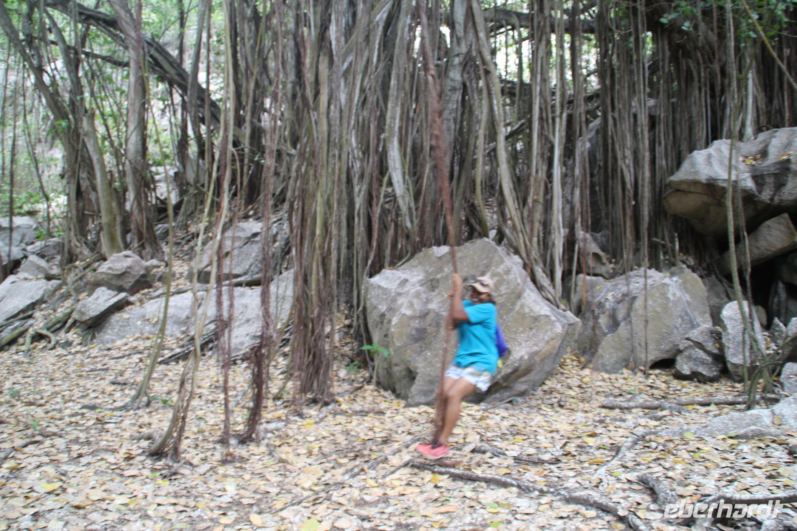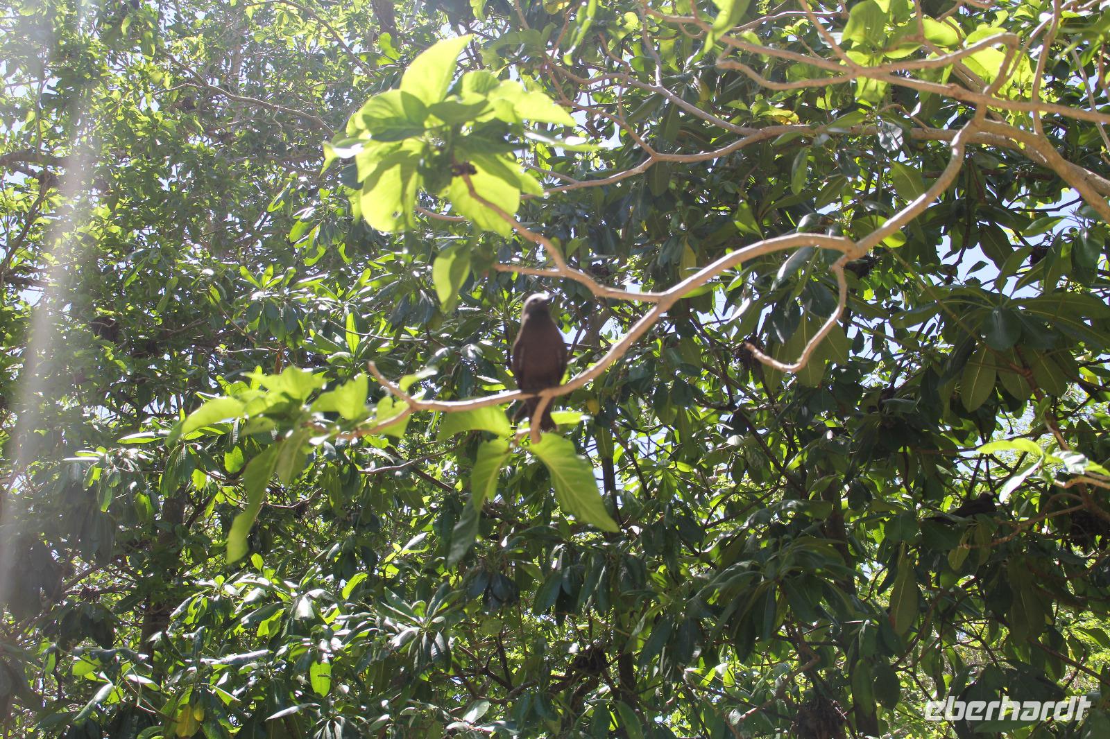 Während des Spaziergangs sahen wir u.a. erste große Landschildkröten, kleine flinke rote Vögel und Tauben. Nach etwas 20min. erreichten wir die Piratengräber der Insel, wo noch immer ein Geist sein Unwesen treibt. Danach spazierten wir den gleichen Weg zurück und genossen die restliche Zeit an dem kleinen Sandstrand der Insel.