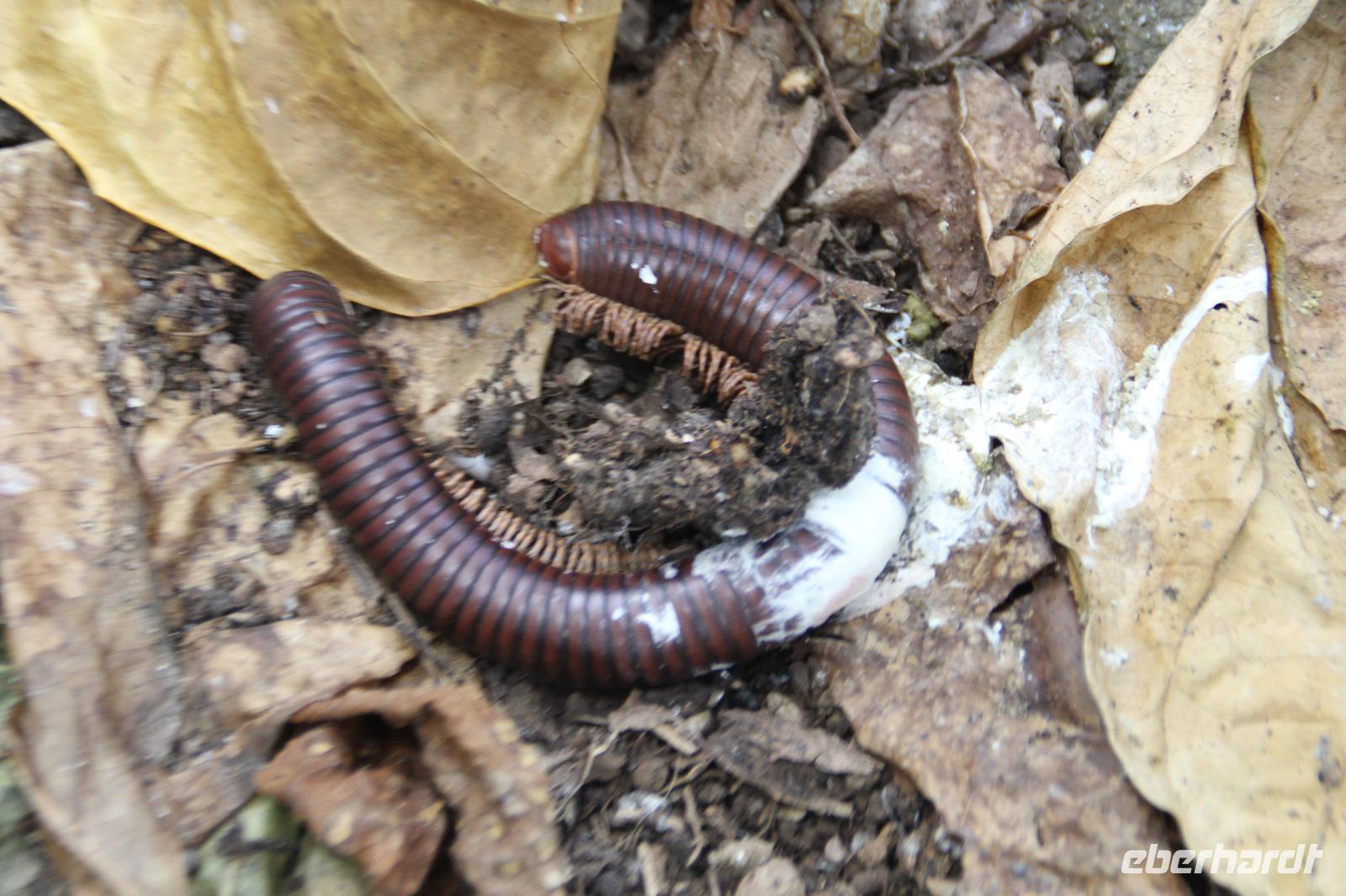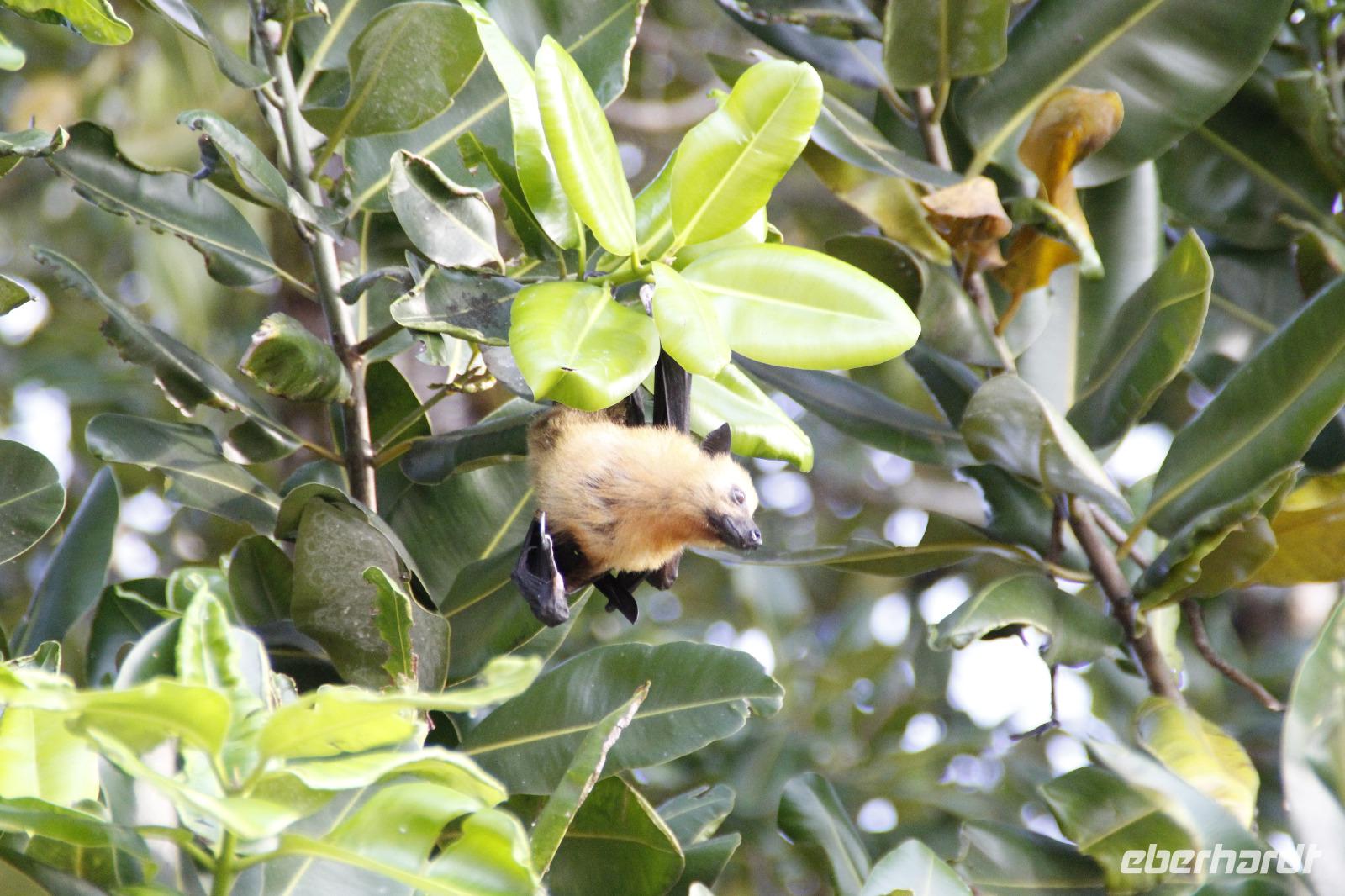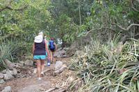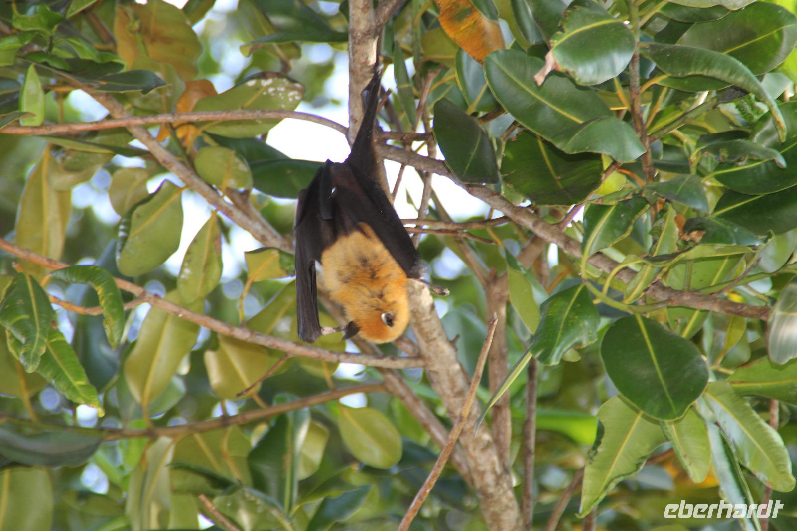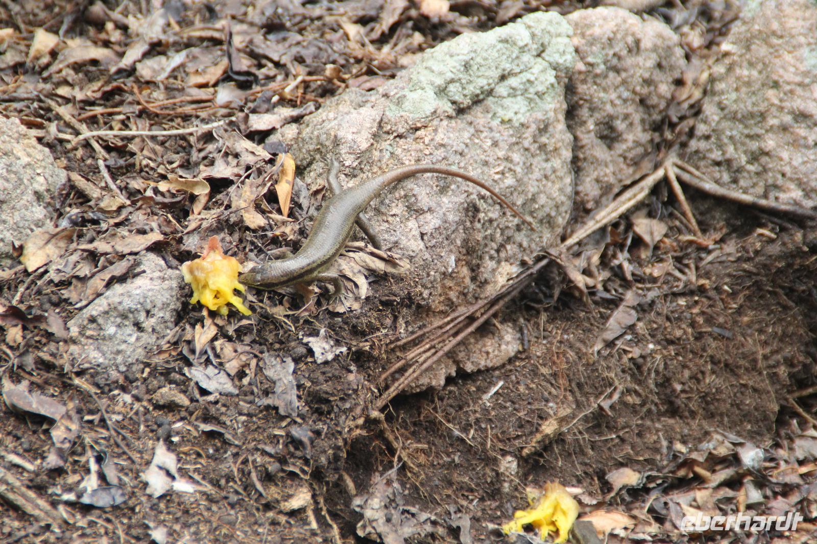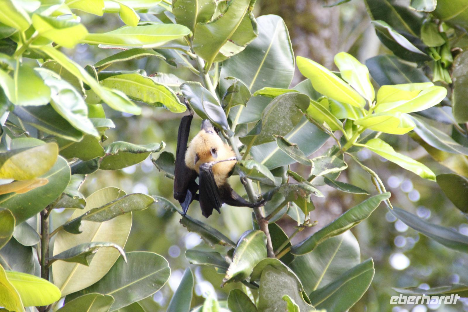 Während des Spaziergangs sahen wir u.a. erste große Landschildkröten, kleine flinke rote Vögel und Tauben. Nach etwas 20min. erreichten wir die Piratengräber der Insel, wo noch immer ein Geist sein Unwesen treibt. Danach spazierten wir den gleichen Weg zurück und genossen die restliche Zeit an dem kleinen Sandstrand der Insel.