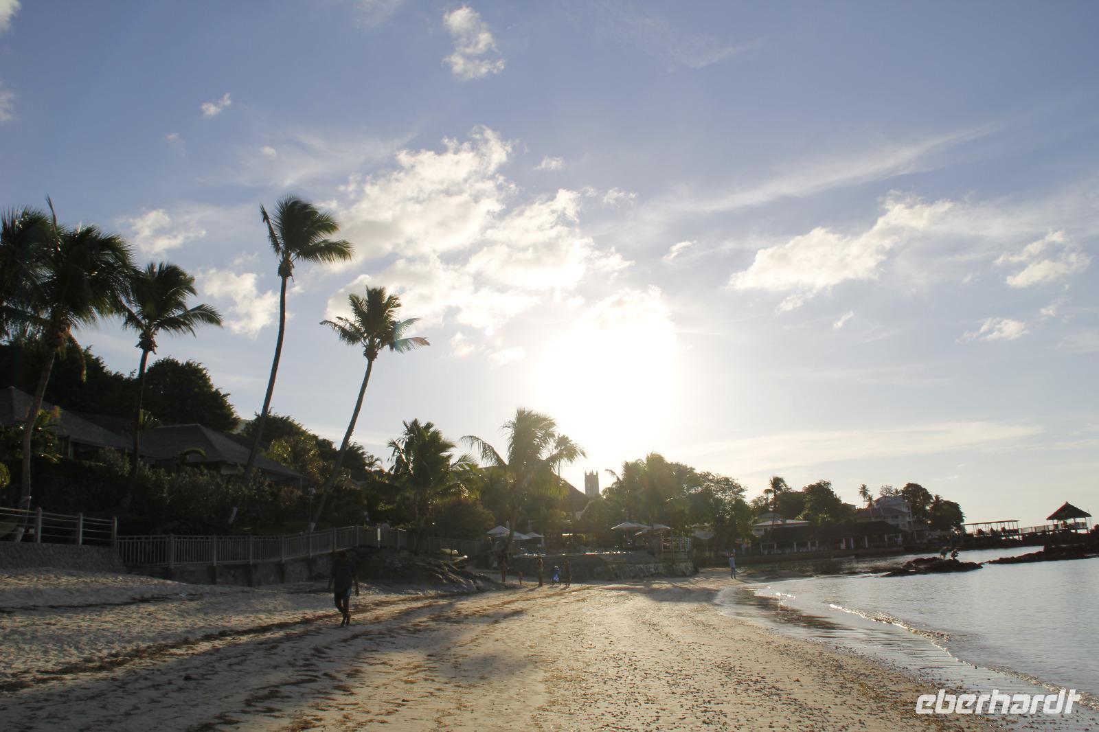 Das Hotel fasst nur wenige Gäste manchmal waren wir die einzigen, die den langen weißen Sandstrand benutzten. Also ein herrlicher Ort für ein paar erholsame Tage im Paradies. Wir wurden mit einem Cocktail begrüßt und bei einer kleinen Informationsveranstaltung zu den Möglichkeiten im Hotel aufgeklärt. So werden beispielsweise kostenfreie Schnorchel- und Wanderausflüge angeboten. Nachdem wir unsere Bungalows bezogen hatten, genossen wir unser gemeinsames Abendessen im Hotelrestaurant. Danach schliefen wir für unsere erste Nacht im New Emerald Cove Hotel und freuten uns auf die kommenden Tage im Paradies.