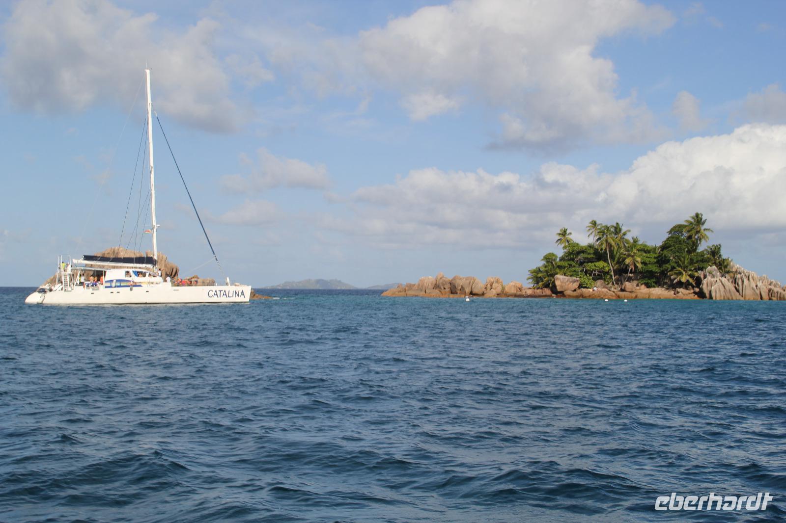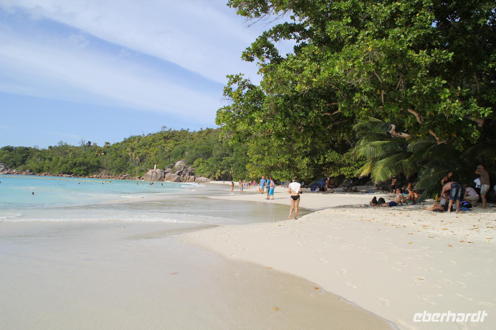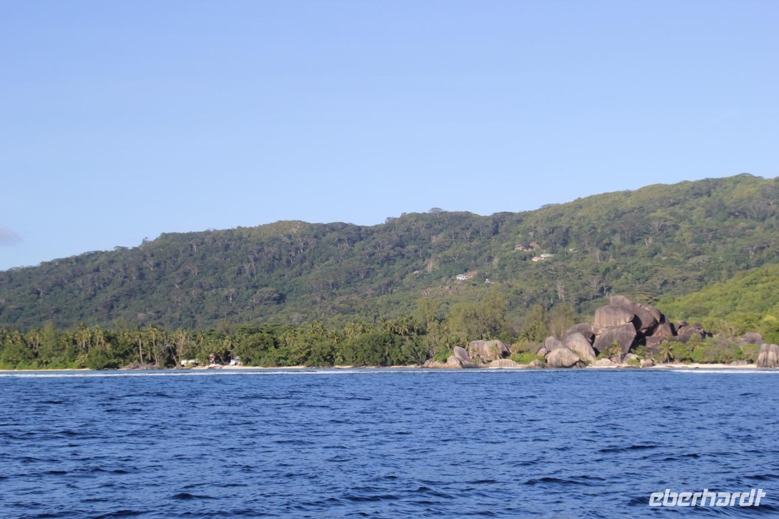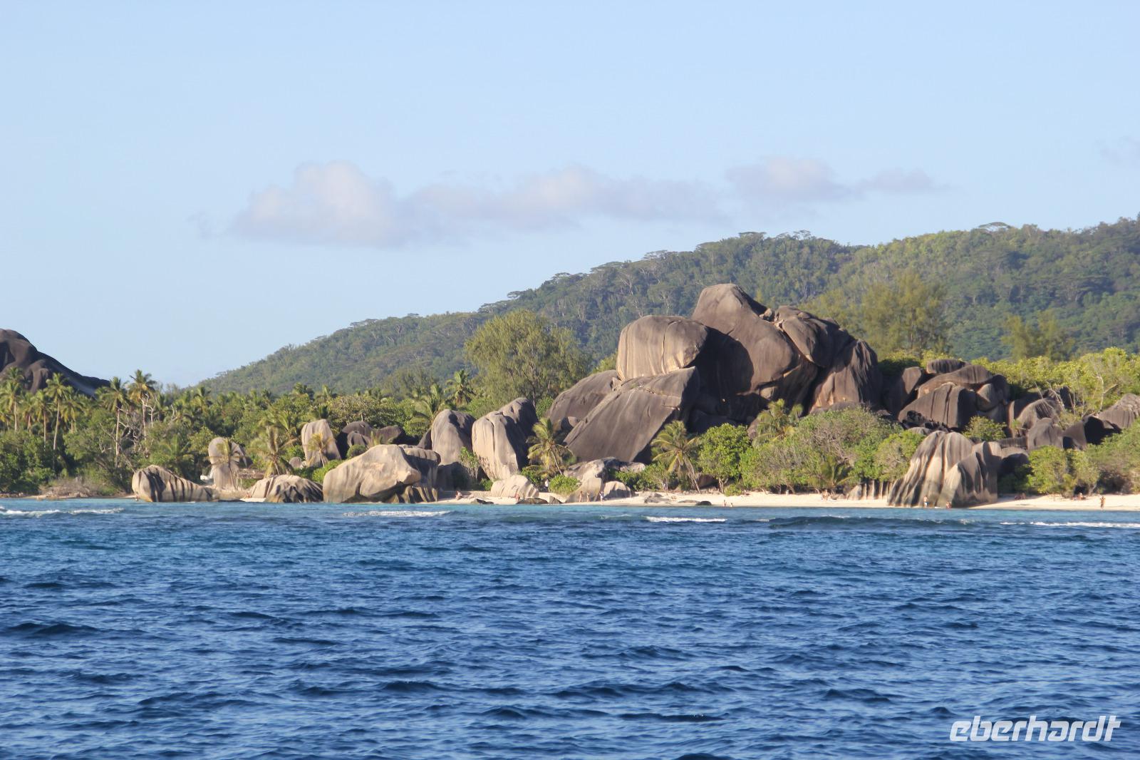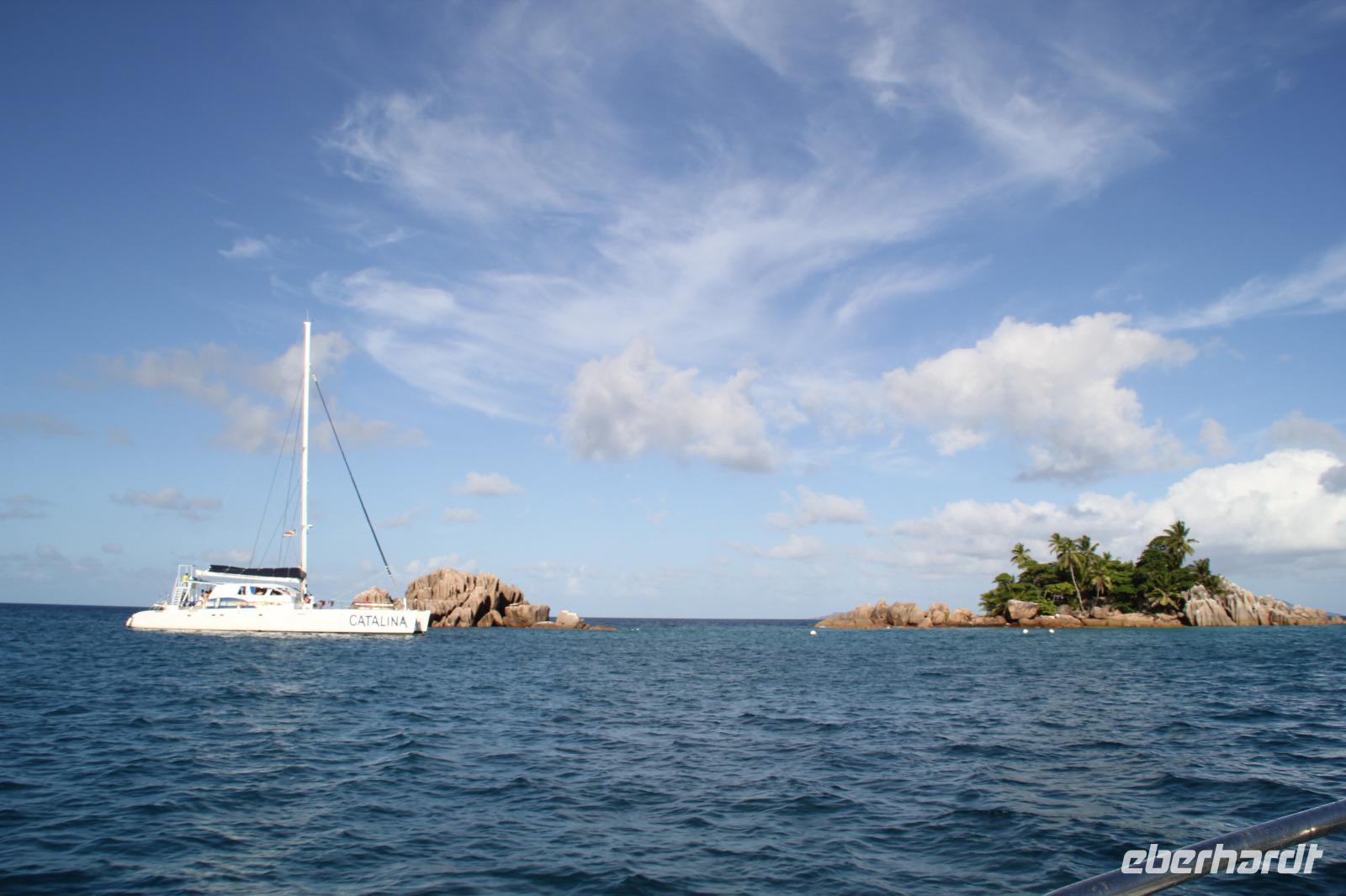 Laut National Geographic befinden sich auf der Insel allgemein mit die schönsten Strände der Welt. Die vom Wasser abgeschliffenen Granitfelsen am weißen Traumstrand vor türkisblauem Meer sprechen deutlich dafür. Hier hat man u.a. in den 90er Jahren eine Bacardi Werbung gedreht. Wir hatten ca. anderthalb Stunden Zeit zum Baden und relaxen, bevor wir am Nachmittag wieder unseren Katamaran bestiegen und noch einmal um die ganze Insel fuhren. Zuvor kauften wir noch ein paar Souvenirs im Zentrum der Insel, wo es auch Banken und eine Post gibt. Kurze Zeit später fuhren wir für ca. 45min. einmal um die ganze Insel herum. Zum Sonnenuntergang erreichten wir wieder die Insel Praslin und unser Hotel. Wieder einmal war es ein wunderschöner Tag im Paradies.