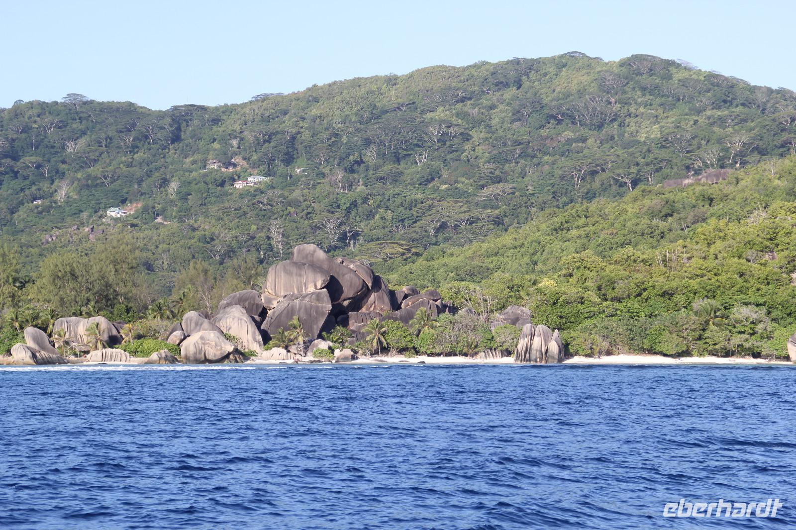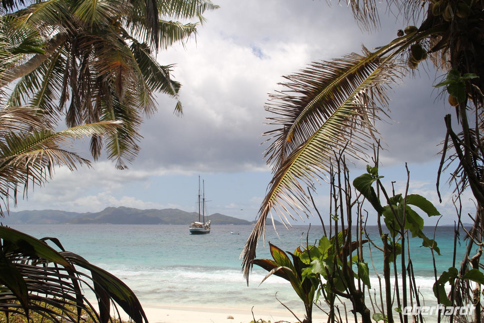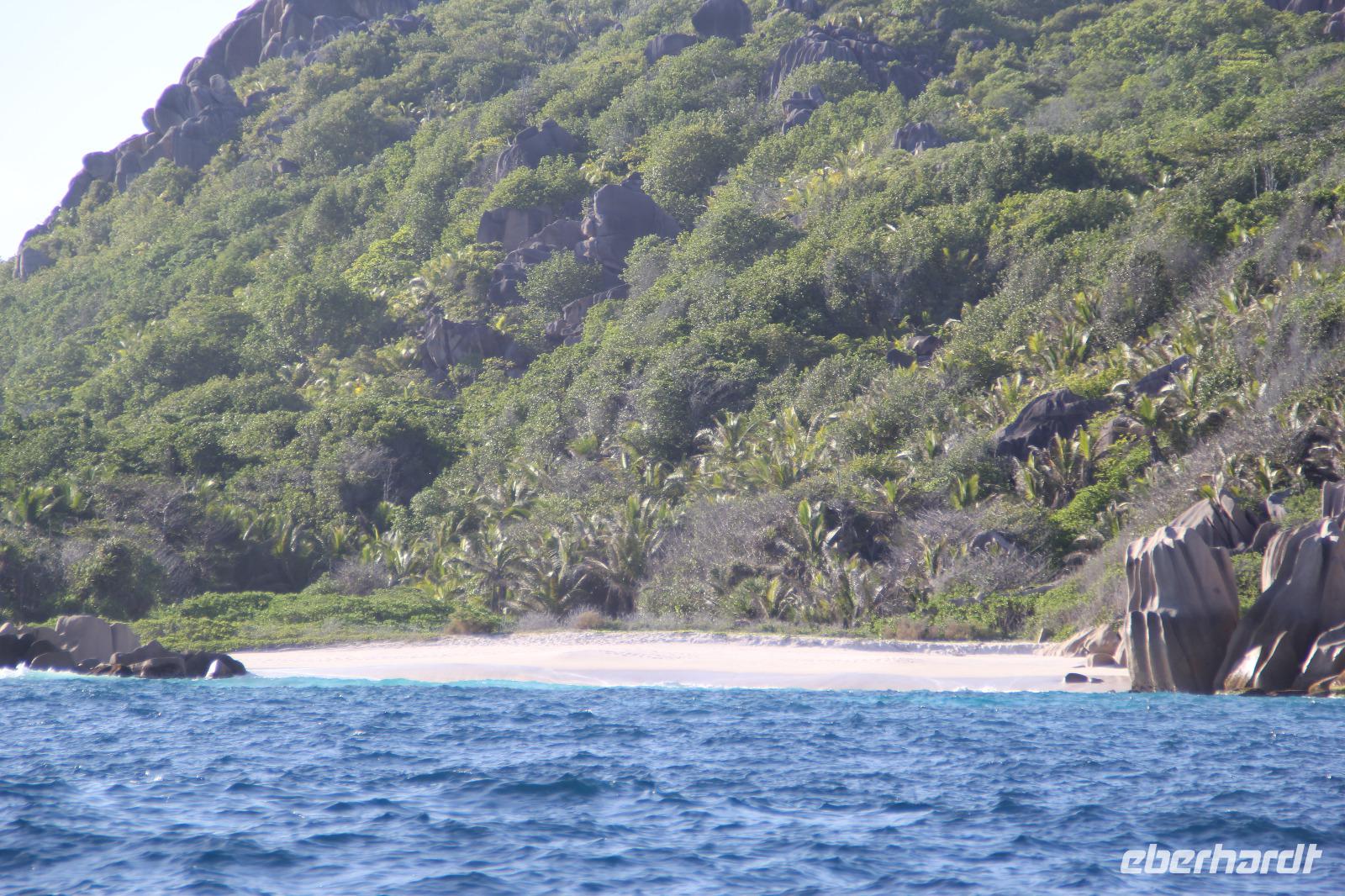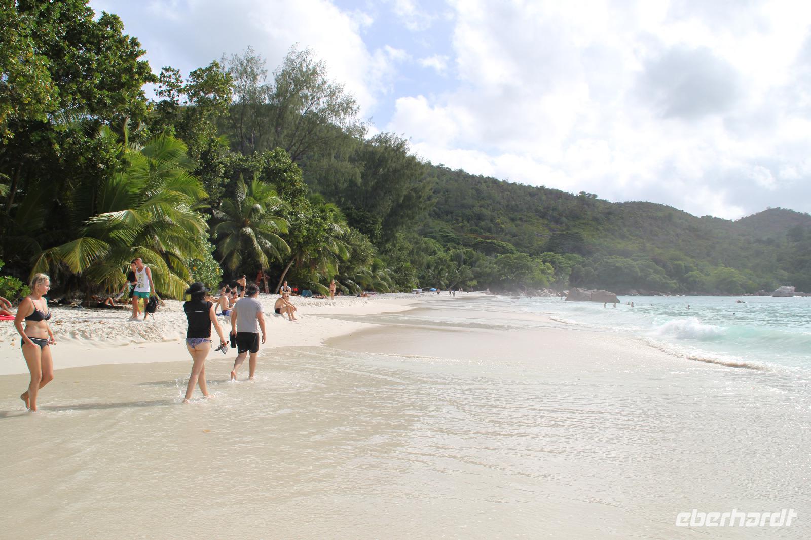 Laut National Geographic befinden sich auf der Insel allgemein mit die schönsten Strände der Welt. Die vom Wasser abgeschliffenen Granitfelsen am weißen Traumstrand vor türkisblauem Meer sprechen deutlich dafür. Hier hat man u.a. in den 90er Jahren eine Bacardi Werbung gedreht. Wir hatten ca. anderthalb Stunden Zeit zum Baden und relaxen, bevor wir am Nachmittag wieder unseren Katamaran bestiegen und noch einmal um die ganze Insel fuhren. Zuvor kauften wir noch ein paar Souvenirs im Zentrum der Insel, wo es auch Banken und eine Post gibt. Kurze Zeit später fuhren wir für ca. 45min. einmal um die ganze Insel herum. Zum Sonnenuntergang erreichten wir wieder die Insel Praslin und unser Hotel. Wieder einmal war es ein wunderschöner Tag im Paradies.