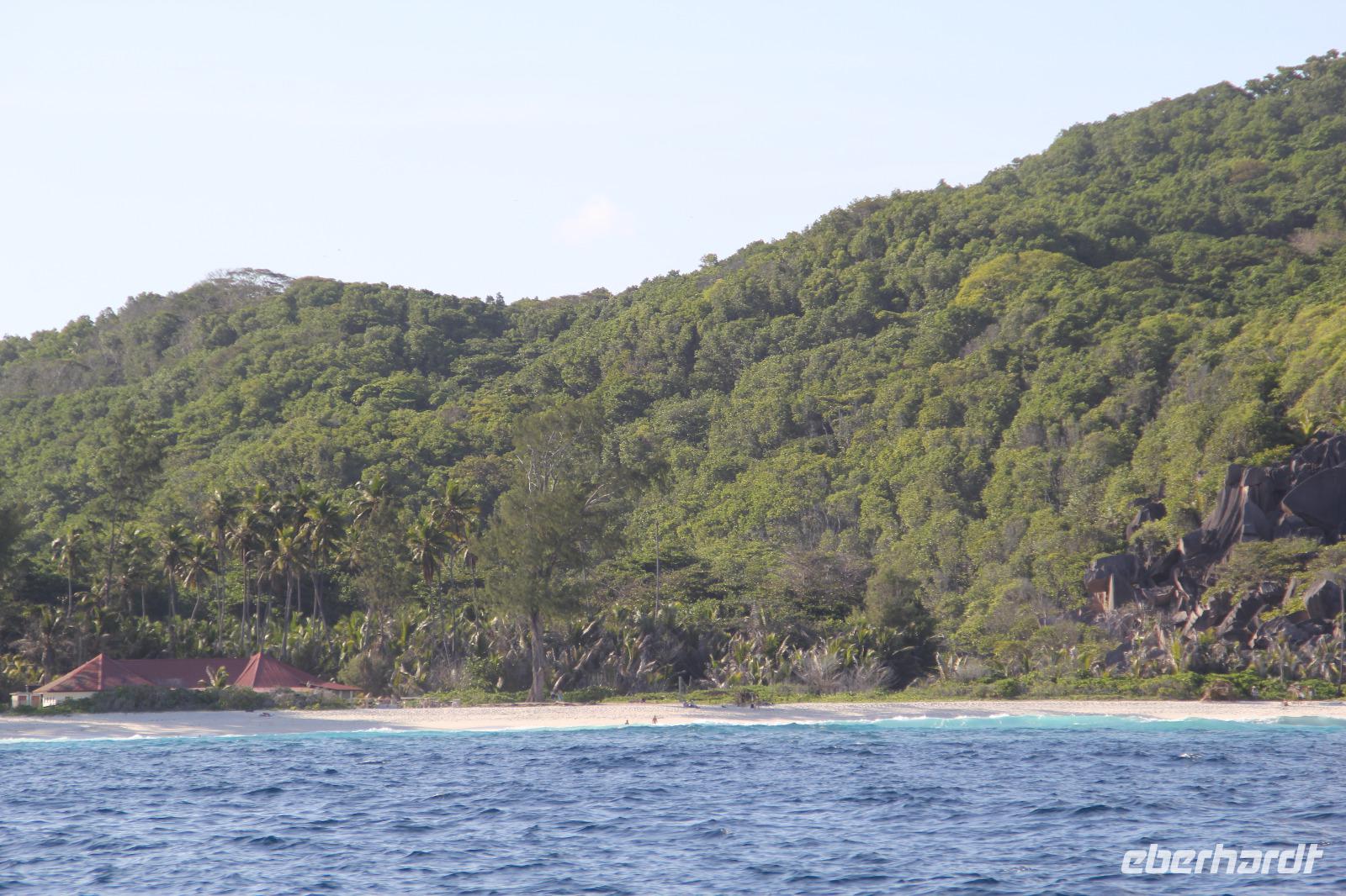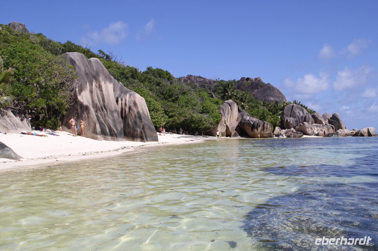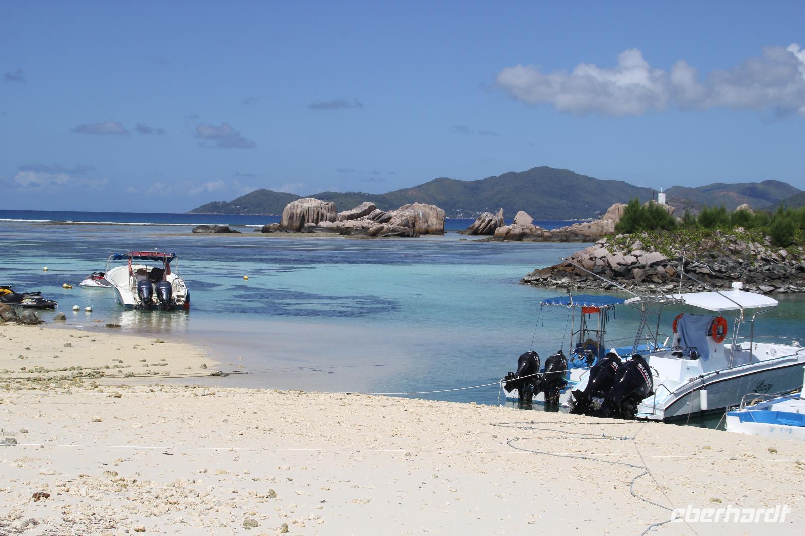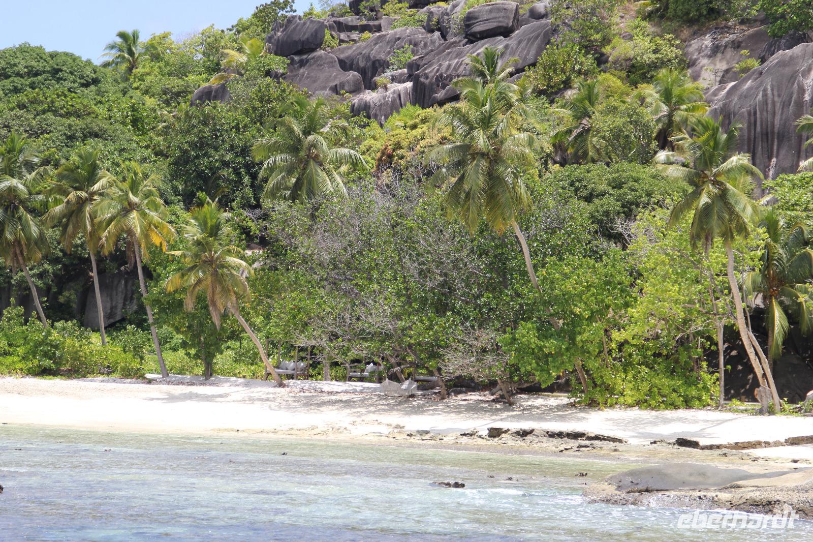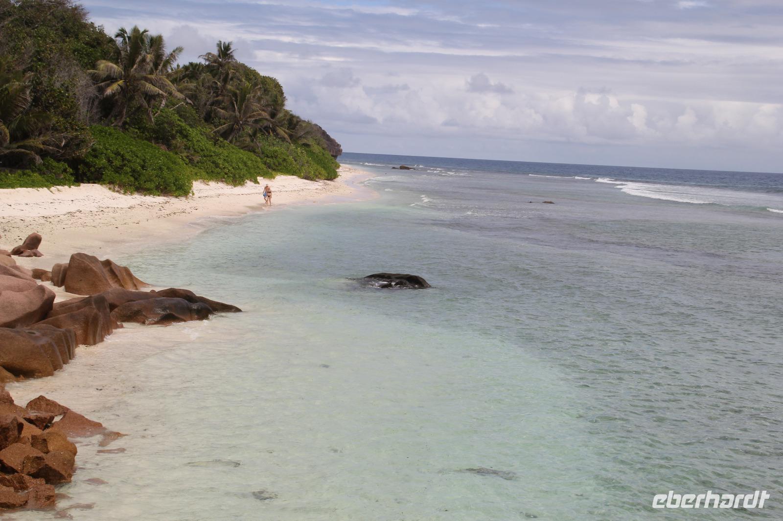 Laut National Geographic befinden sich auf der Insel allgemein mit die schönsten Strände der Welt. Die vom Wasser abgeschliffenen Granitfelsen am weißen Traumstrand vor türkisblauem Meer sprechen deutlich dafür. Hier hat man u.a. in den 90er Jahren eine Bacardi Werbung gedreht. Wir hatten ca. anderthalb Stunden Zeit zum Baden und relaxen, bevor wir am Nachmittag wieder unseren Katamaran bestiegen und noch einmal um die ganze Insel fuhren. Zuvor kauften wir noch ein paar Souvenirs im Zentrum der Insel, wo es auch Banken und eine Post gibt. Kurze Zeit später fuhren wir für ca. 45min. einmal um die ganze Insel herum. Zum Sonnenuntergang erreichten wir wieder die Insel Praslin und unser Hotel. Wieder einmal war es ein wunderschöner Tag im Paradies.
