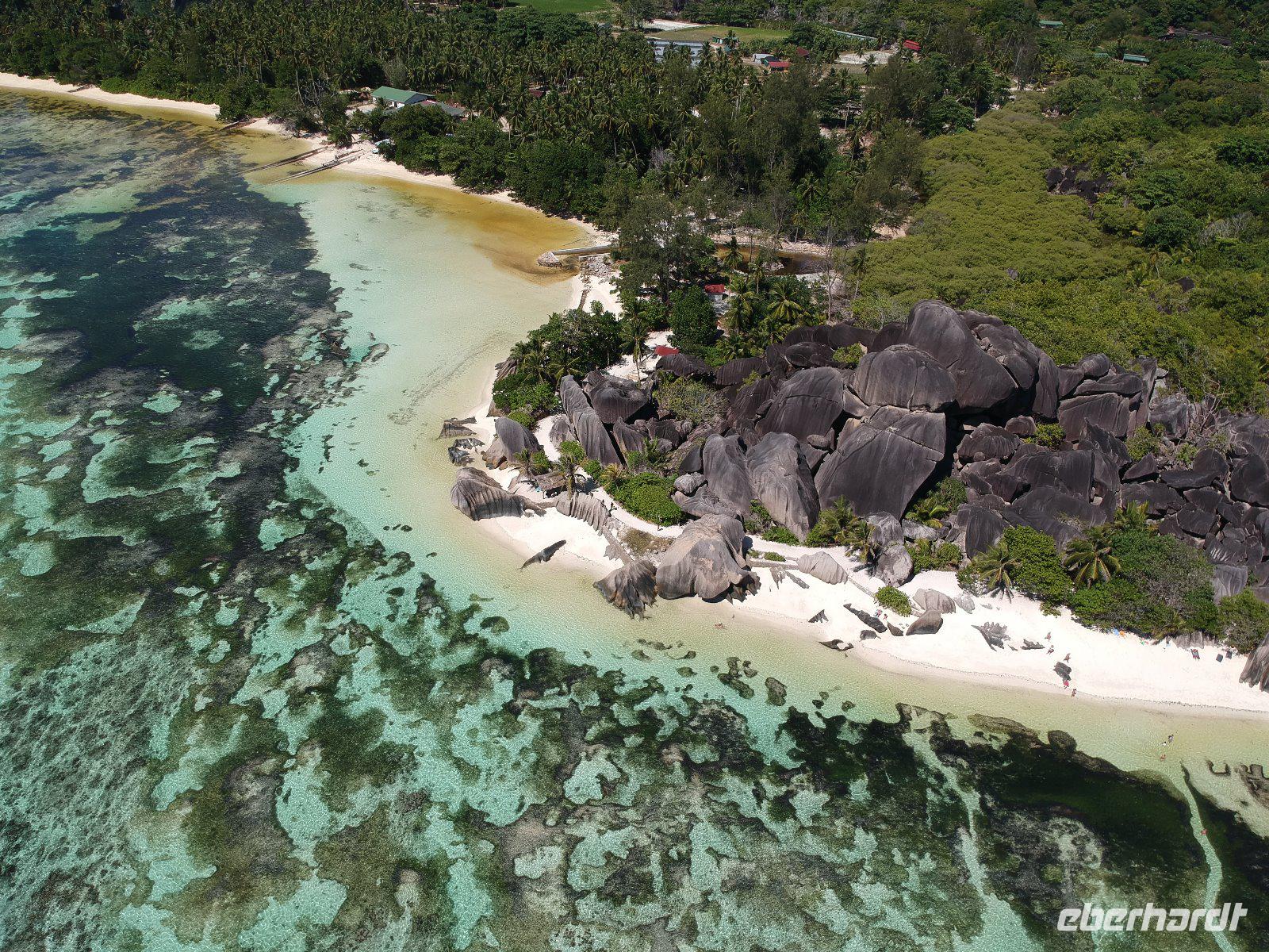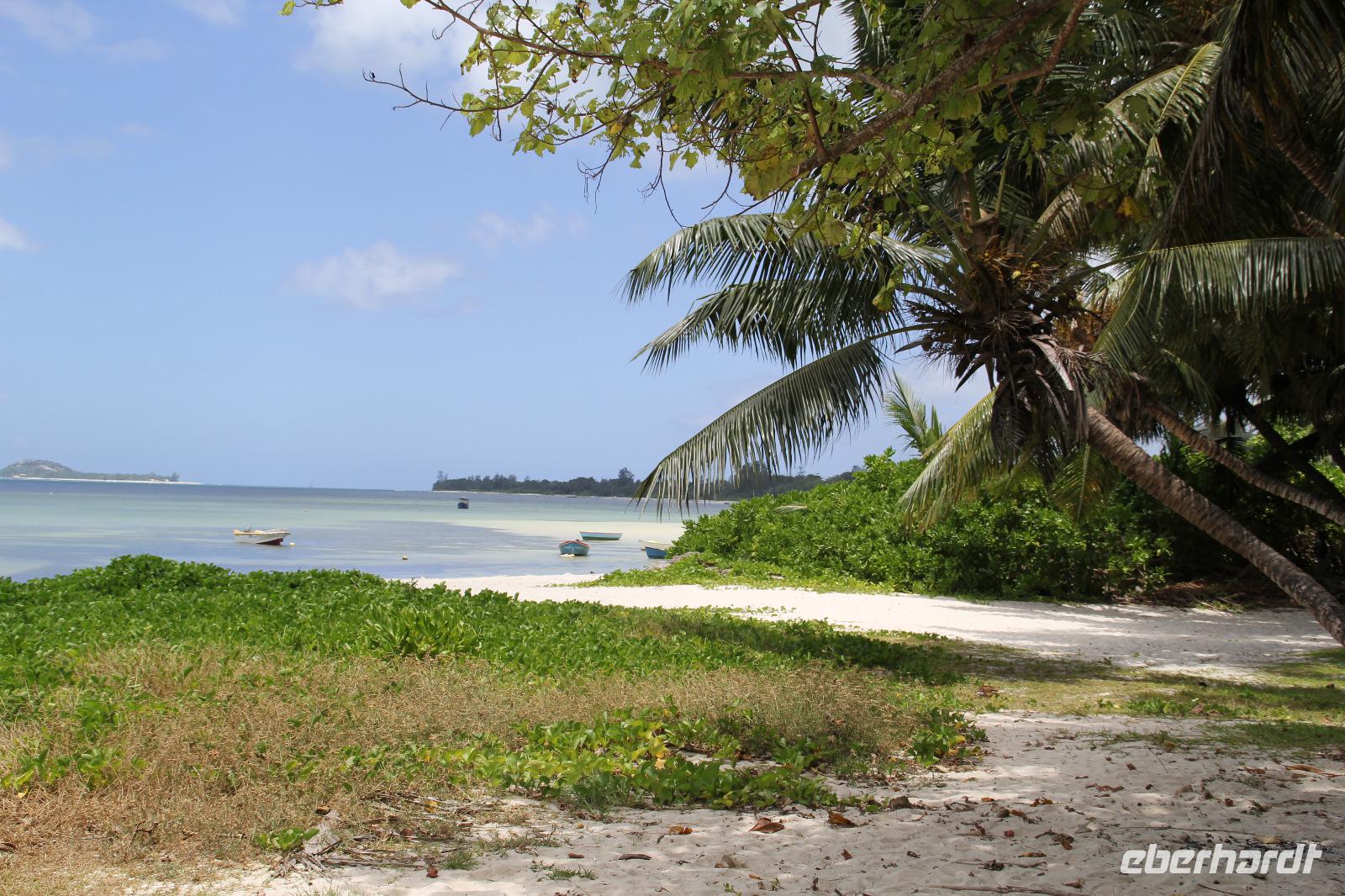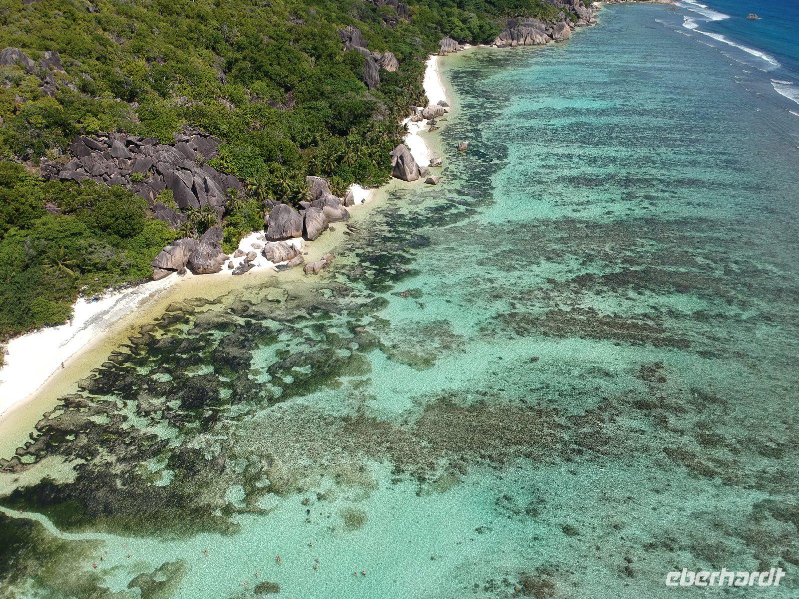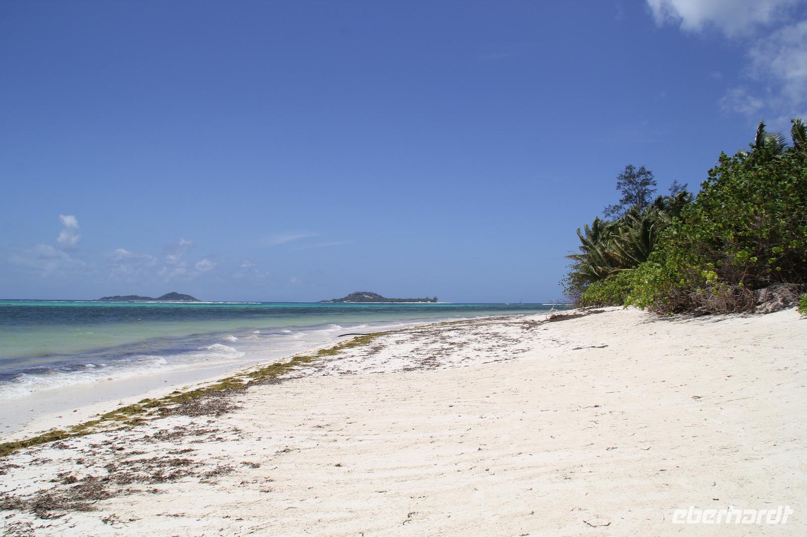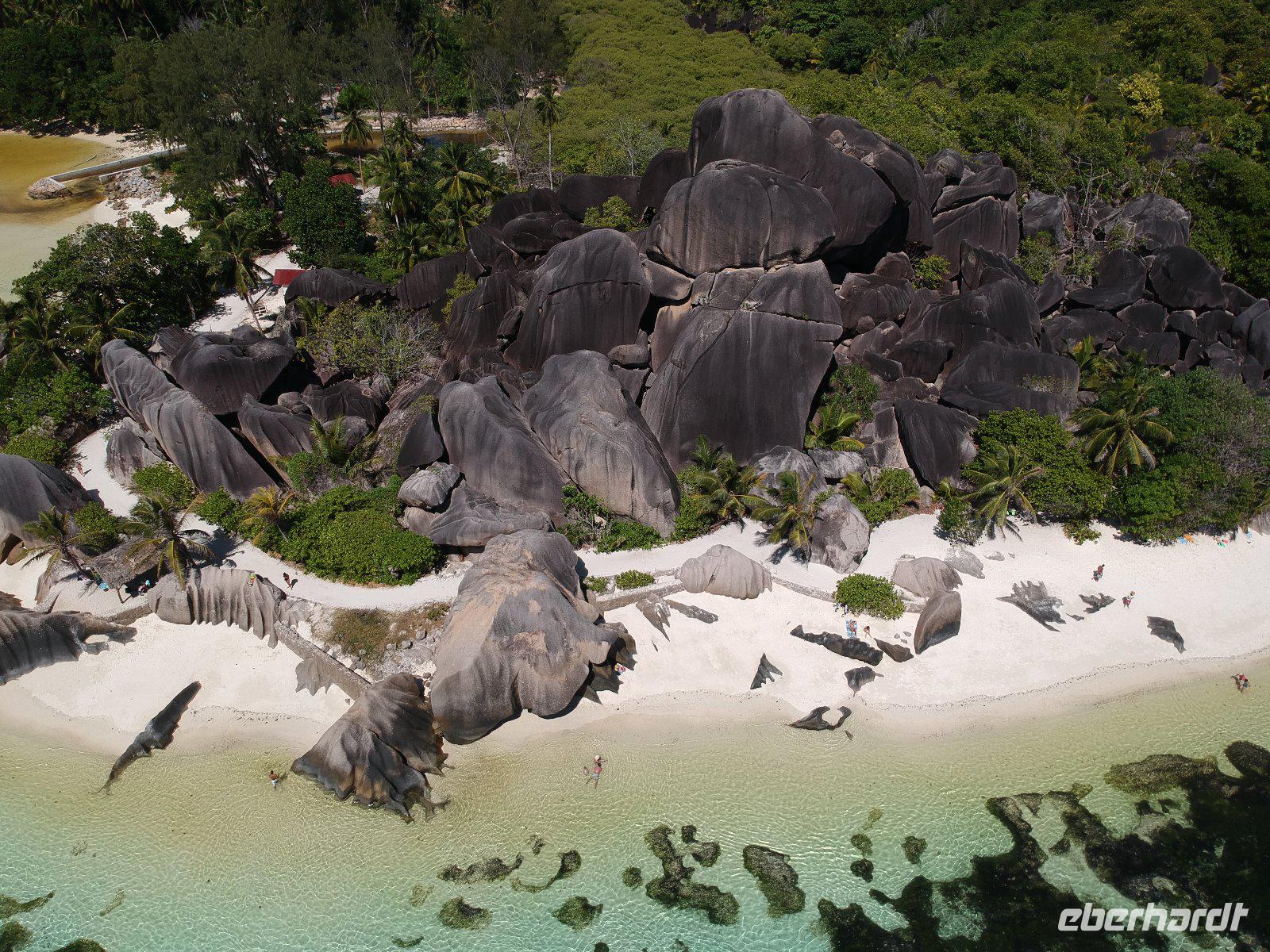 Laut National Geographic befinden sich auf der Insel allgemein mit die schönsten Strände der Welt. Die vom Wasser abgeschliffenen Granitfelsen am weißen Traumstrand vor türkisblauem Meer sprechen deutlich dafür. Hier hat man u.a. in den 90er Jahren eine Bacardi Werbung gedreht. Wir hatten ca. anderthalb Stunden Zeit zum Baden und relaxen, bevor wir am Nachmittag wieder unseren Katamaran bestiegen und noch einmal um die ganze Insel fuhren. Zuvor kauften wir noch ein paar Souvenirs im Zentrum der Insel, wo es auch Banken und eine Post gibt. Kurze Zeit später fuhren wir für ca. 45min. einmal um die ganze Insel herum. Zum Sonnenuntergang erreichten wir wieder die Insel Praslin und unser Hotel. Wieder einmal war es ein wunderschöner Tag im Paradies.