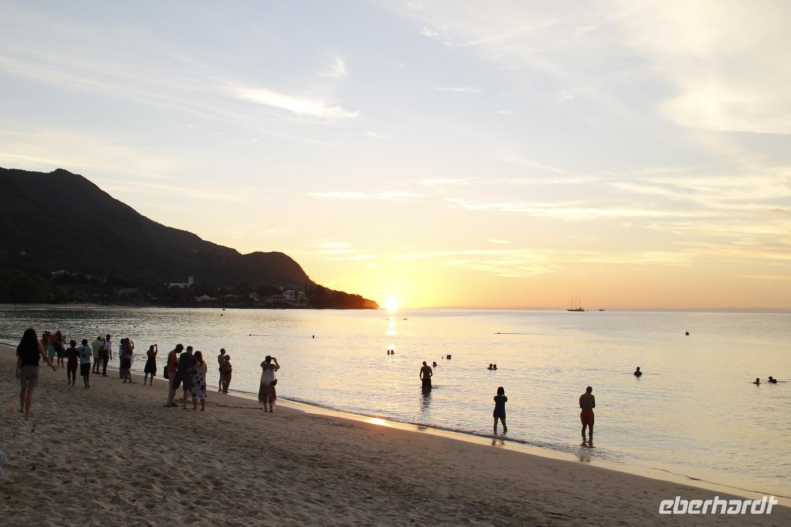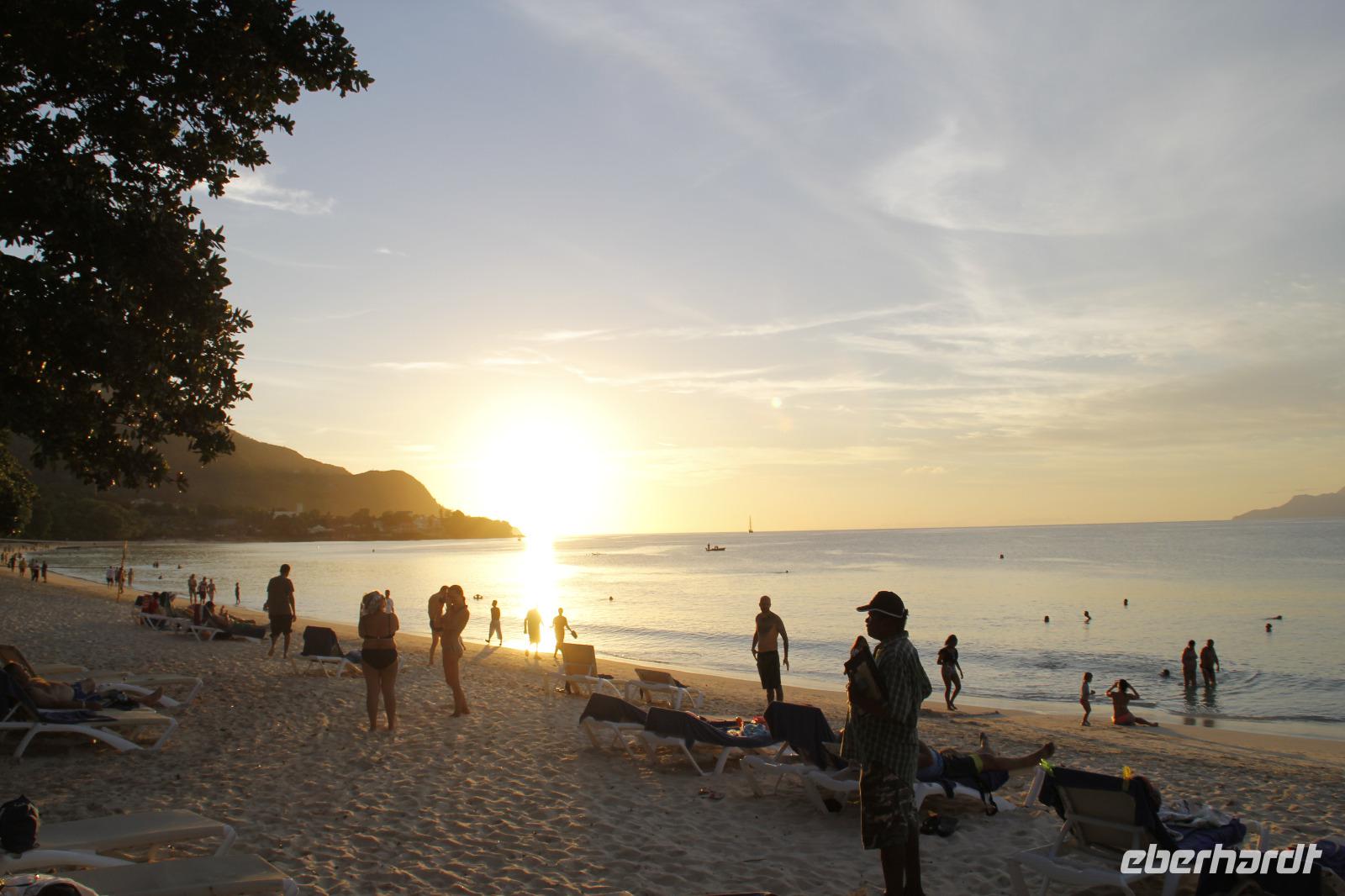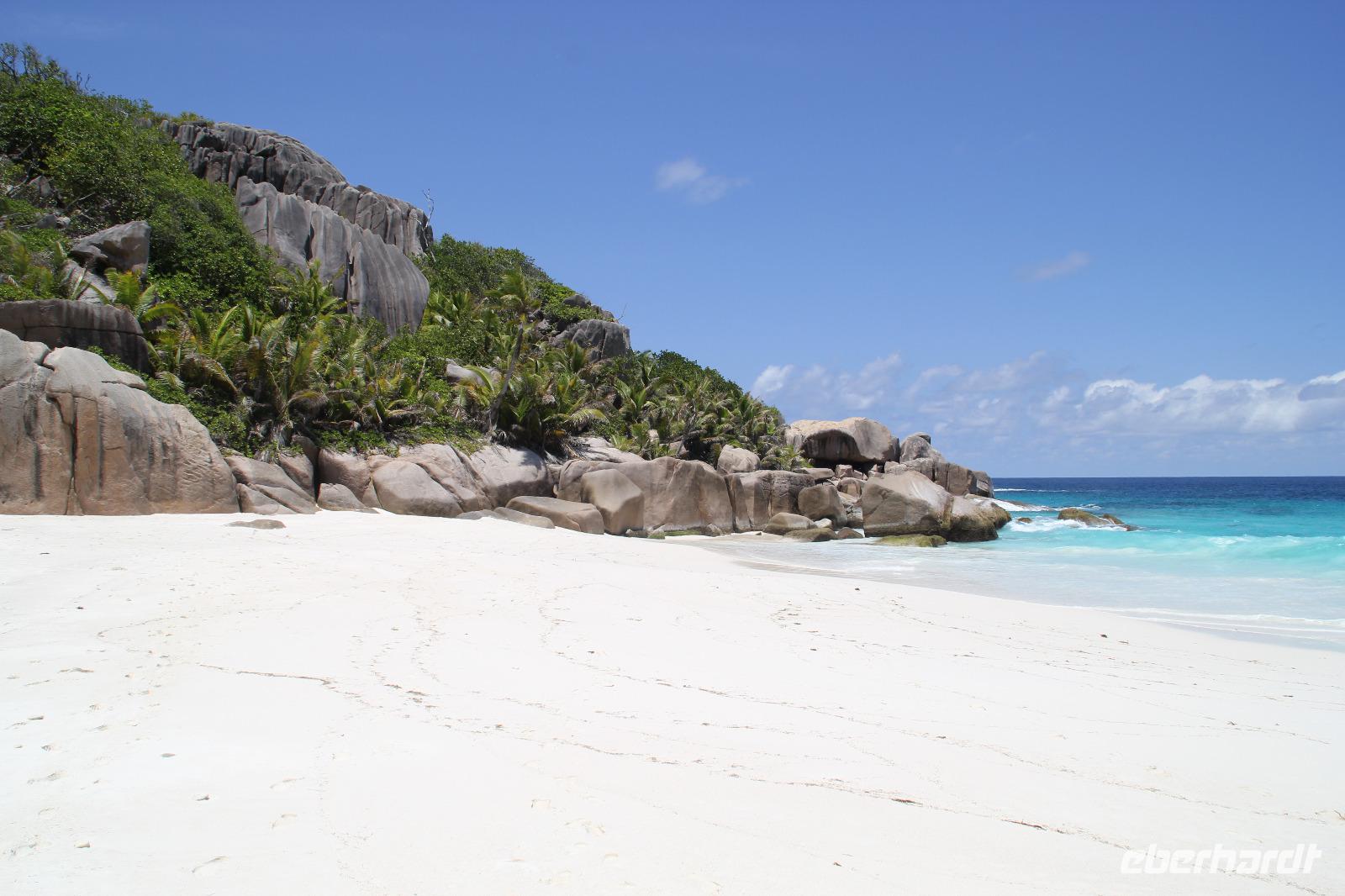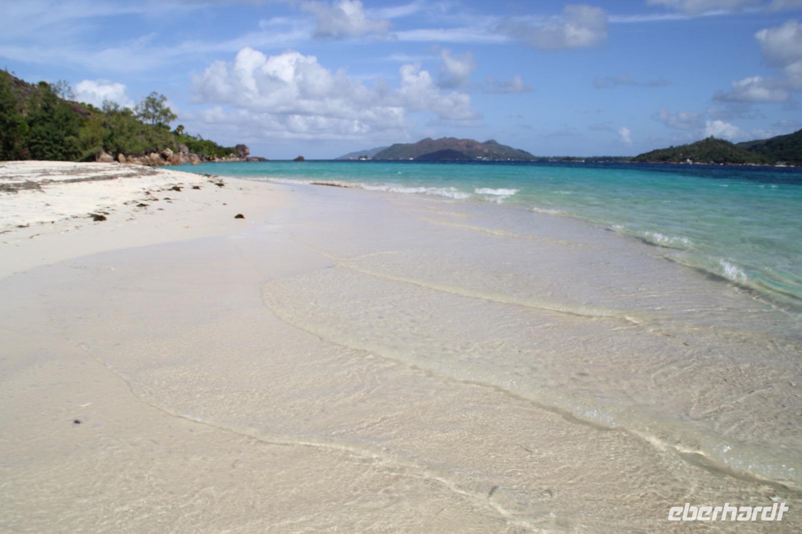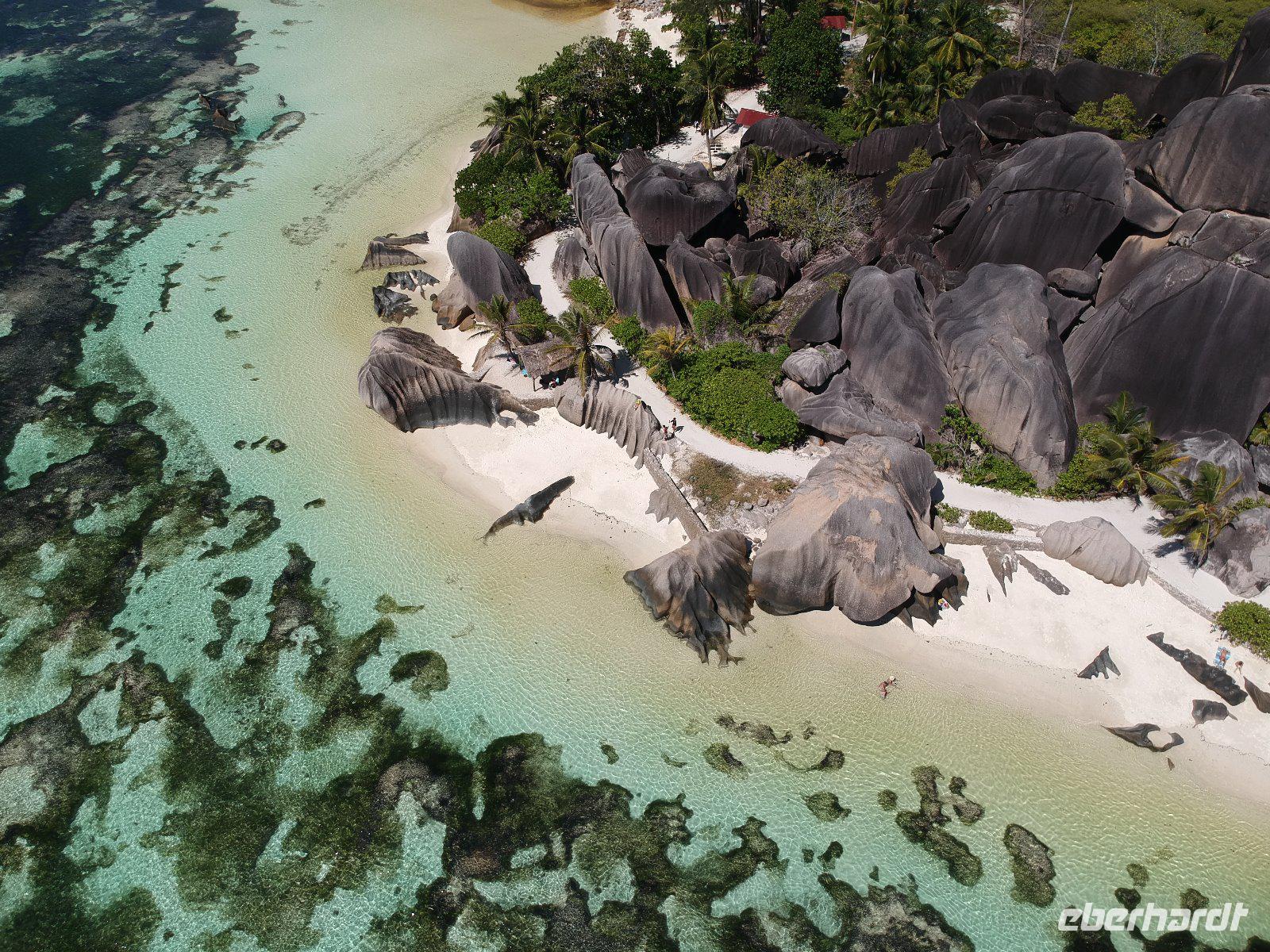Laut National Geographic befinden sich auf der Insel allgemein mit die schönsten Strände der Welt. Die vom Wasser abgeschliffenen Granitfelsen am weißen Traumstrand vor türkisblauem Meer sprechen deutlich dafür. Hier hat man u.a. in den 90er Jahren eine Bacardi Werbung gedreht. Wir hatten ca. anderthalb Stunden Zeit zum Baden und relaxen, bevor wir am Nachmittag wieder unseren Katamaran bestiegen und noch einmal um die ganze Insel fuhren. Zuvor kauften wir noch ein paar Souvenirs im Zentrum der Insel, wo es auch Banken und eine Post gibt. Kurze Zeit später fuhren wir für ca. 45min. einmal um die ganze Insel herum. Zum Sonnenuntergang erreichten wir wieder die Insel Praslin und unser Hotel. Wieder einmal war es ein wunderschöner Tag im Paradies.