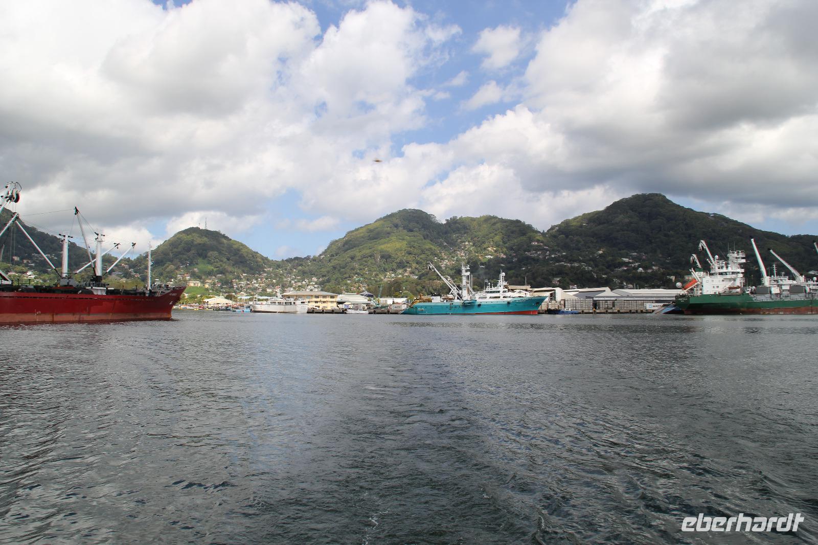 Nach einer erholsamen ersten Nacht auf den Seychellen ging es gleich nach dem Frühstück mit unserem Reiseleiter Cyril und einem Kleinbus in Richtung Hafen von Victoria.