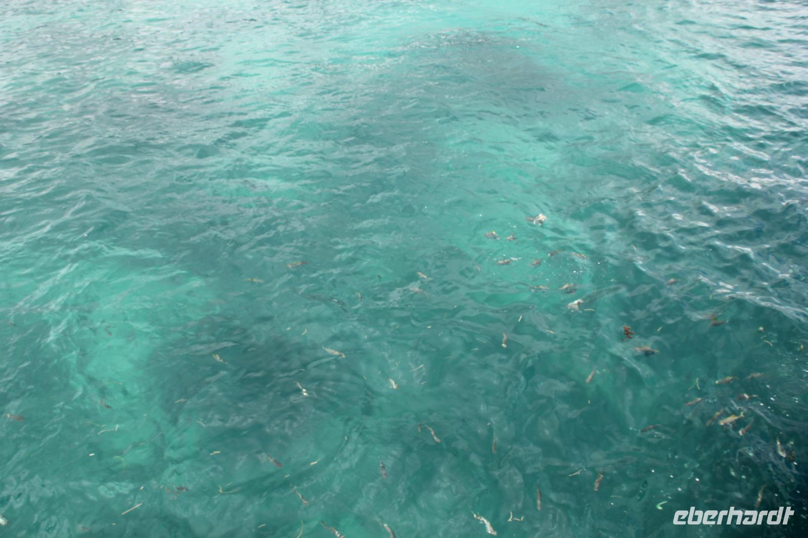 Wer wollte, der konnte mit unserem Koch schon mit auf die Insel oder mit zum Schnorcheln nach Coco Island kommen. Die Hälfte der Gruppe stieg somit ins kleinere Beiboot um und genoss den wunderschönen Traumstrand von Grand Sister Island. Alle anderen fuhren mit mir ca. 5 Minuten weiter nach Coco Island, um dort ausgiebig die Unterwasserwelt zu begutachten.