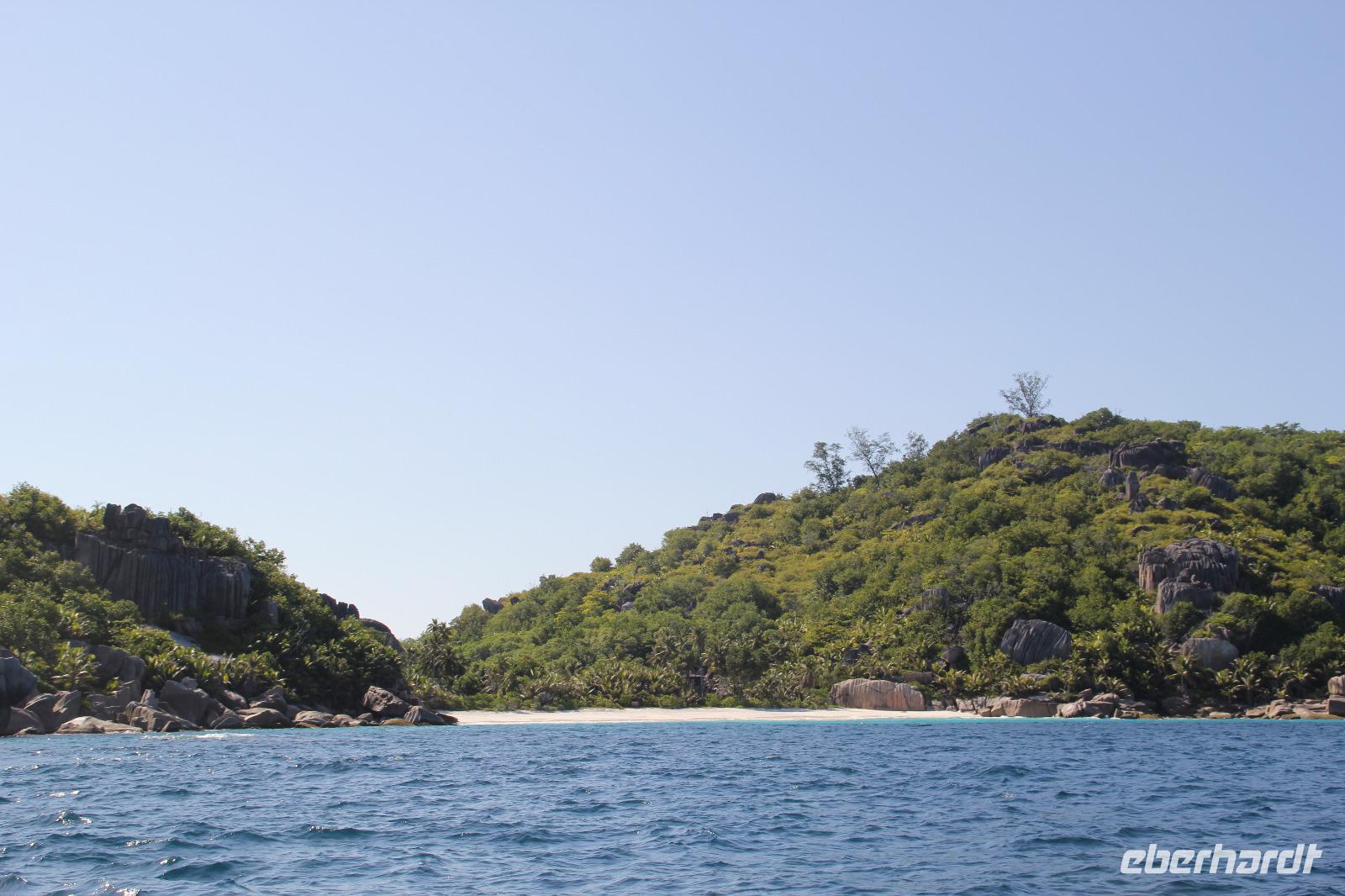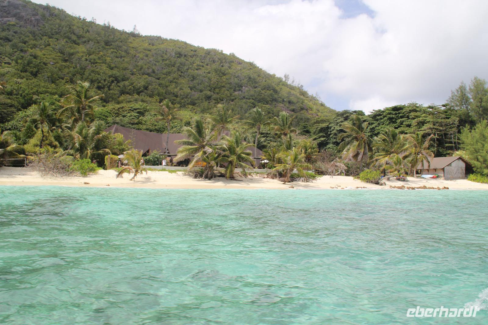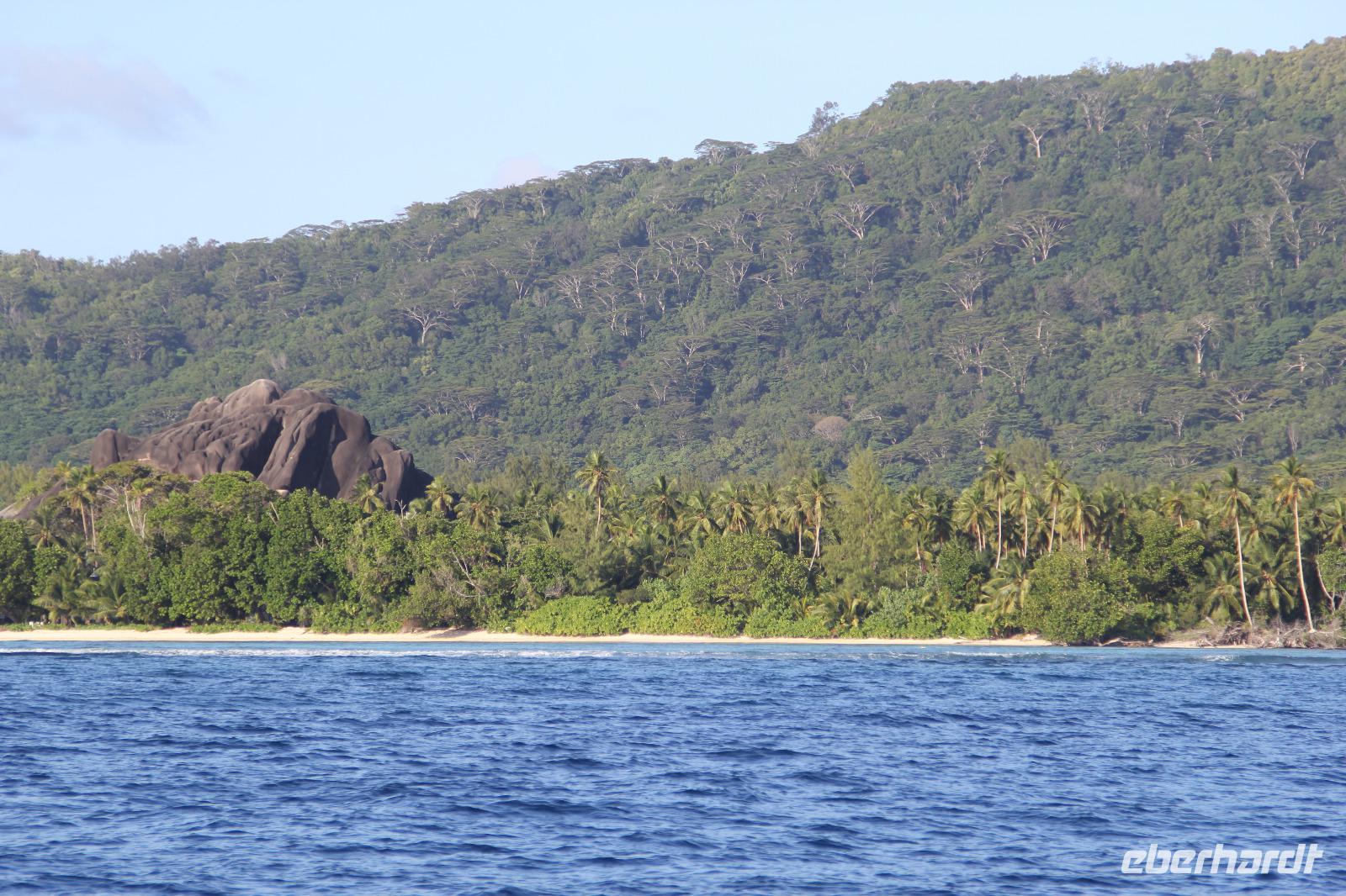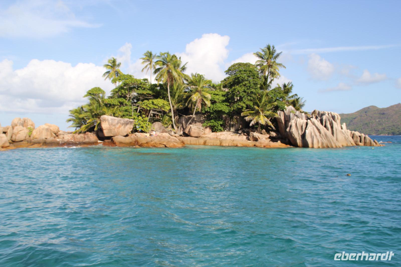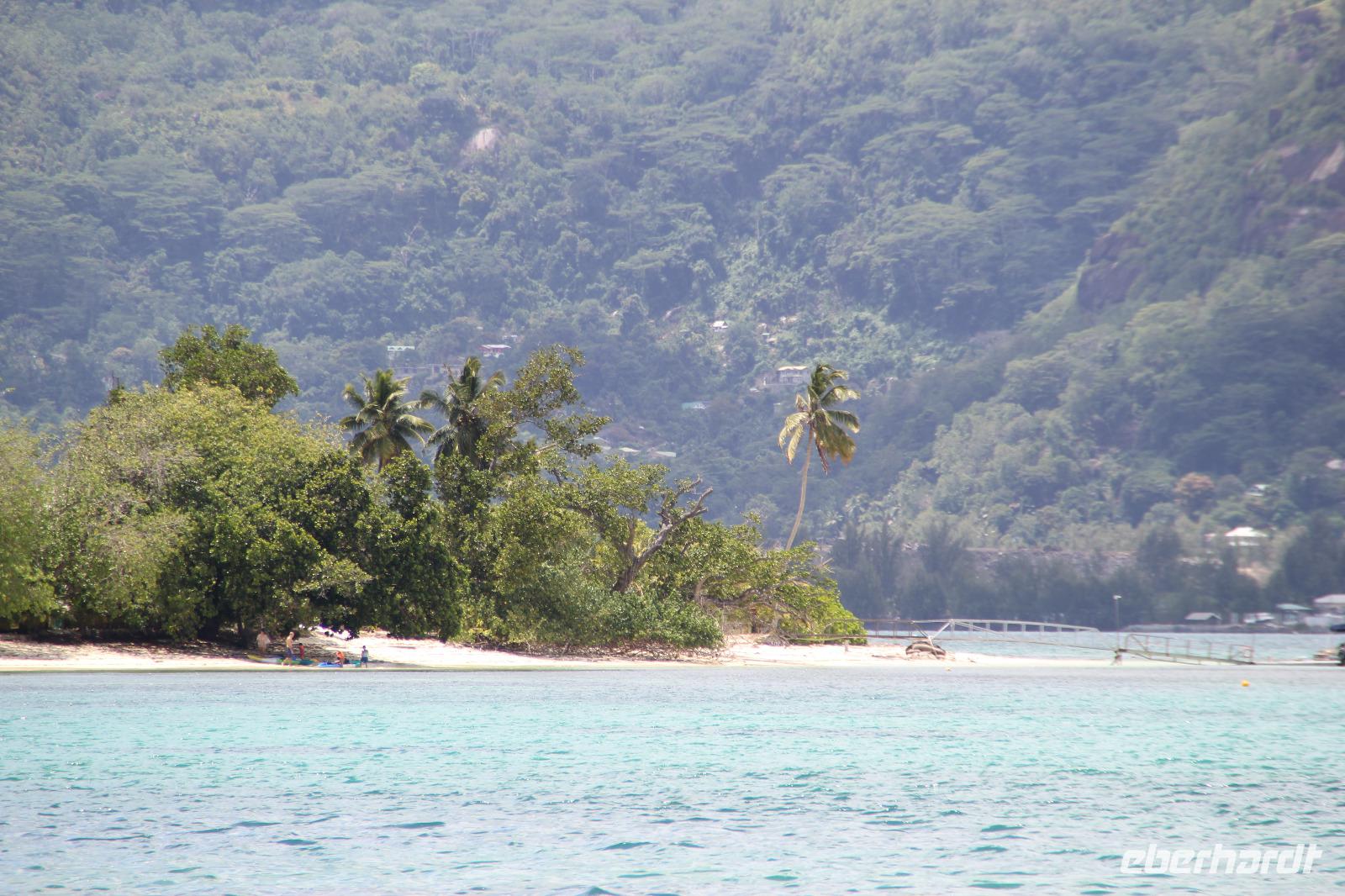 Nach dem Mittagessen an Bord, stiegen wir in ein kleines Schlauchboot um und fuhren direkt zum Strand der Insel Moyenne. Ein kleiner Aufstieg führte uns hinauf bis zur Kapelle der Insel, wo auch das Grab des Engländers Brendon Grimshaw zu finden ist, dem einst die Insel gehört hatte und der seitdem für die Erhaltung der ursprünglichen Natur hier gekämpft hatte. Außerdem soll es auf dieser Insel noch Piratenschätze geben. :-)