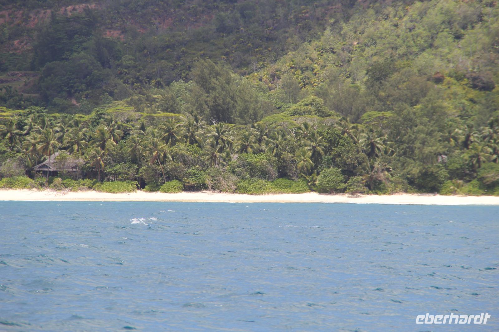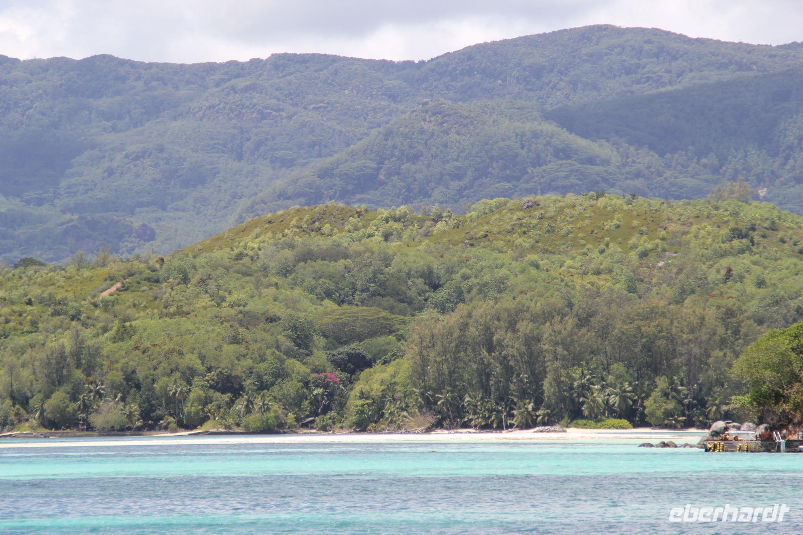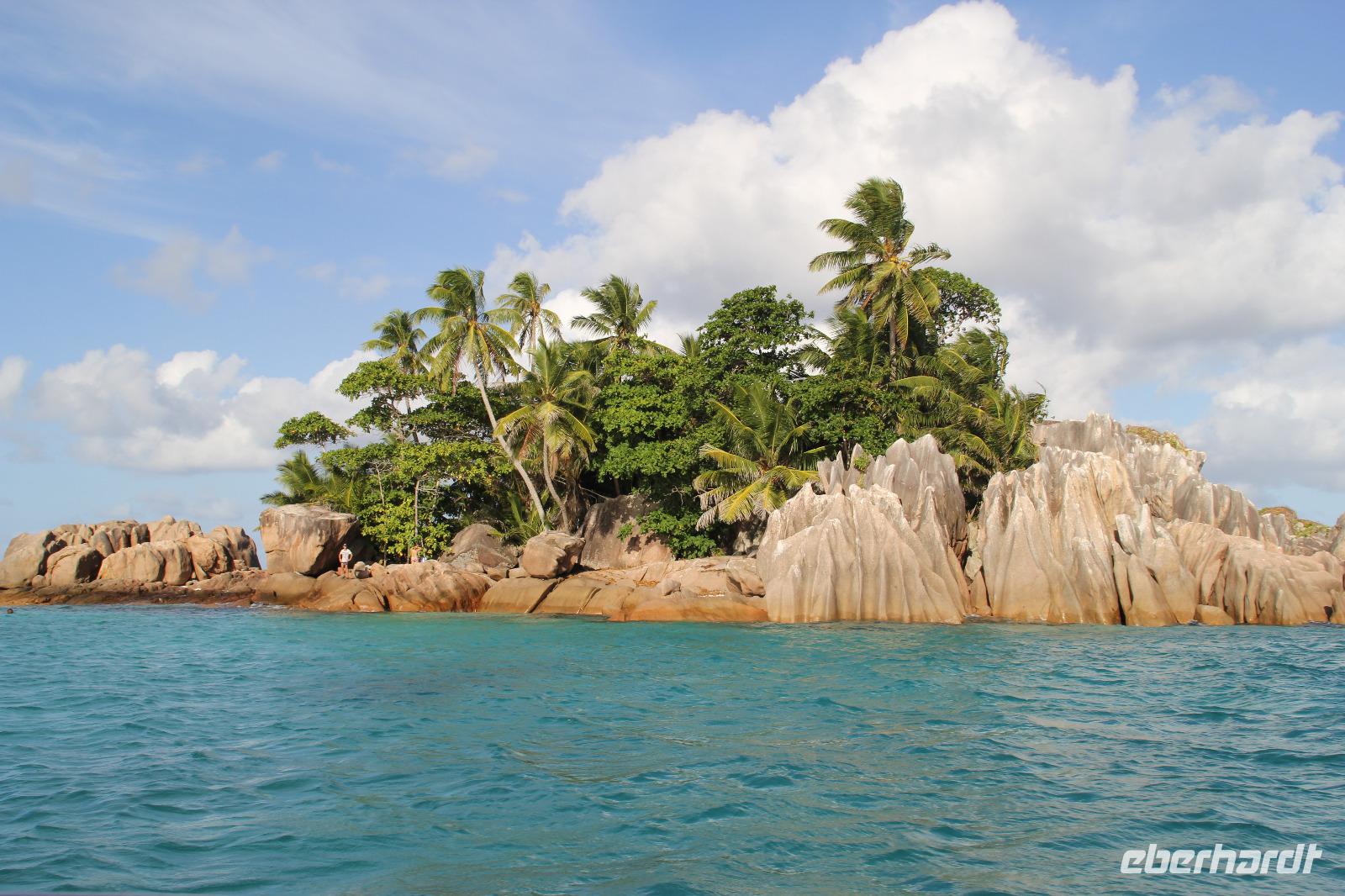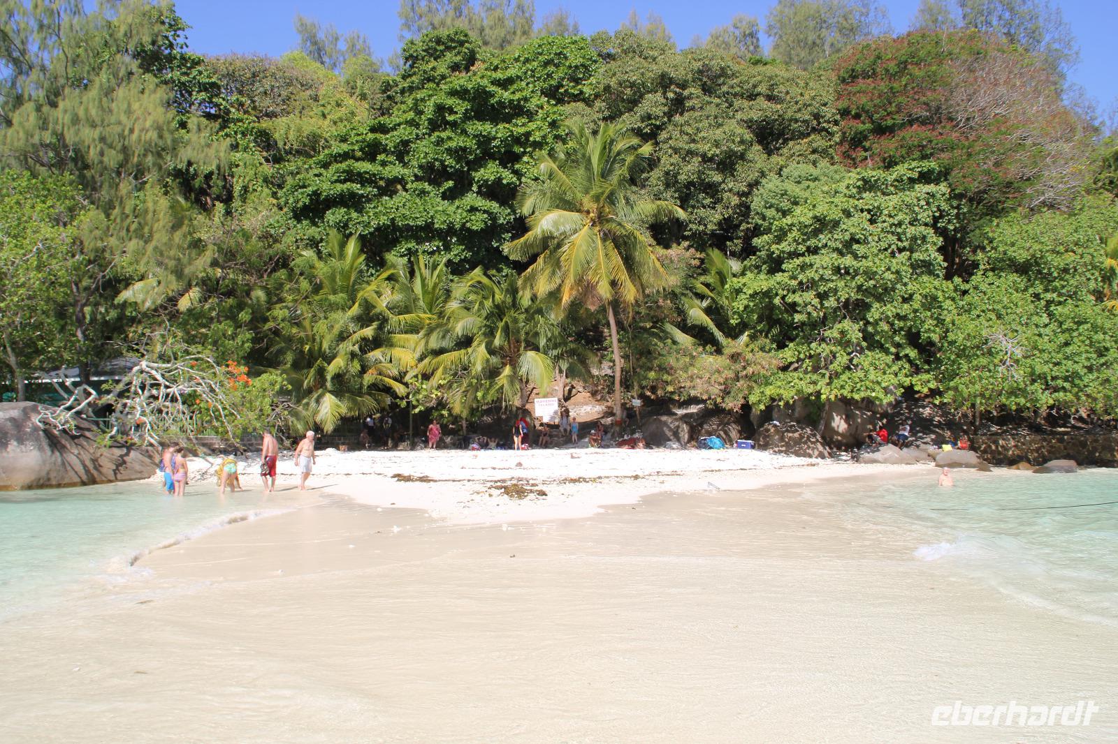 Nach dem Mittagessen an Bord, stiegen wir in ein kleines Schlauchboot um und fuhren direkt zum Strand der Insel Moyenne. Ein kleiner Aufstieg führte uns hinauf bis zur Kapelle der Insel, wo auch das Grab des Engländers Brendon Grimshaw zu finden ist, dem einst die Insel gehört hatte und der seitdem für die Erhaltung der ursprünglichen Natur hier gekämpft hatte. Außerdem soll es auf dieser Insel noch Piratenschätze geben. :-)