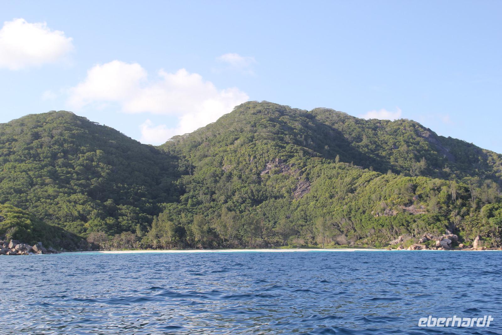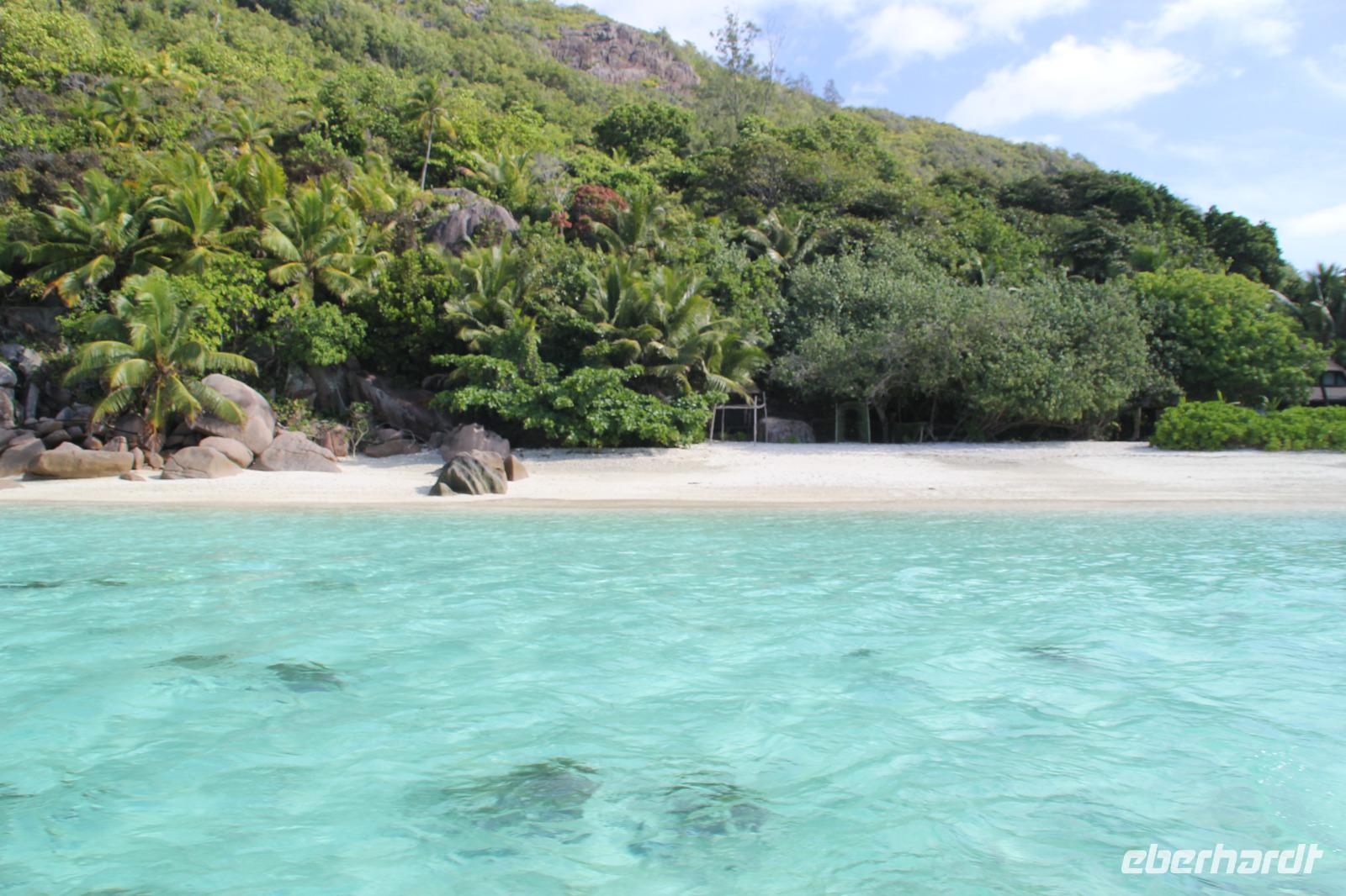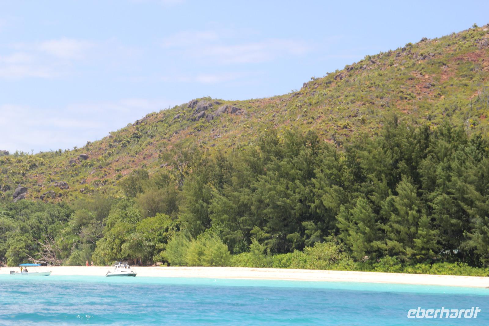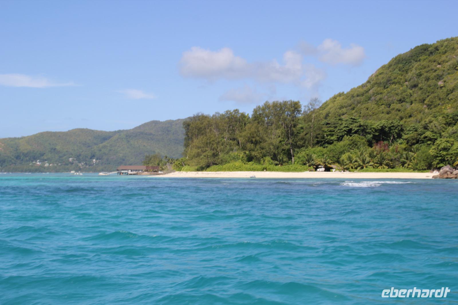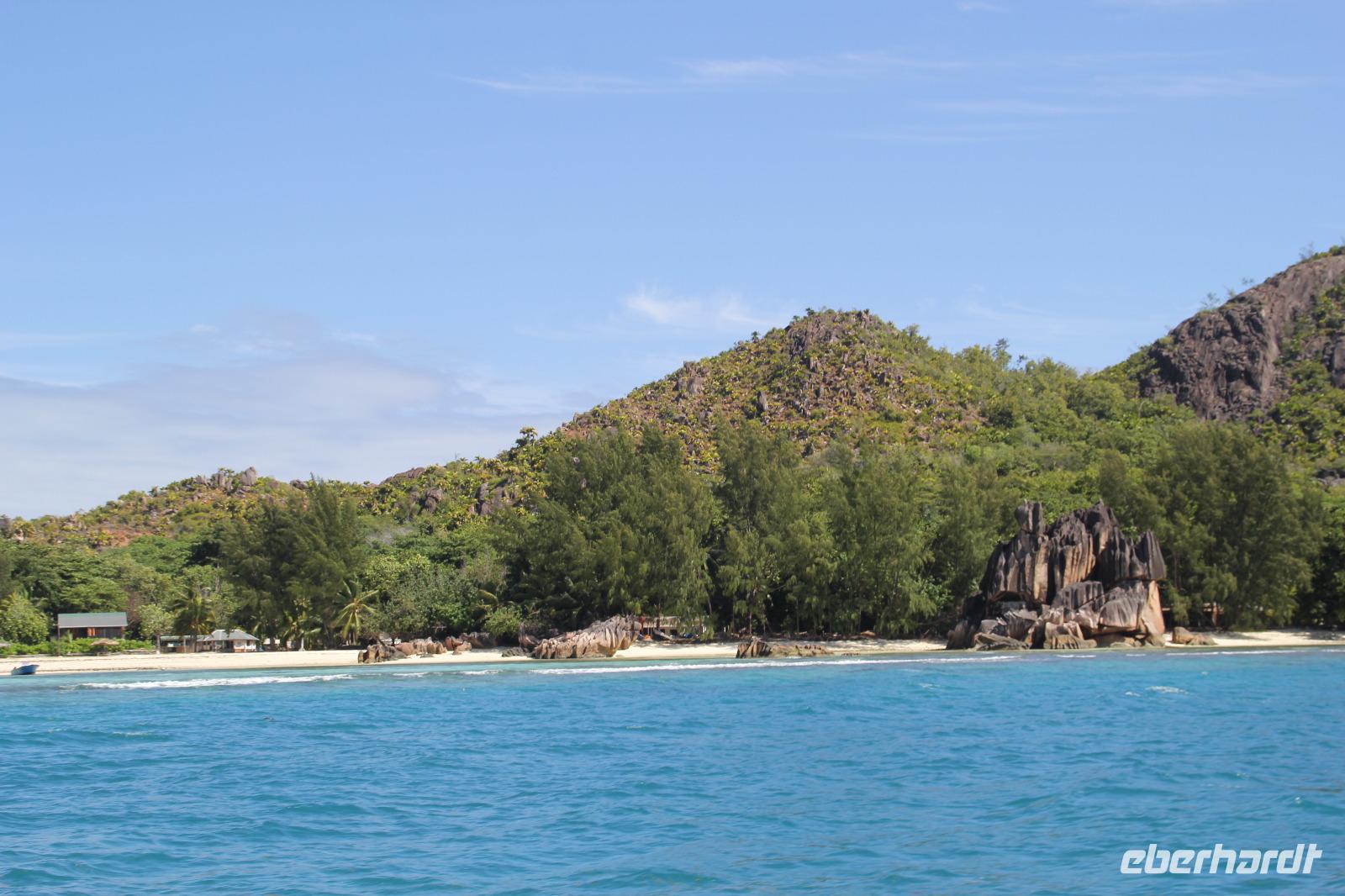 Nach dem Mittagessen an Bord, stiegen wir in ein kleines Schlauchboot um und fuhren direkt zum Strand der Insel Moyenne. Ein kleiner Aufstieg führte uns hinauf bis zur Kapelle der Insel, wo auch das Grab des Engländers Brendon Grimshaw zu finden ist, dem einst die Insel gehört hatte und der seitdem für die Erhaltung der ursprünglichen Natur hier gekämpft hatte. Außerdem soll es auf dieser Insel noch Piratenschätze geben. :-)