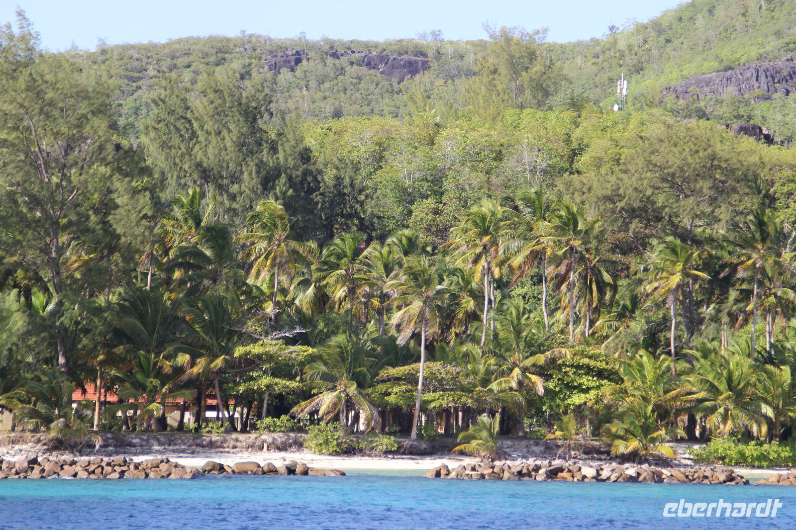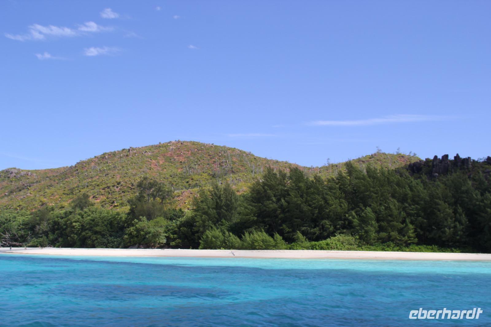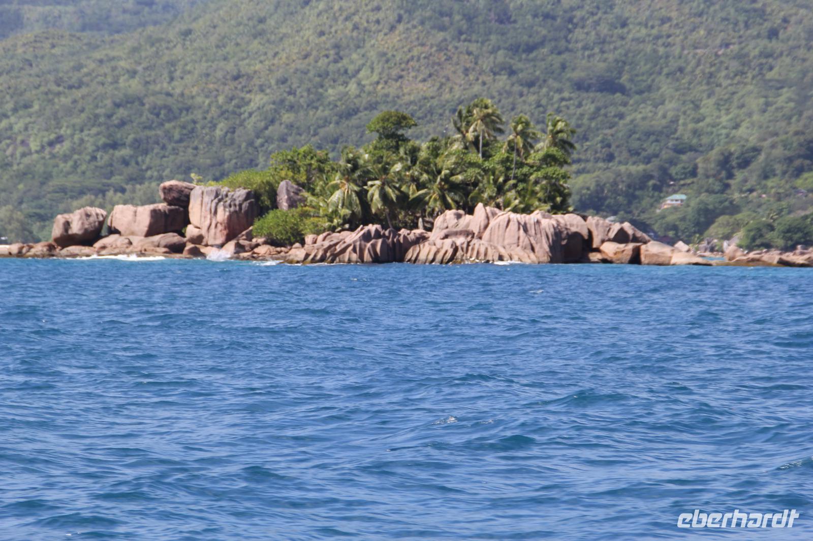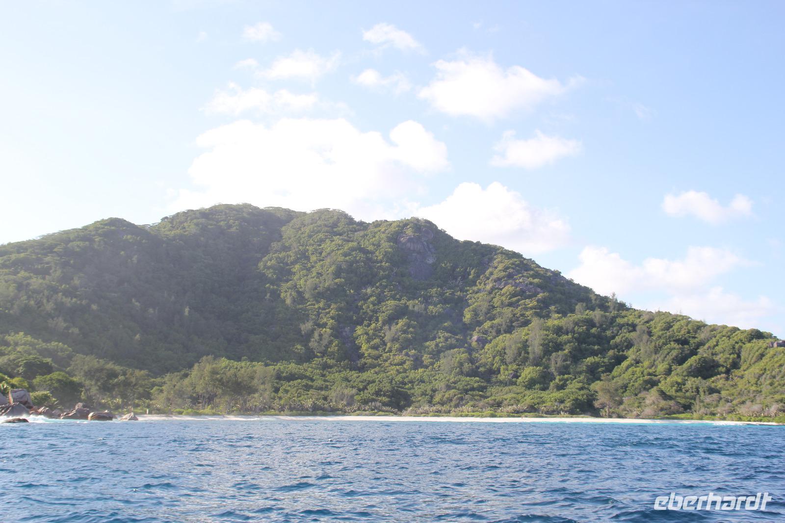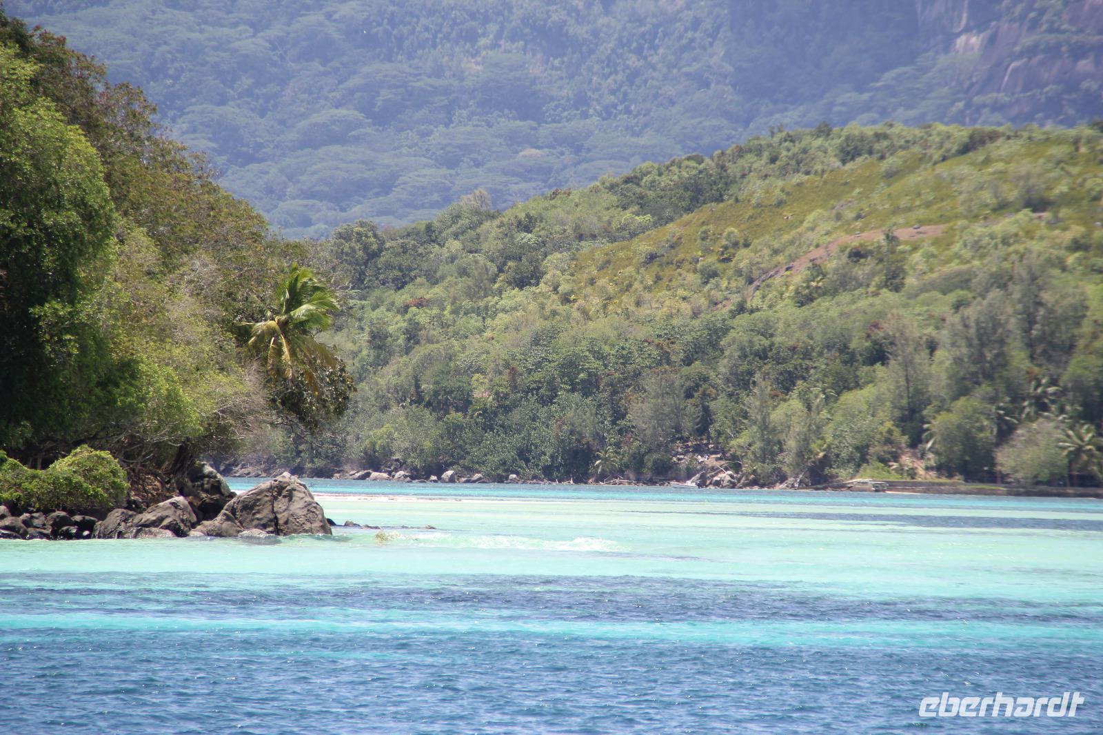 Nach dem Mittagessen an Bord, stiegen wir in ein kleines Schlauchboot um und fuhren direkt zum Strand der Insel Moyenne. Ein kleiner Aufstieg führte uns hinauf bis zur Kapelle der Insel, wo auch das Grab des Engländers Brendon Grimshaw zu finden ist, dem einst die Insel gehört hatte und der seitdem für die Erhaltung der ursprünglichen Natur hier gekämpft hatte. Außerdem soll es auf dieser Insel noch Piratenschätze geben. :-)