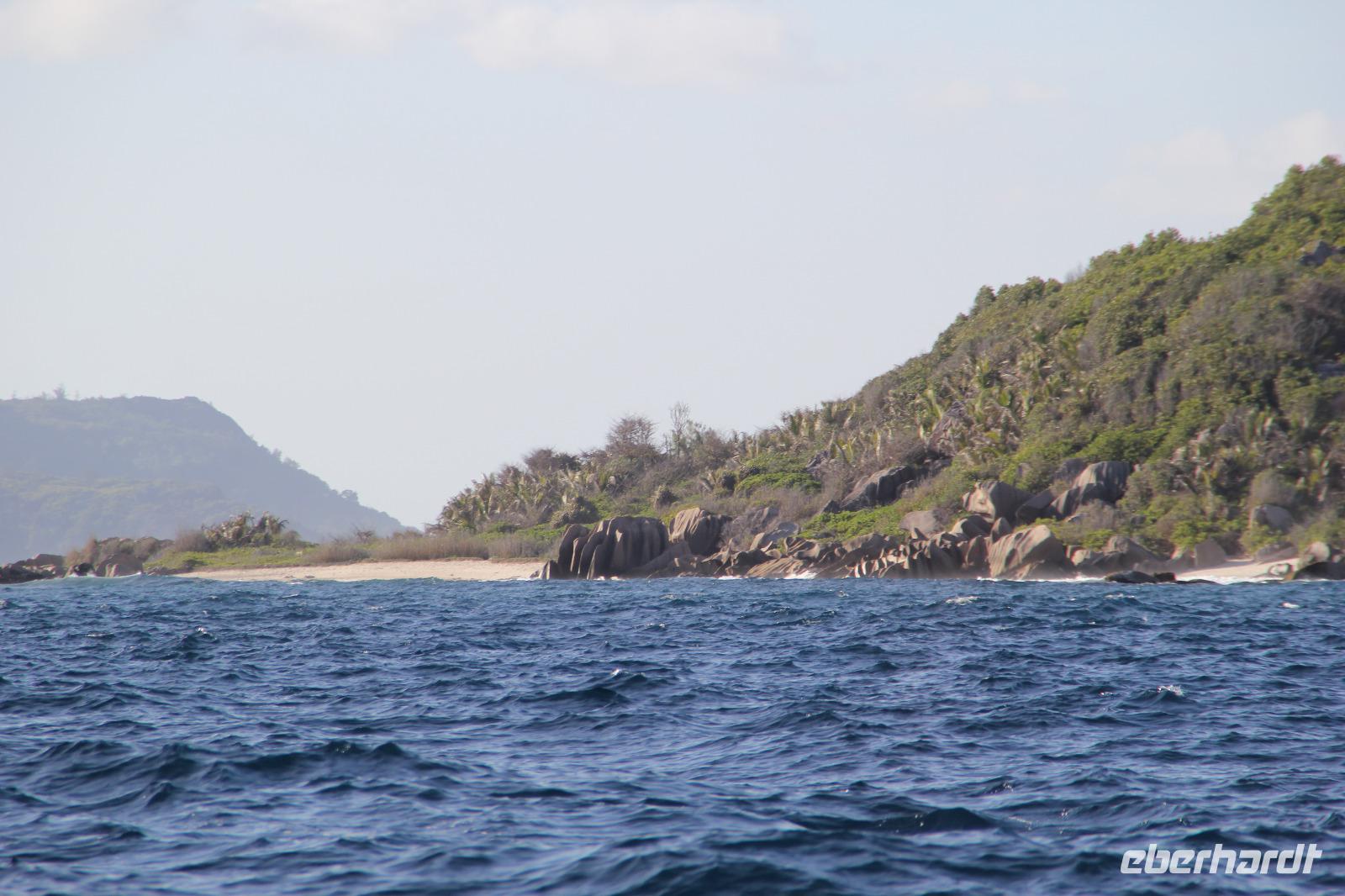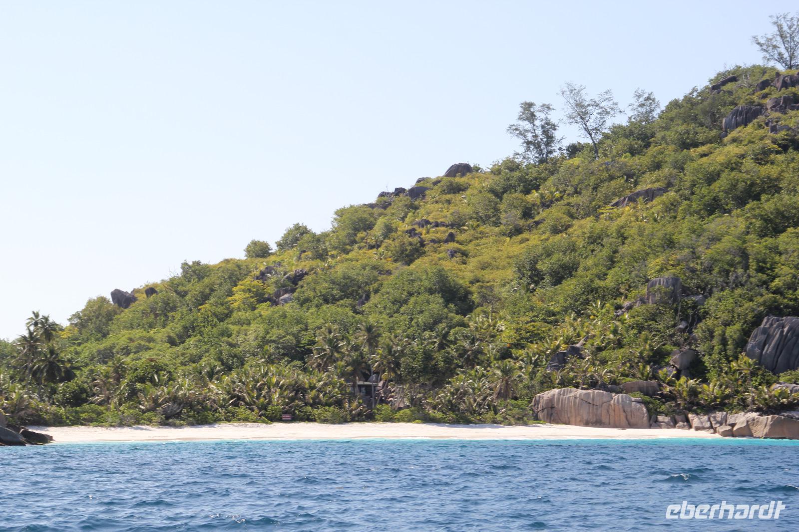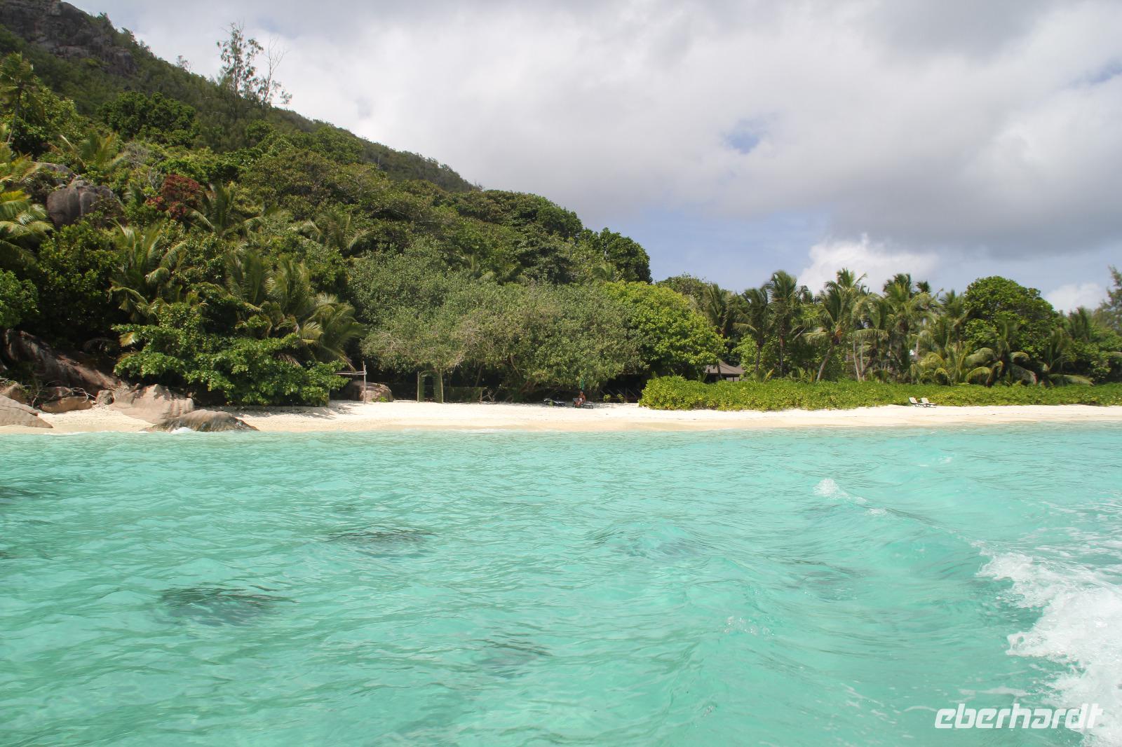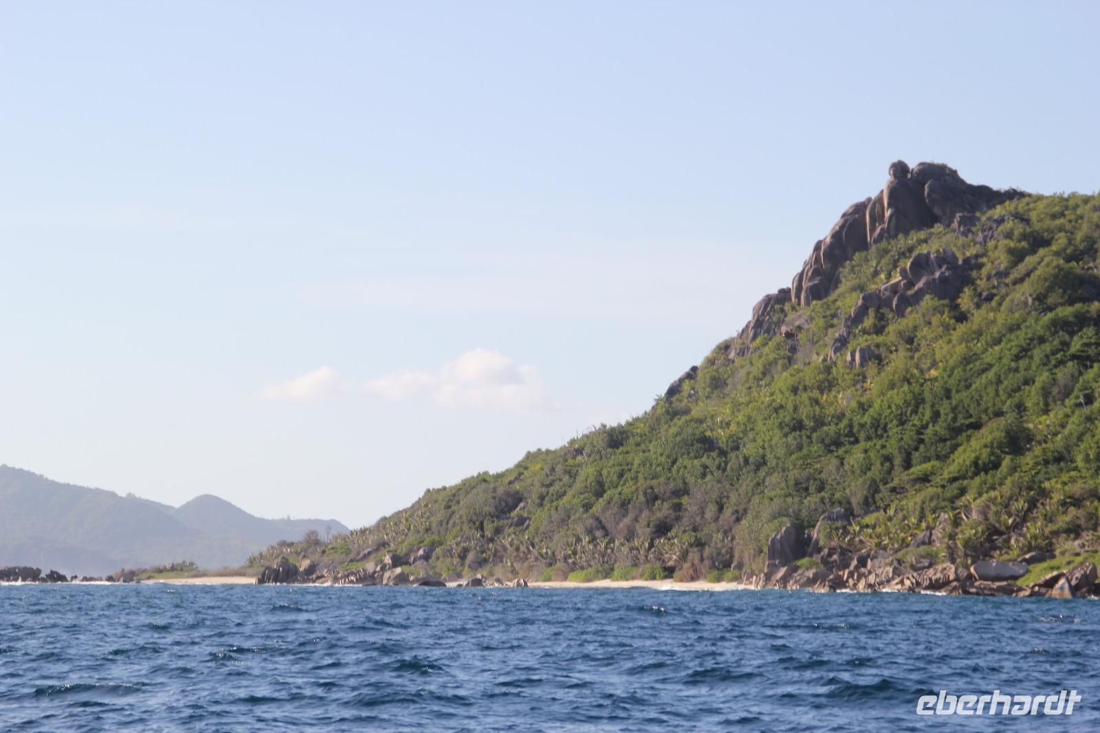 Nach dem Mittagessen an Bord, stiegen wir in ein kleines Schlauchboot um und fuhren direkt zum Strand der Insel Moyenne. Ein kleiner Aufstieg führte uns hinauf bis zur Kapelle der Insel, wo auch das Grab des Engländers Brendon Grimshaw zu finden ist, dem einst die Insel gehört hatte und der seitdem für die Erhaltung der ursprünglichen Natur hier gekämpft hatte. Außerdem soll es auf dieser Insel noch Piratenschätze geben. :-)