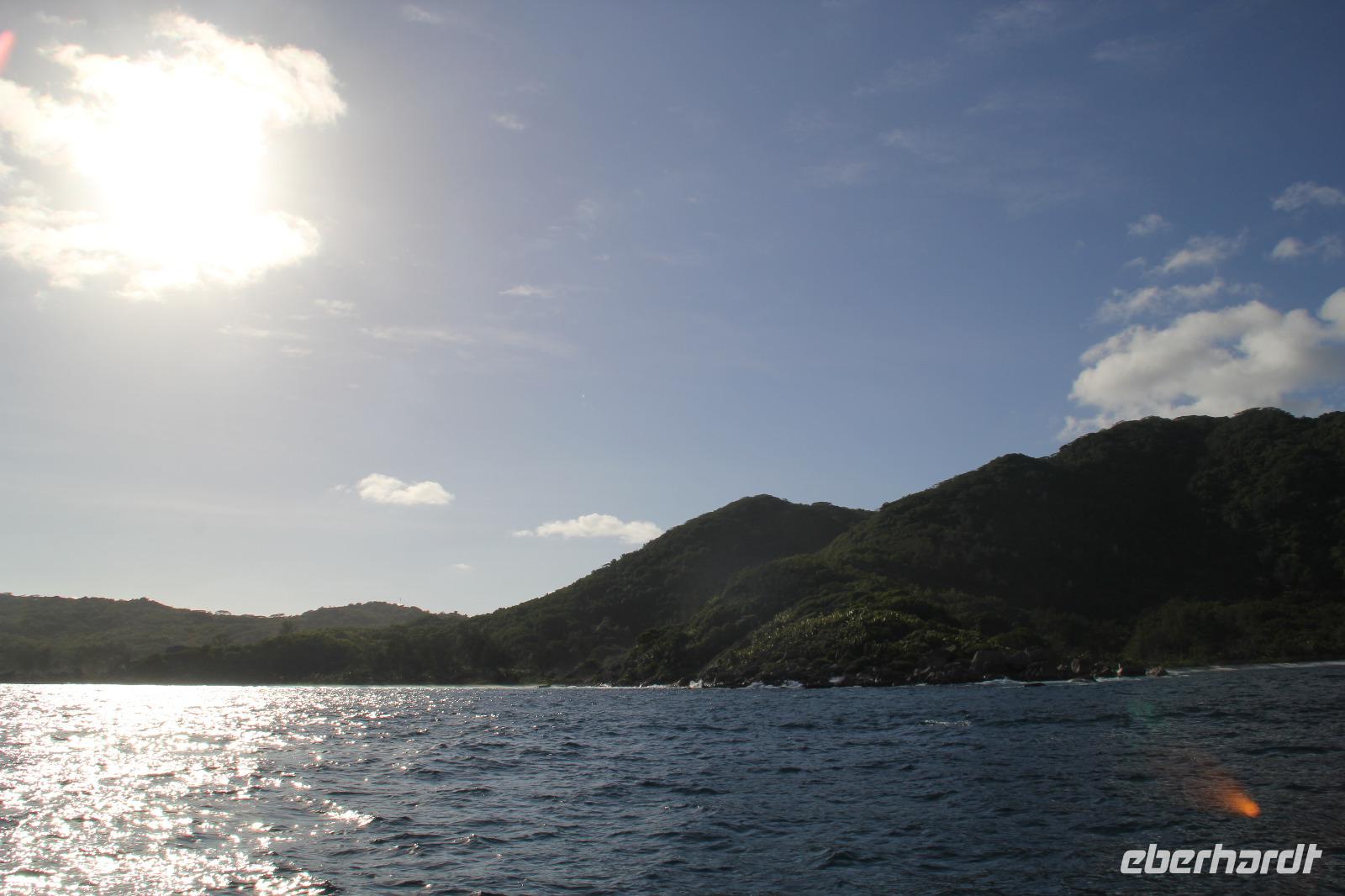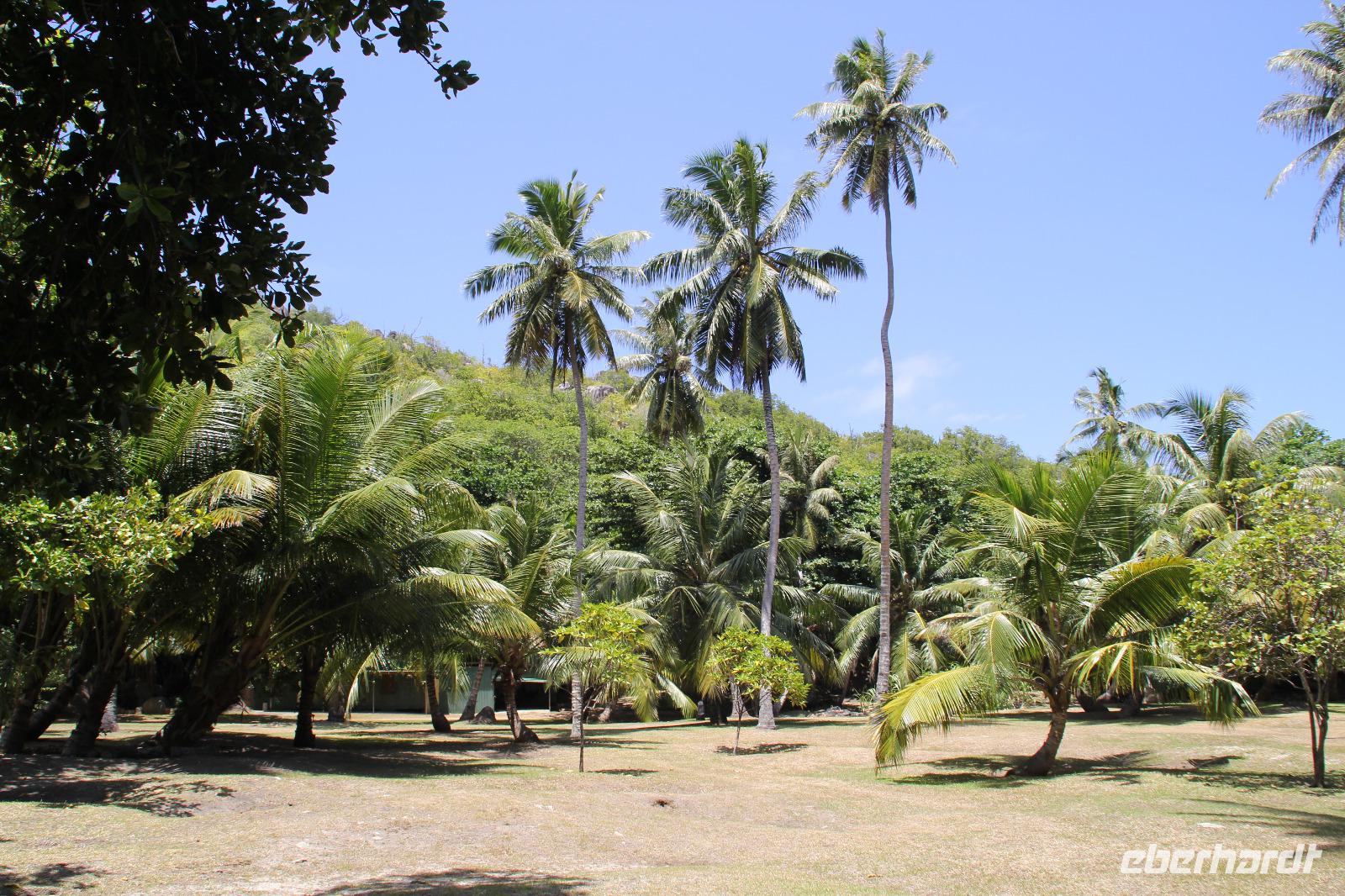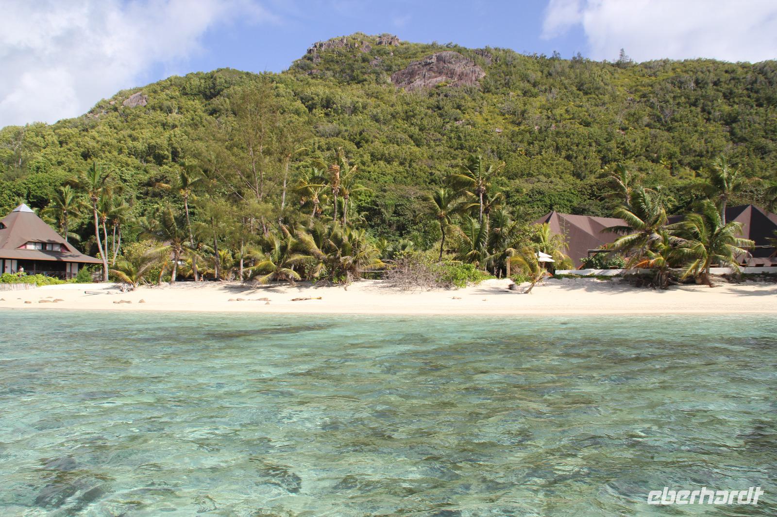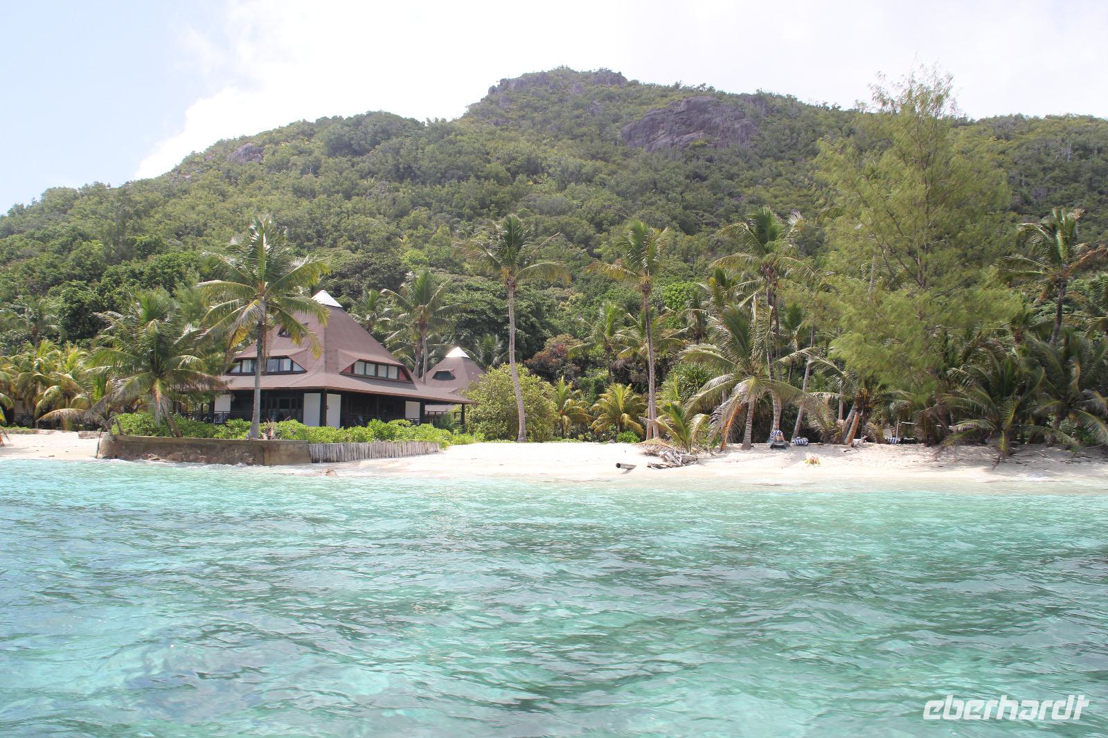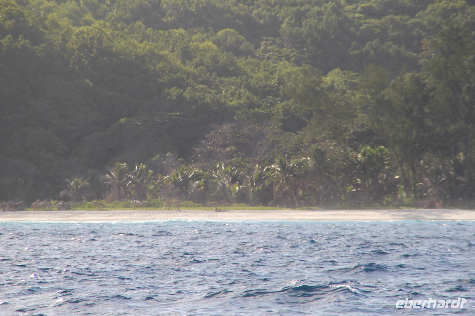 Nach dem Mittagessen an Bord, stiegen wir in ein kleines Schlauchboot um und fuhren direkt zum Strand der Insel Moyenne. Ein kleiner Aufstieg führte uns hinauf bis zur Kapelle der Insel, wo auch das Grab des Engländers Brendon Grimshaw zu finden ist, dem einst die Insel gehört hatte und der seitdem für die Erhaltung der ursprünglichen Natur hier gekämpft hatte. Außerdem soll es auf dieser Insel noch Piratenschätze geben. :-)