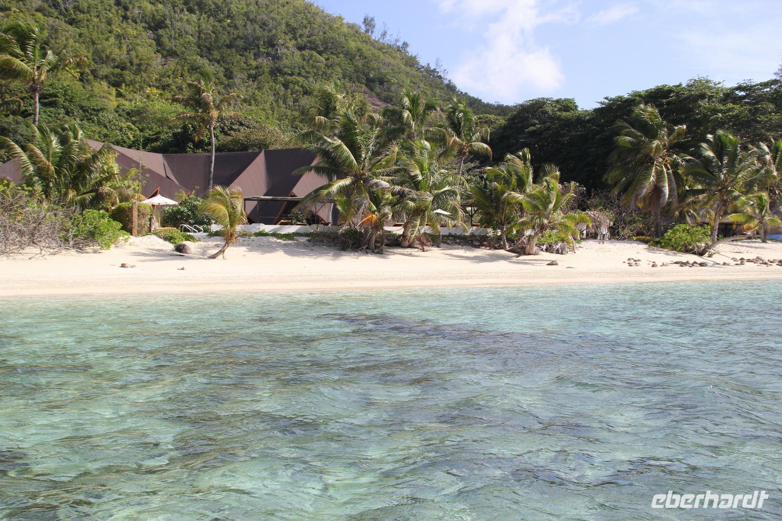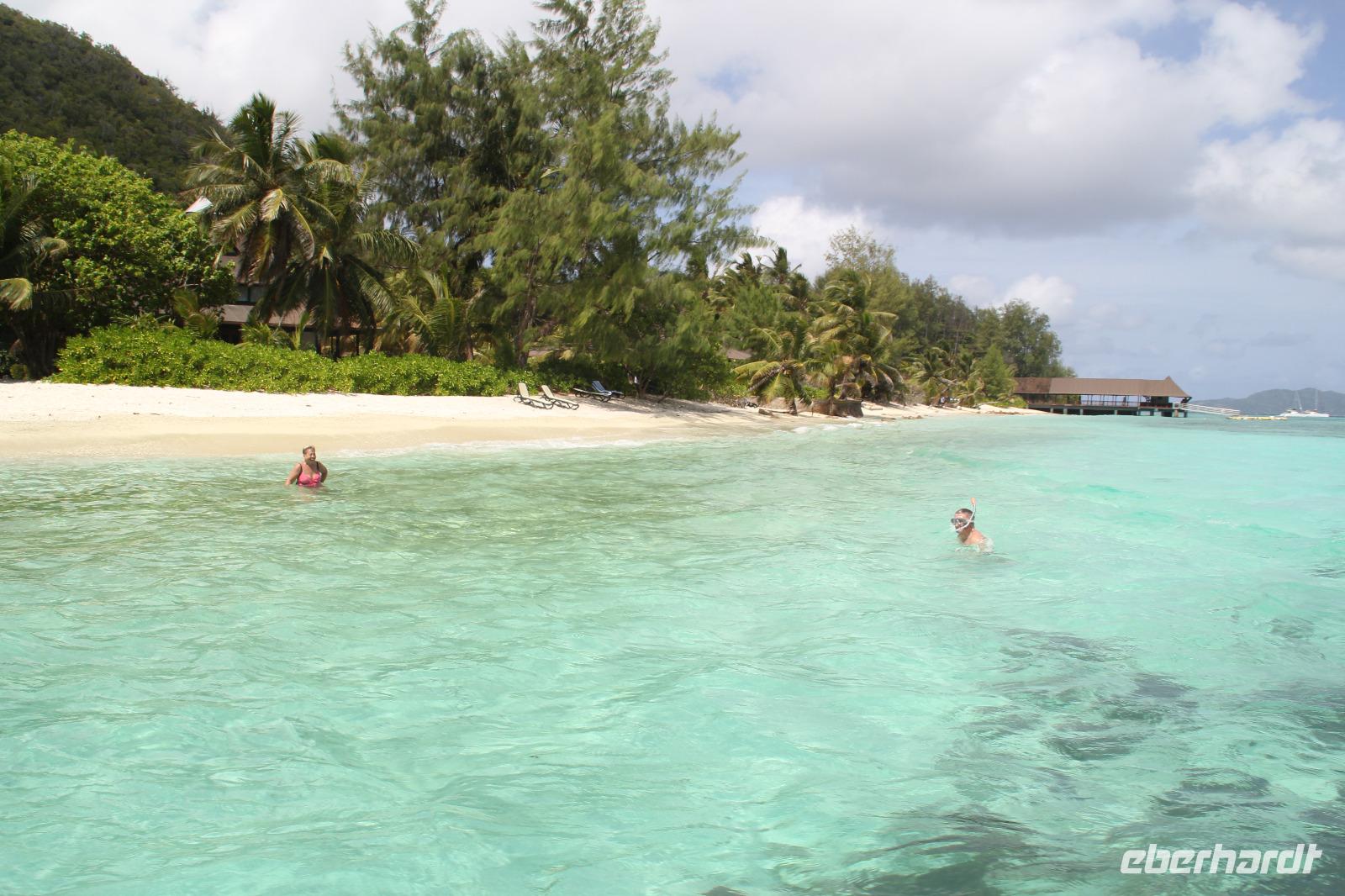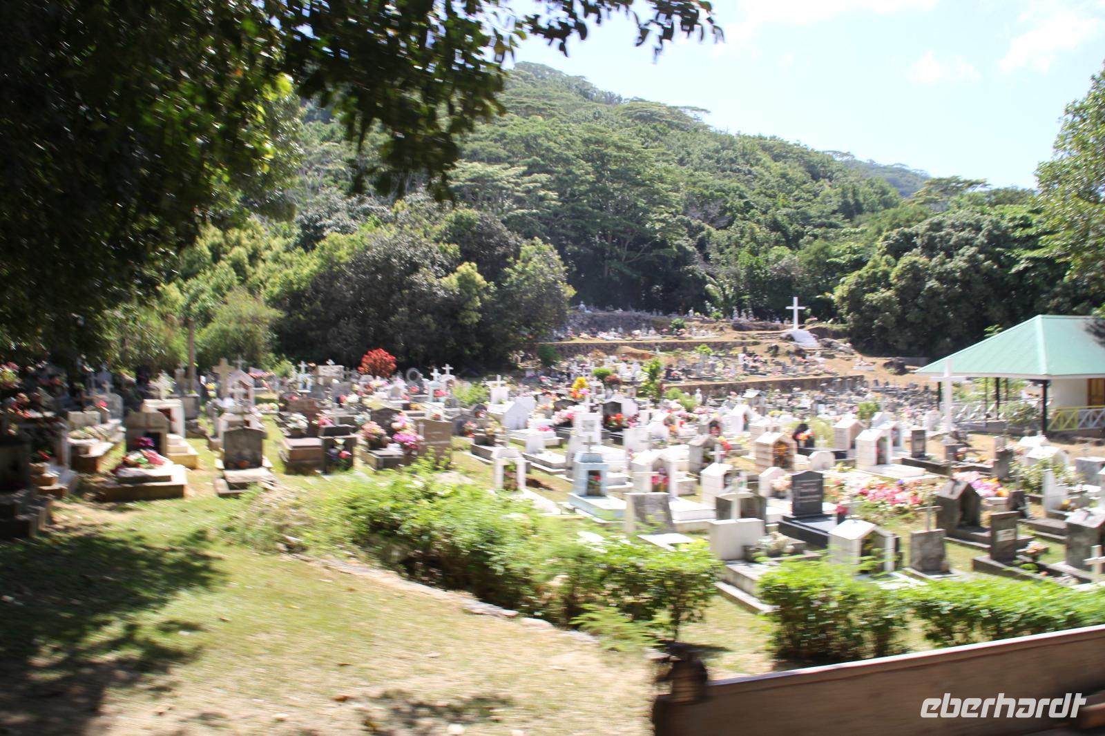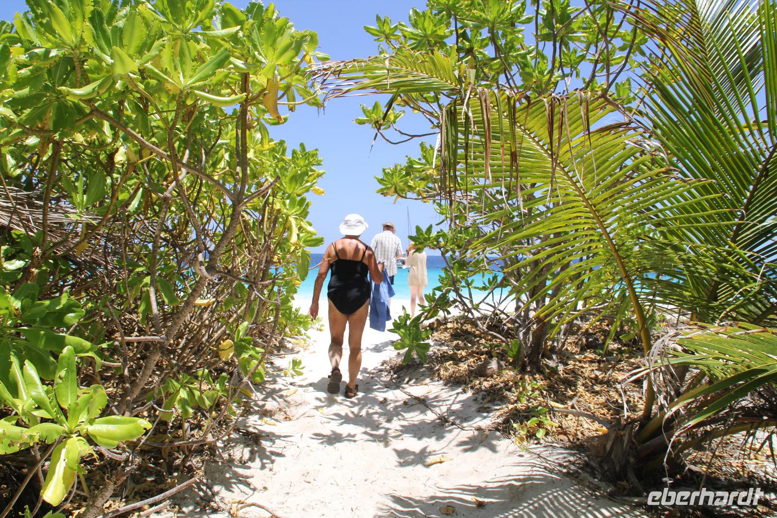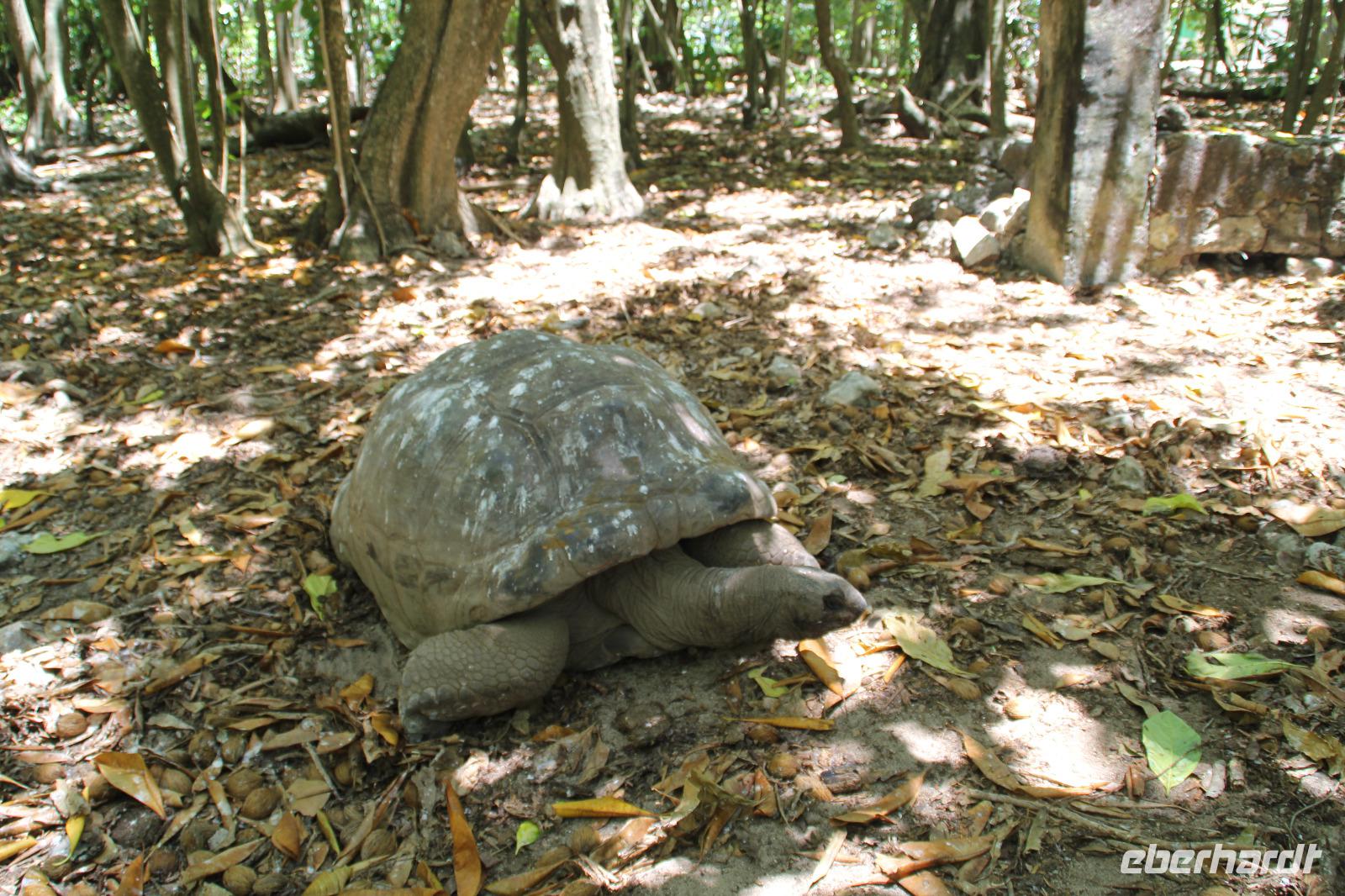 Nach dem Mittagessen an Bord, stiegen wir in ein kleines Schlauchboot um und fuhren direkt zum Strand der Insel Moyenne. Ein kleiner Aufstieg führte uns hinauf bis zur Kapelle der Insel, wo auch das Grab des Engländers Brendon Grimshaw zu finden ist, dem einst die Insel gehört hatte und der seitdem für die Erhaltung der ursprünglichen Natur hier gekämpft hatte. Außerdem soll es auf dieser Insel noch Piratenschätze geben. :-)
