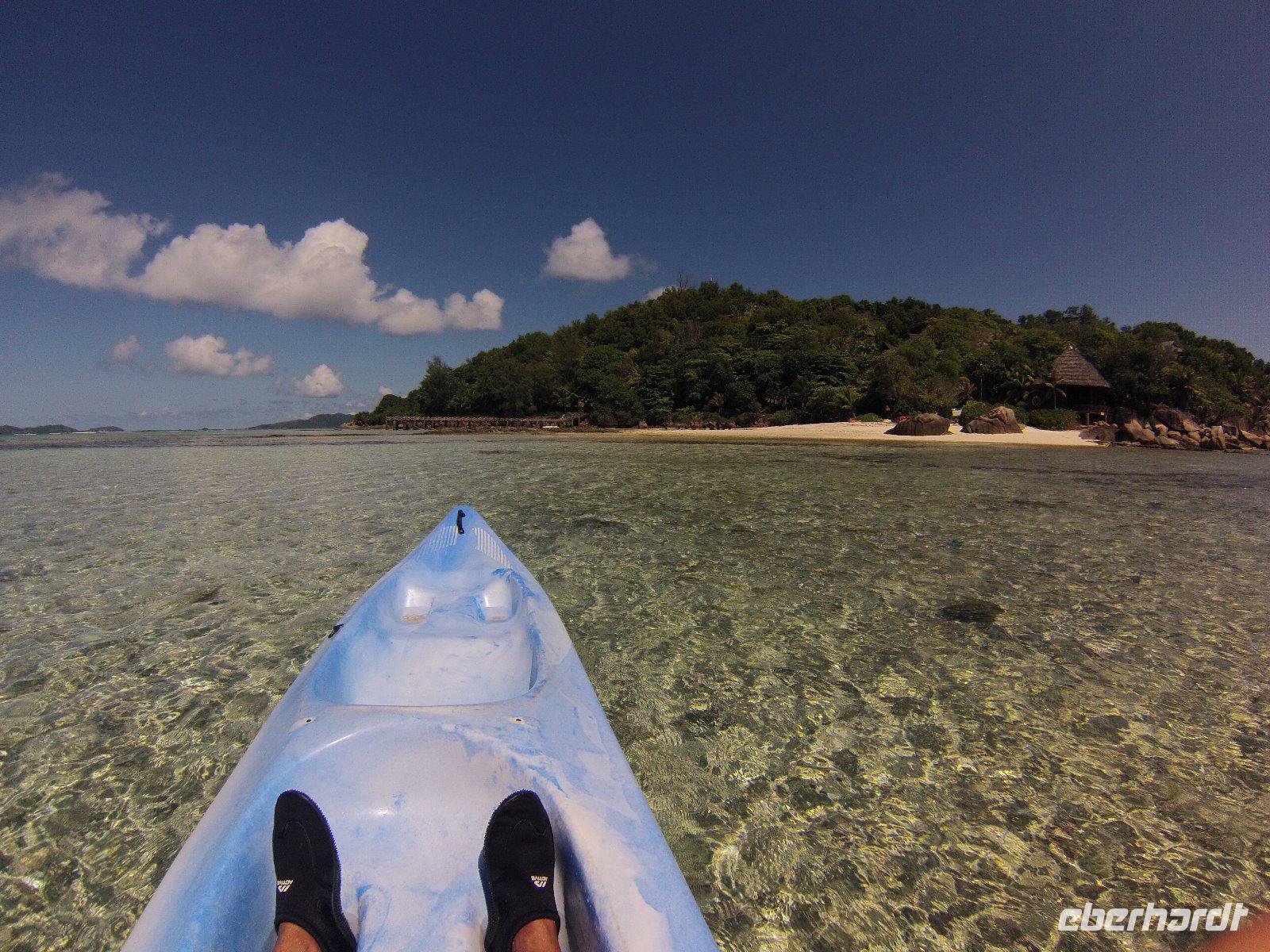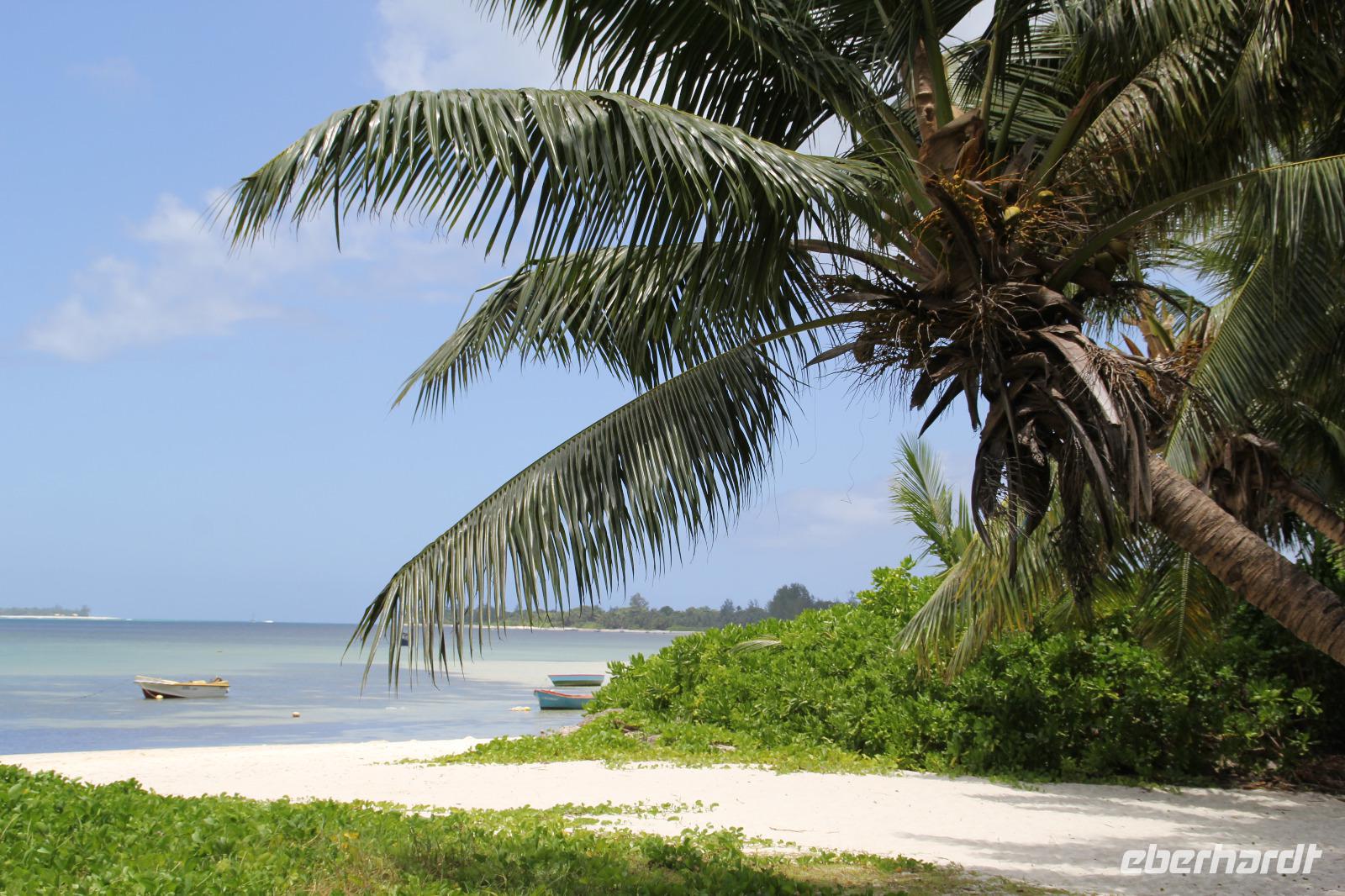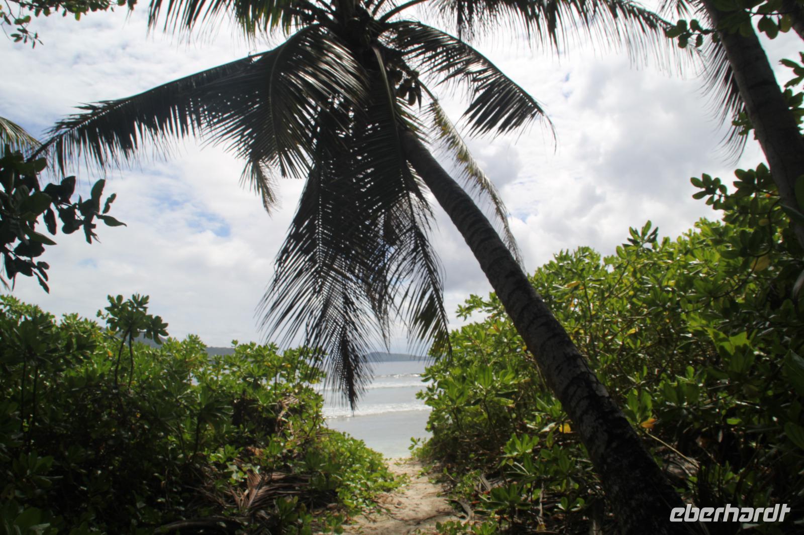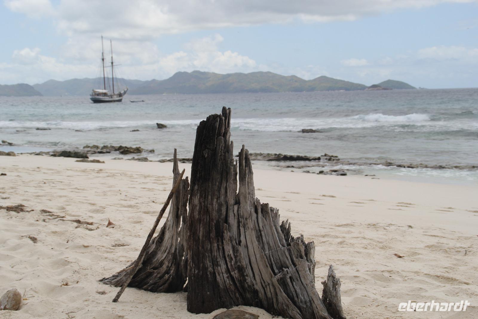 Nach dem Mittagessen an Bord, stiegen wir in ein kleines Schlauchboot um und fuhren direkt zum Strand der Insel Moyenne. Ein kleiner Aufstieg führte uns hinauf bis zur Kapelle der Insel, wo auch das Grab des Engländers Brendon Grimshaw zu finden ist, dem einst die Insel gehört hatte und der seitdem für die Erhaltung der ursprünglichen Natur hier gekämpft hatte. Außerdem soll es auf dieser Insel noch Piratenschätze geben. :-)