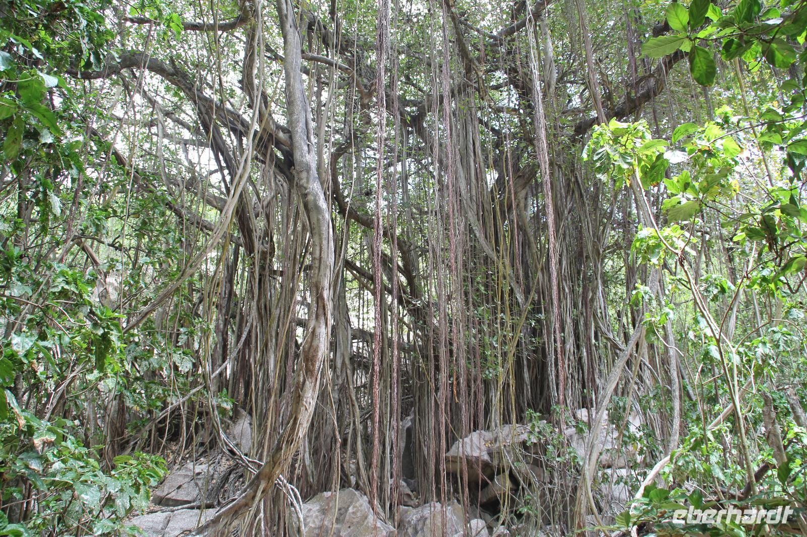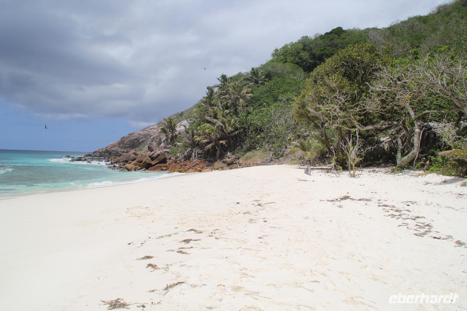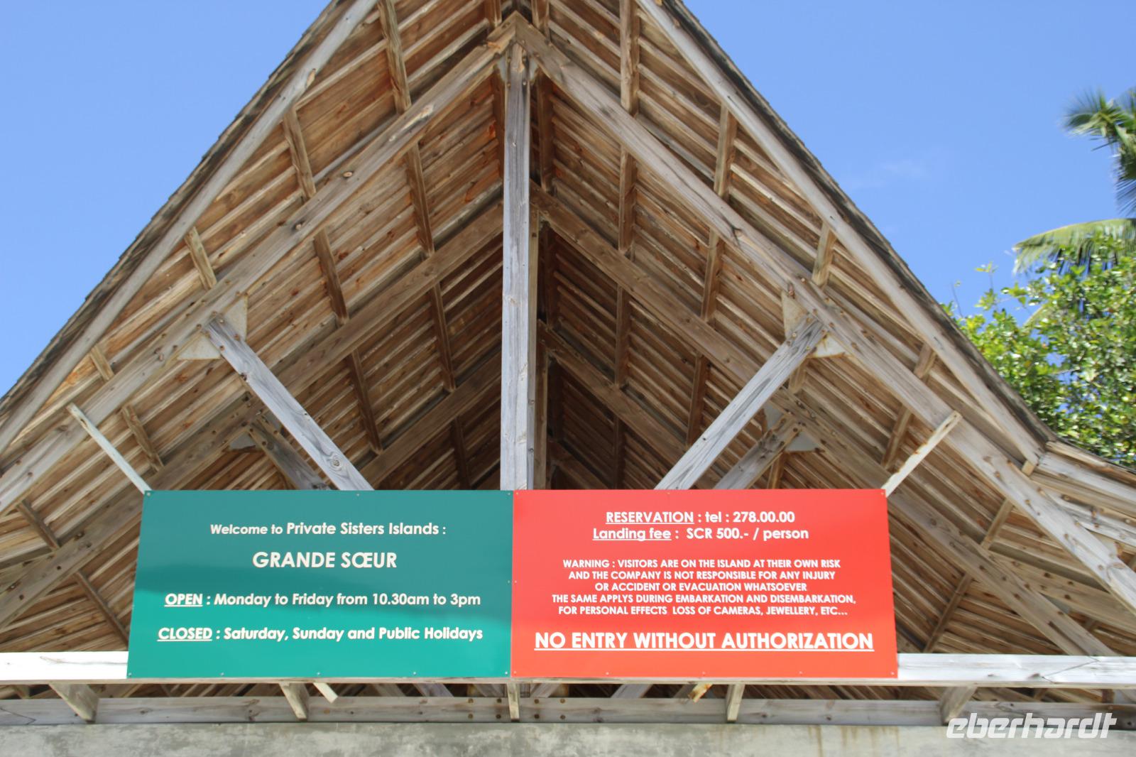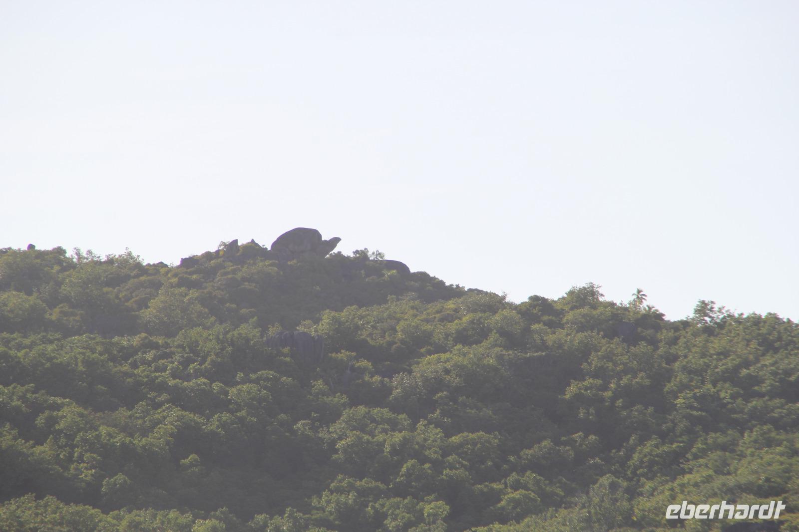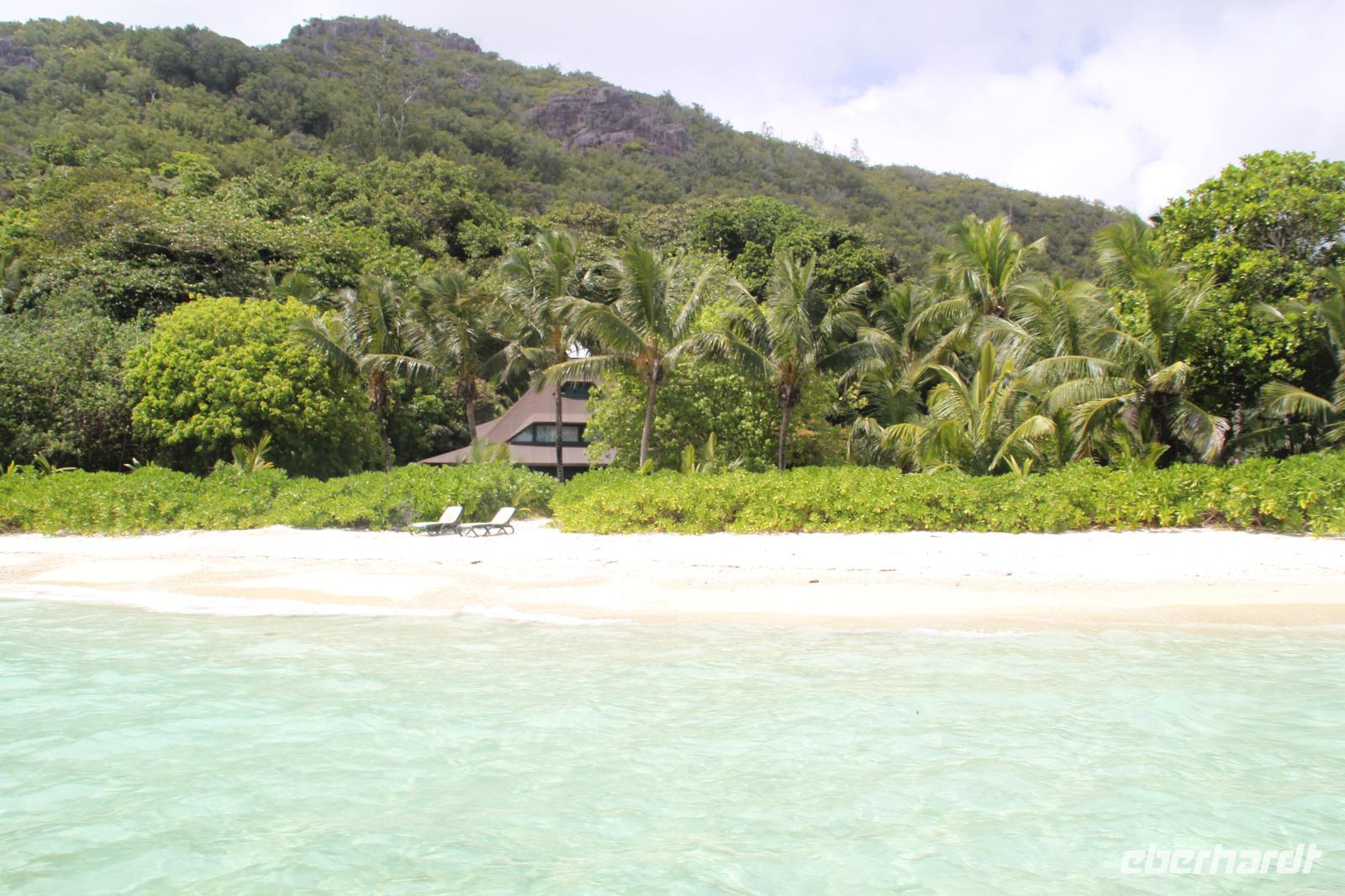 Nach dem Mittagessen an Bord, stiegen wir in ein kleines Schlauchboot um und fuhren direkt zum Strand der Insel Moyenne. Ein kleiner Aufstieg führte uns hinauf bis zur Kapelle der Insel, wo auch das Grab des Engländers Brendon Grimshaw zu finden ist, dem einst die Insel gehört hatte und der seitdem für die Erhaltung der ursprünglichen Natur hier gekämpft hatte. Außerdem soll es auf dieser Insel noch Piratenschätze geben. :-)