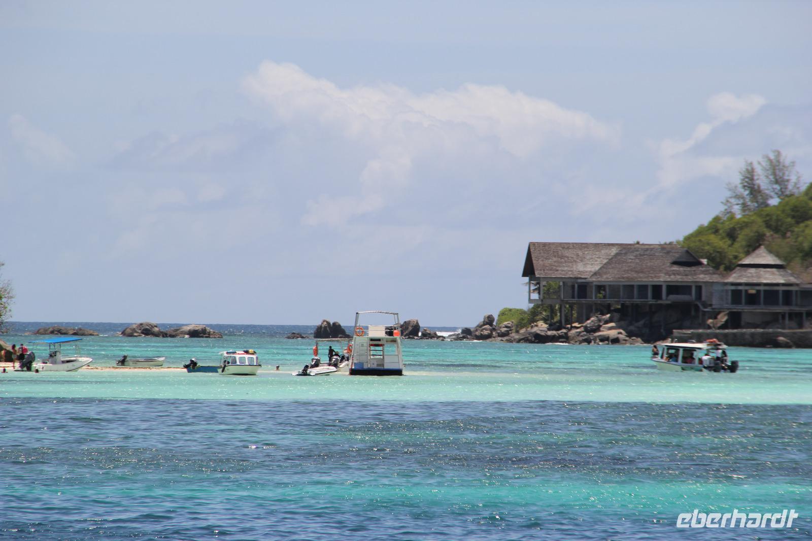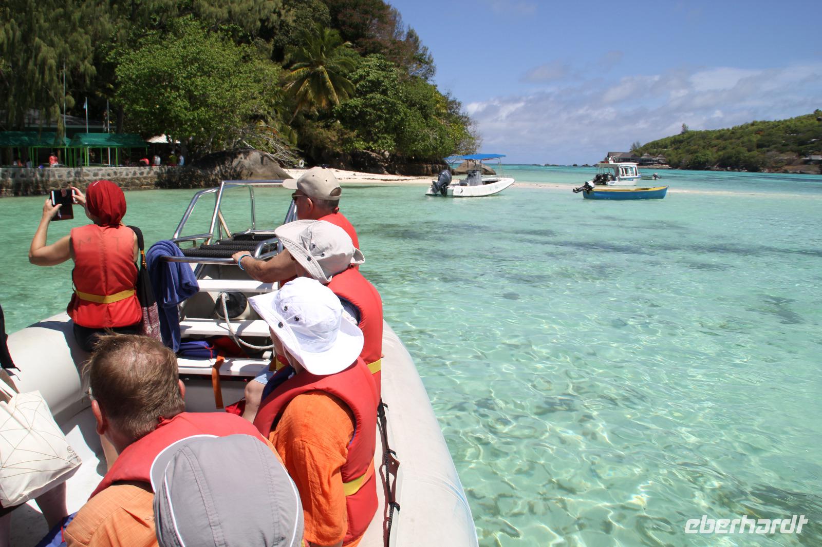 Nach der Badepause, legten wir noch einen Stopp vor der kleinen Insel St. Pierre ein. Hier gab es Gelegenheit, an den Felsen der Insel zu schnorcheln. Einige Gäste unserer Gruppe nutzten diese Gelegenheit, die anderen ruhten sich im Boot aus und beobachteten die Schnorchler. Zurück im Hotel nutzten wir die Teestunde und danach etwas Freizeit zum Entspannen, bevor wir uns wie jeden Abend zum gemeinsamen Essen im Restaurant versammelten und den Tag entspannt und bei leckerem Essen und vielleicht einem einheimischen Bier der Marke Seybrew ausklingen ließen.