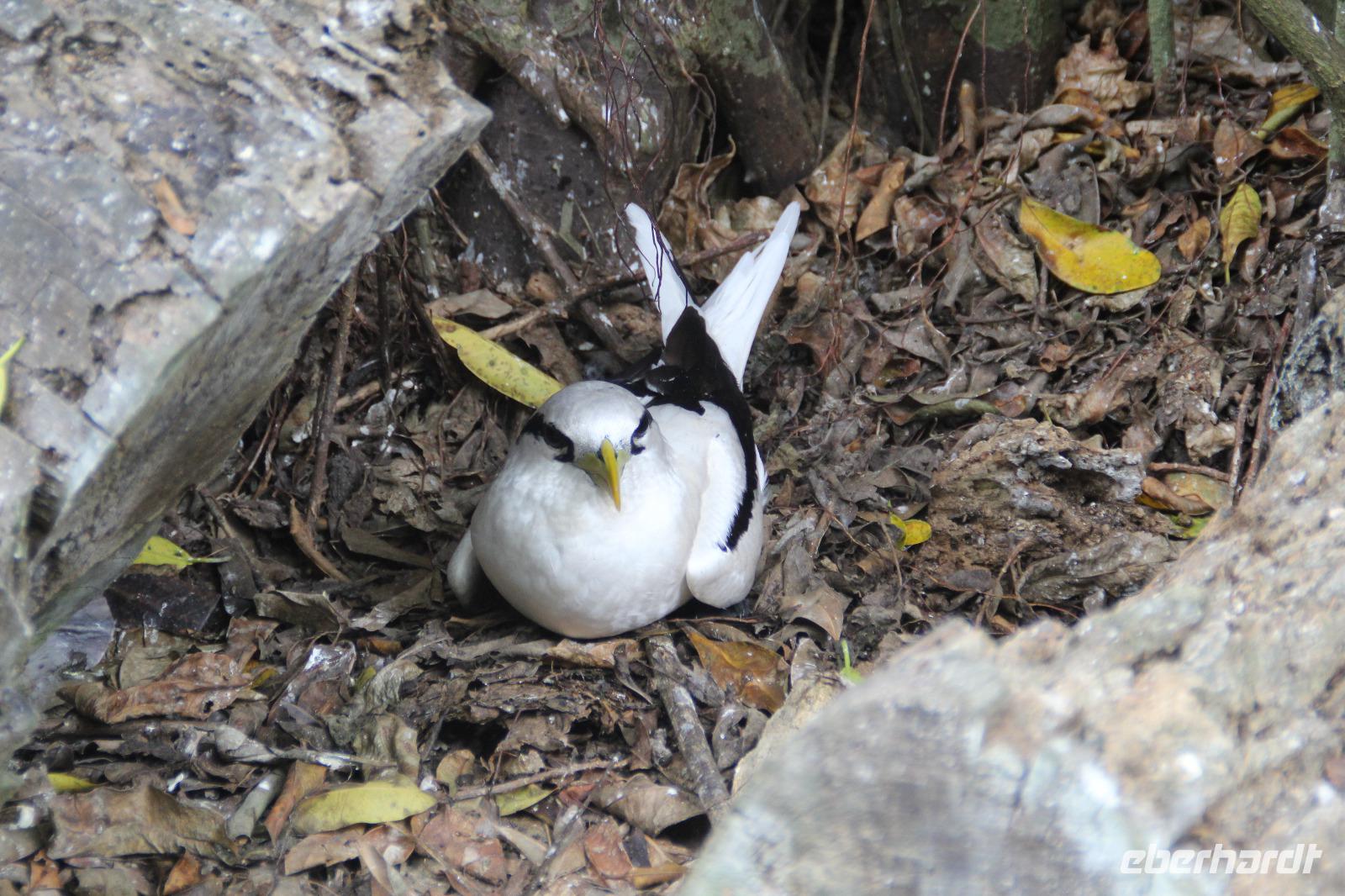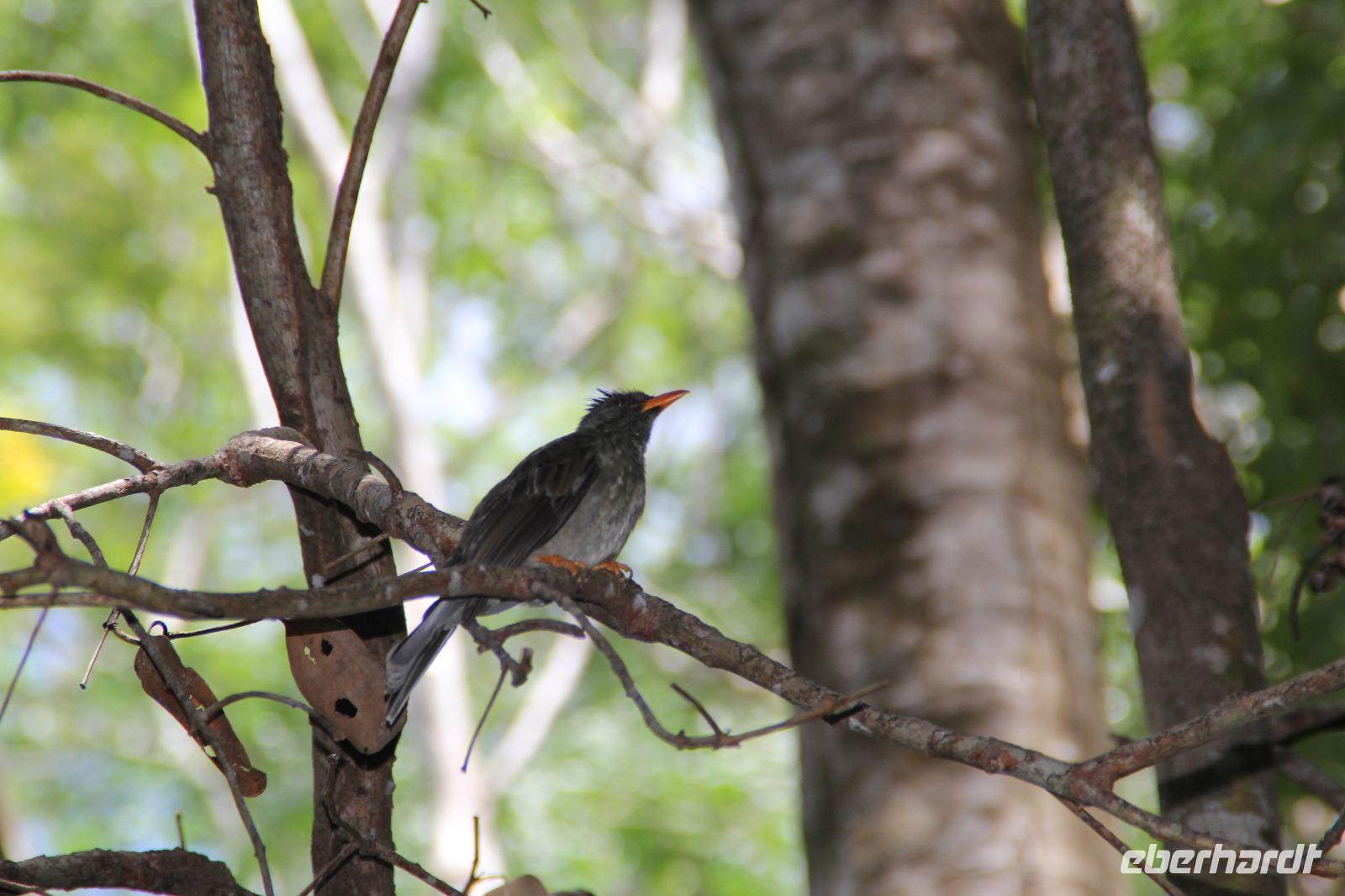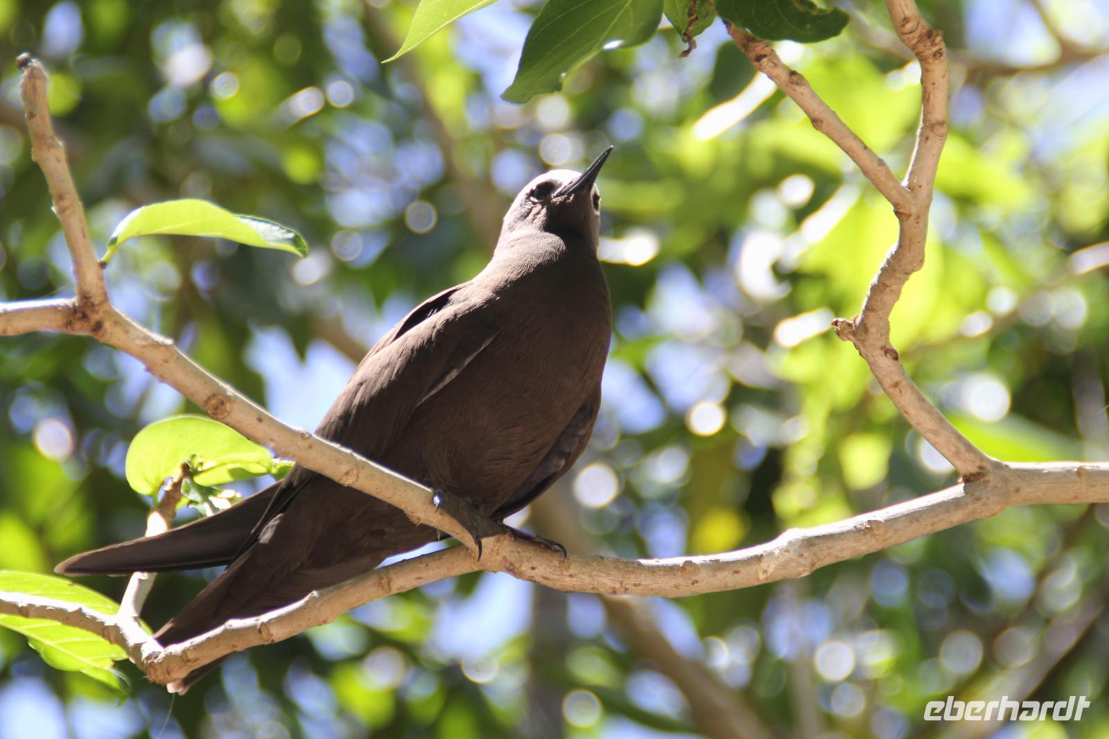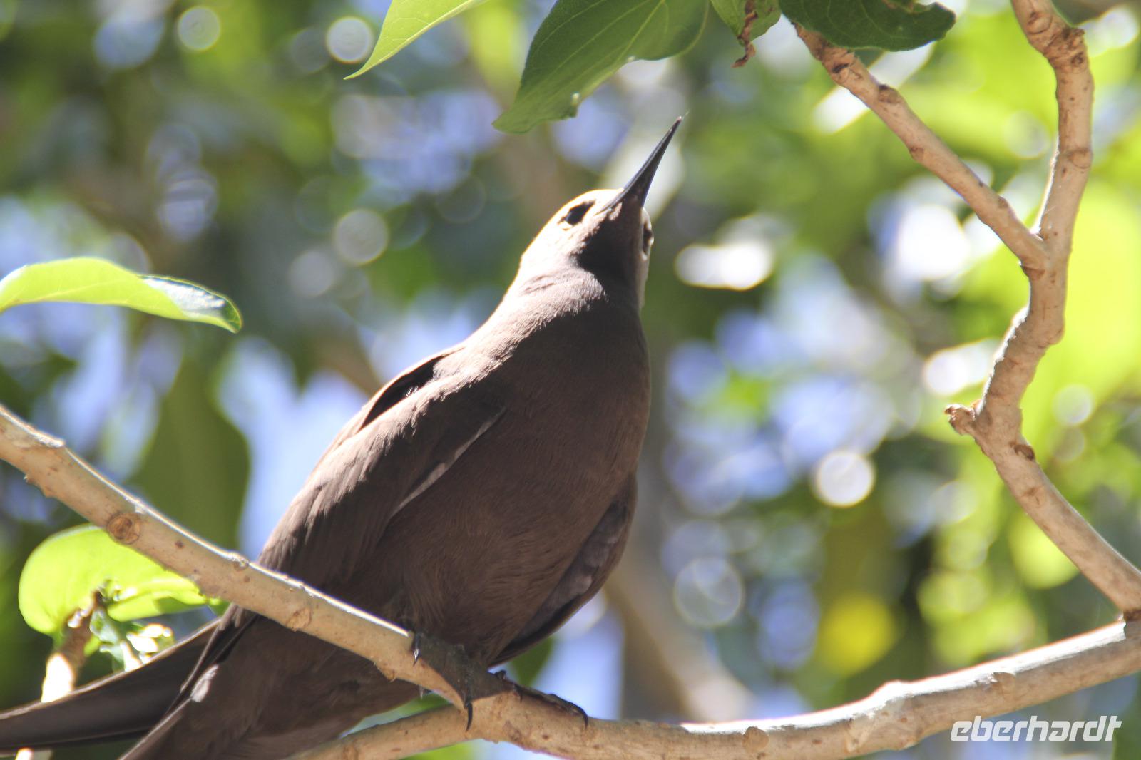 Von einem eigenen Ranger für unsere Gruppe wurden wir mit über die Insel geführt. Da die nistenden Vögel hier keine Feinde wie Katzen, Hunde oder Ratten zu befürchten haben, legen sie ihre Eier irgendwo ab: in hohlen Baumresten von Palmen, in Mulden zu ebener Erde oder auf bequem zu erreichenden Astvertiefungen. Dort werden die einzelnen Eier ausgebrütet und die putzigen kleinen Jungvögel sitzen dann dort, bewegen sich kein Stück, und werden gefüttert von den Eltern, bis sie schließlich flügge sind. In der Hauptsaison, leben mehrere zehntausend Vögel auf der Insel und sorgen so für eine ganze Menge tierischen Dünger, den Guano. Ganze Mauern sind hier aus hart gewordenen Guano-Brocken gebaut. Wir bestaunten nicht nur Vögel wie die Feenseeschwalbe, den Lesser Noddy oder den Weißschwanz-Tropikvogel, auch behäbigen Landschildkröten begegneten wir auf unserem einstündigen Spaziergang, die sich gern von uns am Kopf streicheln ließen. Nach unserem Rundgang bestiegen wir wieder unser Boot und fuhren nun auf die Insel Curieuse, wo uns schon ein leckeres Grillmittagessen erwartete. Unser Koch vom Hotel hatte gute Arbeit geleistet und so genossen wir leckeren Fisch, Hähnchen und Gemüse unter Palmen. Als Nachtisch ließen wir uns reife Maracuja, Bananen und Orangen schmecken. Auch die mitgebrachten eisgekühlten Getränke waren eine Wohltat. Nach dem Essen hatten wir noch Zeit, die Landschildkröten zu besuchen, die hier frei auf dem Rasen umher spazieren können. Es gibt sogar eine Art Kinderstation, in der der kleine Nachwuchs geschützt heranwachsen kann. Bevor wie Curieuse ganz verließen, machte unser Boot noch einmal Halt an einem anderen Strand auf der anderen Seite der Insel. Dort ließ ich wieder einmal meine Videodrohne aufsteigen, doch diesmal blendete die Sonne so stark, dass sie kurz in einer Palme fest hing und in den Sand hinunter fiel. Zum Glück funktionierte sie danach noch einwandfrei. :)