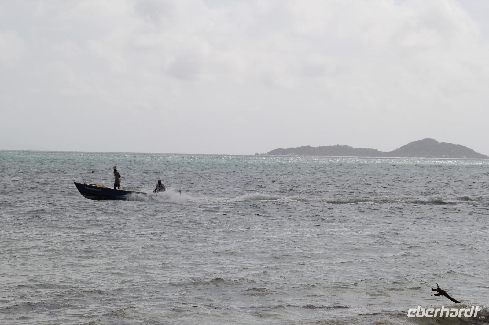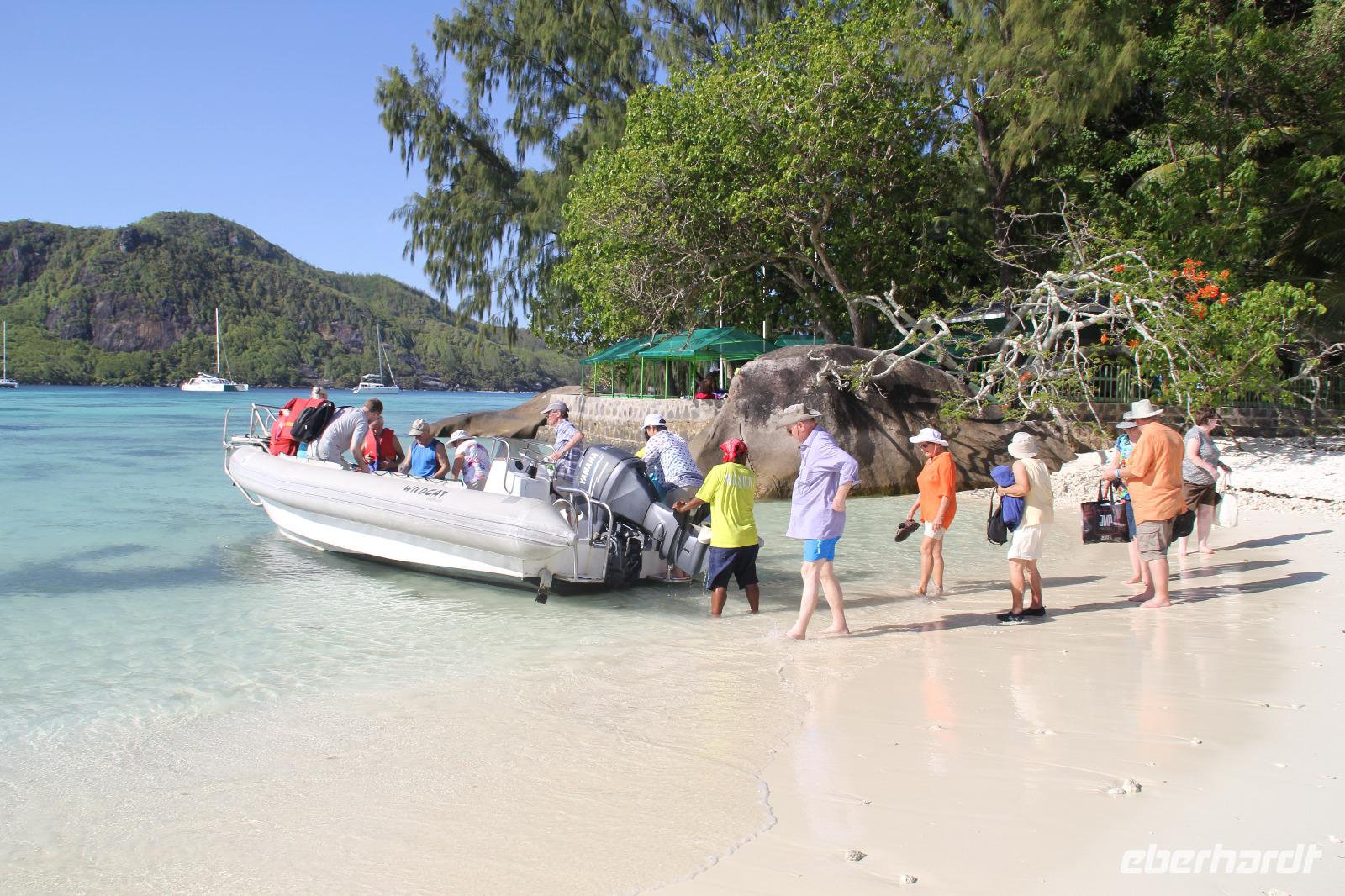 Es war ausreichend Zeit zum erkunden der Strände - Grand Anse und Petit Anse - die zu den schönsten Stränden der Welt zählen. Leider zog es sich nachmittags immer mehr und mehr zu, weshalb wir dann die Rückreise zum Jetty antraten. Dort angekommen regnete es so sehr in Strömen, als hätte jemand eine Gießkanne über uns gehalten. Unser Hotelskipper brachte und schließlich wieder sicher ins zurück in unser Resort. Zum Abendessen trafen wir uns alle wieder und genossen wie jeden Tag das Essen gemeinsam und ließen die Erlebnisse gemeinsam ausklingen.