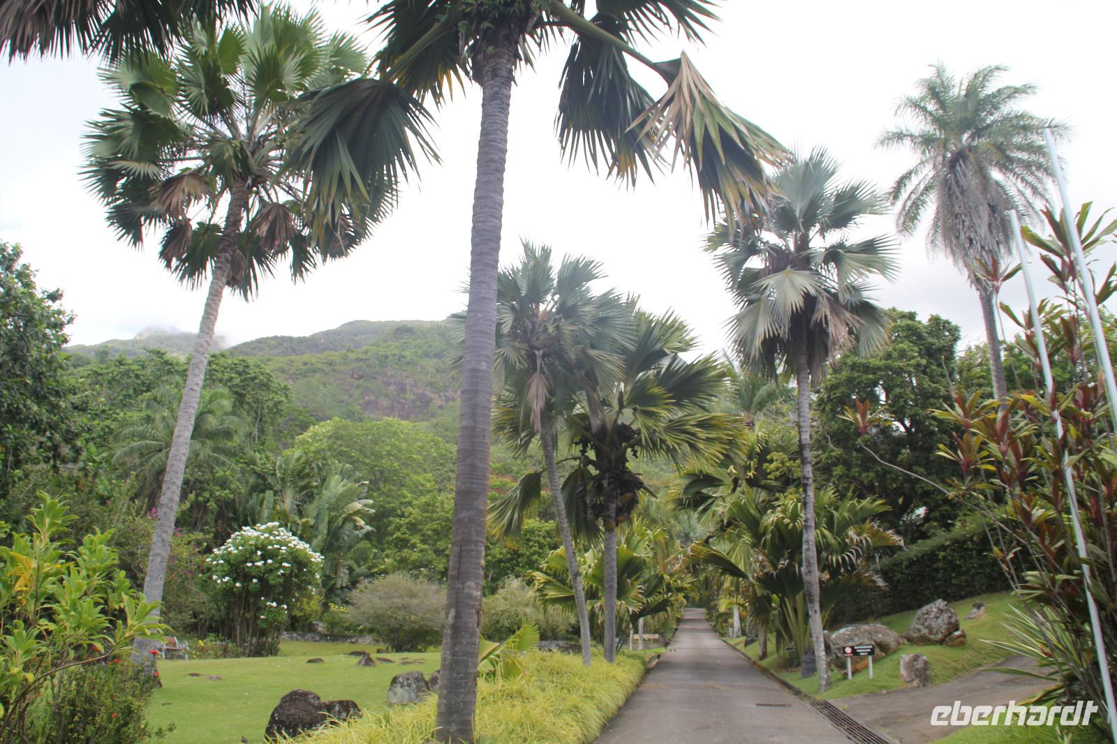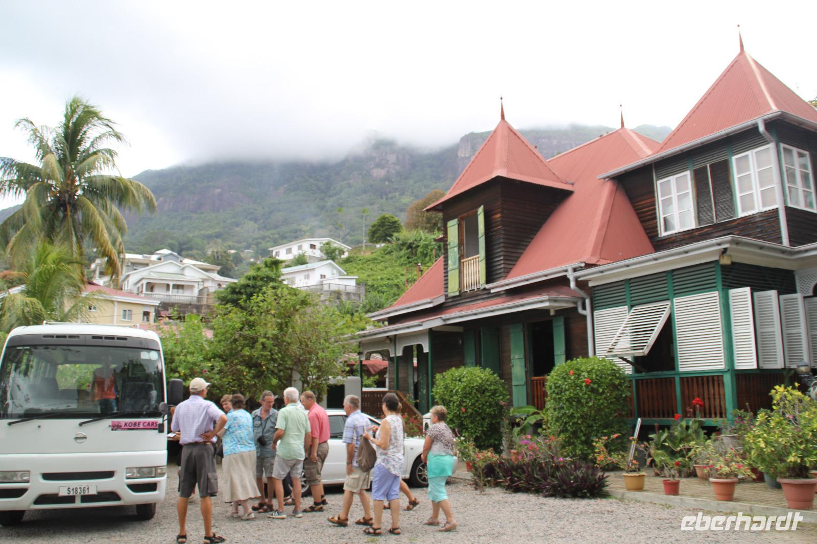 Mit unserem örtlichen Reiseleiter Cyril erkundeten wir aber heute noch zuvor die Hauptinsel der Seychellen bei einer Rundfahrt. Zuerst besuchten wir den wunderschönen Botanischen Garten der Insel. Bei einem einstündigen Rundgang erklärte uns Cyril viel über die Tier- und Pflanzenwelt und das Leben der Menschen hier auf Mahé. Anschließend fuhren wir auf der „Sans Souci Road" zum Aussichtspunkt der Mission Lodge.