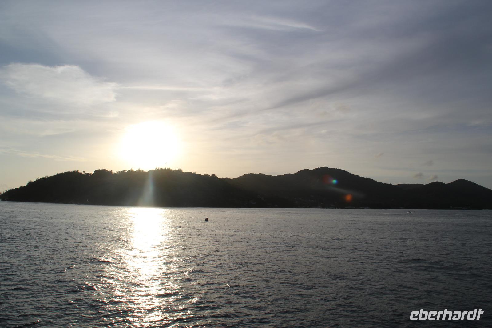 Am späten Nachmittag wurden wir mit unserem Gepäck hinüber zum Praslin Jetty gebracht. Von da aus nutzten wir wieder die Fähre hinüber nach Mahé.