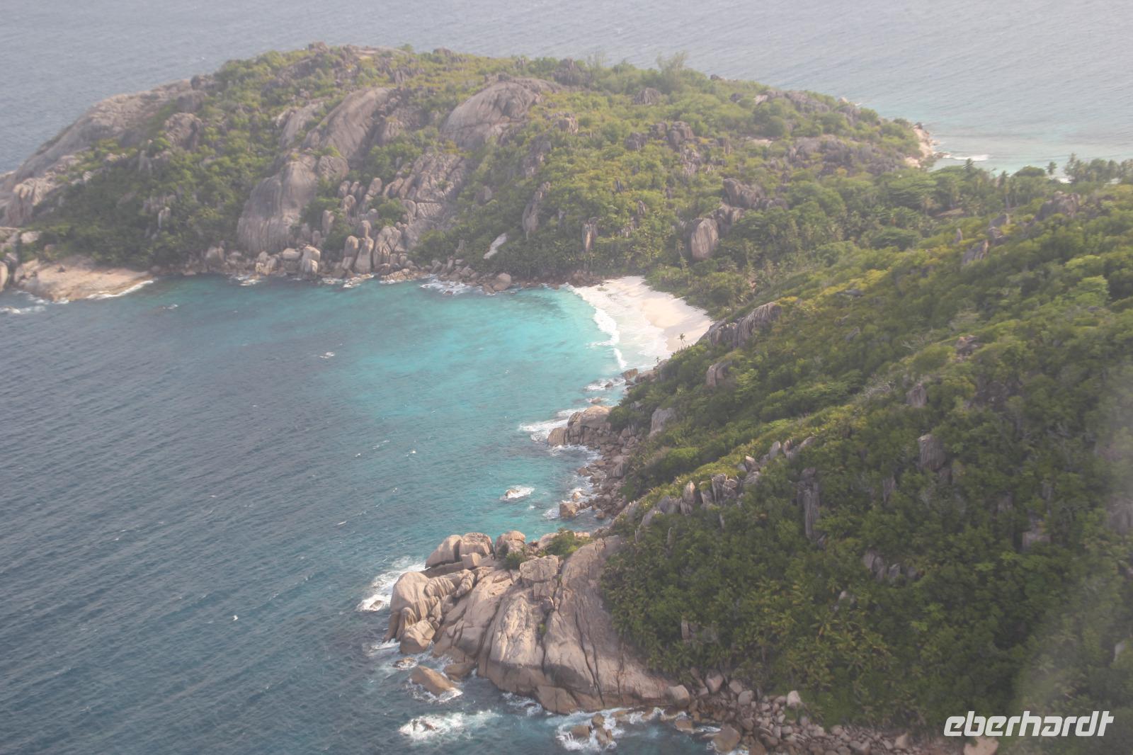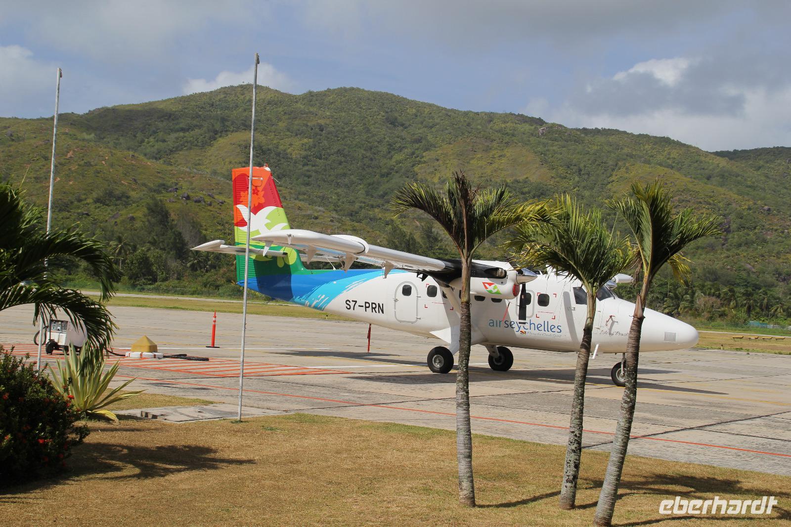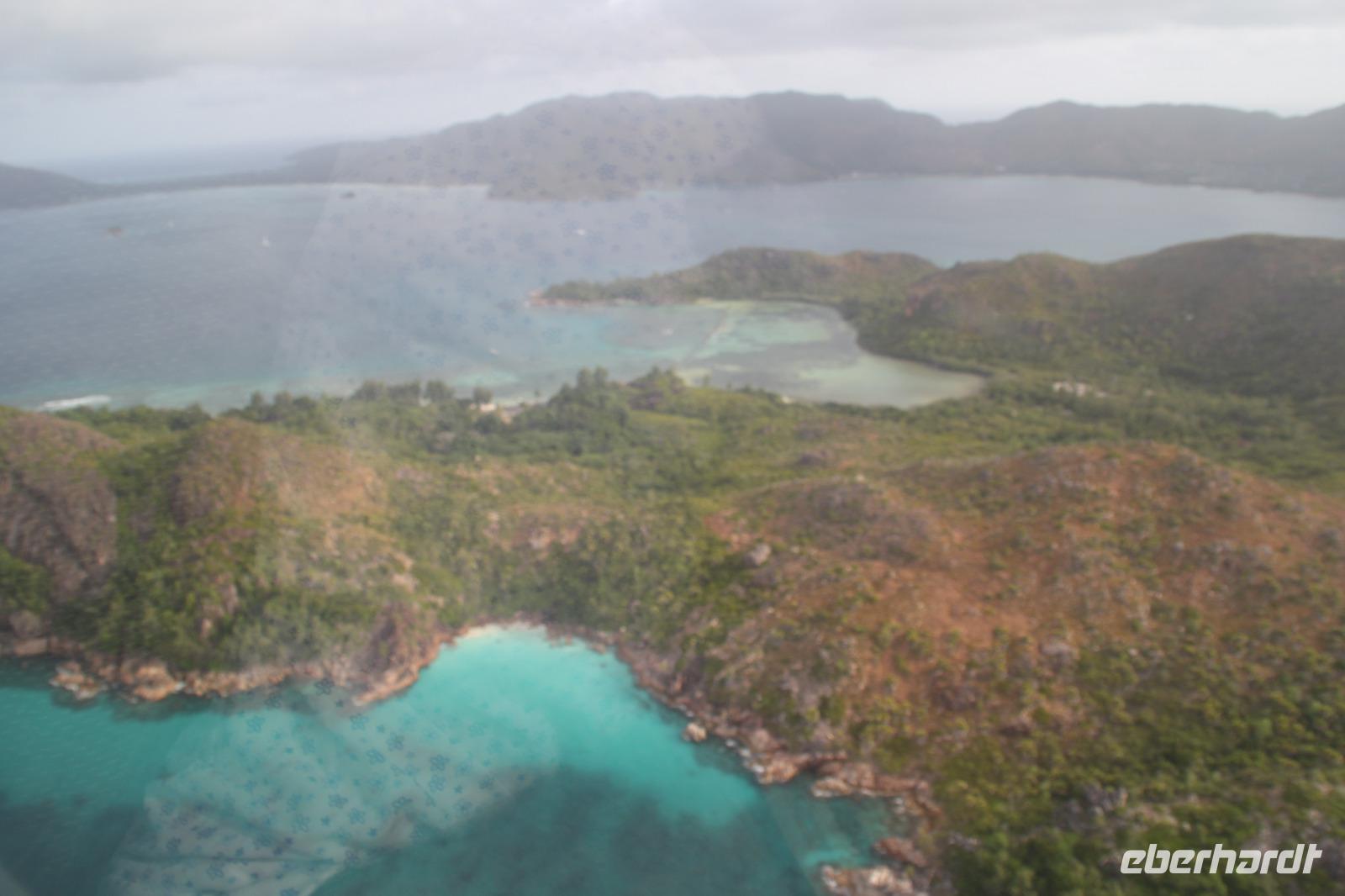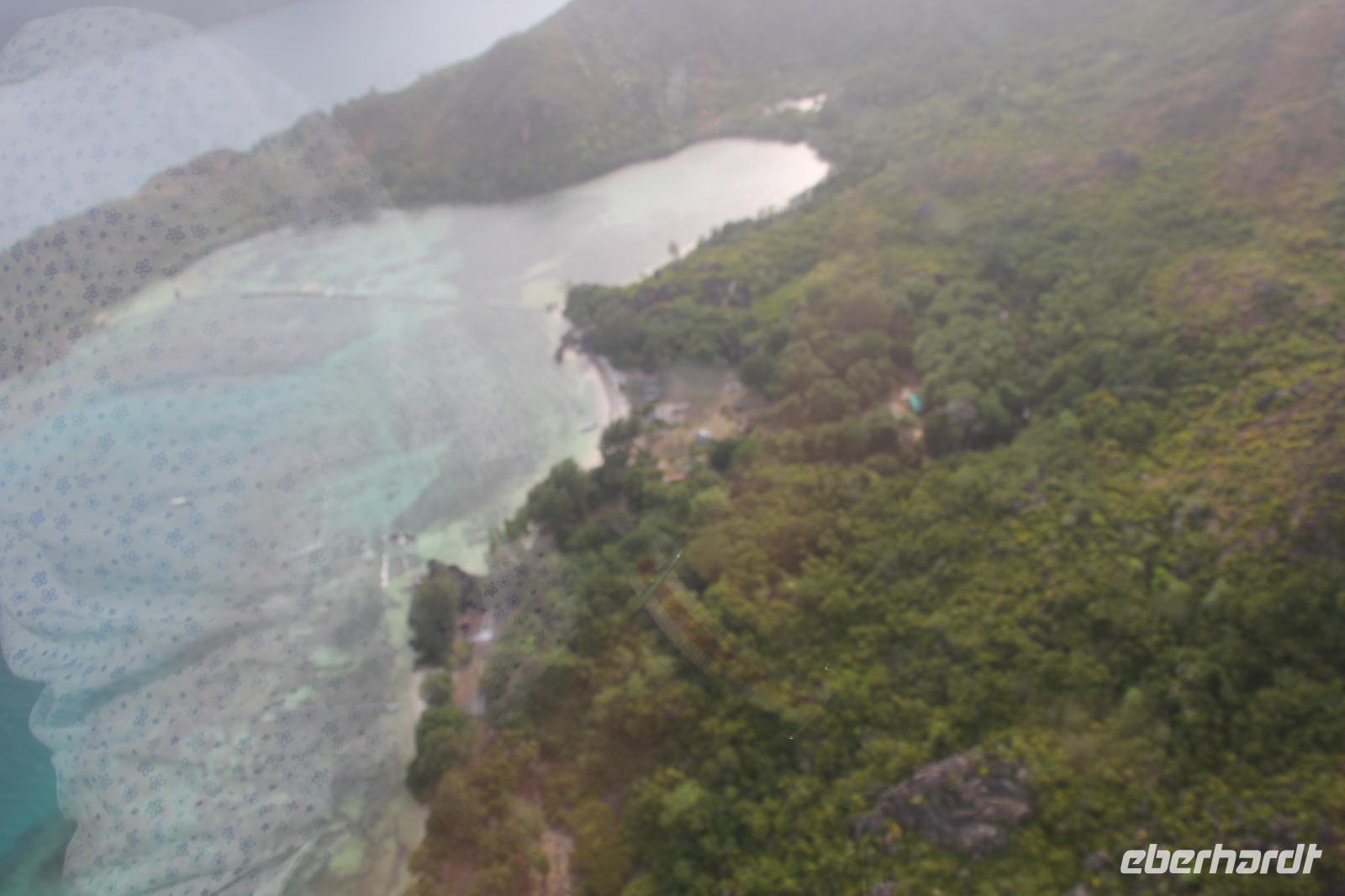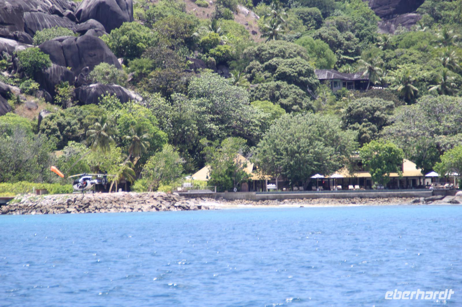 An unserem 5. Reisetag stand erst einmal Freizeit an. Alle Gäste ruhten sich aus und genossen Sonne, Strand und Meer. Am Nachmittag fuhr ich mit 3 Reisegästen zum Flughafen von Praslin, um mit einem Helikopter über die Inselwelt zu fliegen. Gemeinsam mit unserem örtlichen Reiseleiter Cyril konnten wir diesen Flug organisieren, weil an dem Tag glücklicher weiße der Hubschrauber Gäste von Mahé nach Praslin brachte.