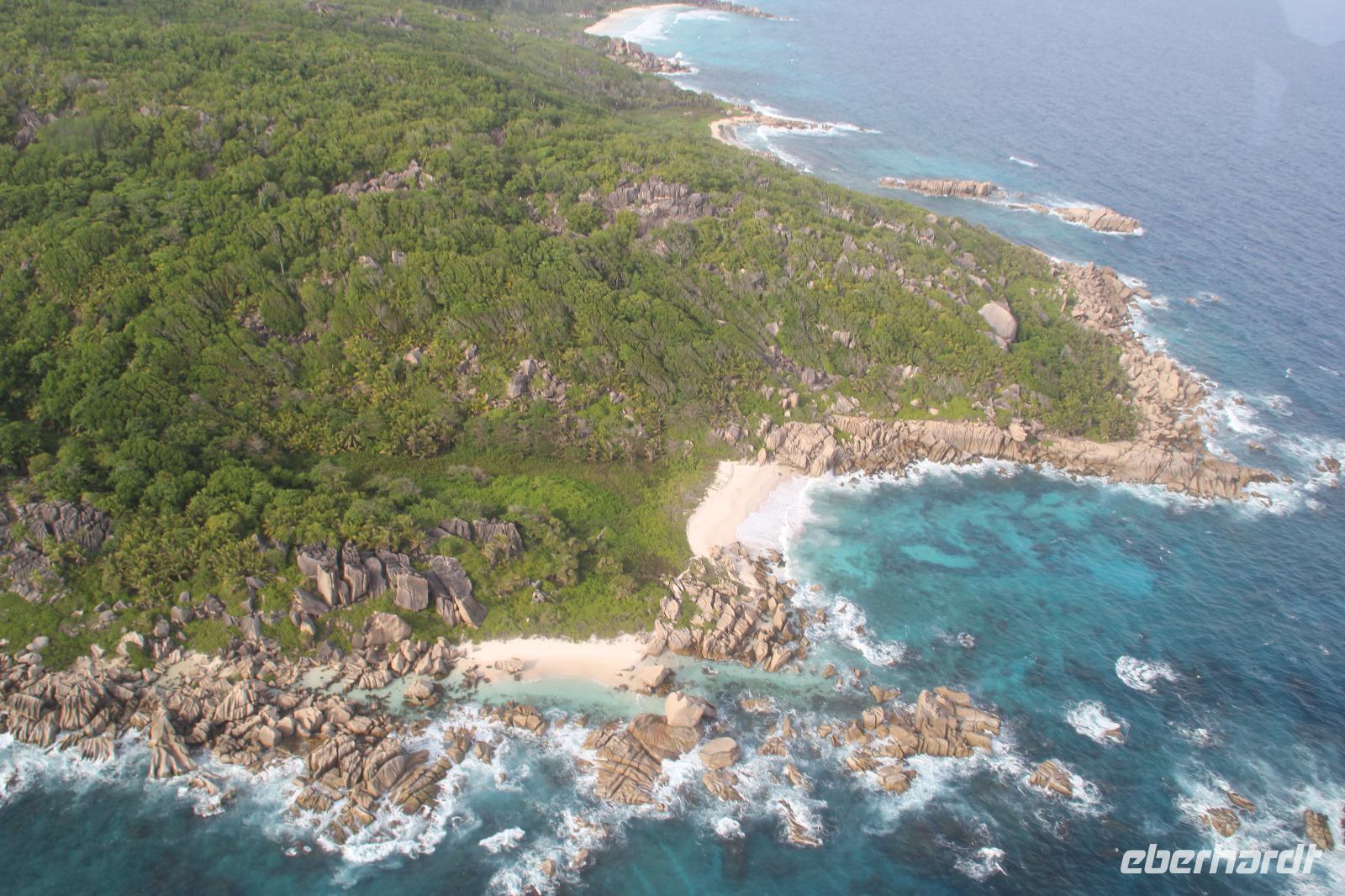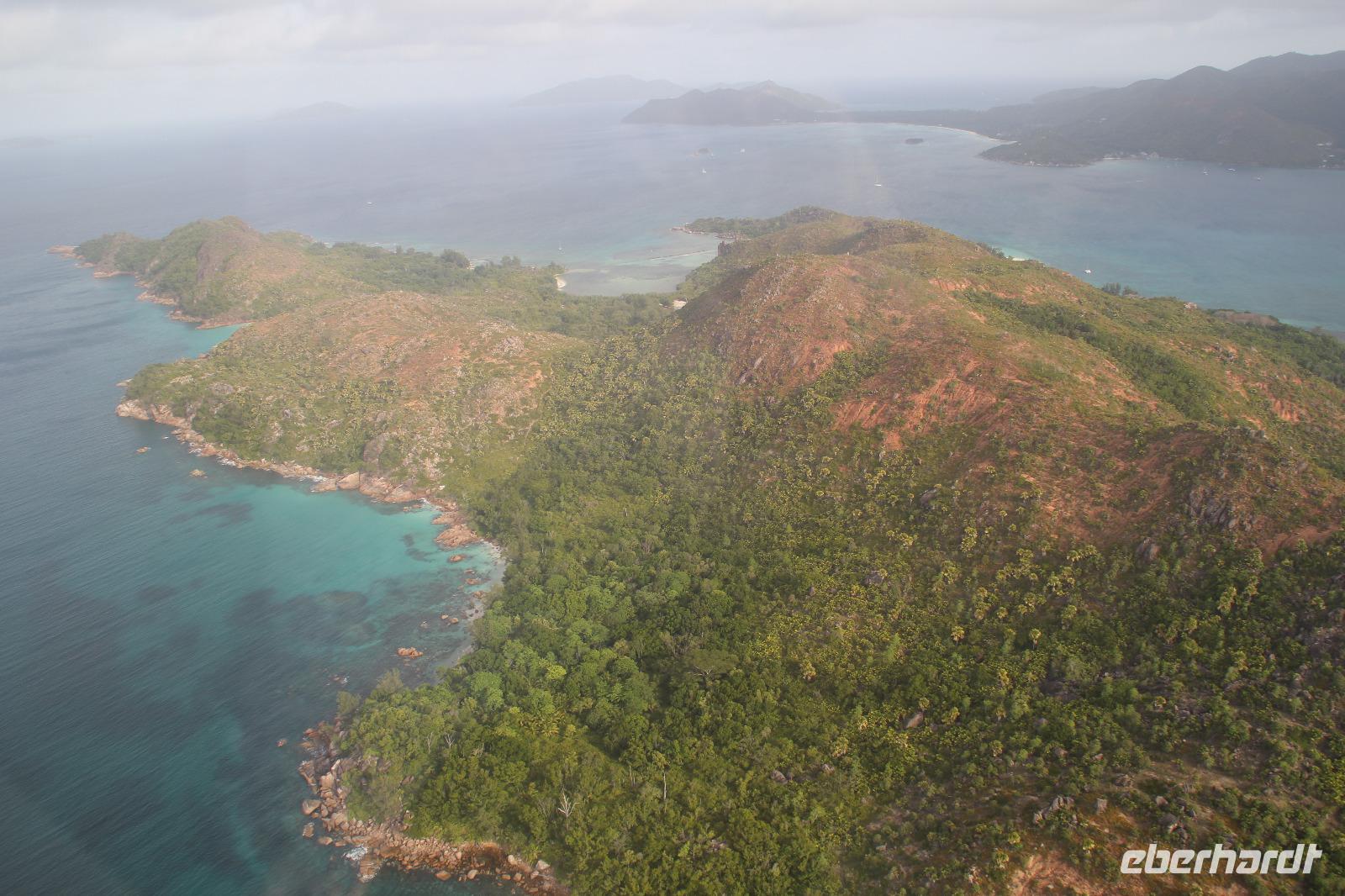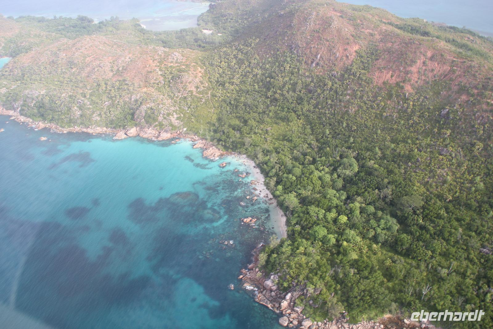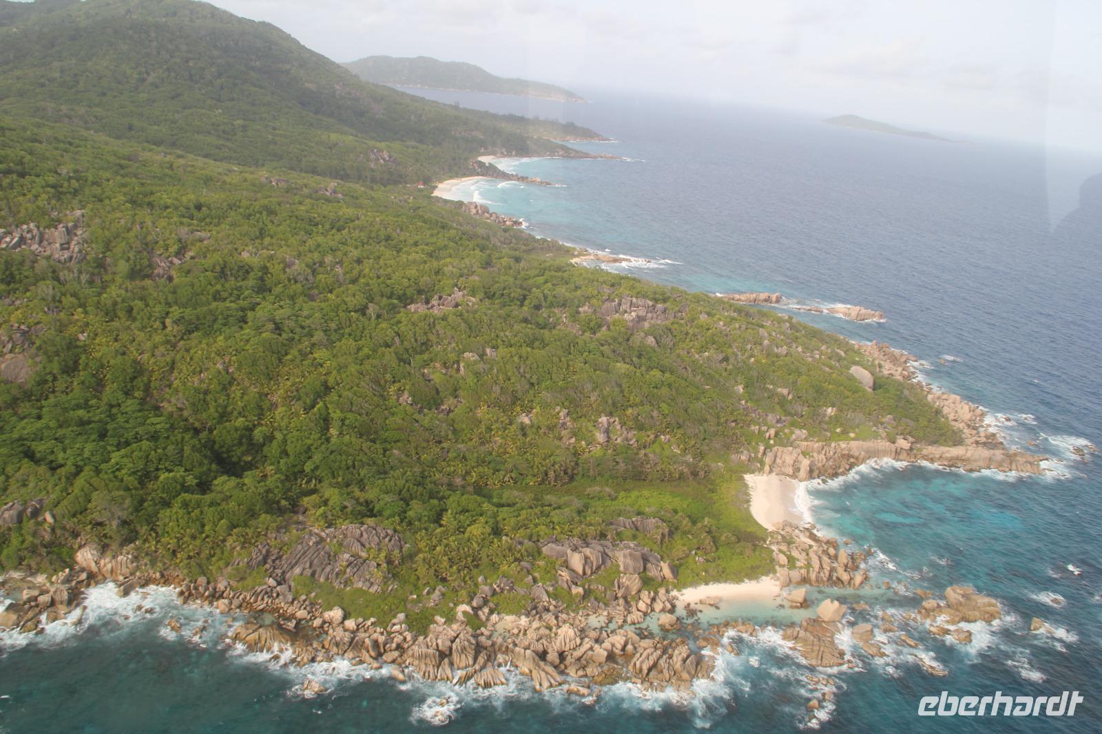 An unserem 5. Reisetag stand erst einmal Freizeit an. Alle Gäste ruhten sich aus und genossen Sonne, Strand und Meer. Am Nachmittag fuhr ich mit 3 Reisegästen zum Flughafen von Praslin, um mit einem Helikopter über die Inselwelt zu fliegen. Gemeinsam mit unserem örtlichen Reiseleiter Cyril konnten wir diesen Flug organisieren, weil an dem Tag glücklicher weiße der Hubschrauber Gäste von Mahé nach Praslin brachte.