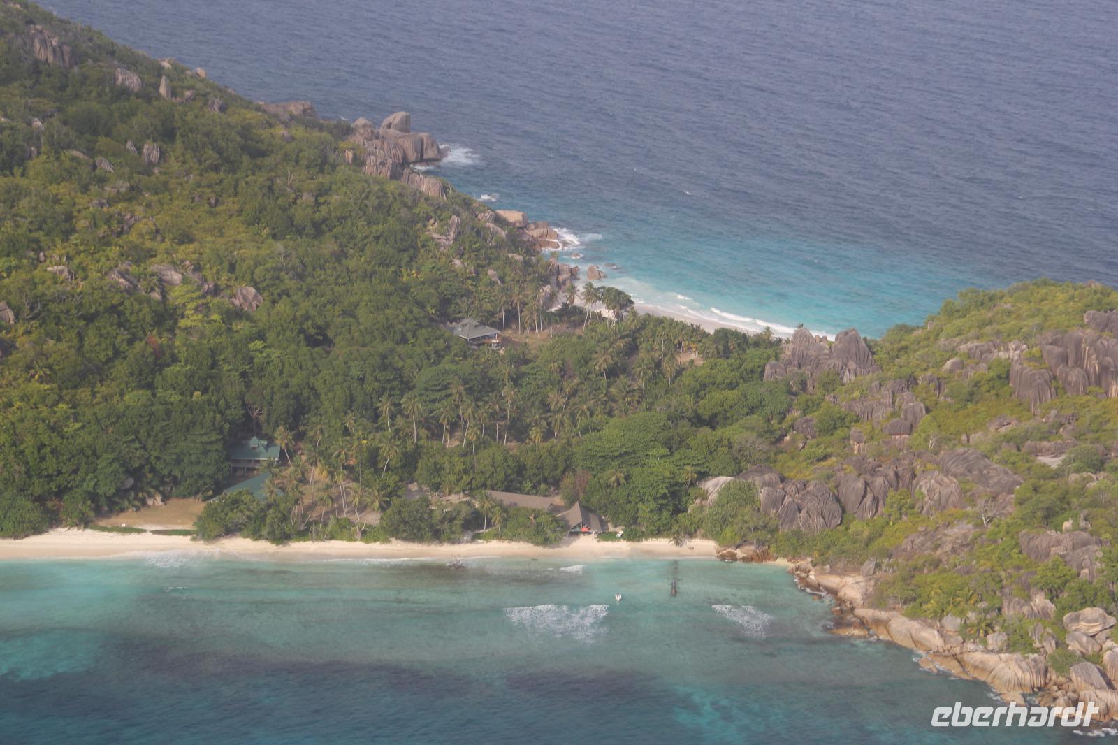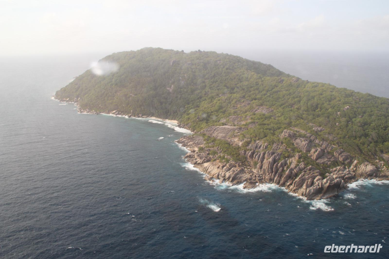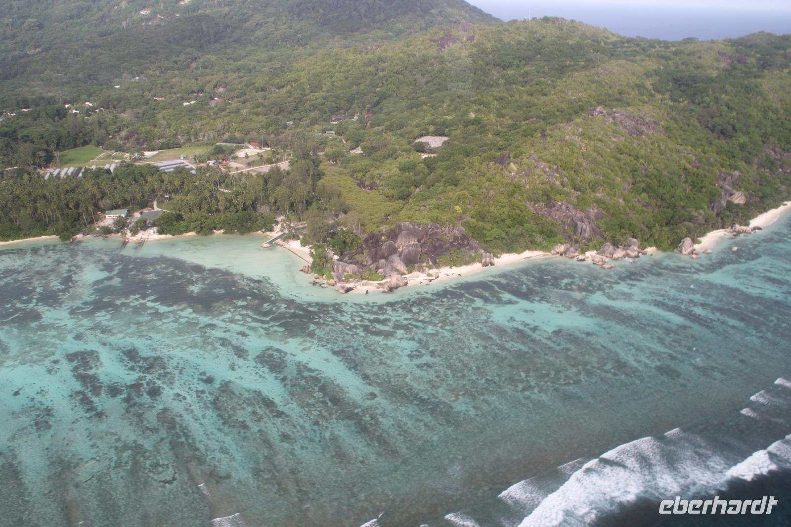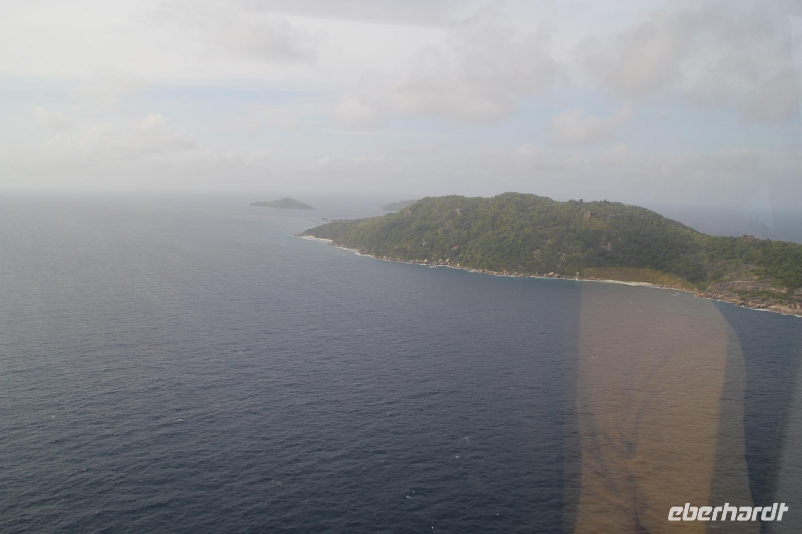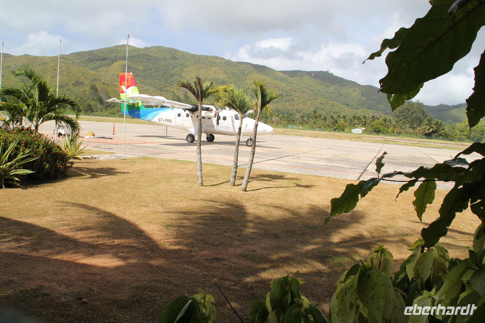 An unserem 5. Reisetag stand erst einmal Freizeit an. Alle Gäste ruhten sich aus und genossen Sonne, Strand und Meer. Am Nachmittag fuhr ich mit 3 Reisegästen zum Flughafen von Praslin, um mit einem Helikopter über die Inselwelt zu fliegen. Gemeinsam mit unserem örtlichen Reiseleiter Cyril konnten wir diesen Flug organisieren, weil an dem Tag glücklicher weiße der Hubschrauber Gäste von Mahé nach Praslin brachte.