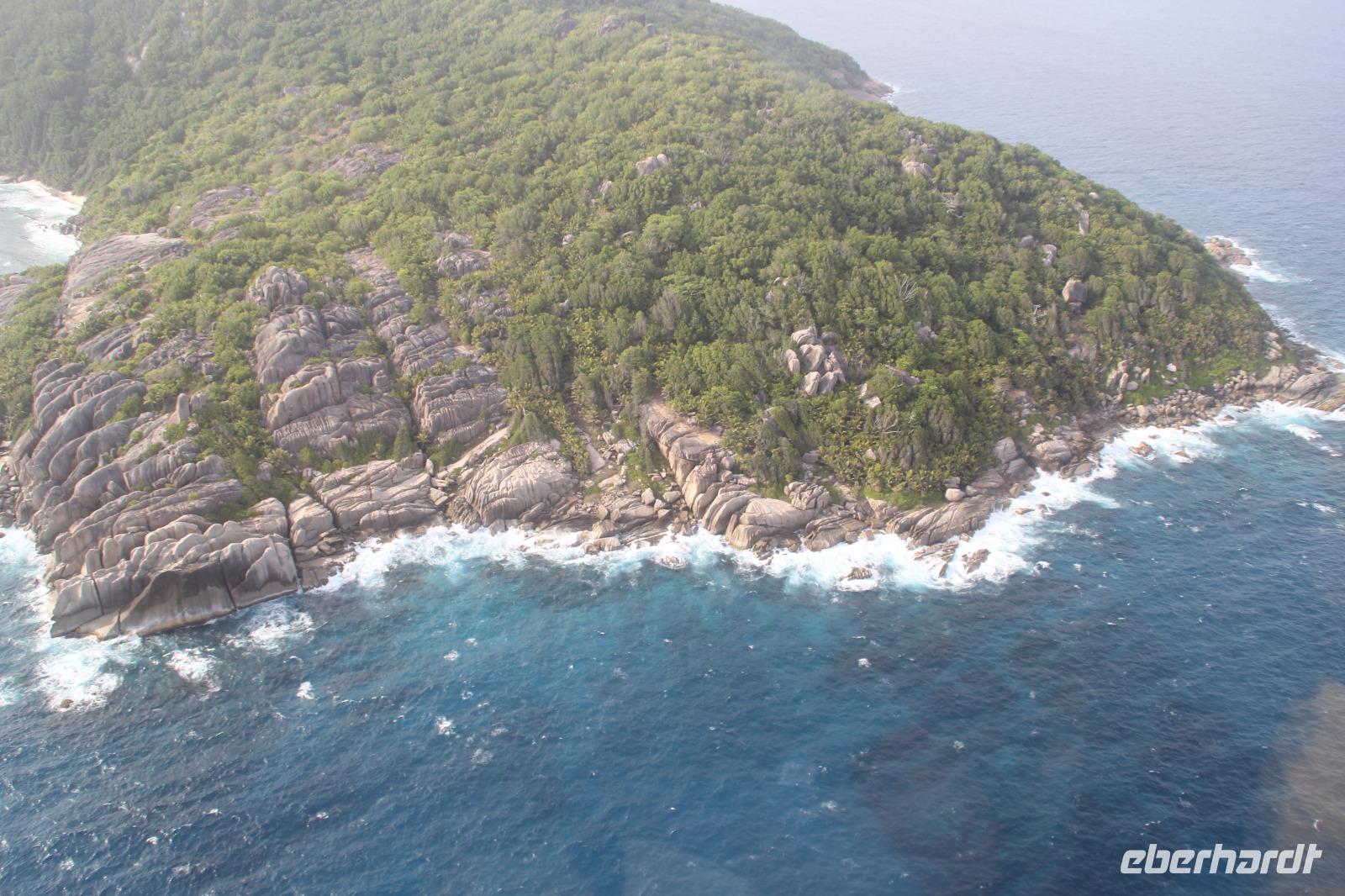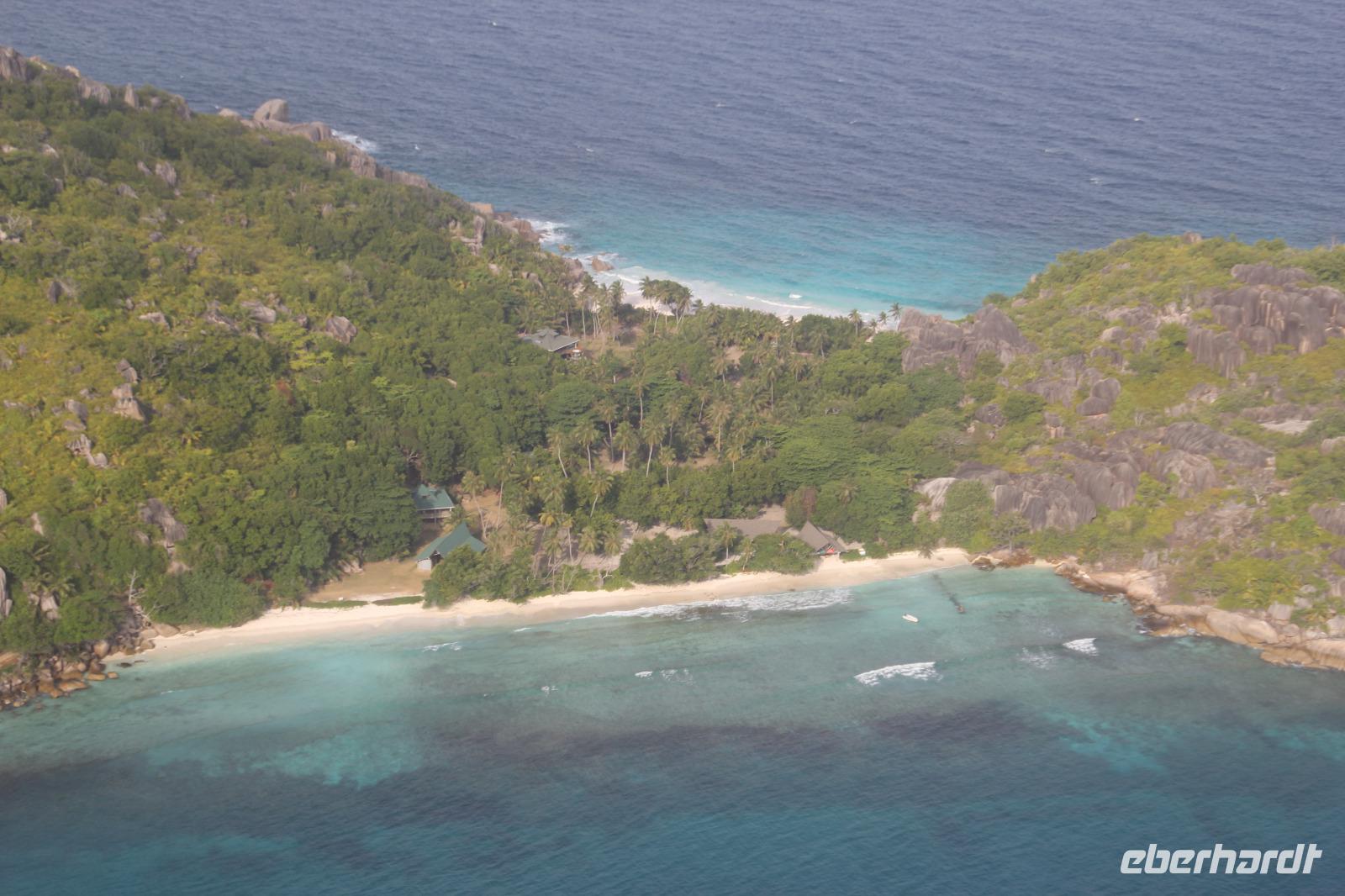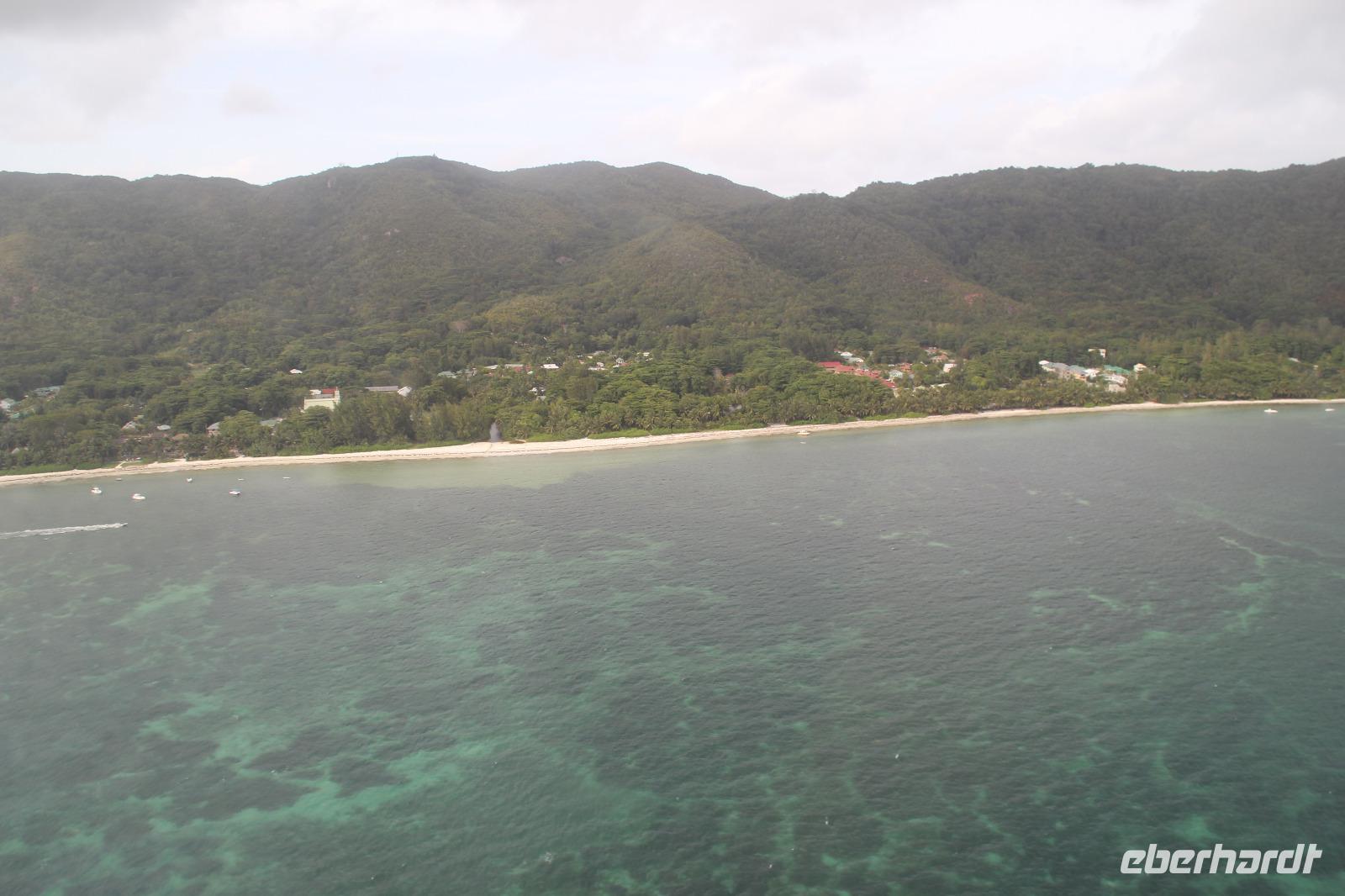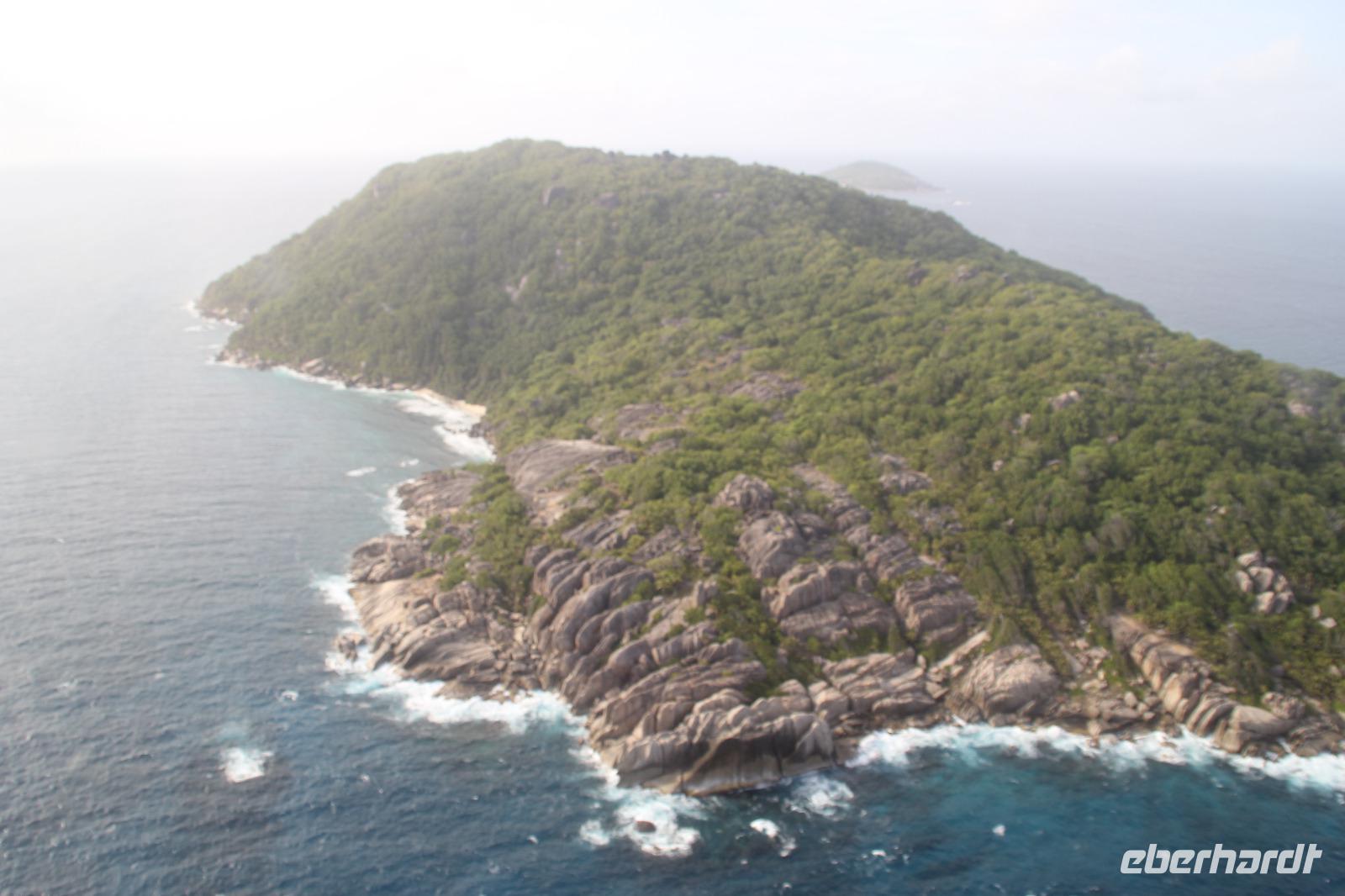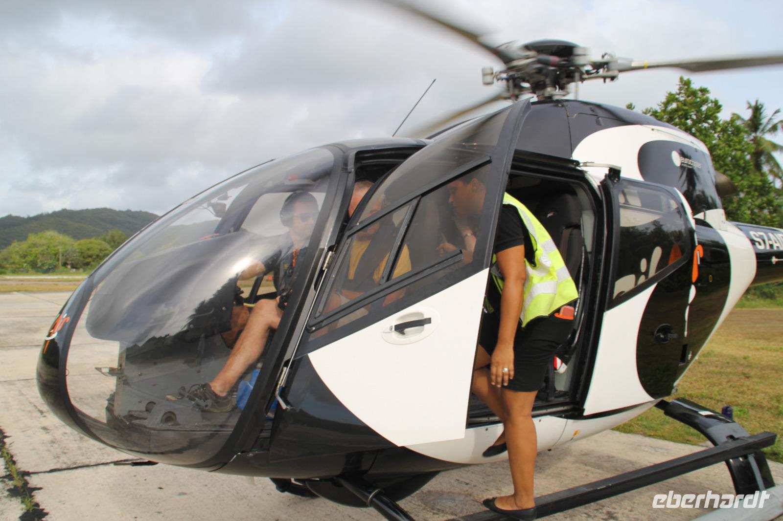 An unserem 5. Reisetag stand erst einmal Freizeit an. Alle Gäste ruhten sich aus und genossen Sonne, Strand und Meer. Am Nachmittag fuhr ich mit 3 Reisegästen zum Flughafen von Praslin, um mit einem Helikopter über die Inselwelt zu fliegen. Gemeinsam mit unserem örtlichen Reiseleiter Cyril konnten wir diesen Flug organisieren, weil an dem Tag glücklicher weiße der Hubschrauber Gäste von Mahé nach Praslin brachte.