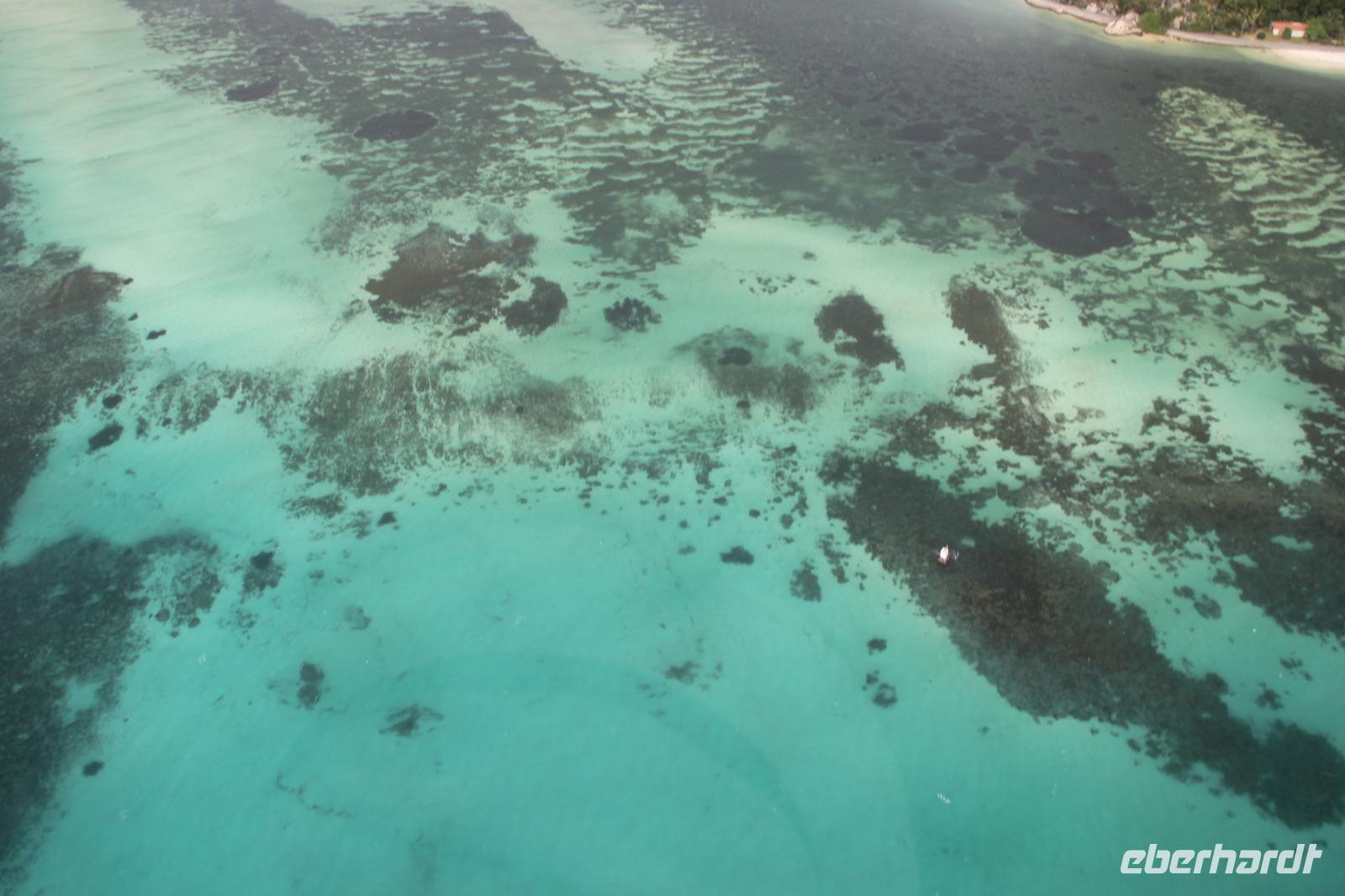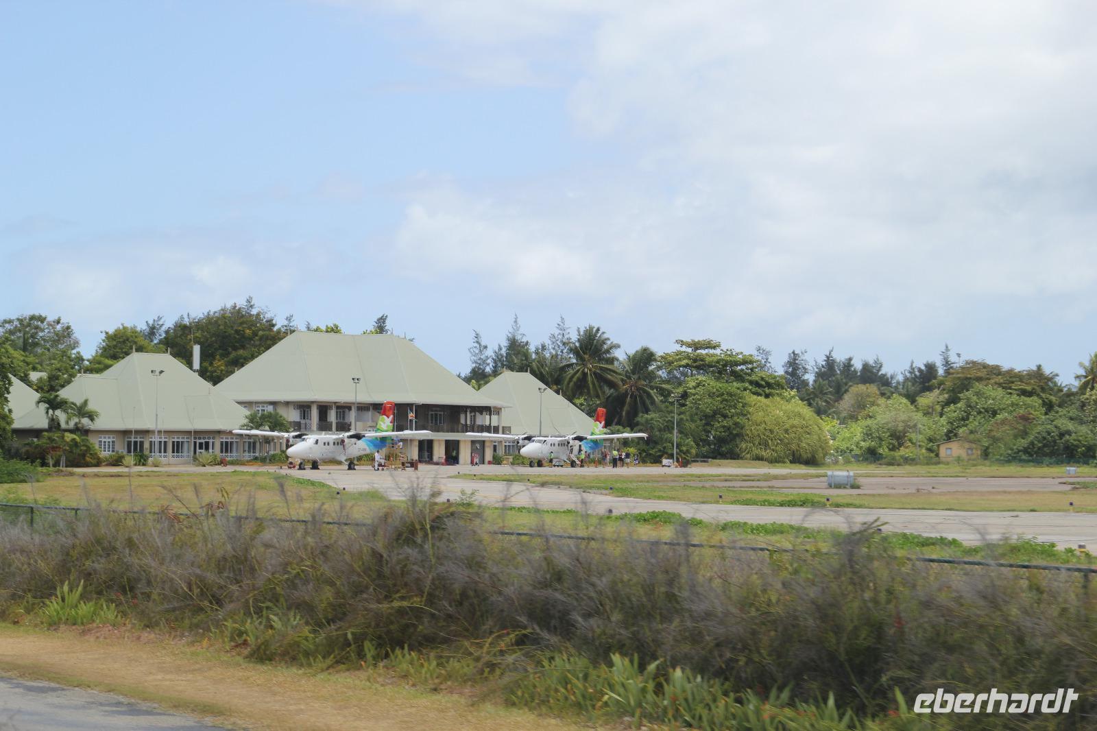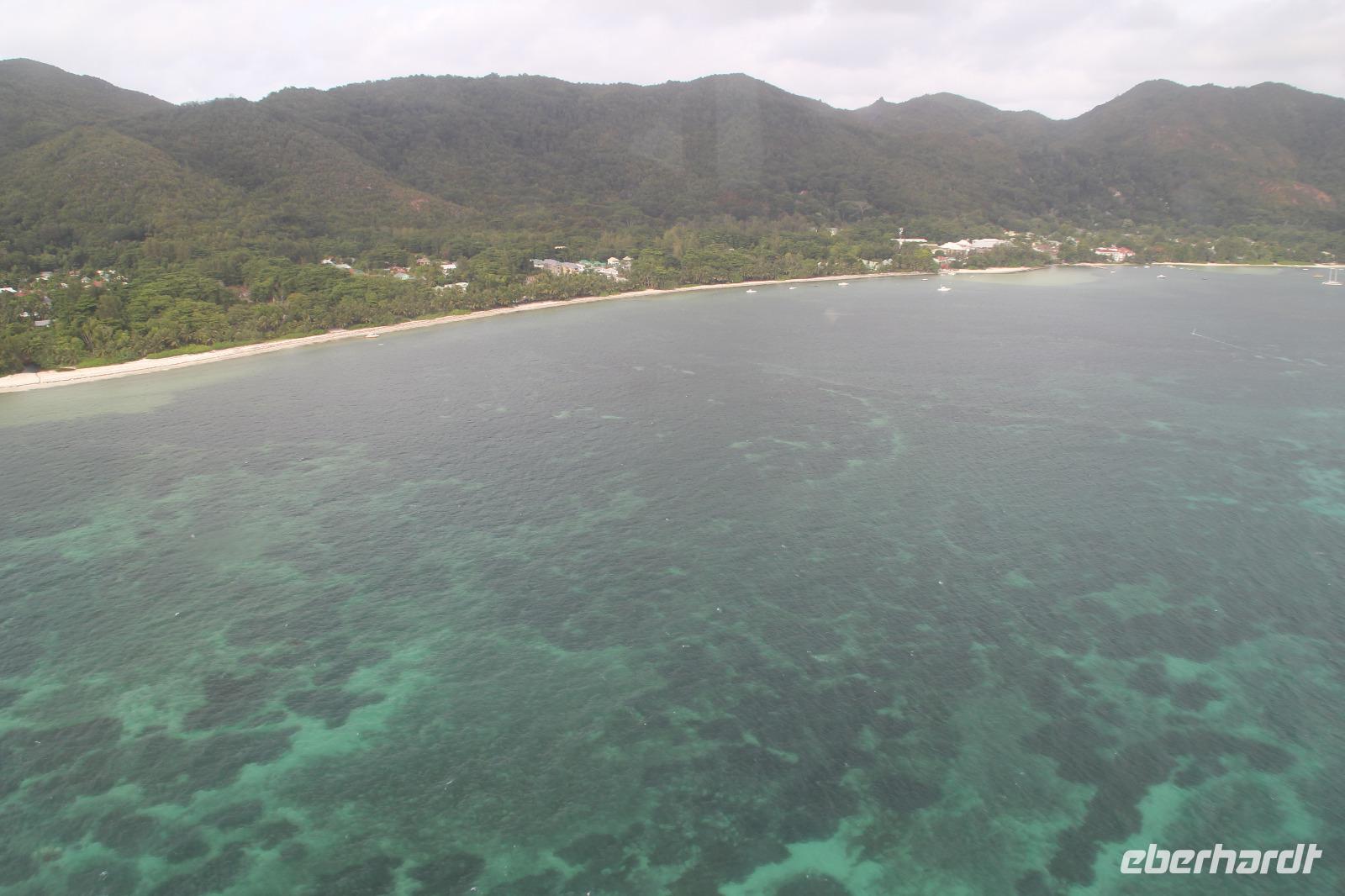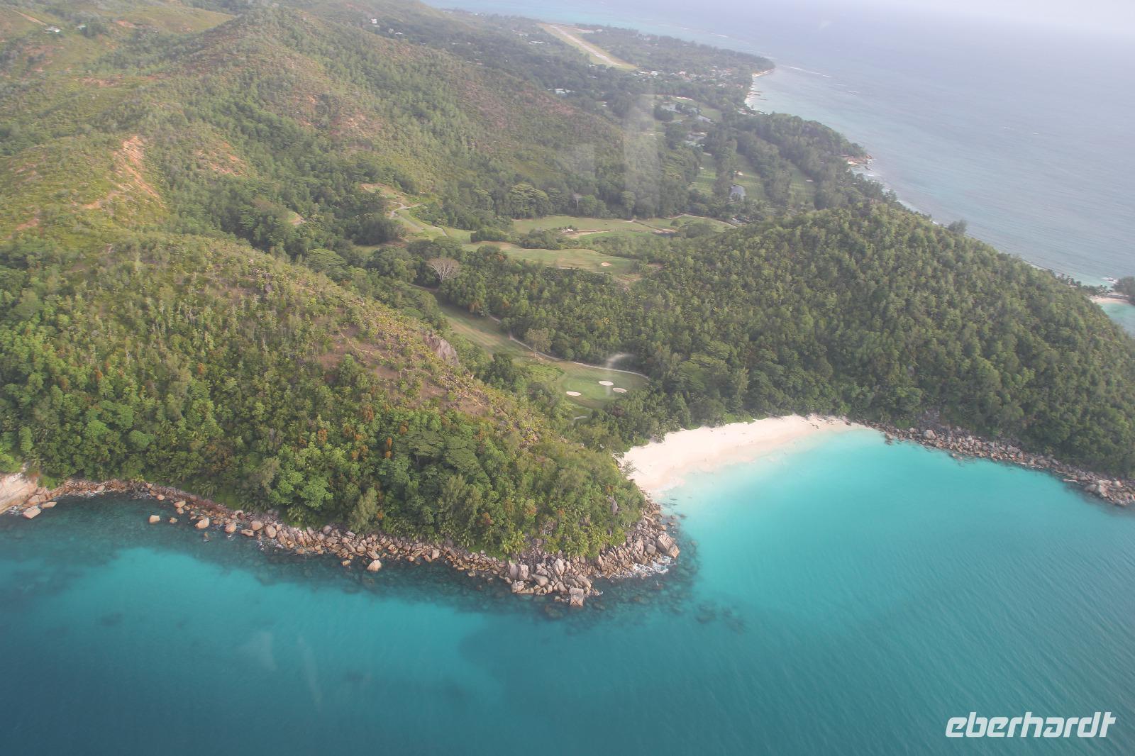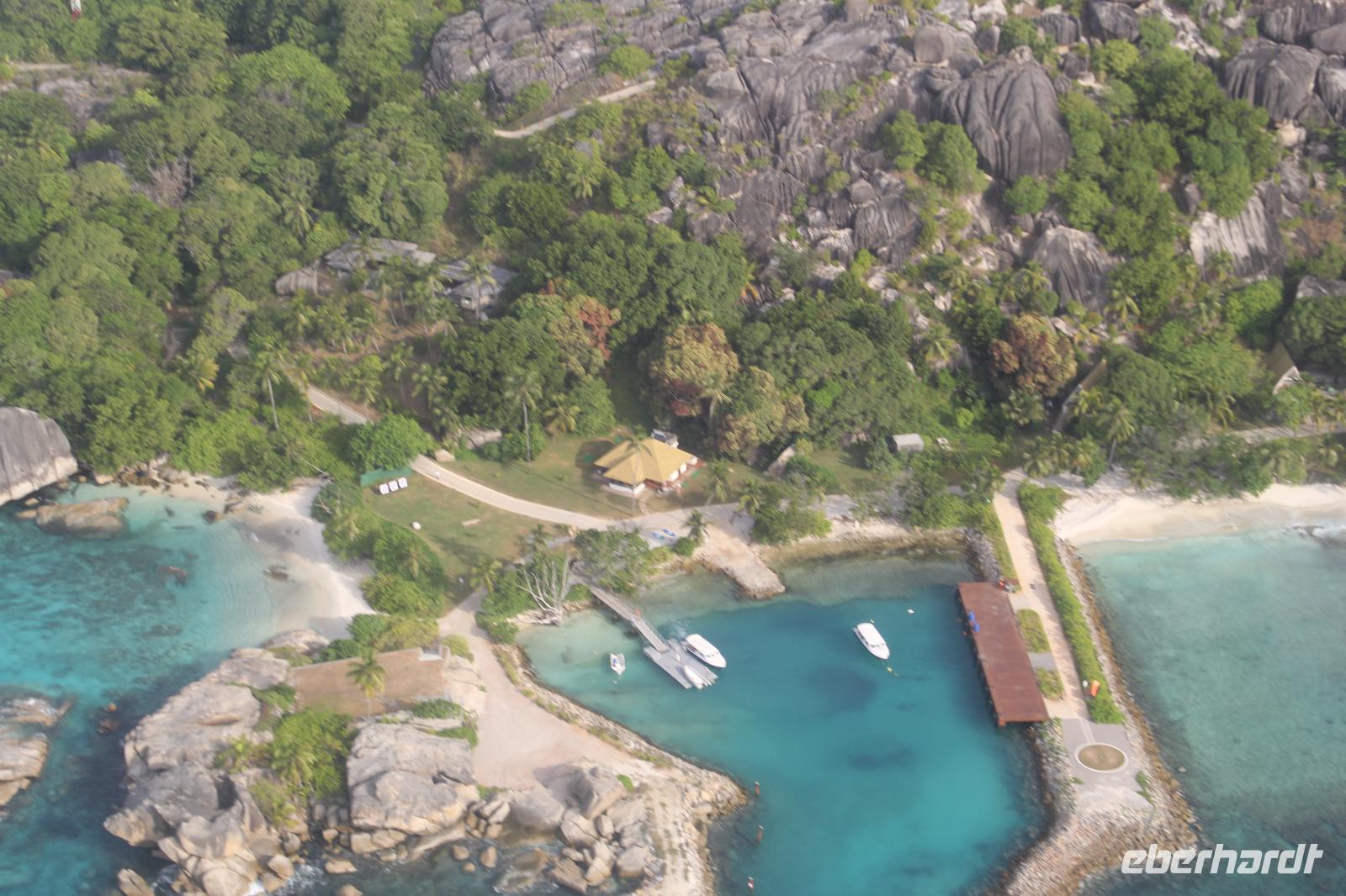 An unserem 5. Reisetag stand erst einmal Freizeit an. Alle Gäste ruhten sich aus und genossen Sonne, Strand und Meer. Am Nachmittag fuhr ich mit 3 Reisegästen zum Flughafen von Praslin, um mit einem Helikopter über die Inselwelt zu fliegen. Gemeinsam mit unserem örtlichen Reiseleiter Cyril konnten wir diesen Flug organisieren, weil an dem Tag glücklicher weiße der Hubschrauber Gäste von Mahé nach Praslin brachte.