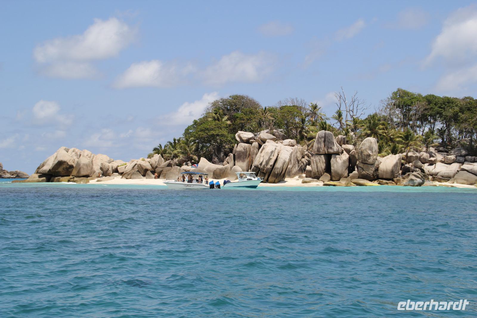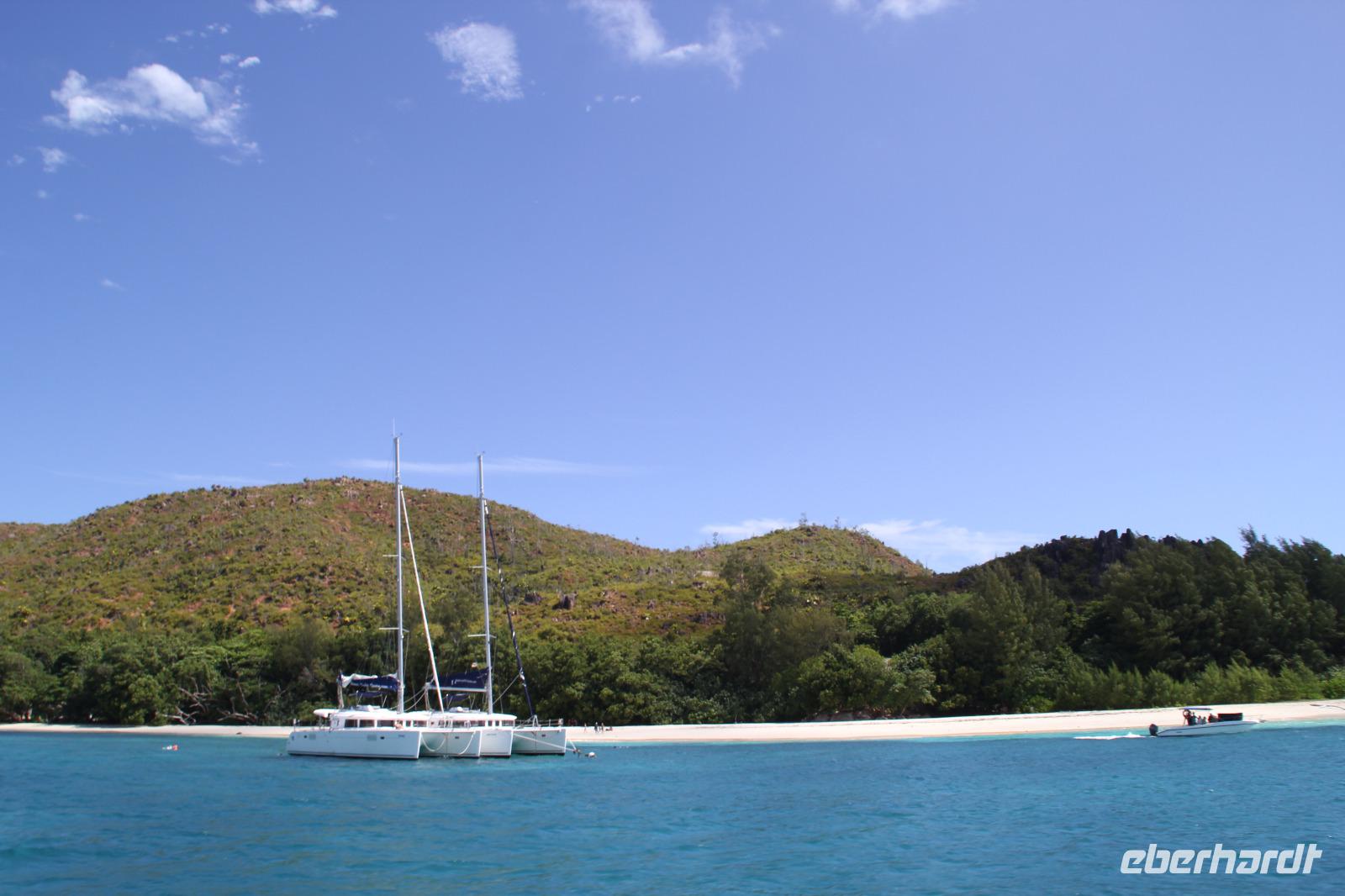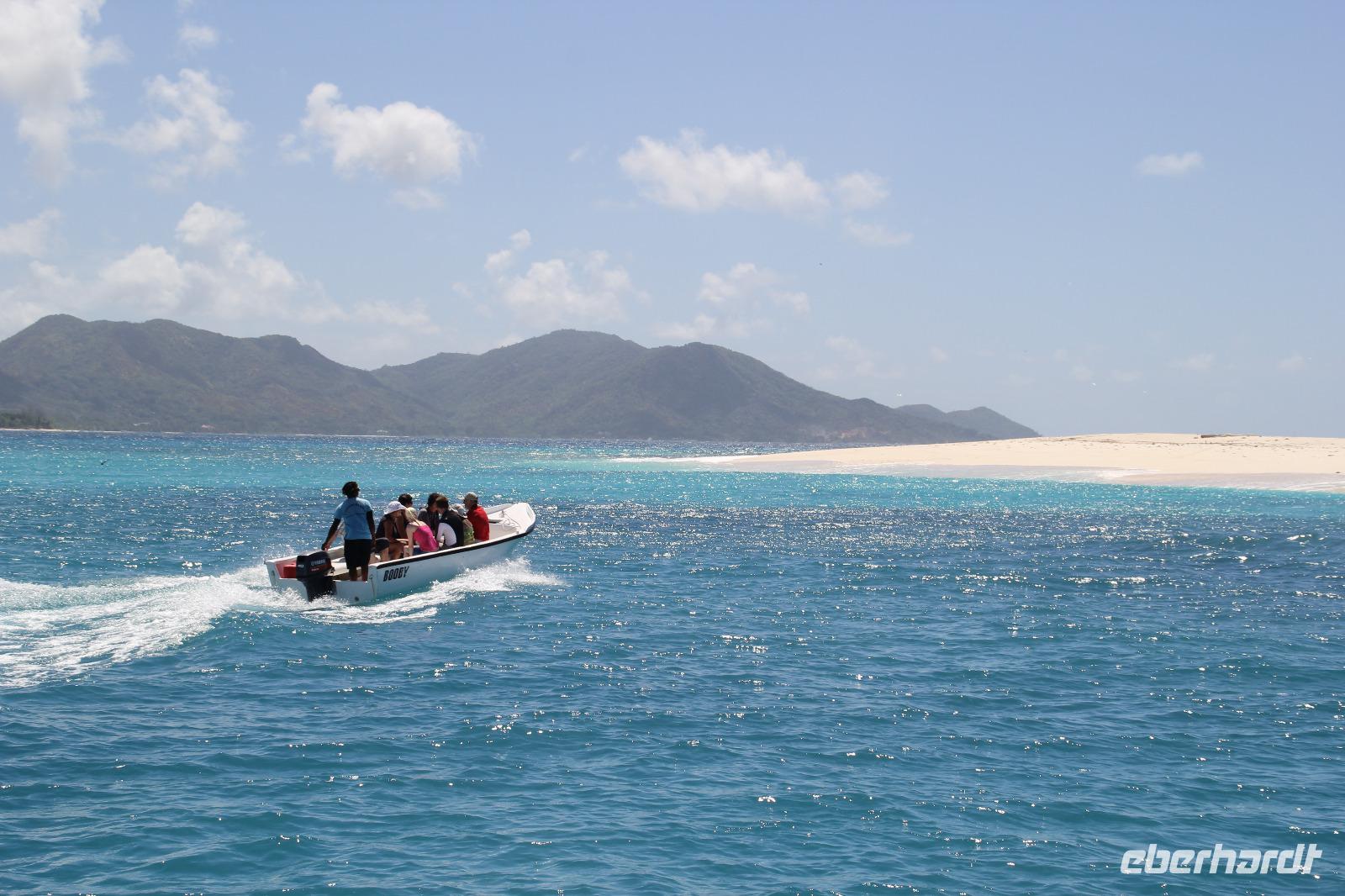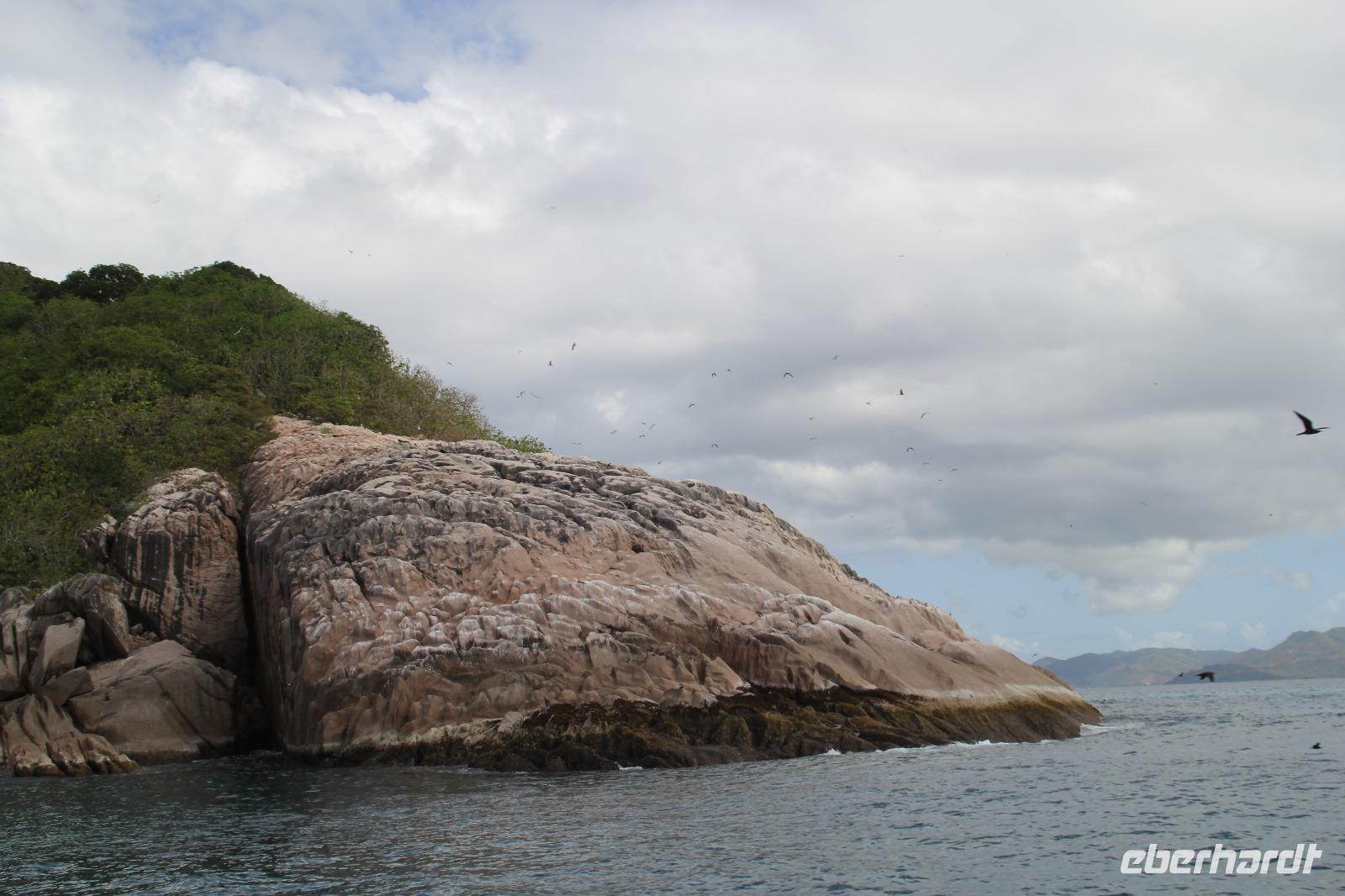 Zuerst brachte unser Skipper den Koch und das vorbereitete Mittagessen auf die Insel Curieuse. Wir blieben im Boot, denn unser erstes Ziel dieses Tages war die Vogelinsel Cousin, die wir ca. 20min später erreichten.
