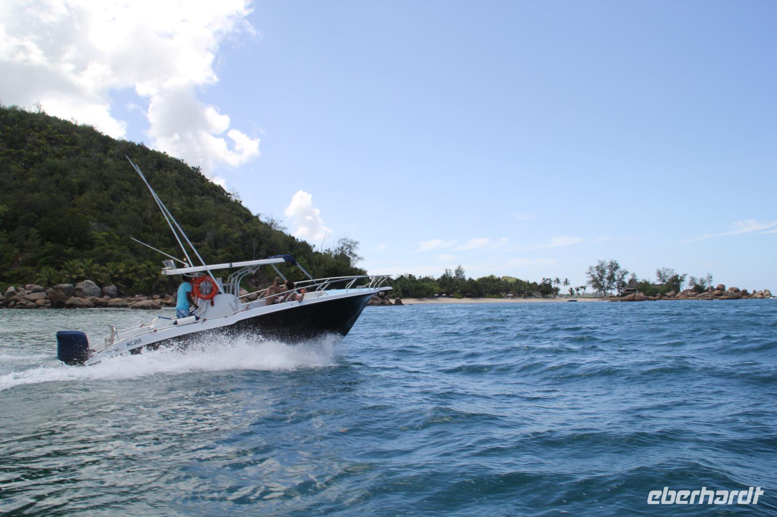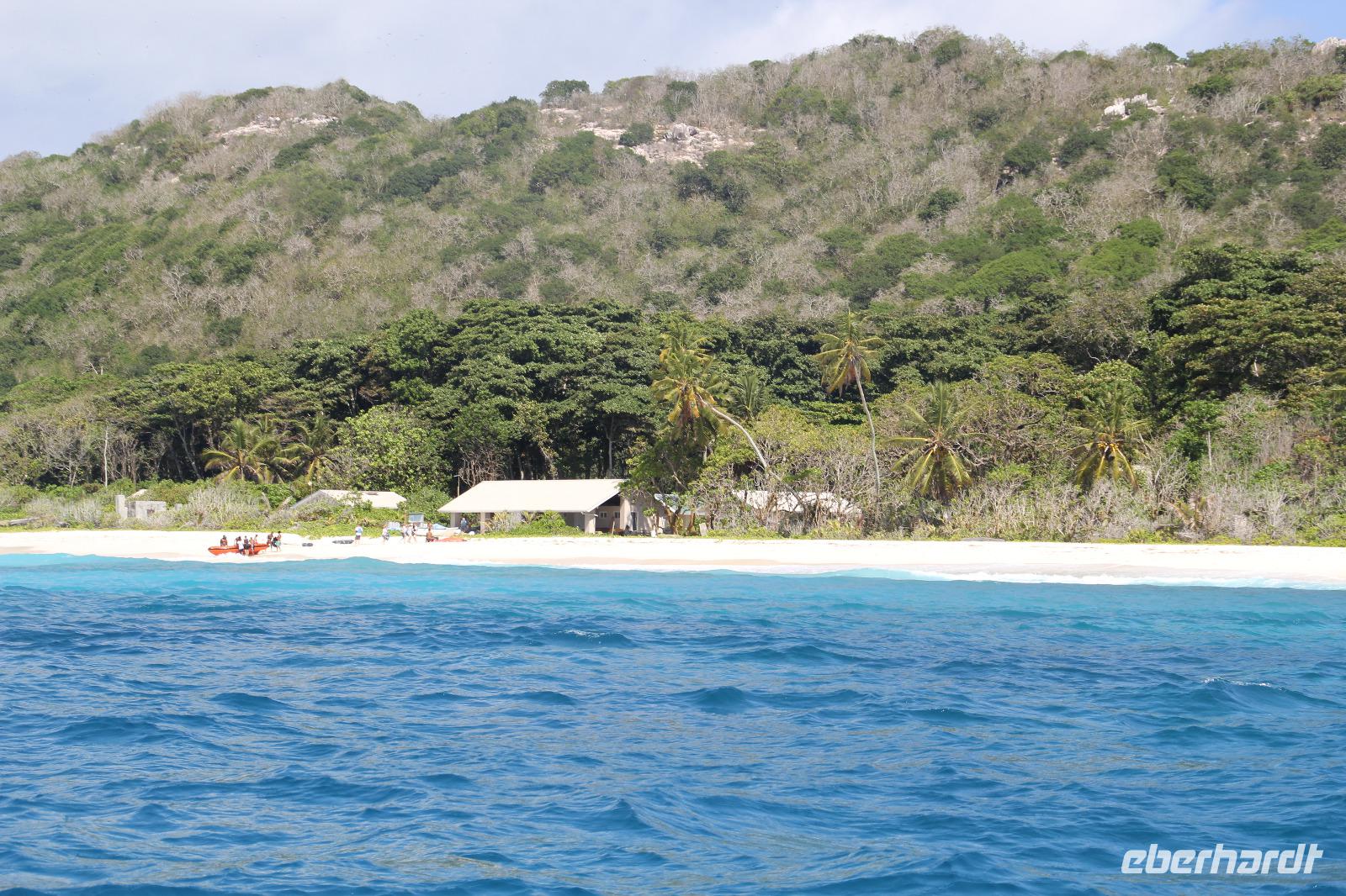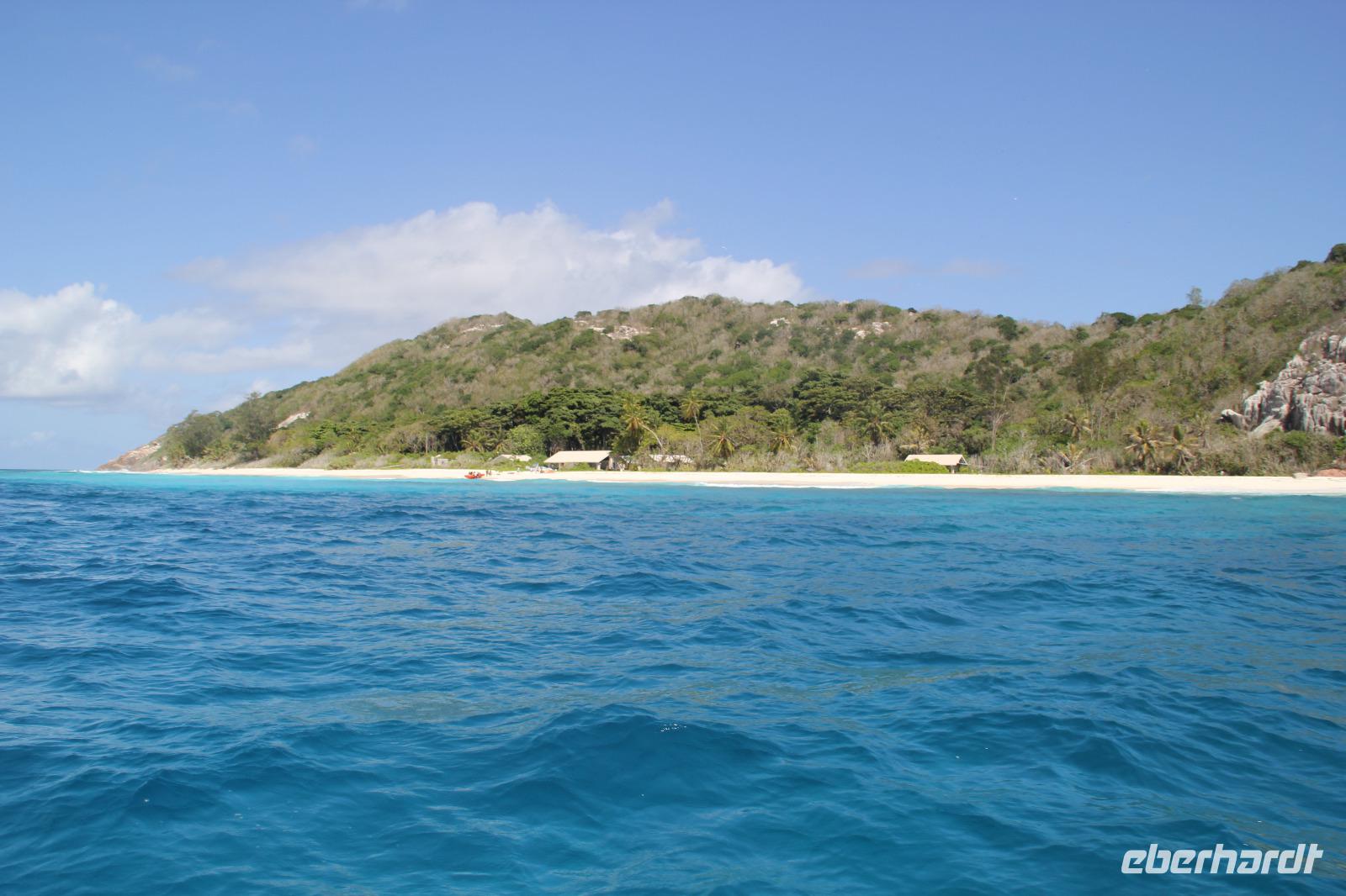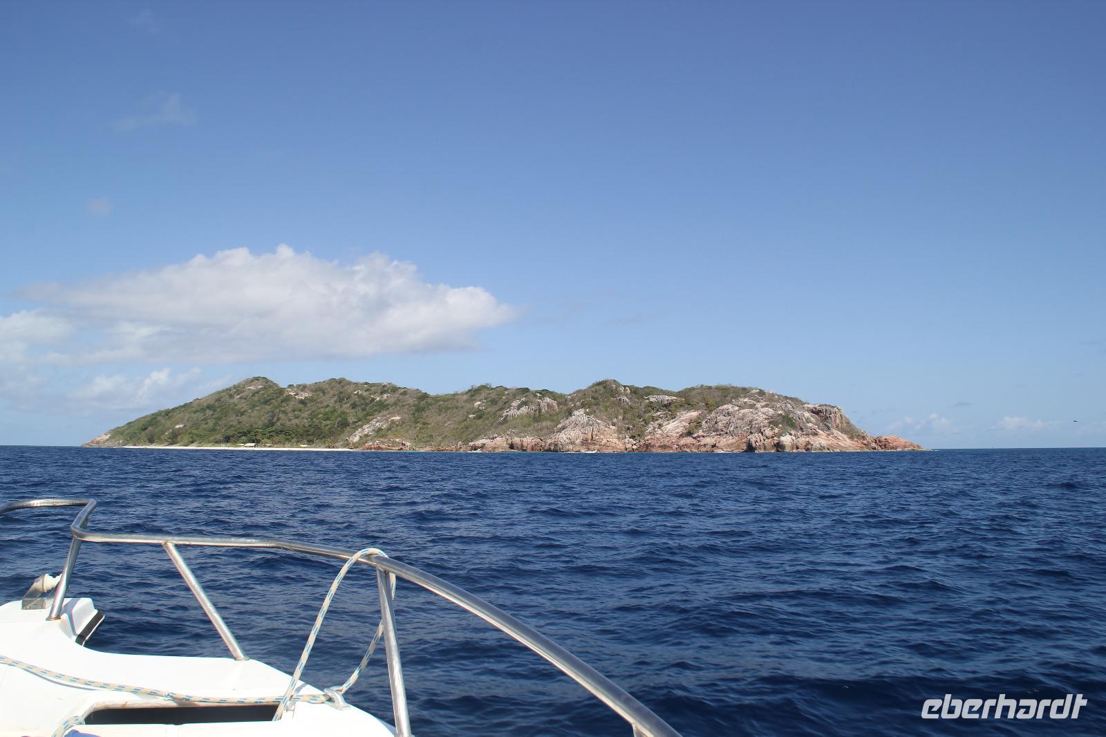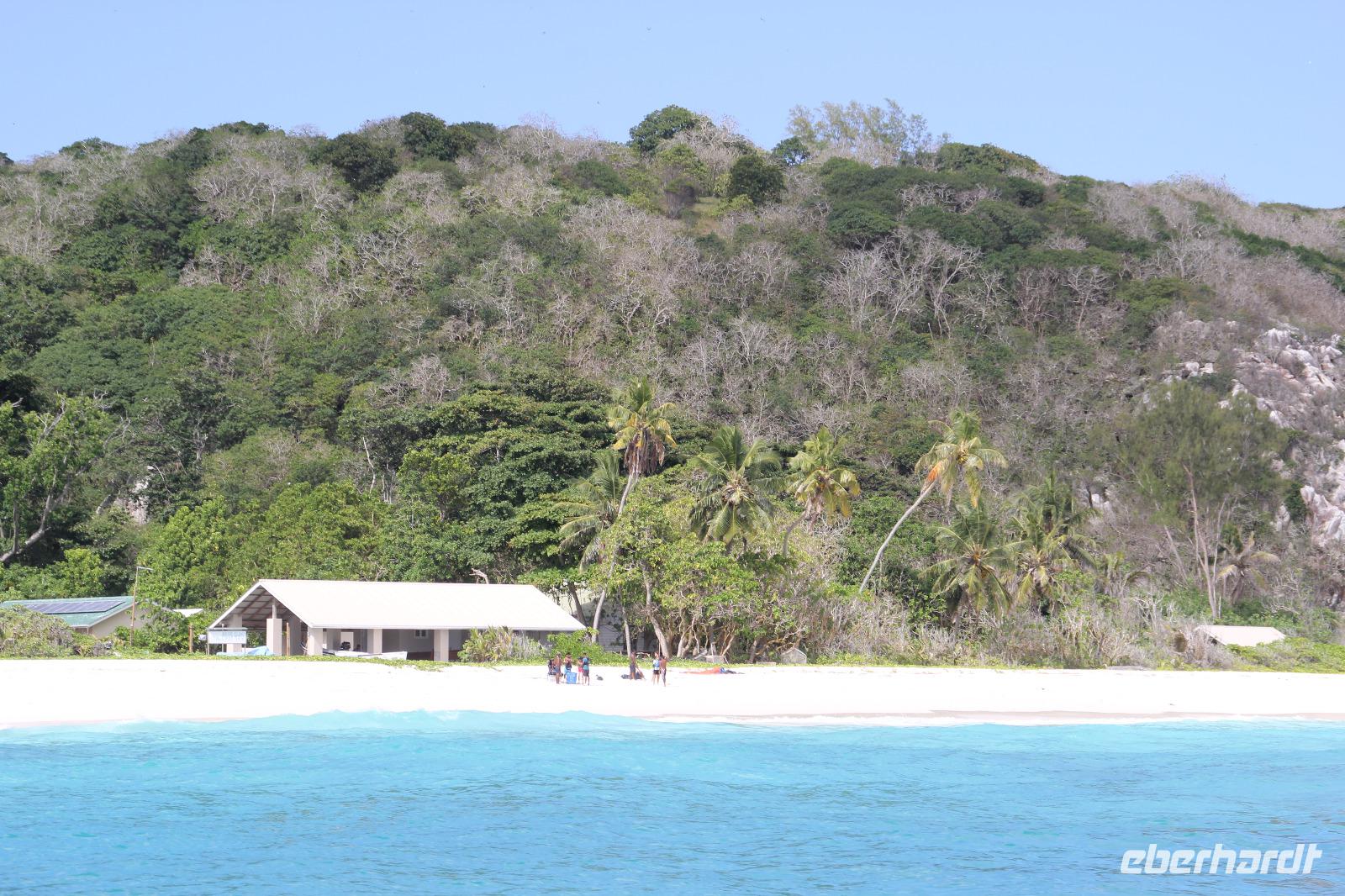 Zuerst brachte unser Skipper den Koch und das vorbereitete Mittagessen auf die Insel Curieuse. Wir blieben im Boot, denn unser erstes Ziel dieses Tages war die Vogelinsel Cousin, die wir ca. 20min später erreichten.