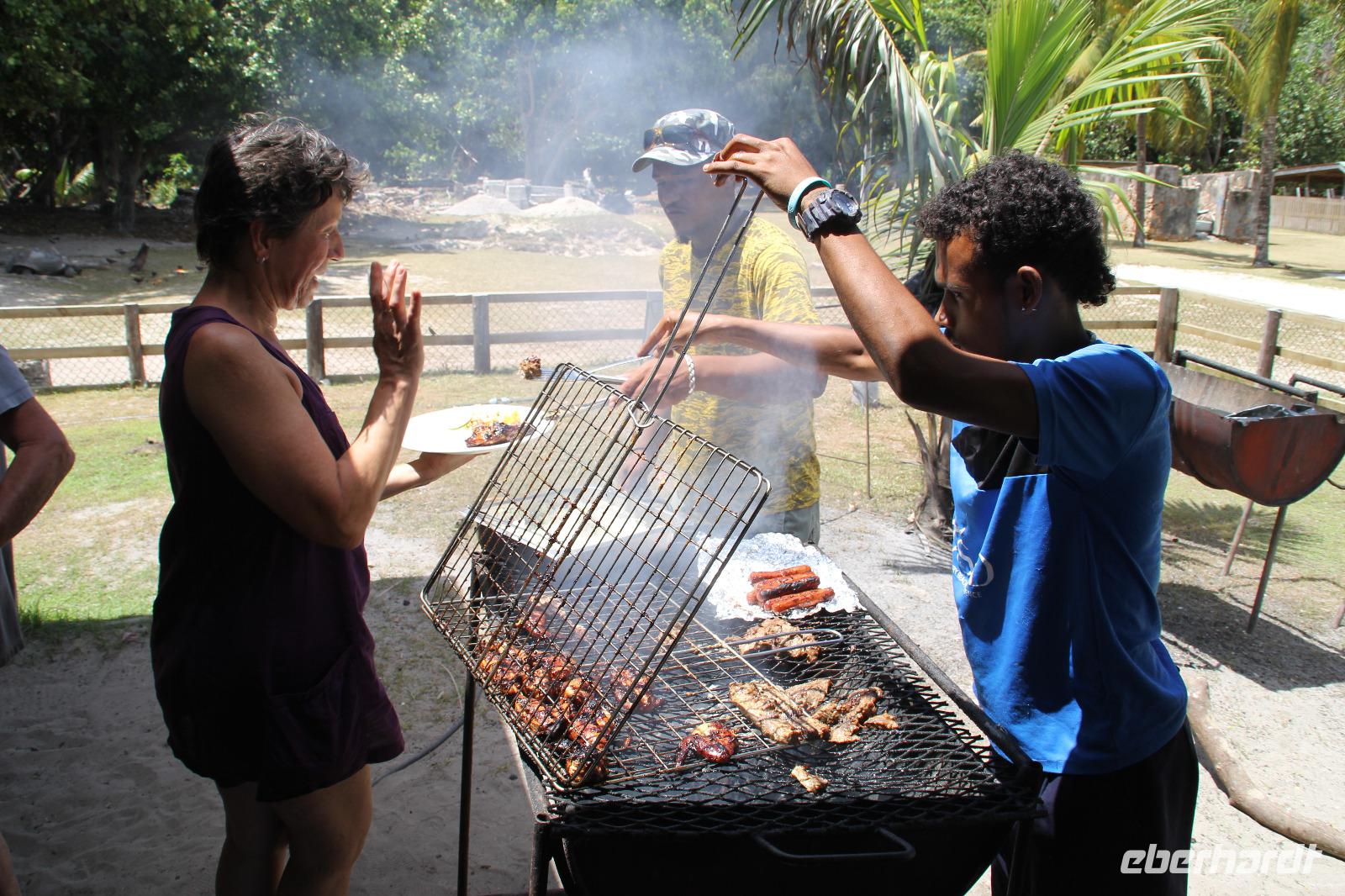 Unsere Skipper/Köche erwarteten uns schon für das Grillmittagessen am Strand.